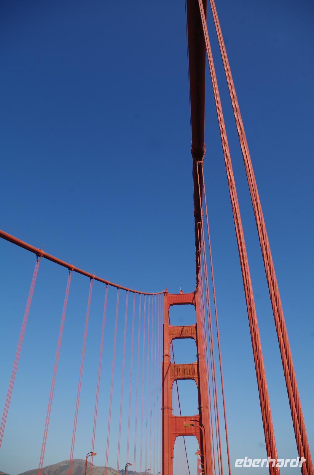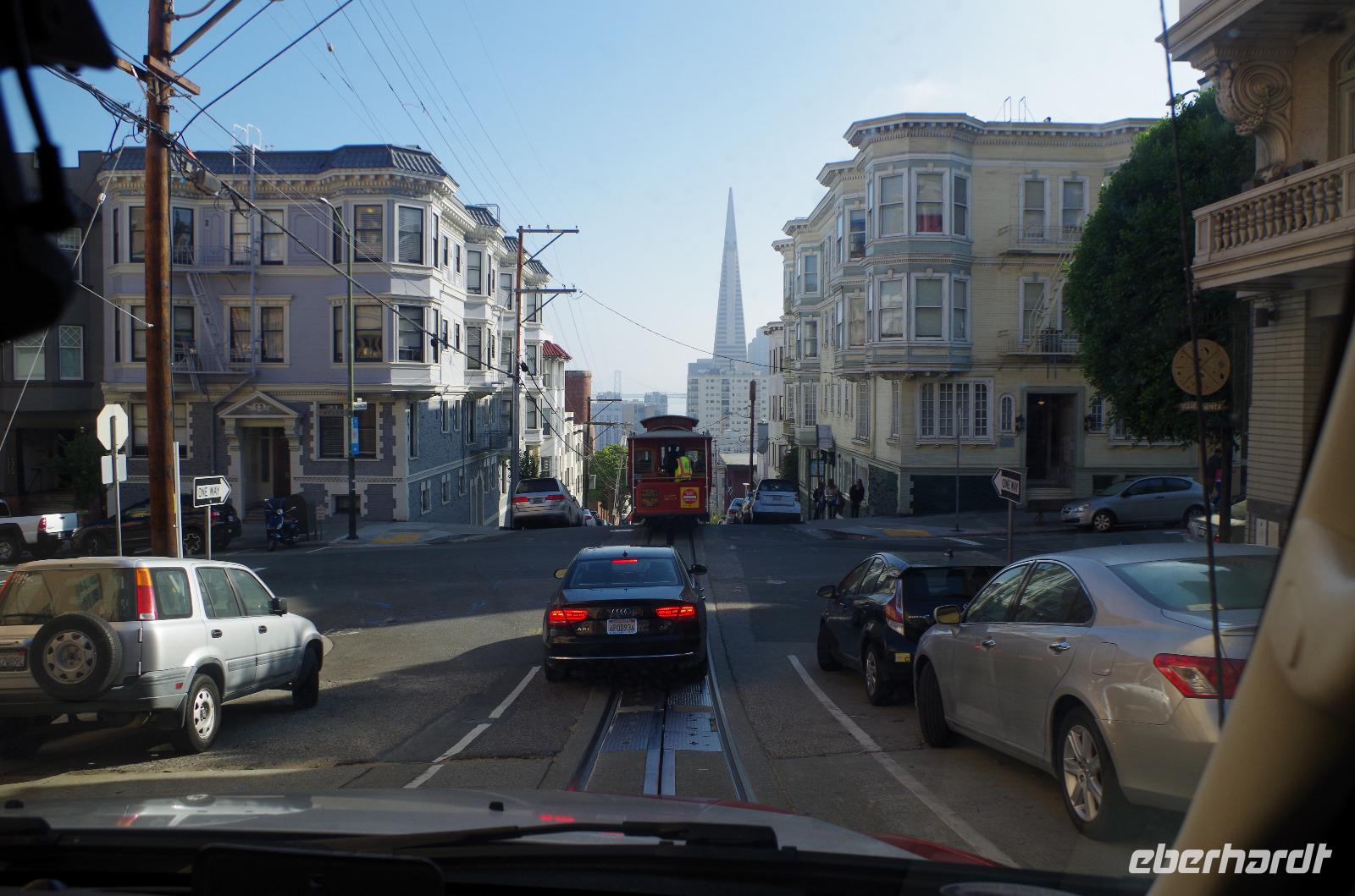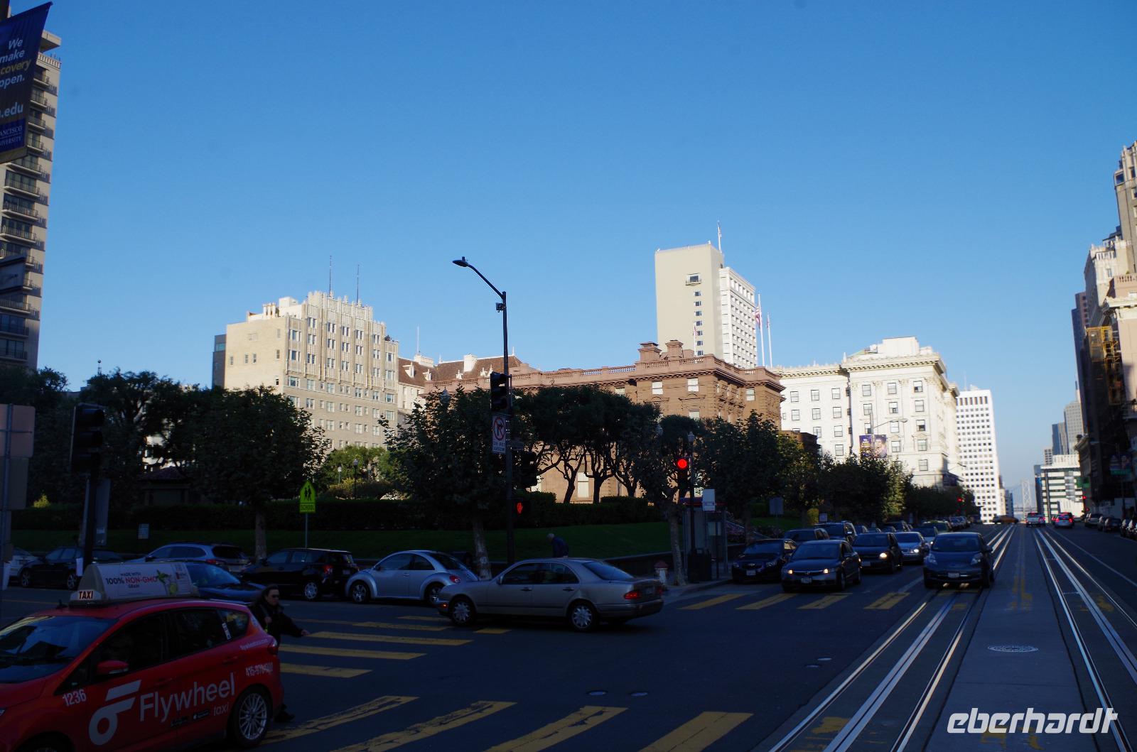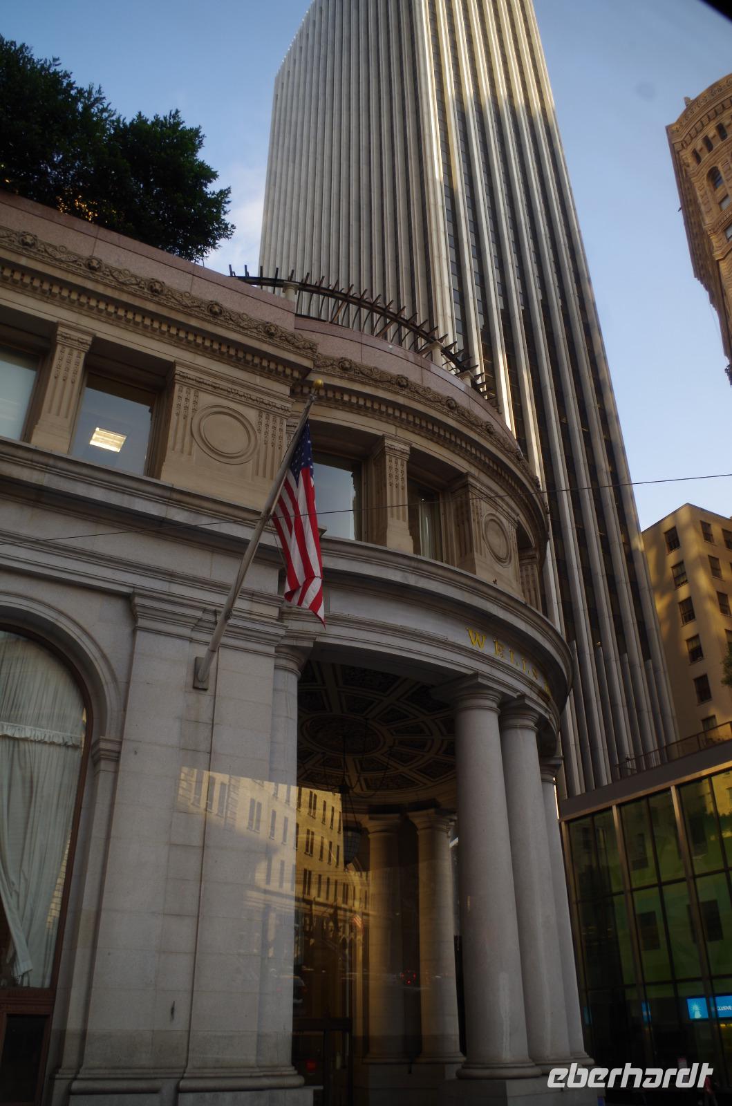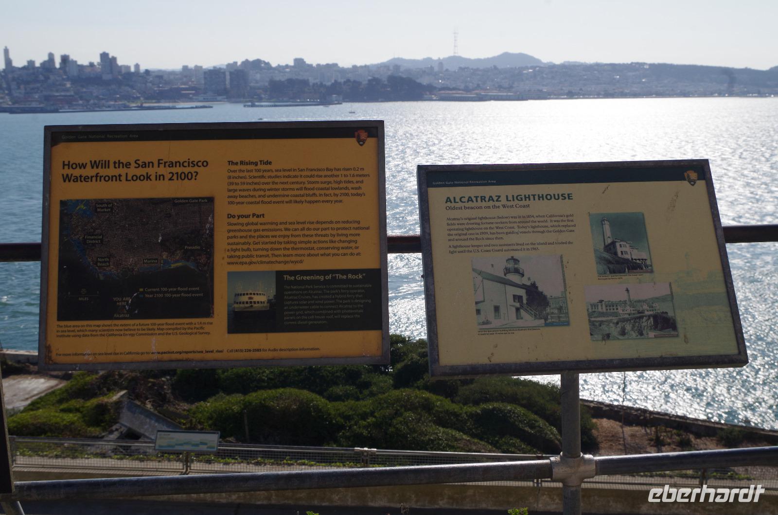Nach einem doch recht anstrengenden Anreisetag starten wir in einen sonnigen Tag mit einem guten Frühstück. Ungewöhnlich ist sicherlich für uns das Essen mit Plastikbesteck, was aber in vielen Hotels in den USA alltäglich ist. Um 08.30 Uhr werden wir von Catharina und der Panama-Gruppe abgeholt, so dass unsere Stadtrundfahrt zugleich beginnen kann. Wir fahren Richtung North Beach am italienischen Viertel und der Kirche "Saints Peter and Paul Church" vorbei. Unser erster Foto-Stopp ist am Rathaus "City Hall". Bevor wir die 1970 fertiggestellte "Kathedrale Mariä Himmelfahrt", oder auch "Cathedral of Saint Mary of the Assumption", besichtigen, legen wir eine Harmoniepause im japanischen Viertel ein. Anschließend fahren wir weiter zum Postcard Row und am Crissy Field vorbei zu einem sehr beliebten Fotomotiv in San Francisco, der unter Leitung von Joseph Strauss entworfenen berühmten Golden Gate Bridge. Hier entsteht auch unser erstes Gruppenfoto, von welchem noch viele weitere Fotos folgen werden ;-) Diese rund 2.789 Meter lange Hängebrücke (Gesamtlänge einschließlich der Auffahrtsrampen) stellt die Verbindung zwischen Martin County und der Stadt an der nördlichsten Spitze der Halbinsel dar. Der Bau hat 1933 begonnen und ist rund vier später fertiggestellt wurden. Die Kosten haben rund 35 Millionen Dollar betragen. Die Brücke trägt die ungewöhnliche Farbe "international orange", was zwar komisch klingt, die Farbe der Brücke passt aber wunderbar ins Landschaftsbild. Interessant ist vielleicht auch, dass die Mautgebühr von aktuell 7 US-Dollar nur in südlicher Richtung zur Stadt eingefordert wird. Die Brücke ist rund 27,4 Meter breit, die Pfeiler sind 227 Meter hoch, die Entfernung zum Meeresspiegel beträgt 67 Meter, der Kabeldurchmesser beträgt 92 Zentimeter und die Kabellänge circa 2.332 Meter. Dann fahren wir zum Fisherman's Wharf und zum Fährhafen zur Gefängnisinsel Alcatraz am Pier 33. Die Überfahrt beginnt um 13.30 Uhr und dauert nur wenige Minuten. Für einen Besuch von Alcatraz sind rund zwei Stunden einzuplanen. Wir erhalten Audioguides mit deutschen Erklärungen und Erzählungen, welche das damalige Leben der Häftlinge sehr authentisch und interessant wiedergegeben. Im Jahre 1934 ist der Umbau des ehemaligen Militärstützpunkts zum Militärgefängnis und später zur Bundesstrafanstalt erfolgt. Geschlossen wurde sie 1963 aufgrund steigender Unterhaltungs- und Betriebskosten. Zu den bekanntesten Häftlingen zählen die berüchtigten Insassen Al "Scarface" Capone, Alvin "Creepy" Karpis, Robert Stroud - der "Vogelmann von Alcatraz" oder "Doc" Barker. Weitere Daten und Fakten sind: Es hat 14 Ausbrüche gegeben, das Zellengebäude ist nie voll belegt gewesen, die Häftlinge sind durchschnittlich 8 bis 10 Jahre auf Alcatraz eingeschlossen gewesen und es hat keine Hinrichtungen auf Alcatraz gegeben. Interessant ist sicher auch, dass es sowohl keine weiblichen Gefängnisaufseher als auch weibliche Insassen auf Alcatraz gegeben hat. Die Reisebegleitung Sabine der Panama-Gruppe kommt sogar ins Gespräch mit einem ehemaligen Häftling, welcher genau an diesem Tag sein geschriebenes Buch vorstellt. Jährlich statten mehrere Millionen Menschen der zur Golden Gate Recreational Area gehörenden Gefängnisinsel einen Besuch ab. Gegen 15.00 Uhr fahren wir wieder zurück zum Fisherman's Wharf und verabschieden uns von der Panama-Gruppe. Sie werden morgen mit dem Bus nach Los Angeles fahren, während wir einen weiteren Tag in San Francisco genießen dürfen. Aber heute steht uns noch ein besonderes Highlight bevor! Wir fahren gegen 16.00 Uhr mit der berühmten und vielmals in Filmen vorkommenden Kabelstraßenbahn "Cable Car". Dies ist wirklich ein Erlebnis für sich, auch wenn die Fahrt mit der Cable Car California Line nur wenige Minuten dauert. Nach der Fahrt fahren wir zum Hotel zurück und verabschieden uns freundlich von unserer örtlichen Reiseleiterin Catharina. Sie wird die Panama-Gruppe nach Los Angeles begleiten. Um 18.00 Uhr treffen wir uns zum gemeinsamen Spaziergang am Fisherman's Wharf entlang zum Pier 39, wo wir die vielen wirklich faul in der Abendsonne liegenden Seerobben beobachten und besonders deren lustigen Geräuschen lauschen. Wenig später gönnen wir uns ein leckeres Abendessen im mexikanischen Restaurant "Mangos" am Pier 39. Das Essen ist zwar ganz gut, aber dank einer Gesamtrechnung mit zwei verschiedenen Steuern ohne Prozentangabe und einem bereits einkalkulierten Trinkgelds verzögert sich die Bezahlung fast schon ins Unendliche! Somit ist es zu empfehlen, immer nach getrennten Rechnungen vor der Bestellung zu fragen. Gegen 21.00 Uhr spazieren wir entspannt zum Hotel zurück und verabschieden uns bis zum nächsten Morgen. Ein weiterer spannender Tag wartet auf uns!