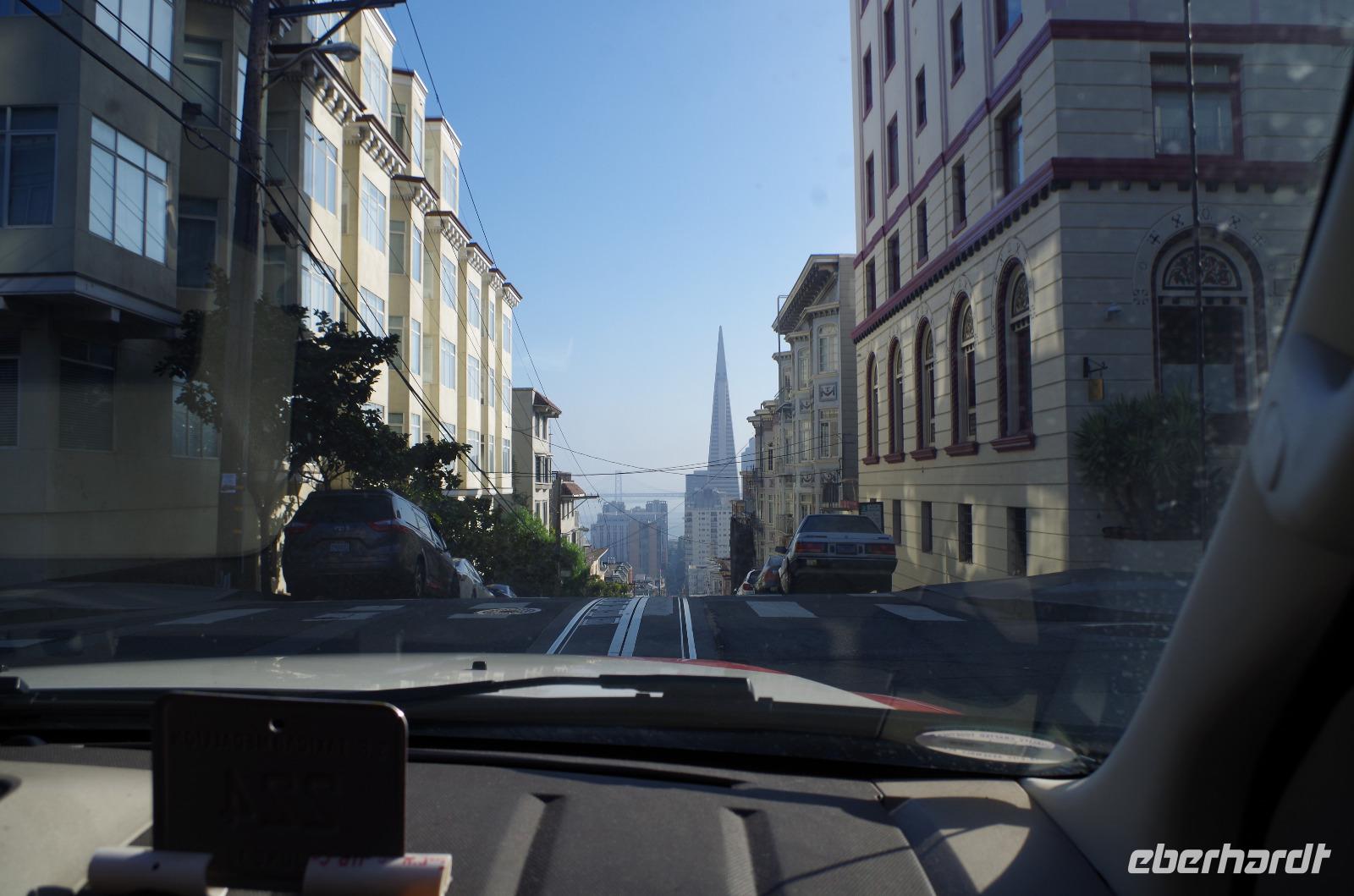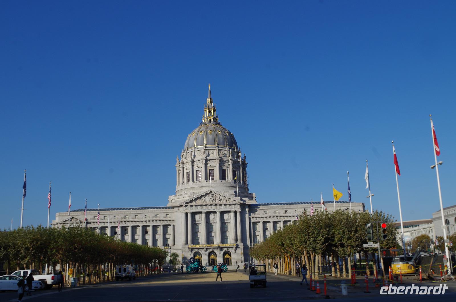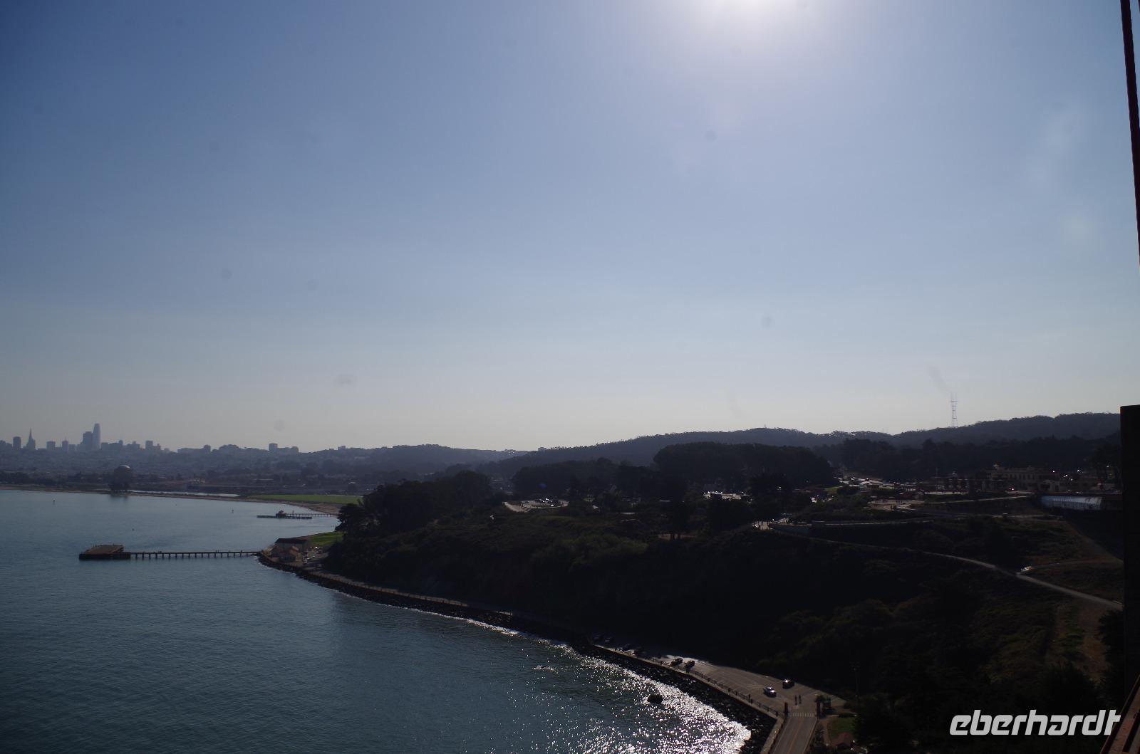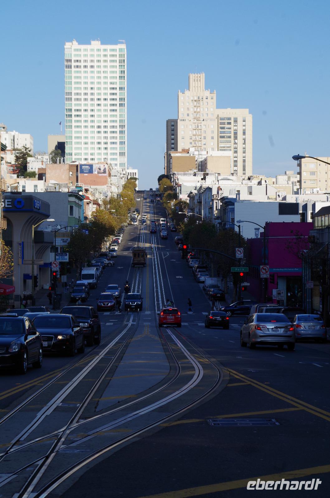 Nach einem doch recht anstrengenden Anreisetag starten wir in einen sonnigen Tag mit einem guten Frühstück. Ungewöhnlich ist sicherlich für uns das Essen mit Plastikbesteck, was aber in vielen Hotels in den USA alltäglich ist. Um 08.30 Uhr werden wir von Catharina und der Panama-Gruppe abgeholt, so dass unsere Stadtrundfahrt zugleich beginnen kann. Wir fahren Richtung North Beach am italienischen Viertel und der Kirche "Saints Peter and Paul Church" vorbei. Unser erster Foto-Stopp ist am Rathaus "City Hall". Bevor wir die 1970 fertiggestellte "Kathedrale Mariä Himmelfahrt", oder auch "Cathedral of Saint Mary of the Assumption", besichtigen, legen wir eine Harmoniepause im japanischen Viertel ein. Anschließend fahren wir weiter zum Postcard Row und am Crissy Field vorbei zu einem sehr beliebten Fotomotiv in San Francisco, der unter Leitung von Joseph Strauss entworfenen berühmten Golden Gate Bridge. Hier entsteht auch unser erstes Gruppenfoto, von welchem noch viele weitere Fotos folgen werden ;-) Diese rund 2.789 Meter lange Hängebrücke (Gesamtlänge einschließlich der Auffahrtsrampen) stellt die Verbindung zwischen Martin County und der Stadt an der nördlichsten Spitze der Halbinsel dar. Der Bau hat 1933 begonnen und ist rund vier später fertiggestellt wurden. Die Kosten haben rund 35 Millionen Dollar betragen. Die Brücke trägt die ungewöhnliche Farbe "international orange", was zwar komisch klingt, die Farbe der Brücke passt aber wunderbar ins Landschaftsbild. Interessant ist vielleicht auch, dass die Mautgebühr von aktuell 7 US-Dollar nur in südlicher Richtung zur Stadt eingefordert wird. Die Brücke ist rund 27,4 Meter breit, die Pfeiler sind 227 Meter hoch, die Entfernung zum Meeresspiegel beträgt 67 Meter, der Kabeldurchmesser beträgt 92 Zentimeter und die Kabellänge circa 2.332 Meter. Dann fahren wir zum Fisherman's Wharf und zum Fährhafen zur Gefängnisinsel Alcatraz am Pier 33. Die Überfahrt beginnt um 13.30 Uhr und dauert nur wenige Minuten. Für einen Besuch von Alcatraz sind rund zwei Stunden einzuplanen. Wir erhalten Audioguides mit deutschen Erklärungen und Erzählungen, welche das damalige Leben der Häftlinge sehr authentisch und interessant wiedergegeben. Im Jahre 1934 ist der Umbau des ehemaligen Militärstützpunkts zum Militärgefängnis und später zur Bundesstrafanstalt erfolgt. Geschlossen wurde sie 1963 aufgrund steigender Unterhaltungs- und Betriebskosten. Zu den bekanntesten Häftlingen zählen die berüchtigten Insassen Al "Scarface" Capone, Alvin "Creepy" Karpis, Robert Stroud - der "Vogelmann von Alcatraz" oder "Doc" Barker. Weitere Daten und Fakten sind: Es hat 14 Ausbrüche gegeben, das Zellengebäude ist nie voll belegt gewesen, die Häftlinge sind durchschnittlich 8 bis 10 Jahre auf Alcatraz eingeschlossen gewesen und es hat keine Hinrichtungen auf Alcatraz gegeben. Interessant ist sicher auch, dass es sowohl keine weiblichen Gefängnisaufseher als auch weibliche Insassen auf Alcatraz gegeben hat. Die Reisebegleitung Sabine der Panama-Gruppe kommt sogar ins Gespräch mit einem ehemaligen Häftling, welcher genau an diesem Tag sein geschriebenes Buch vorstellt. Jährlich statten mehrere Millionen Menschen der zur Golden Gate Recreational Area gehörenden Gefängnisinsel einen Besuch ab. Gegen 15.00 Uhr fahren wir wieder zurück zum Fisherman's Wharf und verabschieden uns von der Panama-Gruppe. Sie werden morgen mit dem Bus nach Los Angeles fahren, während wir einen weiteren Tag in San Francisco genießen dürfen. Aber heute steht uns noch ein besonderes Highlight bevor! Wir fahren gegen 16.00 Uhr mit der berühmten und vielmals in Filmen vorkommenden Kabelstraßenbahn "Cable Car". Dies ist wirklich ein Erlebnis für sich, auch wenn die Fahrt mit der Cable Car California Line nur wenige Minuten dauert. Nach der Fahrt fahren wir zum Hotel zurück und verabschieden uns freundlich von unserer örtlichen Reiseleiterin Catharina. Sie wird die Panama-Gruppe nach Los Angeles begleiten. Um 18.00 Uhr treffen wir uns zum gemeinsamen Spaziergang am Fisherman's Wharf entlang zum Pier 39, wo wir die vielen wirklich faul in der Abendsonne liegenden Seerobben beobachten und besonders deren lustigen Geräuschen lauschen. Wenig später gönnen wir uns ein leckeres Abendessen im mexikanischen Restaurant "Mangos" am Pier 39. Das Essen ist zwar ganz gut, aber dank einer Gesamtrechnung mit zwei verschiedenen Steuern ohne Prozentangabe und einem bereits einkalkulierten Trinkgelds verzögert sich die Bezahlung fast schon ins Unendliche! Somit ist es zu empfehlen, immer nach getrennten Rechnungen vor der Bestellung zu fragen. Gegen 21.00 Uhr spazieren wir entspannt zum Hotel zurück und verabschieden uns bis zum nächsten Morgen. Ein weiterer spannender Tag wartet auf uns!