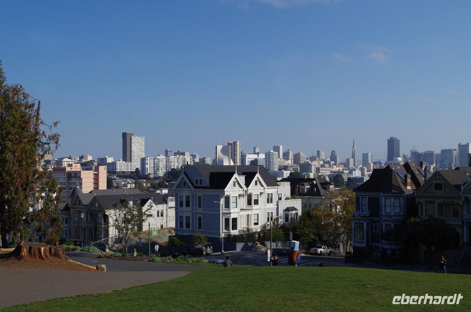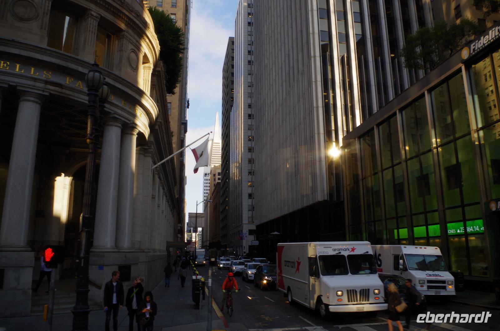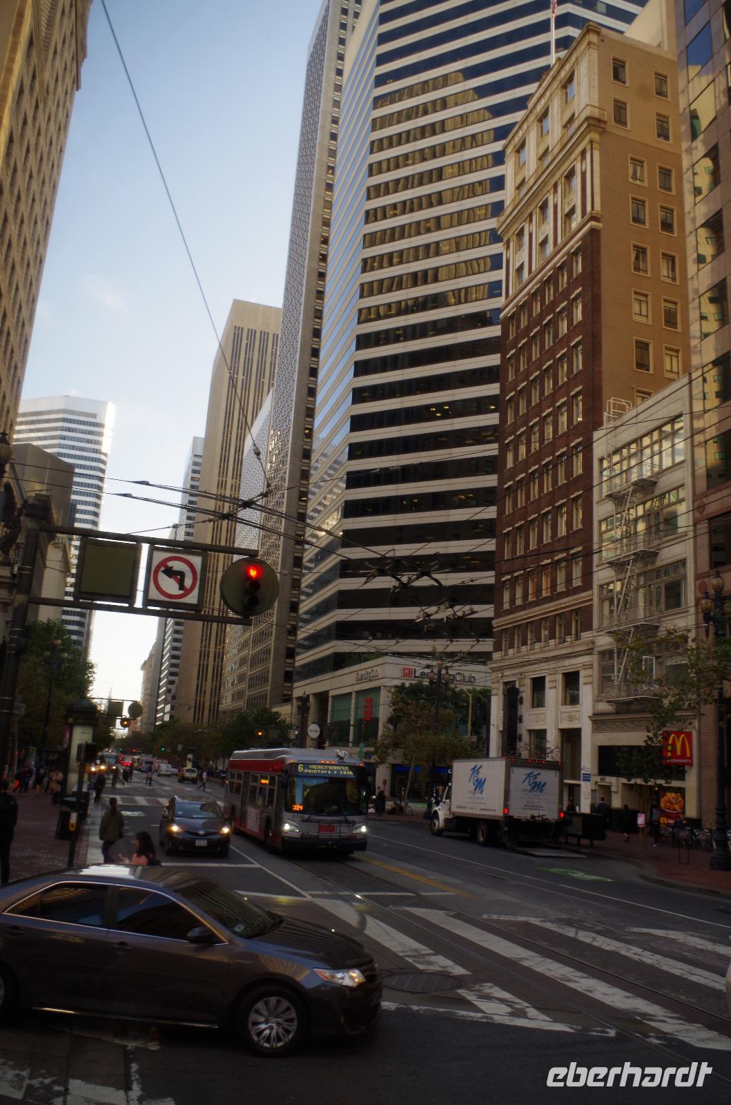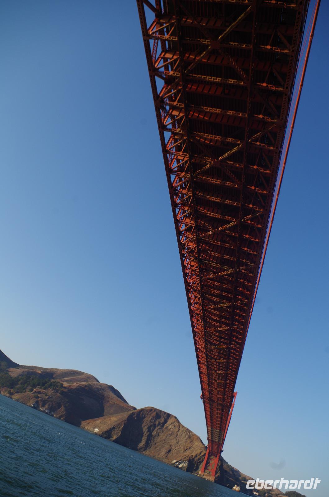 Nach einem doch recht anstrengenden Anreisetag starten wir in einen sonnigen Tag mit einem guten Frühstück. Ungewöhnlich ist sicherlich für uns das Essen mit Plastikbesteck, was aber in vielen Hotels in den USA alltäglich ist. Um 08.30 Uhr werden wir von Catharina und der Panama-Gruppe abgeholt, so dass unsere Stadtrundfahrt zugleich beginnen kann. Wir fahren Richtung North Beach am italienischen Viertel und der Kirche "Saints Peter and Paul Church" vorbei. Unser erster Foto-Stopp ist am Rathaus "City Hall". Bevor wir die 1970 fertiggestellte "Kathedrale Mariä Himmelfahrt", oder auch "Cathedral of Saint Mary of the Assumption", besichtigen, legen wir eine Harmoniepause im japanischen Viertel ein. Anschließend fahren wir weiter zum Postcard Row und am Crissy Field vorbei zu einem sehr beliebten Fotomotiv in San Francisco, der unter Leitung von Joseph Strauss entworfenen berühmten Golden Gate Bridge. Hier entsteht auch unser erstes Gruppenfoto, von welchem noch viele weitere Fotos folgen werden ;-) Diese rund 2.789 Meter lange Hängebrücke (Gesamtlänge einschließlich der Auffahrtsrampen) stellt die Verbindung zwischen Martin County und der Stadt an der nördlichsten Spitze der Halbinsel dar. Der Bau hat 1933 begonnen und ist rund vier später fertiggestellt wurden. Die Kosten haben rund 35 Millionen Dollar betragen. Die Brücke trägt die ungewöhnliche Farbe "international orange", was zwar komisch klingt, die Farbe der Brücke passt aber wunderbar ins Landschaftsbild. Interessant ist vielleicht auch, dass die Mautgebühr von aktuell 7 US-Dollar nur in südlicher Richtung zur Stadt eingefordert wird. Die Brücke ist rund 27,4 Meter breit, die Pfeiler sind 227 Meter hoch, die Entfernung zum Meeresspiegel beträgt 67 Meter, der Kabeldurchmesser beträgt 92 Zentimeter und die Kabellänge circa 2.332 Meter. Dann fahren wir zum Fisherman's Wharf und zum Fährhafen zur Gefängnisinsel Alcatraz am Pier 33. Die Überfahrt beginnt um 13.30 Uhr und dauert nur wenige Minuten. Für einen Besuch von Alcatraz sind rund zwei Stunden einzuplanen. Wir erhalten Audioguides mit deutschen Erklärungen und Erzählungen, welche das damalige Leben der Häftlinge sehr authentisch und interessant wiedergegeben. Im Jahre 1934 ist der Umbau des ehemaligen Militärstützpunkts zum Militärgefängnis und später zur Bundesstrafanstalt erfolgt. Geschlossen wurde sie 1963 aufgrund steigender Unterhaltungs- und Betriebskosten. Zu den bekanntesten Häftlingen zählen die berüchtigten Insassen Al "Scarface" Capone, Alvin "Creepy" Karpis, Robert Stroud - der "Vogelmann von Alcatraz" oder "Doc" Barker. Weitere Daten und Fakten sind: Es hat 14 Ausbrüche gegeben, das Zellengebäude ist nie voll belegt gewesen, die Häftlinge sind durchschnittlich 8 bis 10 Jahre auf Alcatraz eingeschlossen gewesen und es hat keine Hinrichtungen auf Alcatraz gegeben. Interessant ist sicher auch, dass es sowohl keine weiblichen Gefängnisaufseher als auch weibliche Insassen auf Alcatraz gegeben hat. Die Reisebegleitung Sabine der Panama-Gruppe kommt sogar ins Gespräch mit einem ehemaligen Häftling, welcher genau an diesem Tag sein geschriebenes Buch vorstellt. Jährlich statten mehrere Millionen Menschen der zur Golden Gate Recreational Area gehörenden Gefängnisinsel einen Besuch ab. Gegen 15.00 Uhr fahren wir wieder zurück zum Fisherman's Wharf und verabschieden uns von der Panama-Gruppe. Sie werden morgen mit dem Bus nach Los Angeles fahren, während wir einen weiteren Tag in San Francisco genießen dürfen. Aber heute steht uns noch ein besonderes Highlight bevor! Wir fahren gegen 16.00 Uhr mit der berühmten und vielmals in Filmen vorkommenden Kabelstraßenbahn "Cable Car". Dies ist wirklich ein Erlebnis für sich, auch wenn die Fahrt mit der Cable Car California Line nur wenige Minuten dauert. Nach der Fahrt fahren wir zum Hotel zurück und verabschieden uns freundlich von unserer örtlichen Reiseleiterin Catharina. Sie wird die Panama-Gruppe nach Los Angeles begleiten. Um 18.00 Uhr treffen wir uns zum gemeinsamen Spaziergang am Fisherman's Wharf entlang zum Pier 39, wo wir die vielen wirklich faul in der Abendsonne liegenden Seerobben beobachten und besonders deren lustigen Geräuschen lauschen. Wenig später gönnen wir uns ein leckeres Abendessen im mexikanischen Restaurant "Mangos" am Pier 39. Das Essen ist zwar ganz gut, aber dank einer Gesamtrechnung mit zwei verschiedenen Steuern ohne Prozentangabe und einem bereits einkalkulierten Trinkgelds verzögert sich die Bezahlung fast schon ins Unendliche! Somit ist es zu empfehlen, immer nach getrennten Rechnungen vor der Bestellung zu fragen. Gegen 21.00 Uhr spazieren wir entspannt zum Hotel zurück und verabschieden uns bis zum nächsten Morgen. Ein weiterer spannender Tag wartet auf uns!