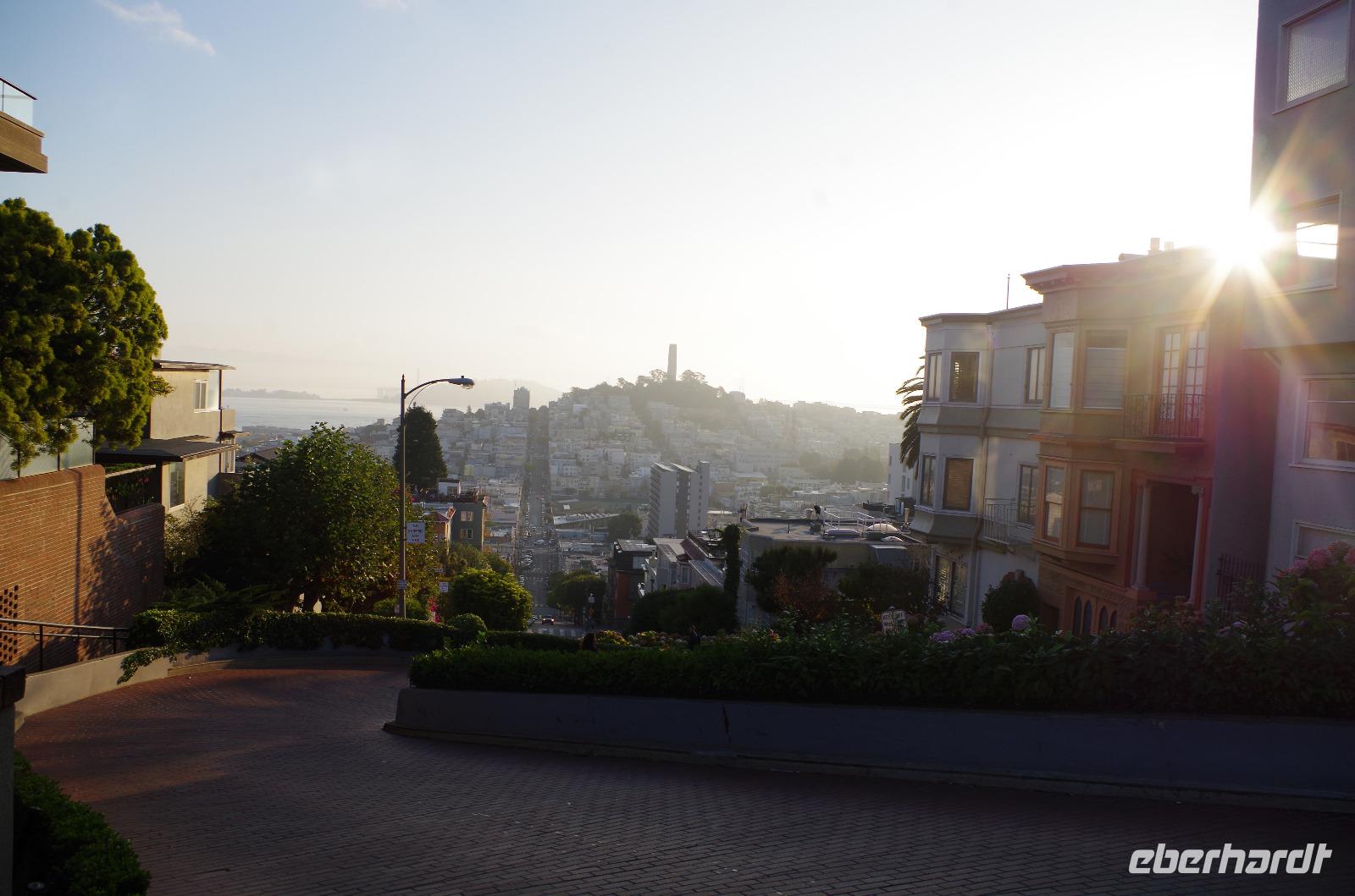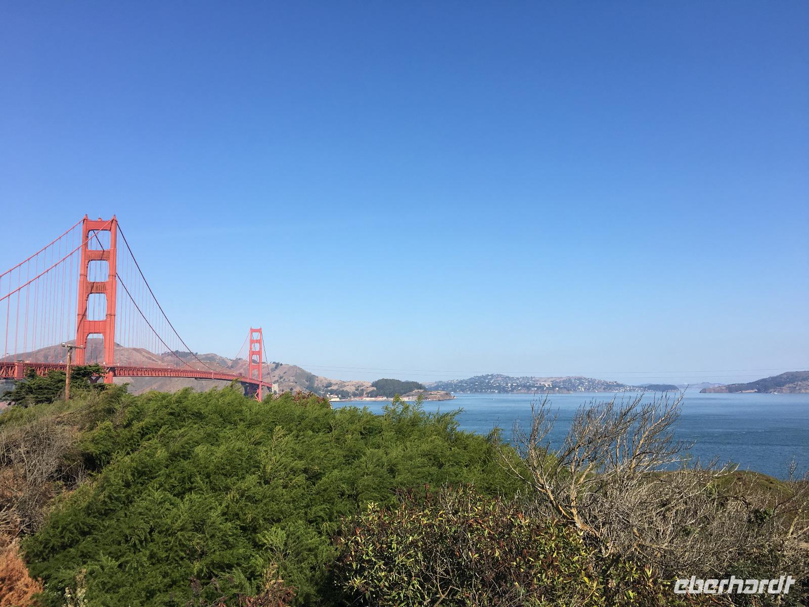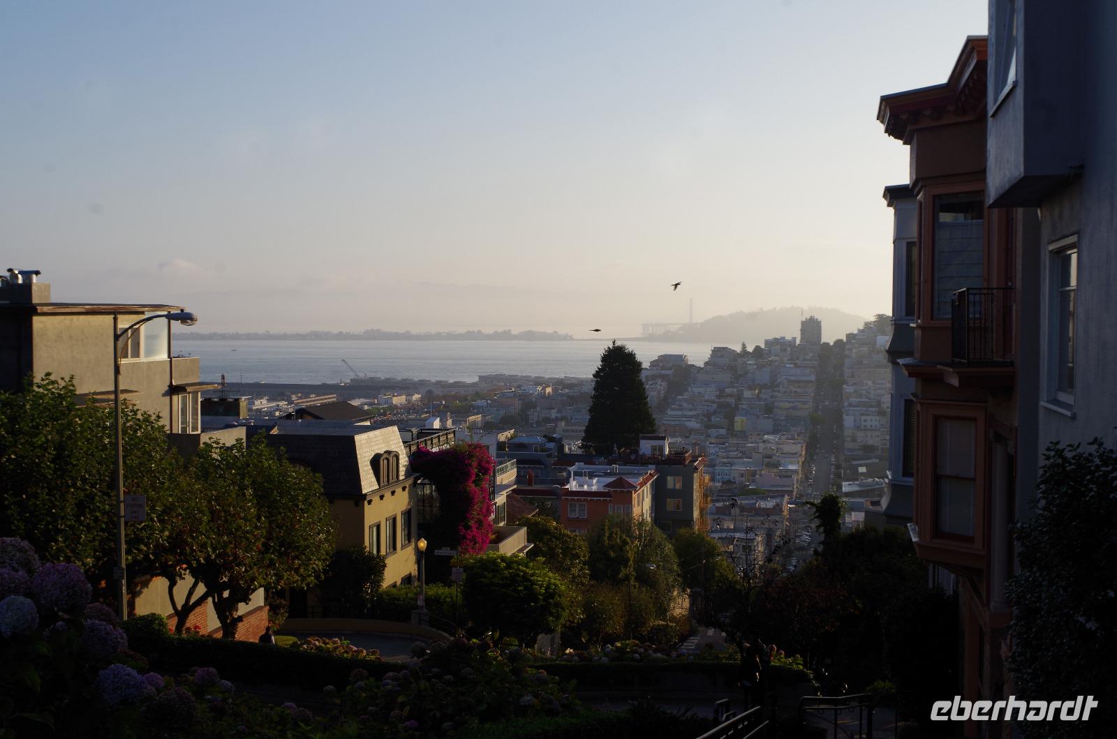 Ein weiterer sonniger Tag in San Francisco beginnt! Nach einem guten Frühstück treffen wir uns um 10.00 Uhr in der Hotellobby, um gemeinsam mit dem Taxi zur berühmten Lombard Street zu fahren. Hier legen wir einen kurzen Foto-Stopp ein. Die Lombard Street gilt als die "kurvigste" Einbahnstraße weltweit. Sie befindet sich an der Ecke Hyde Street nordwestlich des italienischen Viertels auf dem Russian Hill. Dieser kurze Straßenabschnitt hat bis 1922 den Titel "steilster Straßenabschnitt der Stadt" getragen, das Gefälle hat 27 Prozent betragen. Zur Zugangserleichterung sind acht Serpentinen errichtet worden. Besonders schön empfinden wir deren charakterliche Randverzierung mit wunderschönen verschiedenfarbigen Hortensien. Ein wirklich tolles Fotomotiv! Dann fahren wir im Taxi weiter zum 1974 errichteten Cable Car Museum, welches wir auch besichtigen. Es wird kein Eintritt im Museum verlangt. Im Souvenirladen schauen wir nach kleinen Präsenten für unsere lieben Daheimgebliebenen. Gegen 11.30 Uhr fahren wir erneut mit der Cable Car, dieses Mal aber die Powell-Hyde Line entlang mit Start am Cable Car Museum Richtung Fisherman's Wharf. Danach steigen wir in den öffentlichen Bus 28 und fahren zum Golden Gate Park. Das System hat uns gestern unsere örtliche Reiseleiterin Catharina zwar erläutert, aber es unterscheidet sich schon sehr vom deutschen System. Während wir in Deutschland unter anderem ein Ticket für Zentrum für rund eine Stunde kaufen, kostet ein Busticket in San Francisco für Erwachsene 2,75 USD und für Senioren (älter als 65 Jahre) 1,25 USD. Ein Ticket kann eine bis zu drei Stunden gültig sein, abhängig ist dies davon, wo der Busfahrer das Ticket "abreißt". Es empfiehlt sich daher, vorerst nur ein Busticket zu kaufen und gegebenenfalls für die Rückfahrt ein zweites Ticket zu besorgen. Wir sind aber auf Vorsicht gegangen, so dass wir gleich zwei Tickets pro Person gekauft haben, das zweite Ticket haben wir aber nicht benötigt. Gegen 12.30 Uhr besuchen wir den 4,1 Quadratkilometer großen Golden Gate Park. Im Museum "de Young" befindet sich der Hamon Observation Tower. Mit dem Fahrstuhl fahren wir zum spektakulären, von Glaswänden umgebenen Raum mit 360-Grad-Panoramablick, von wo aus wir einen tollen Blick über den ganzen Park, die Innenstadt sowie die Landzungen von Marin genießen können. Das "de Young"-Museum ist nach dem Zeitungsverleger M. H. de Young benannt wurden. Anschließend gönnen wir uns einen kleinen Mittagsimbiss im "de Young Café" und spazieren durch die rund fünf Kilometer lange und 800 Meter breite Parkanlage. Interessant ist vielleicht auch, dass der Park größer als der berühmte New Yorker Central Park ist. Gegen 14.00 Uhr fahren wir wieder mit dem öffentlichen Bus 28 zurück zum Fisherman's Wharf. Während einige Gäste mit dem Bus zwei Stationen weiter zum Pier 39 fahren, unternehmen die anderen Gäste einen Spaziergang zum Hotel zurück oder am Fisherman's Wharf entlang. Wir treffen uns um 16.00 Uhr wieder, um eine gemeinsame Bootstour zu unternehmen. Wir haben am Vormittag am Ausflugsschalter im Hotel die einstündige Tour San Francisco Bay Cruise Adventure mit Gold & Blue Fleet gebucht. Ein deutscher Audioguide ist zwar gegeben, aber nur über das eigene Smartphone abrufbar und aufgrund der Geräuschkulisse nur eingeschränkt anwendbar. Die Preise für die Bootsfahrt liegen zwischen 31 USD für Erwachsene und 25 USD für Senioren (ab 65 Jahre). Die Bootstour beginnt um 16.30 Uhr und wir fahren auch unter der berühmten Golden Gate Bridge hindurch. Anschließend genießt der Großteil der Gruppe ein leckeres Abendessen im "Bistro Boudin" in der Nähe vom Pier 39 am Fisherman's Wharf. Eine Reservierung haben wir noch vor unserer Bootstour vorgenommen. Zudem sind getrennte Rechnungen möglich ;-) Nach unserem Abendessen gönnen wir uns noch einen gemeinsamen Abschiedsdrink von San Francisco im uns bereits bekannten Restaurant "Cioppino's". Langsam freuen wir uns aber auch schon auf den morgigen Tag, wenn es endlich heißt "Aloha, Hawaii wir kommen!"