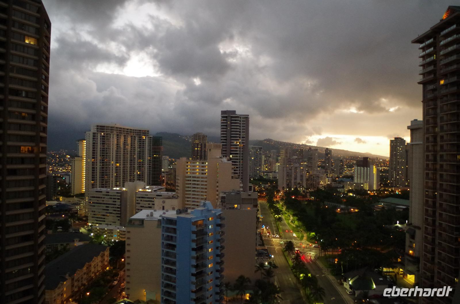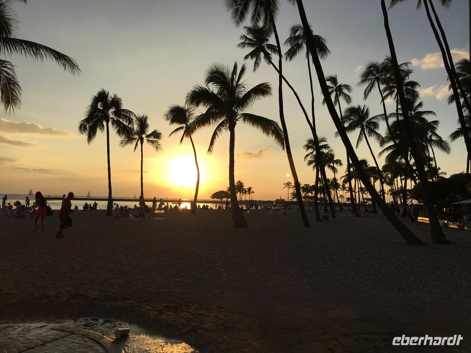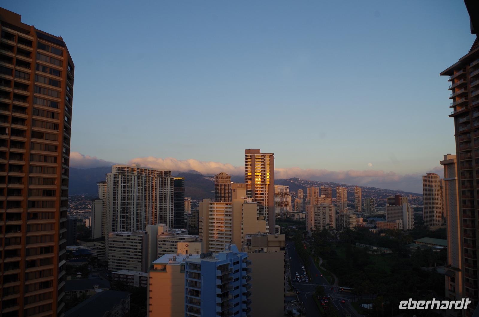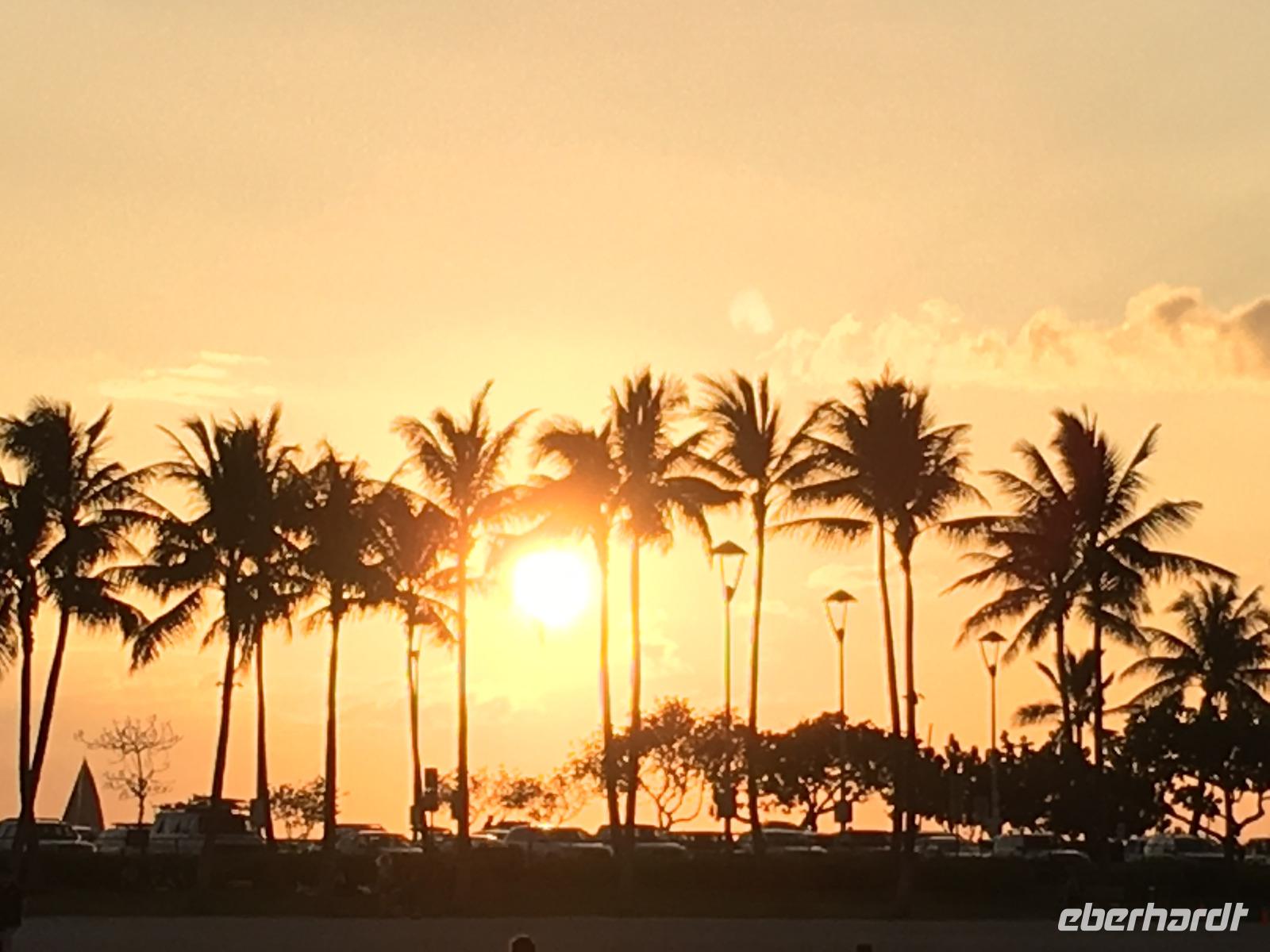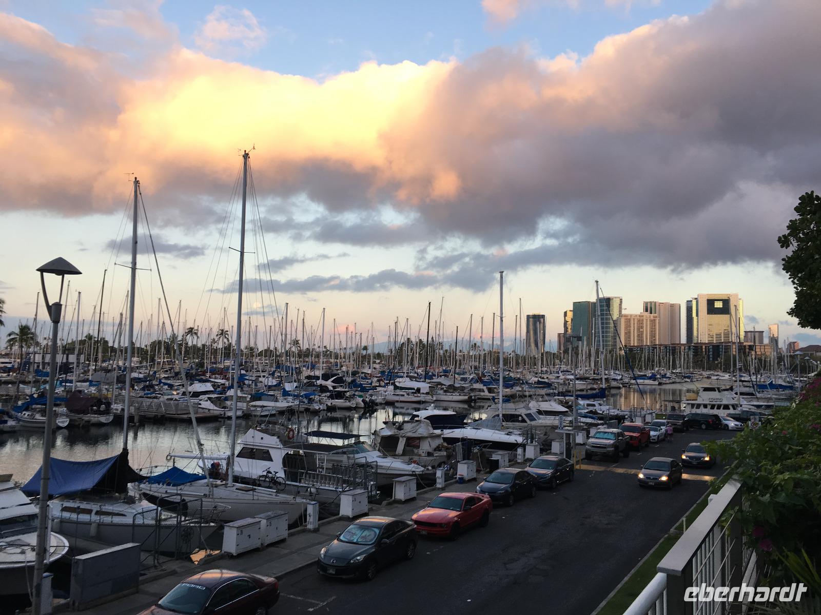 Während der Tag für die meisten Gäste ganz entspannt beim Frühstück im Hotel beginnt, laufen die Reisebegleitung und ein Reisegast abermals zur berühmten Lombard Street, welche sich im Grunde genommen rund zehn bis fünfzehn Gehminuten von unserem Hotel entfernt befindet. Gestern sind wir aber dennoch mit dem Taxi gefahren, da auch der Besuch des Cable Car Museums auf unserem individuell zusammengestellten Tagesplan gestanden hat. Gegen 09.00 Uhr haben wir ausreichend gefrühstückt und unsere Koffer sind gepackt, der Check-Out funktioniert einwandfrei. Unser Bus steht schon bereit und wir fahren um 09.45 Uhr vom Hotel zum nationalen Flughafen San Francisco. Rund 45 Minuten später erreichen wir den Flughafen und laufen gemeinsam zum United Schalter, wo wir von Eberhardt TRAVEL bereits online eingecheckt wurden sind. Unglücklicherweise sitzen einige Paare auseinander, eine Änderung der Sitzplätze ist erst an Bord möglich. Bei der Sicherheitskontrolle gibt es zwei Eingänge, nach einer kurzen Verwirrung nehmen wir als Gruppe den zweiten Eingang. Die Schuhe sind auszuziehen und werden durchleuchtet. Ansonsten verläuft die Sicherheitskontrolle problemlos. Wir laufen gemeinsam den relativ langen Weg zum Gate 86 entlang. Am Gate verspeisen wir unser vom Frühstück mitgebrachtes Obst, erkunden den Flughafen oder schauen im Souvenirladen vorbei. Ebenso ist kostenfreies WLAN am Flughafen vorhanden. Um 12.40 Uhr beginnt das Boarding zum Flug von San Francisco nach Honolulu auf O'ahu mit United UA300. Die Passagiere sind in fünf Gruppen eingeteilt, wir sind in der Gruppe vier. Wir fliegen pünktlich um 13.20 Uhr von San Francisco nach Honolulu, wo wir überpünktlich um 15.15 Uhr, also rund 30 Minuten früher als geplant, ankommen. Zu unserer bisherigen Zeitverschiebung von 6 Stunden kommen jetzt noch weitere 5 Stunden dazu. Während es bei uns 15.15 Uhr ist, schlafen unsere geliebten Daheimgebliebenen höchstwahrscheinlich schon, da es in Deutschland bereits nachts um 02.15 Uhr ist! Die Zeitverschiebung macht uns aber nichts aus ;-) Wir nehmen unsere Koffer entgegen und laufen zum Busparkplatz. Ein Guide steht uns heute zwar nicht zur Verfügung, aber die Reisebegleitung steht bei Fragen der Gäste beim Check-in im Hotel zur Verfügung. Um 16.00 Uhr fahren wir vom Flughafen zum 3-Sterne-Hotel "Ilikai Hotel & Luxury Suites", welches wir rund 30 Minuten später erreichen. Der Check-In nimmt zwar fast eine Stunde Zeit in Anspruch, aber alle Unklarheiten können erfolgreich geklärt werden. Wir beziehen unsere Zimmer und entspannen unter anderem auf dem Balkon. Um 18.00 Uhr treffen wir uns in der Hotellobby, um gemeinsam Abendessen zu gehen. Nach einem kurzen Spaziergang und der Besprechung der verschiedenen Essensrichtungen der Gäste entscheiden wir uns für "Snapper's Sports Bar & Grill" direkt gegenüber unseres Hotels an der Straße. Sowohl beim Essen als auch bei der Atmosphäre gibt es geteilte Meinungen, durch eine live spielende Musikgruppe ist es sehr laut in der Sports Bar & Grill. Dennoch werden wir alle satt und laufen mit gut gefülltem Magen zum Hotel auf der anderen Straßenseite zurück. Wir wünschen eine gute Nacht.