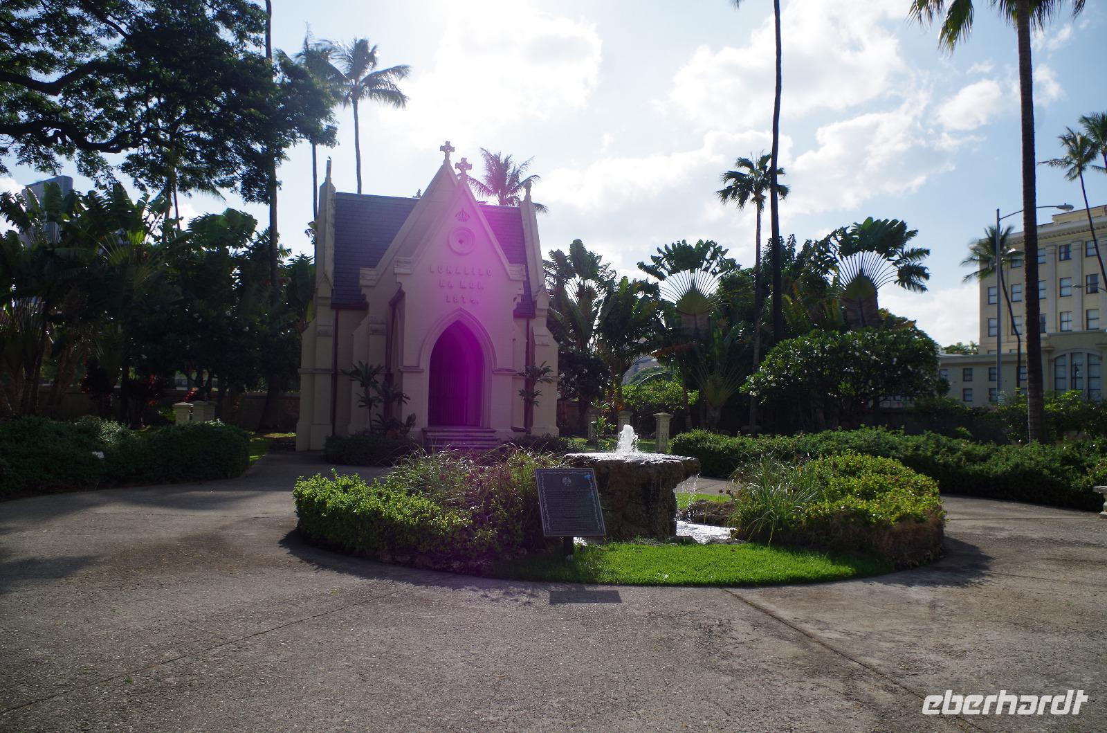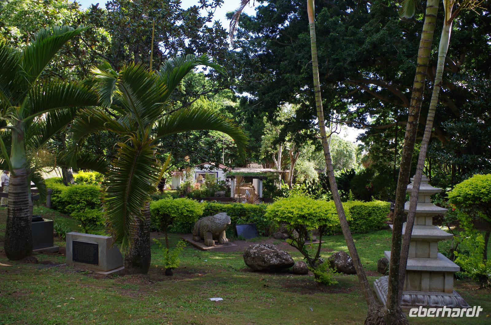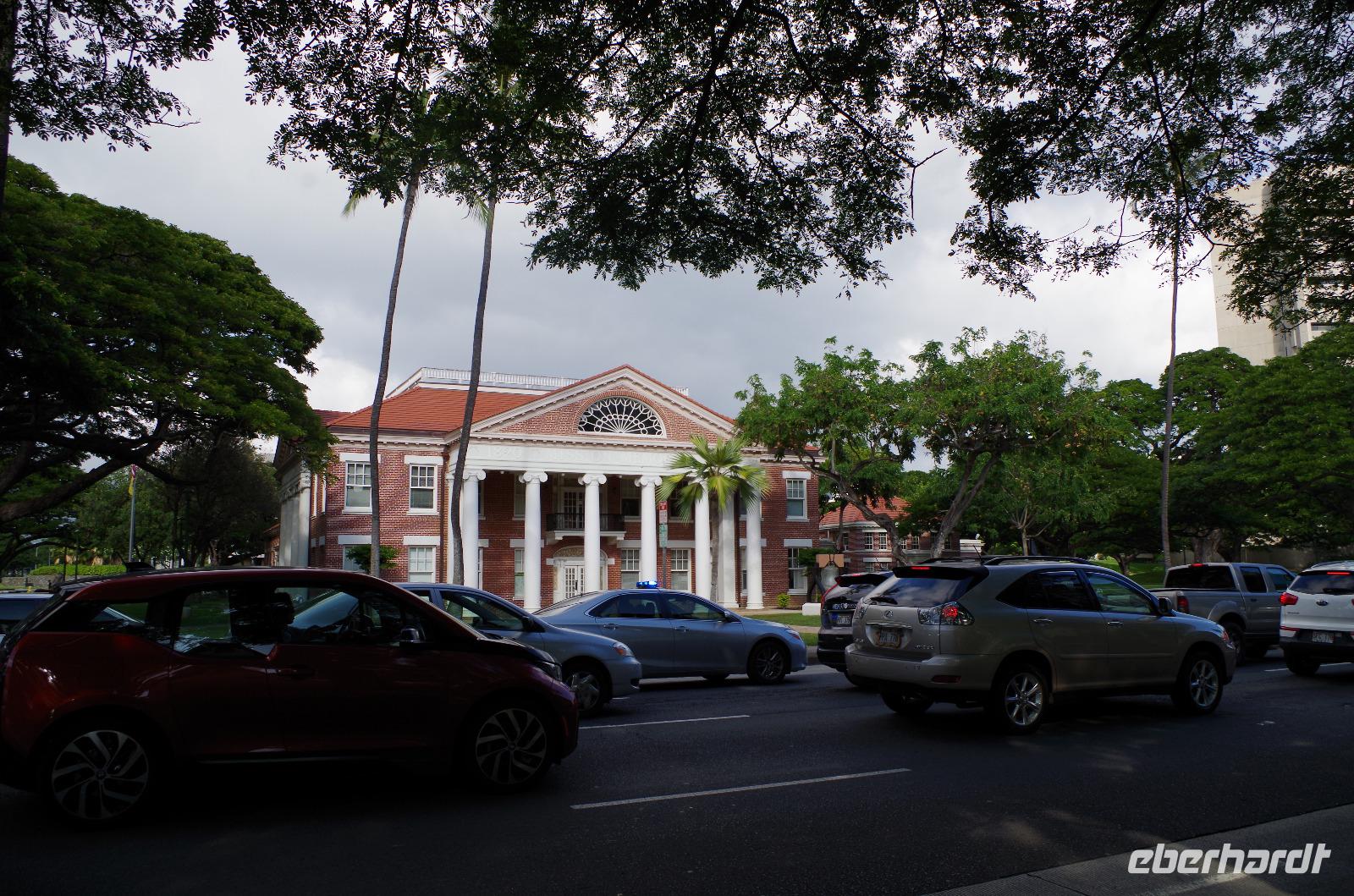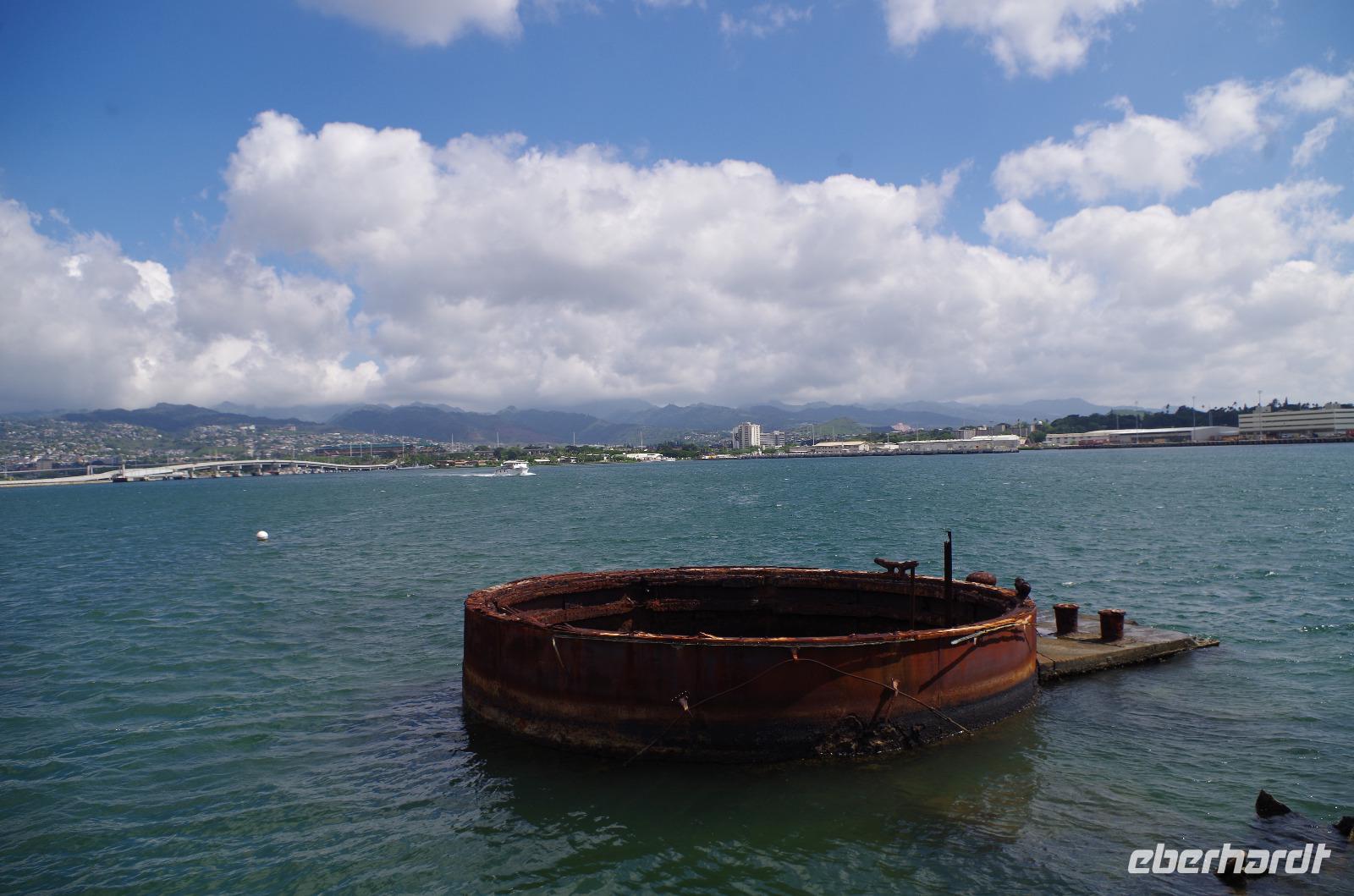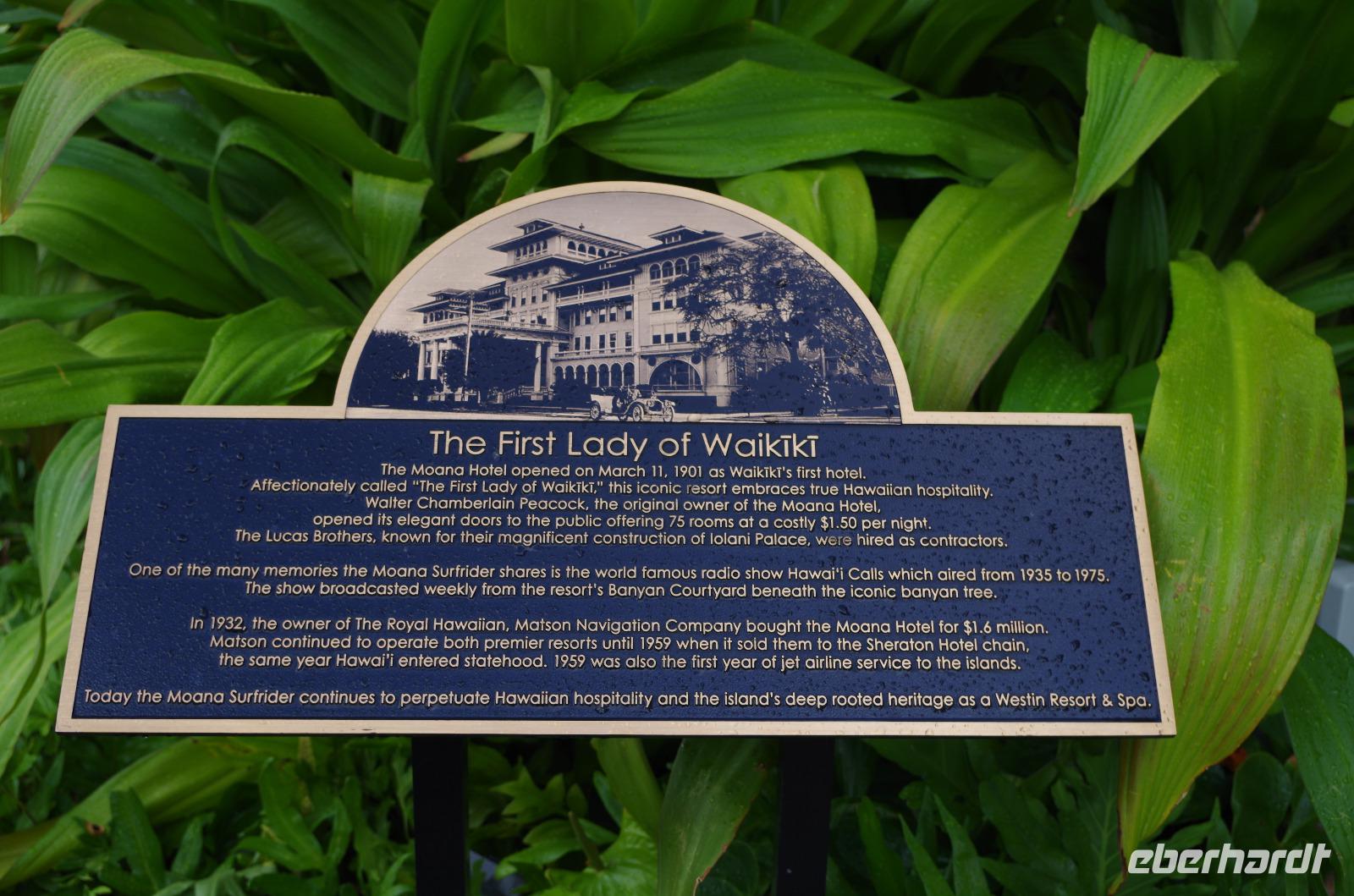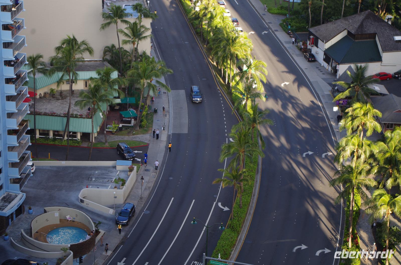 In unserer ersten Nacht auf O'ahu haben wir sehr gut geschlafen und eigentlich steht einem sonnigen und schönen Tag nichts im Weg. Dabei liegt aber die Betonung auf dem Wort 'eigentlich'. Unser Frühstück ist um 07.30 Uhr im Restaurant "Cinnamon's at the 'Ilikai" reserviert. Jedoch gibt es anfangs noch ein kleines Problem bei der Rechnung sowie bei der Essensauswahl. Das Restaurant befindet sich zwar im Hotelgebäudekomplex, es gehört aber nicht zum Hotel dazu. Die Unklarheit können wir aber schnell klären. Wir haben kein Buffet an diesem Morgen, sondern wir werden bedient. Wir können wählen zwischen Toast oder Pancakes, Rührei oder Spiegelei, gebratenem Schinken oder leckerer süßer Ananas. Es werden uns auch verschiedene Marmeladen, Honig und Butter sowie Kaffee oder Tee gereicht. Bei Bedarf können wir "Nachschub" ordern. Bevor wir uns um 08.30 Uhr zur Stadtrundfahrt in der Hotellobby treffen, befindet sich bei den Aufzügen ein wichtige Tagesinformation. Der Präsident der Vereinigten Staaten, Donald Trump, wird auf seiner Asien-Reise heute und morgen einen Zwischenstopp in Honolulu einlegen und Pearl Harbour besuchen. Für uns ist dieser Besuch eher ungünstig, da dadurch auch Straßensperrungen in Honolulu vorgesehen sind und wir uns vorsichtshalber eher als geplant nach Pearl Harbour begeben werden, unsere eigentliche Tour ist für 13.00 Uhr geplant. Dann schauen wir mal, ob wir Donald Trump auch persönlich sehen werden ;-) An diesem sonnigen Tag steht eine Stadtrundfahrt durch Honolulu und die Besichtigung von Pearl Harbour auf unserem Plan, beides 'eigentlich' mit deutschsprachiger Reiseleitung! Hier fällt also schon das erste 'eigentlich' an diesem Tag! Es wird leider auch nicht das letzte Mal sein, dass dieses Wort am heutigem Tag fällt :-( Statt eines deutschsprachigen Reiseleiters haben wir heute einen englischsprechenden "Driverguide", also einen Busfahrer, welcher auch als Guide tätig ist. Unser Busfahrer Ron ist wirklich super, auch wenn er nicht wirklich ein Reiseleiter ist. Dennoch versucht er auf unsere Wünsche einzugehen und auch die Stadtrundfahrt daran anzupassen. Die Fragen zu den verschiedensten Themen der Gäste werden durch die Reisebegleitung übersetzt, unser englischsprachiger Busfahrer versucht diese so gut es ihm möglich ist zu beantworten. Es ist natürlich sehr schade, dass unser heutiger Tag nicht wie geplant verläuft, aber Eberhardt und die Reisebegleitung versprechen, einen deutschsprachigen Reiseleiter für den Abreisetag zu organisieren, an welchem Tag wir wirklich lediglich einen englischsprachigen "Driverguide" gehabt hätten. Das Versprechen wird natürlich auch eingehalten ;o) Dank unseres netten örtlichen Reiseleiters am Abreisetag werden wir noch einen gelungenen Abschied von Honolulu haben, dazu aber später mehr! Um 09.00 Uhr beginnt unsere Stadtrundfahrt. Da die Insel O'ahu oftmals als Versammlungsort genutzt wird, besitzt sie den Beinnamen "The Gathering Place". Seit 1850 ist Honolulu die hawaiianische Hauptstadt. In Honolulu, was mit "Zuflucht oder geschützte Bucht" übersetzt werden kann, leben fast eine Million Menschen. Wir fahren zum Hawaii Capital Historic District und besichtigen Ali'iolani Hale und den Iolani Palace an der South King Street. Im Ali'iolani Hale befindet sich der Oberste Gerichtshof von Hawaii. Davor steht die wohl bekannteste Statue des Königs Kamehameha I., welcher 1810 die Inseln Hawaiis zu einem Königreich vereinigt hatte und als großer Führer, Krieger und Diplomat galt. Der sich direkt gegenüber befindende Iolani Palace ist die ehemalige königliche Residenz. Seit 1978 ist der Iolani Palace ein historisches Museum und für die Öffentlichkeit zugänglich. Im Jahre 1966 wurde die Organisation "The Friends of Iolani Palace" von Lili'uokalani Kawananakoa Morris, eine Großnichte der Königin Kapiolani, ins Leben gerufen. Diese Organisation kümmert sich um den Erhalt, die Restaurierung und die Bekanntgabe der Geschichte des Palastes sowie übernimmt sie die Verwaltung des Gebäudes und auch die Veranstaltung abwechslungsreicher Aktivitäten im und um den Palast herum. Es werden zudem eine Audiotour oder geführte Besichtigungstouren im Palast von Dienstag bis Samstag angeboten. Anschließend fahren wir am berühmten Strand "Waikiki Beach" entlang. Waikiki besteht aus zwei Hauptstraßen. Einerseits ist dies die Kalakaua Avenue mit den luxuriösen Designer-Geschäften und andererseits die Kuhio Avenue mit vielen Cafés, Restaurants und Nachtclubs. Nächster Programmpunkt ist der Punchbowl Crater, wo wir allerdings nur aus dem Bus heraus fotografieren dürfen. Es ist nicht erlaubt, an diesem historischen Denkmal anzuhalten oder auszusteigen. Also fährt uns Ron so langsam wie möglich an der mit fast sieben Millionen Besuchern im Jahr meistbesuchten Touristenattraktion auf O'ahu vorbei. Der Krater ist ein erloschener Vulkan mit hawaiianischen Namen Puowaina, was in Bezug auf die Menschenopfer mit "Hügel des Ablegens" übersetzt werden kann. Der größte hawaiianische Soldatenfriedhof mit fast 37.000 beerdigten amerikanischen Soldaten, das National Memorial of the Pacific, befindet sich inmitten des erloschenen Kraters. Danach fahren wir weiter Richtung Pearl Harbour. An dieser Stelle sei zu erwähnen, dass wir uns in Pearl Harbour auf einem Marinestützpunkt bewegen und es daher strenge Sicherheitsvorschriften gibt. Wir dürfen keine Taschen und Rucksäcke mitnehmen sowie keine Fototasche oder auch größere Gürteltasche. Bestenfalls werden nur die Geldbörse, das Mobilfunkgerät und die Kamera mitgenommen. Die anderen Sachen können wir im Bus liegenlassen, unser Busfahrer bleibt die komplette Zeit unseres Besuches im Bus. Es gibt aber auch die Möglichkeit, die Sachen für 4 USD je Tasche oder Rucksack beim Sicherheitspersonal abzugeben. Schließfächer gibt es keine. Wie bereits erwähnt sollte unsere Tour erst 13.00 Uhr starten, was aber erst in eineinhalb Stunden wäre. Aber dank unseres t