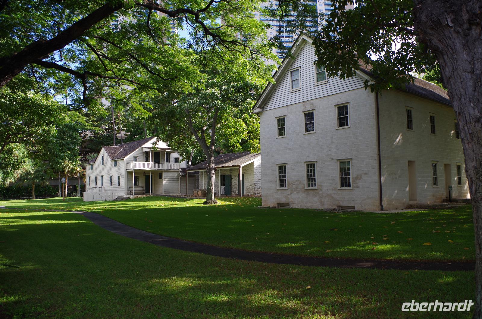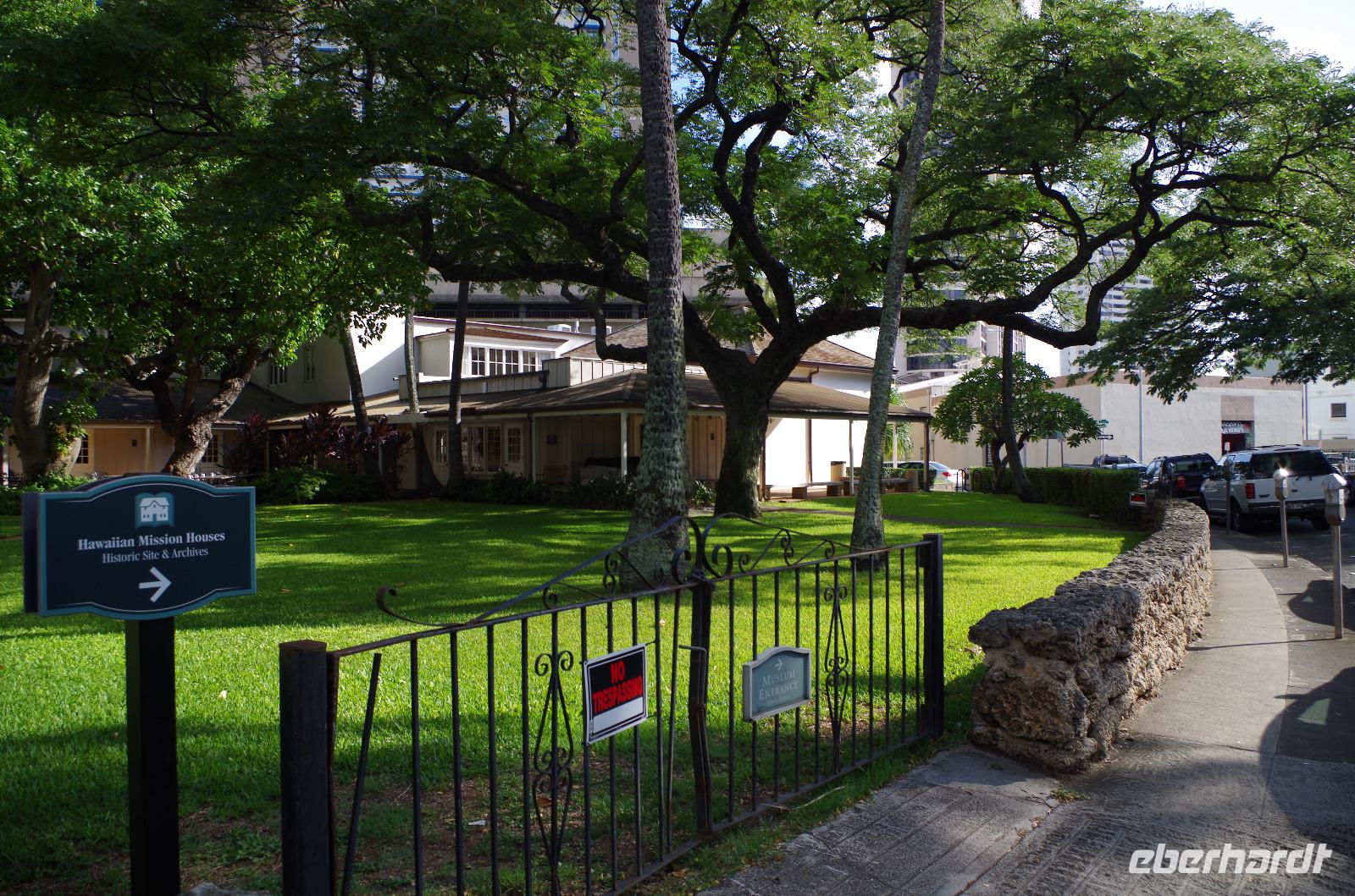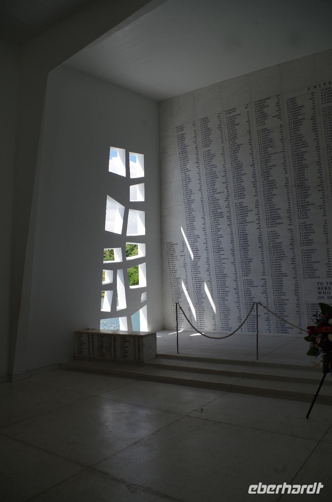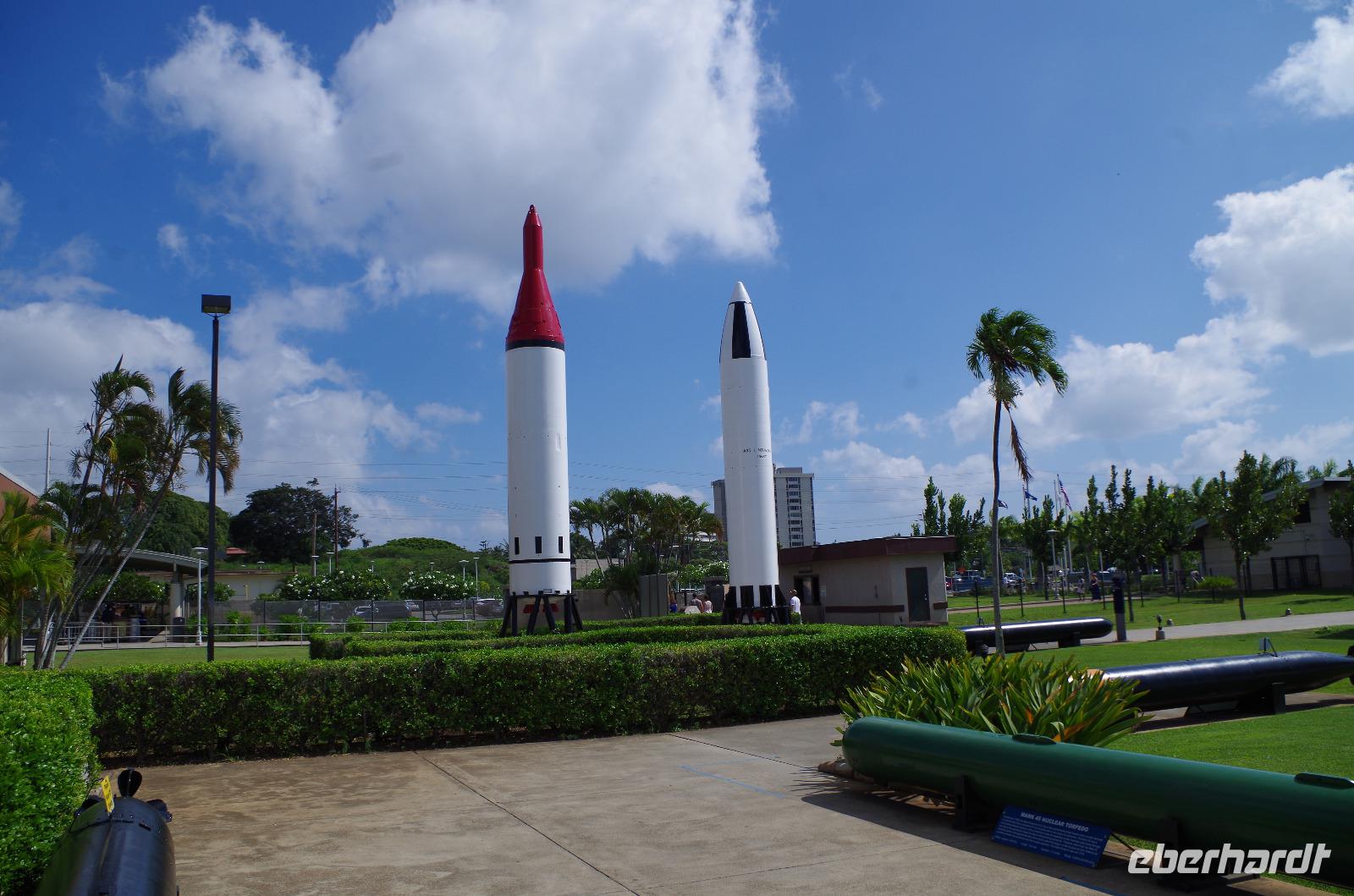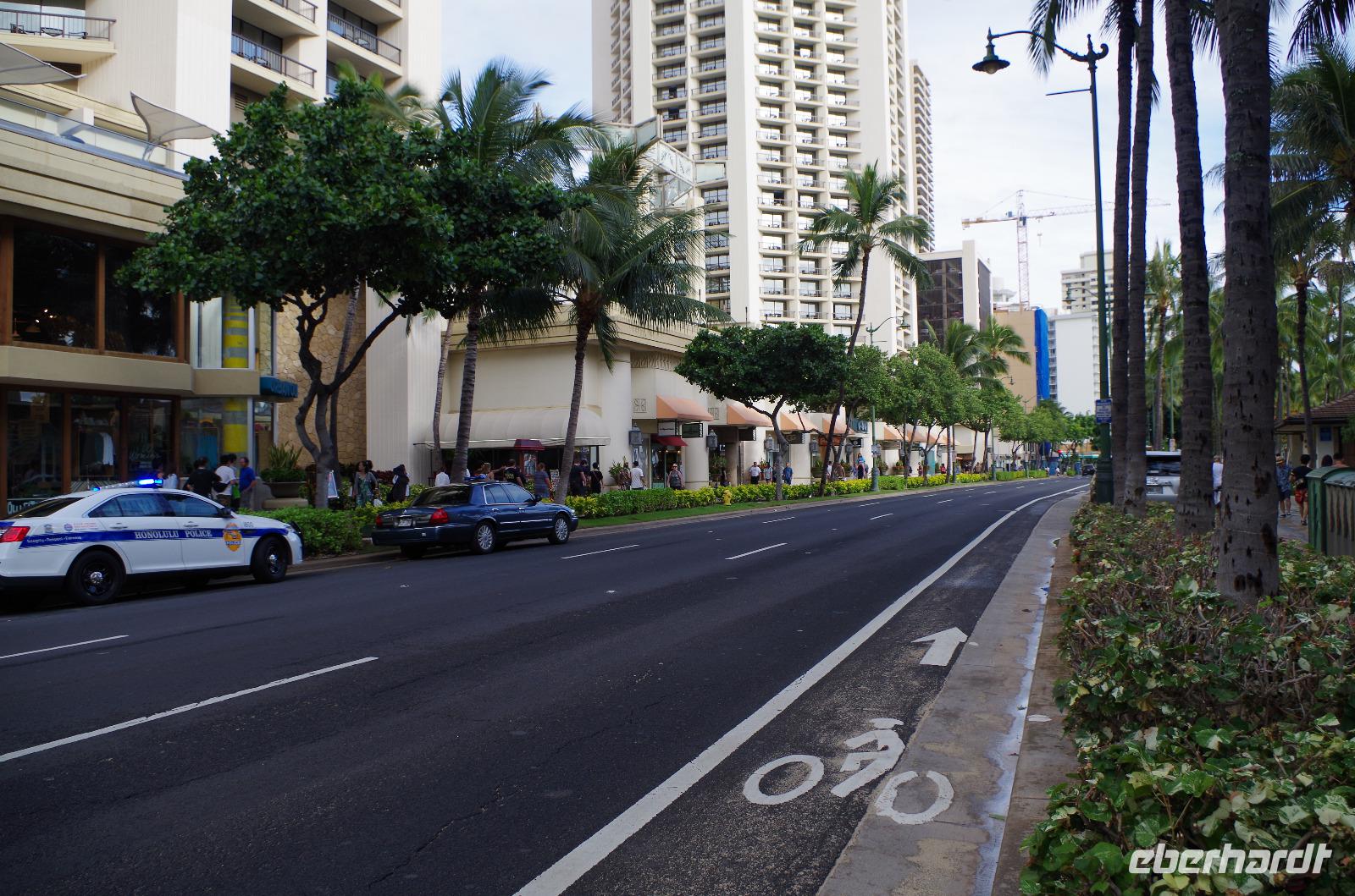In unserer ersten Nacht auf O'ahu haben wir sehr gut geschlafen und eigentlich steht einem sonnigen und schönen Tag nichts im Weg. Dabei liegt aber die Betonung auf dem Wort 'eigentlich'. Unser Frühstück ist um 07.30 Uhr im Restaurant "Cinnamon's at the 'Ilikai" reserviert. Jedoch gibt es anfangs noch ein kleines Problem bei der Rechnung sowie bei der Essensauswahl. Das Restaurant befindet sich zwar im Hotelgebäudekomplex, es gehört aber nicht zum Hotel dazu. Die Unklarheit können wir aber schnell klären. Wir haben kein Buffet an diesem Morgen, sondern wir werden bedient. Wir können wählen zwischen Toast oder Pancakes, Rührei oder Spiegelei, gebratenem Schinken oder leckerer süßer Ananas. Es werden uns auch verschiedene Marmeladen, Honig und Butter sowie Kaffee oder Tee gereicht. Bei Bedarf können wir "Nachschub" ordern. Bevor wir uns um 08.30 Uhr zur Stadtrundfahrt in der Hotellobby treffen, befindet sich bei den Aufzügen ein wichtige Tagesinformation. Der Präsident der Vereinigten Staaten, Donald Trump, wird auf seiner Asien-Reise heute und morgen einen Zwischenstopp in Honolulu einlegen und Pearl Harbour besuchen. Für uns ist dieser Besuch eher ungünstig, da dadurch auch Straßensperrungen in Honolulu vorgesehen sind und wir uns vorsichtshalber eher als geplant nach Pearl Harbour begeben werden, unsere eigentliche Tour ist für 13.00 Uhr geplant. Dann schauen wir mal, ob wir Donald Trump auch persönlich sehen werden ;-) An diesem sonnigen Tag steht eine Stadtrundfahrt durch Honolulu und die Besichtigung von Pearl Harbour auf unserem Plan, beides 'eigentlich' mit deutschsprachiger Reiseleitung! Hier fällt also schon das erste 'eigentlich' an diesem Tag! Es wird leider auch nicht das letzte Mal sein, dass dieses Wort am heutigem Tag fällt :-( Statt eines deutschsprachigen Reiseleiters haben wir heute einen englischsprechenden "Driverguide", also einen Busfahrer, welcher auch als Guide tätig ist. Unser Busfahrer Ron ist wirklich super, auch wenn er nicht wirklich ein Reiseleiter ist. Dennoch versucht er auf unsere Wünsche einzugehen und auch die Stadtrundfahrt daran anzupassen. Die Fragen zu den verschiedensten Themen der Gäste werden durch die Reisebegleitung übersetzt, unser englischsprachiger Busfahrer versucht diese so gut es ihm möglich ist zu beantworten. Es ist natürlich sehr schade, dass unser heutiger Tag nicht wie geplant verläuft, aber Eberhardt und die Reisebegleitung versprechen, einen deutschsprachigen Reiseleiter für den Abreisetag zu organisieren, an welchem Tag wir wirklich lediglich einen englischsprachigen "Driverguide" gehabt hätten. Das Versprechen wird natürlich auch eingehalten ;o) Dank unseres netten örtlichen Reiseleiters am Abreisetag werden wir noch einen gelungenen Abschied von Honolulu haben, dazu aber später mehr! Um 09.00 Uhr beginnt unsere Stadtrundfahrt. Da die Insel O'ahu oftmals als Versammlungsort genutzt wird, besitzt sie den Beinnamen "The Gathering Place". Seit 1850 ist Honolulu die hawaiianische Hauptstadt. In Honolulu, was mit "Zuflucht oder geschützte Bucht" übersetzt werden kann, leben fast eine Million Menschen. Wir fahren zum Hawaii Capital Historic District und besichtigen Ali'iolani Hale und den Iolani Palace an der South King Street. Im Ali'iolani Hale befindet sich der Oberste Gerichtshof von Hawaii. Davor steht die wohl bekannteste Statue des Königs Kamehameha I., welcher 1810 die Inseln Hawaiis zu einem Königreich vereinigt hatte und als großer Führer, Krieger und Diplomat galt. Der sich direkt gegenüber befindende Iolani Palace ist die ehemalige königliche Residenz. Seit 1978 ist der Iolani Palace ein historisches Museum und für die Öffentlichkeit zugänglich. Im Jahre 1966 wurde die Organisation "The Friends of Iolani Palace" von Lili'uokalani Kawananakoa Morris, eine Großnichte der Königin Kapiolani, ins Leben gerufen. Diese Organisation kümmert sich um den Erhalt, die Restaurierung und die Bekanntgabe der Geschichte des Palastes sowie übernimmt sie die Verwaltung des Gebäudes und auch die Veranstaltung abwechslungsreicher Aktivitäten im und um den Palast herum. Es werden zudem eine Audiotour oder geführte Besichtigungstouren im Palast von Dienstag bis Samstag angeboten. Anschließend fahren wir am berühmten Strand "Waikiki Beach" entlang. Waikiki besteht aus zwei Hauptstraßen. Einerseits ist dies die Kalakaua Avenue mit den luxuriösen Designer-Geschäften und andererseits die Kuhio Avenue mit vielen Cafés, Restaurants und Nachtclubs. Nächster Programmpunkt ist der Punchbowl Crater, wo wir allerdings nur aus dem Bus heraus fotografieren dürfen. Es ist nicht erlaubt, an diesem historischen Denkmal anzuhalten oder auszusteigen. Also fährt uns Ron so langsam wie möglich an der mit fast sieben Millionen Besuchern im Jahr meistbesuchten Touristenattraktion auf O'ahu vorbei. Der Krater ist ein erloschener Vulkan mit hawaiianischen Namen Puowaina, was in Bezug auf die Menschenopfer mit "Hügel des Ablegens" übersetzt werden kann. Der größte hawaiianische Soldatenfriedhof mit fast 37.000 beerdigten amerikanischen Soldaten, das National Memorial of the Pacific, befindet sich inmitten des erloschenen Kraters. Danach fahren wir weiter Richtung Pearl Harbour. An dieser Stelle sei zu erwähnen, dass wir uns in Pearl Harbour auf einem Marinestützpunkt bewegen und es daher strenge Sicherheitsvorschriften gibt. Wir dürfen keine Taschen und Rucksäcke mitnehmen sowie keine Fototasche oder auch größere Gürteltasche. Bestenfalls werden nur die Geldbörse, das Mobilfunkgerät und die Kamera mitgenommen. Die anderen Sachen können wir im Bus liegenlassen, unser Busfahrer bleibt die komplette Zeit unseres Besuches im Bus. Es gibt aber auch die Möglichkeit, die Sachen für 4 USD je Tasche oder Rucksack beim Sicherheitspersonal abzugeben. Schließfächer gibt es keine. Wie bereits erwähnt sollte unsere Tour erst 13.00 Uhr starten, was aber erst in eineinhalb Stunden wäre. Aber dank unseres t