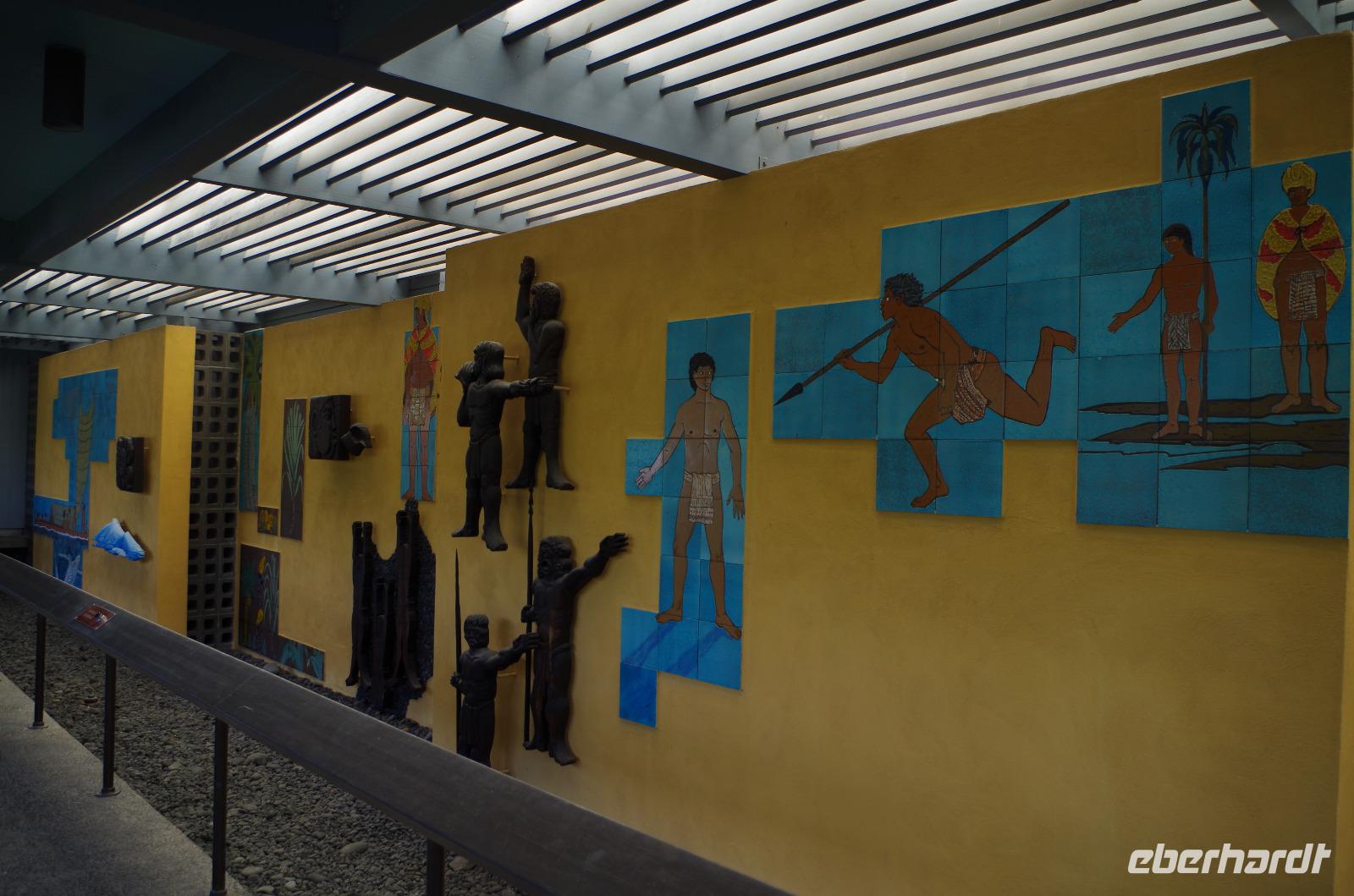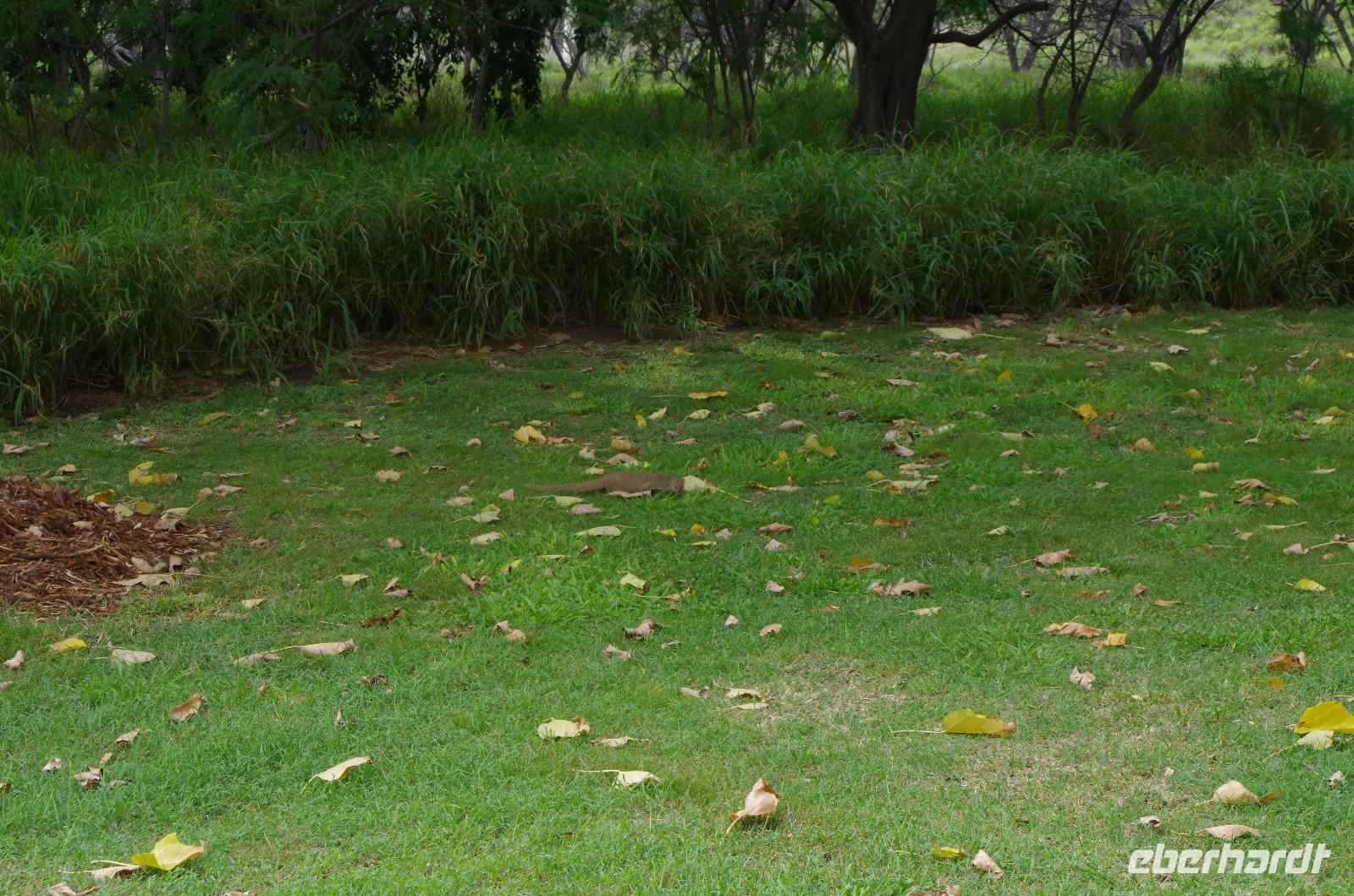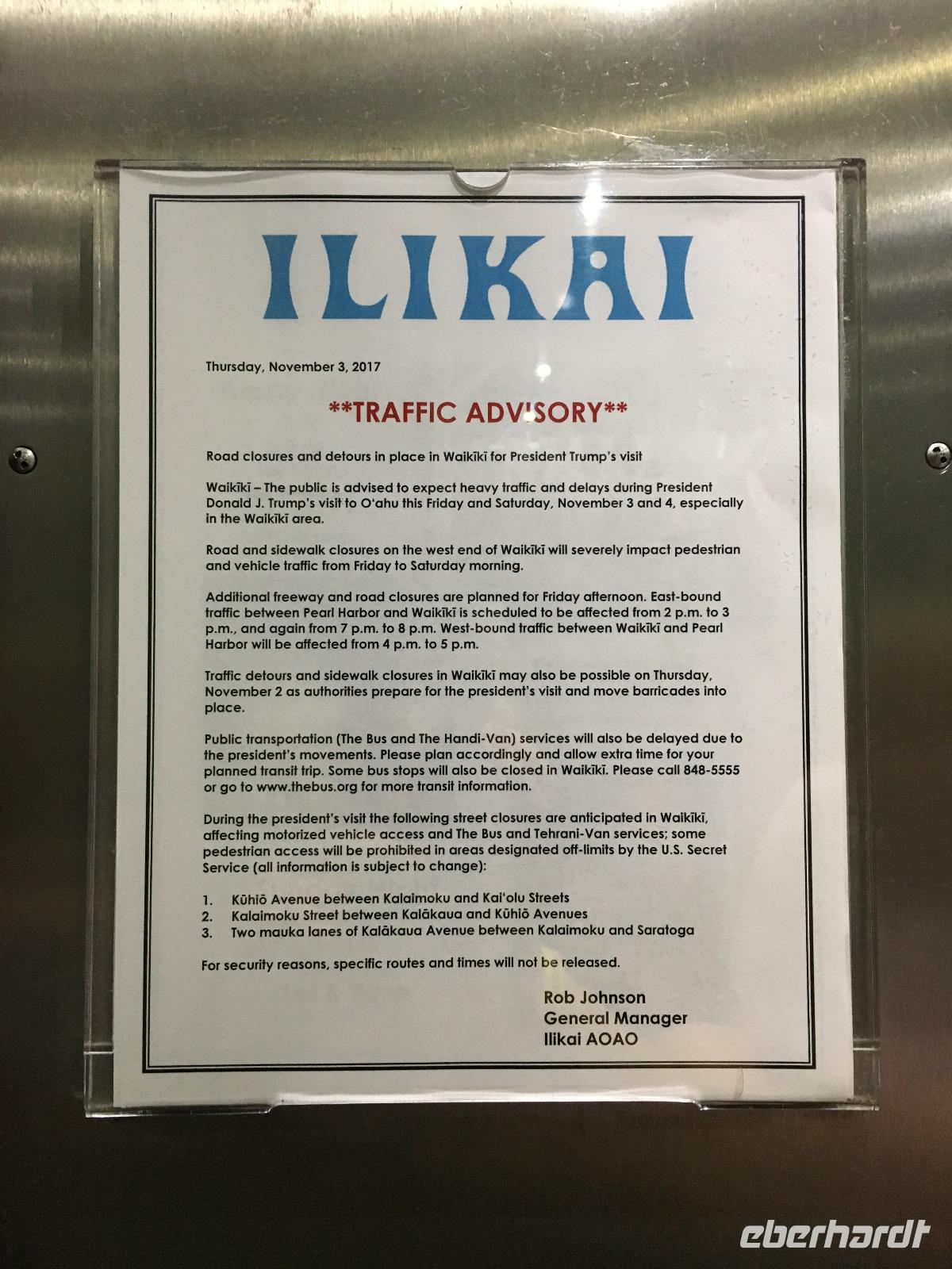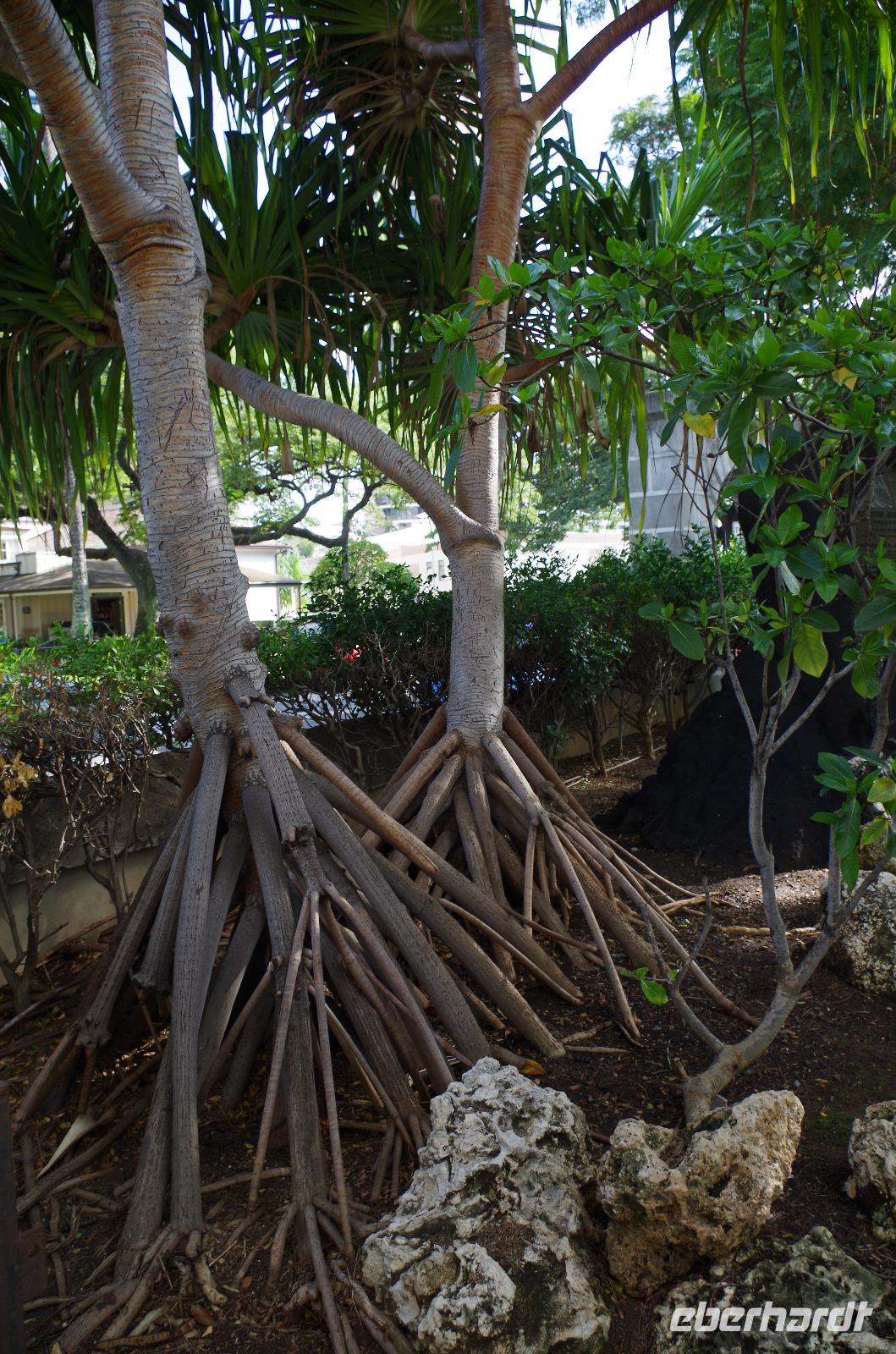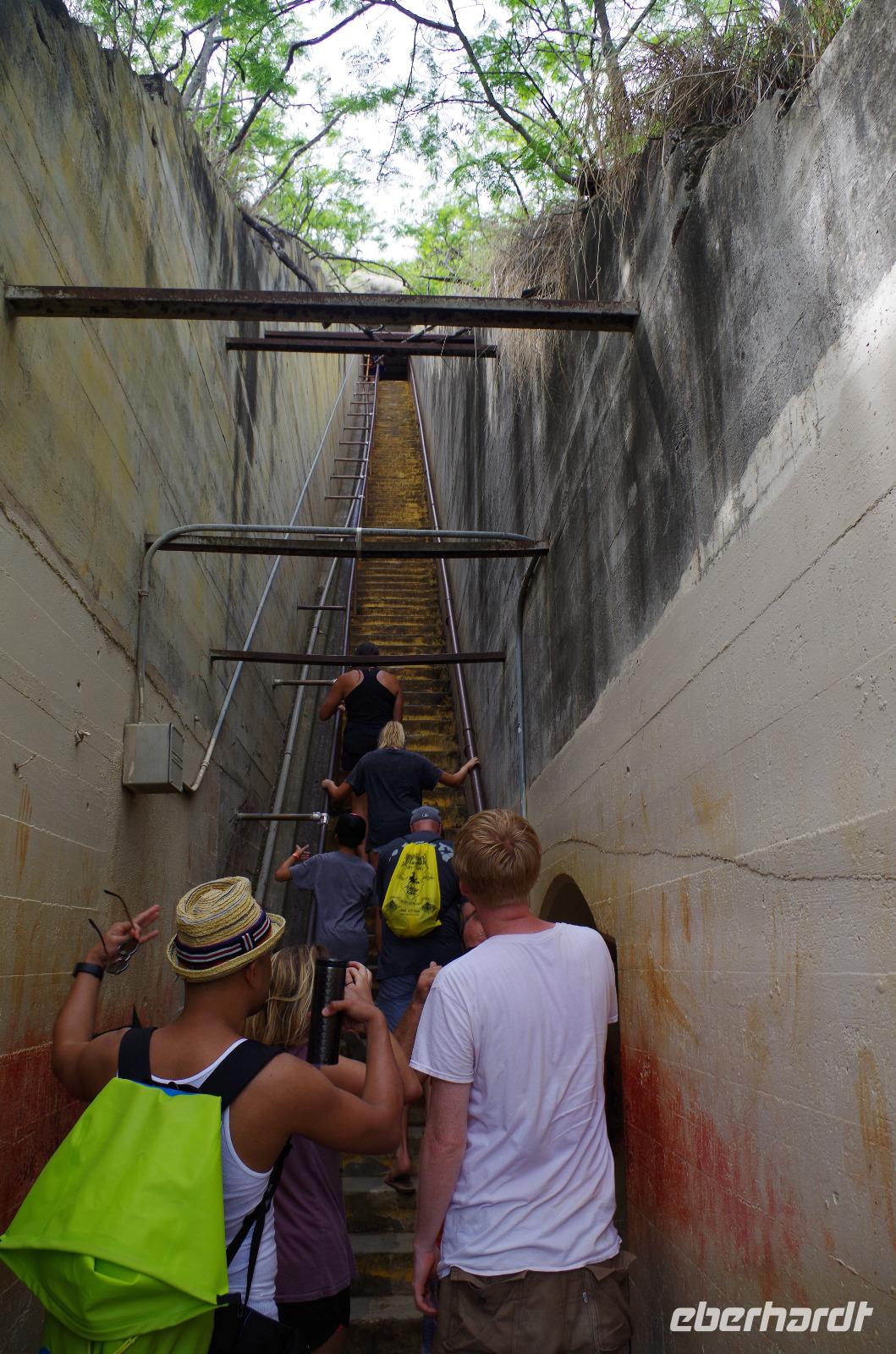 In unserer ersten Nacht auf O'ahu haben wir sehr gut geschlafen und eigentlich steht einem sonnigen und schönen Tag nichts im Weg. Dabei liegt aber die Betonung auf dem Wort 'eigentlich'. Unser Frühstück ist um 07.30 Uhr im Restaurant "Cinnamon's at the 'Ilikai" reserviert. Jedoch gibt es anfangs noch ein kleines Problem bei der Rechnung sowie bei der Essensauswahl. Das Restaurant befindet sich zwar im Hotelgebäudekomplex, es gehört aber nicht zum Hotel dazu. Die Unklarheit können wir aber schnell klären. Wir haben kein Buffet an diesem Morgen, sondern wir werden bedient. Wir können wählen zwischen Toast oder Pancakes, Rührei oder Spiegelei, gebratenem Schinken oder leckerer süßer Ananas. Es werden uns auch verschiedene Marmeladen, Honig und Butter sowie Kaffee oder Tee gereicht. Bei Bedarf können wir "Nachschub" ordern. Bevor wir uns um 08.30 Uhr zur Stadtrundfahrt in der Hotellobby treffen, befindet sich bei den Aufzügen ein wichtige Tagesinformation. Der Präsident der Vereinigten Staaten, Donald Trump, wird auf seiner Asien-Reise heute und morgen einen Zwischenstopp in Honolulu einlegen und Pearl Harbour besuchen. Für uns ist dieser Besuch eher ungünstig, da dadurch auch Straßensperrungen in Honolulu vorgesehen sind und wir uns vorsichtshalber eher als geplant nach Pearl Harbour begeben werden, unsere eigentliche Tour ist für 13.00 Uhr geplant. Dann schauen wir mal, ob wir Donald Trump auch persönlich sehen werden ;-) An diesem sonnigen Tag steht eine Stadtrundfahrt durch Honolulu und die Besichtigung von Pearl Harbour auf unserem Plan, beides 'eigentlich' mit deutschsprachiger Reiseleitung! Hier fällt also schon das erste 'eigentlich' an diesem Tag! Es wird leider auch nicht das letzte Mal sein, dass dieses Wort am heutigem Tag fällt :-( Statt eines deutschsprachigen Reiseleiters haben wir heute einen englischsprechenden "Driverguide", also einen Busfahrer, welcher auch als Guide tätig ist. Unser Busfahrer Ron ist wirklich super, auch wenn er nicht wirklich ein Reiseleiter ist. Dennoch versucht er auf unsere Wünsche einzugehen und auch die Stadtrundfahrt daran anzupassen. Die Fragen zu den verschiedensten Themen der Gäste werden durch die Reisebegleitung übersetzt, unser englischsprachiger Busfahrer versucht diese so gut es ihm möglich ist zu beantworten. Es ist natürlich sehr schade, dass unser heutiger Tag nicht wie geplant verläuft, aber Eberhardt und die Reisebegleitung versprechen, einen deutschsprachigen Reiseleiter für den Abreisetag zu organisieren, an welchem Tag wir wirklich lediglich einen englischsprachigen "Driverguide" gehabt hätten. Das Versprechen wird natürlich auch eingehalten ;o) Dank unseres netten örtlichen Reiseleiters am Abreisetag werden wir noch einen gelungenen Abschied von Honolulu haben, dazu aber später mehr! Um 09.00 Uhr beginnt unsere Stadtrundfahrt. Da die Insel O'ahu oftmals als Versammlungsort genutzt wird, besitzt sie den Beinnamen "The Gathering Place". Seit 1850 ist Honolulu die hawaiianische Hauptstadt. In Honolulu, was mit "Zuflucht oder geschützte Bucht" übersetzt werden kann, leben fast eine Million Menschen. Wir fahren zum Hawaii Capital Historic District und besichtigen Ali'iolani Hale und den Iolani Palace an der South King Street. Im Ali'iolani Hale befindet sich der Oberste Gerichtshof von Hawaii. Davor steht die wohl bekannteste Statue des Königs Kamehameha I., welcher 1810 die Inseln Hawaiis zu einem Königreich vereinigt hatte und als großer Führer, Krieger und Diplomat galt. Der sich direkt gegenüber befindende Iolani Palace ist die ehemalige königliche Residenz. Seit 1978 ist der Iolani Palace ein historisches Museum und für die Öffentlichkeit zugänglich. Im Jahre 1966 wurde die Organisation "The Friends of Iolani Palace" von Lili'uokalani Kawananakoa Morris, eine Großnichte der Königin Kapiolani, ins Leben gerufen. Diese Organisation kümmert sich um den Erhalt, die Restaurierung und die Bekanntgabe der Geschichte des Palastes sowie übernimmt sie die Verwaltung des Gebäudes und auch die Veranstaltung abwechslungsreicher Aktivitäten im und um den Palast herum. Es werden zudem eine Audiotour oder geführte Besichtigungstouren im Palast von Dienstag bis Samstag angeboten. Anschließend fahren wir am berühmten Strand "Waikiki Beach" entlang. Waikiki besteht aus zwei Hauptstraßen. Einerseits ist dies die Kalakaua Avenue mit den luxuriösen Designer-Geschäften und andererseits die Kuhio Avenue mit vielen Cafés, Restaurants und Nachtclubs. Nächster Programmpunkt ist der Punchbowl Crater, wo wir allerdings nur aus dem Bus heraus fotografieren dürfen. Es ist nicht erlaubt, an diesem historischen Denkmal anzuhalten oder auszusteigen. Also fährt uns Ron so langsam wie möglich an der mit fast sieben Millionen Besuchern im Jahr meistbesuchten Touristenattraktion auf O'ahu vorbei. Der Krater ist ein erloschener Vulkan mit hawaiianischen Namen Puowaina, was in Bezug auf die Menschenopfer mit "Hügel des Ablegens" übersetzt werden kann. Der größte hawaiianische Soldatenfriedhof mit fast 37.000 beerdigten amerikanischen Soldaten, das National Memorial of the Pacific, befindet sich inmitten des erloschenen Kraters. Danach fahren wir weiter Richtung Pearl Harbour. An dieser Stelle sei zu erwähnen, dass wir uns in Pearl Harbour auf einem Marinestützpunkt bewegen und es daher strenge Sicherheitsvorschriften gibt. Wir dürfen keine Taschen und Rucksäcke mitnehmen sowie keine Fototasche oder auch größere Gürteltasche. Bestenfalls werden nur die Geldbörse, das Mobilfunkgerät und die Kamera mitgenommen. Die anderen Sachen können wir im Bus liegenlassen, unser Busfahrer bleibt die komplette Zeit unseres Besuches im Bus. Es gibt aber auch die Möglichkeit, die Sachen für 4 USD je Tasche oder Rucksack beim Sicherheitspersonal abzugeben. Schließfächer gibt es keine. Wie bereits erwähnt sollte unsere Tour erst 13.00 Uhr starten, was aber erst in eineinhalb Stunden wäre. Aber dank unseres t