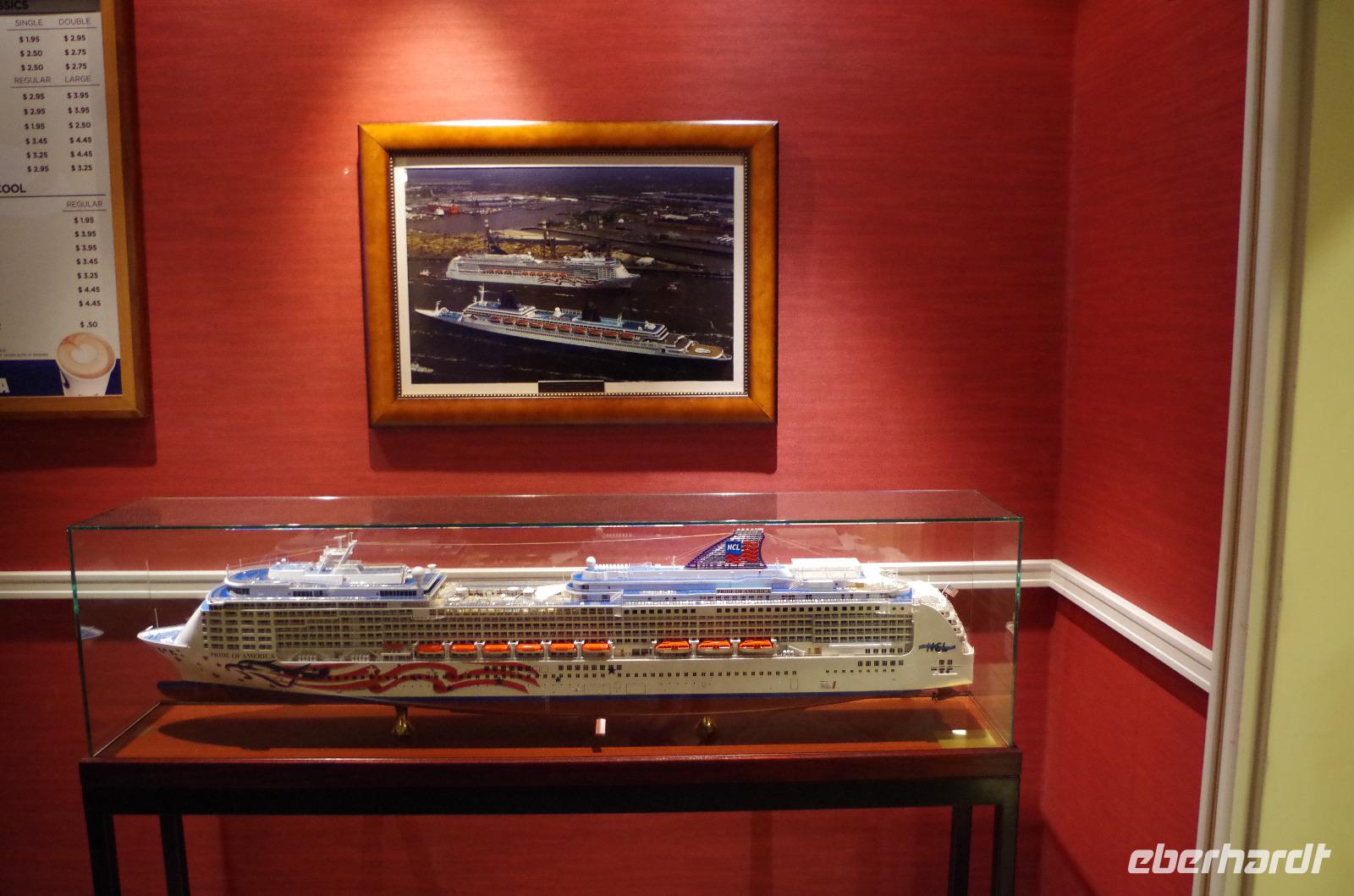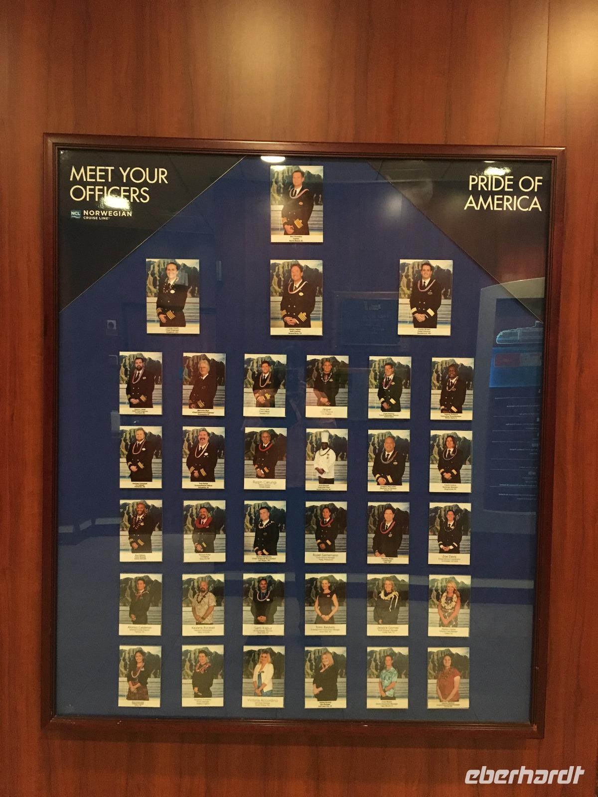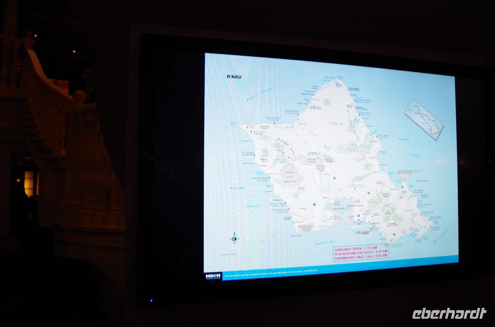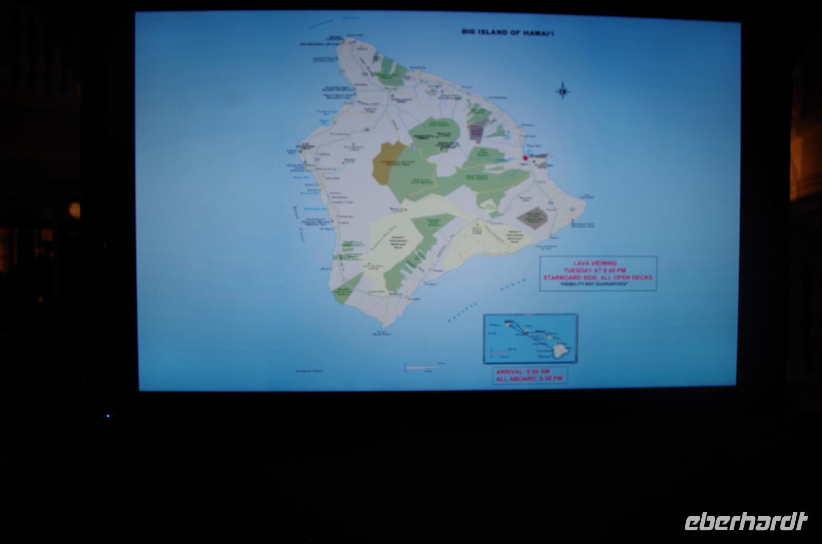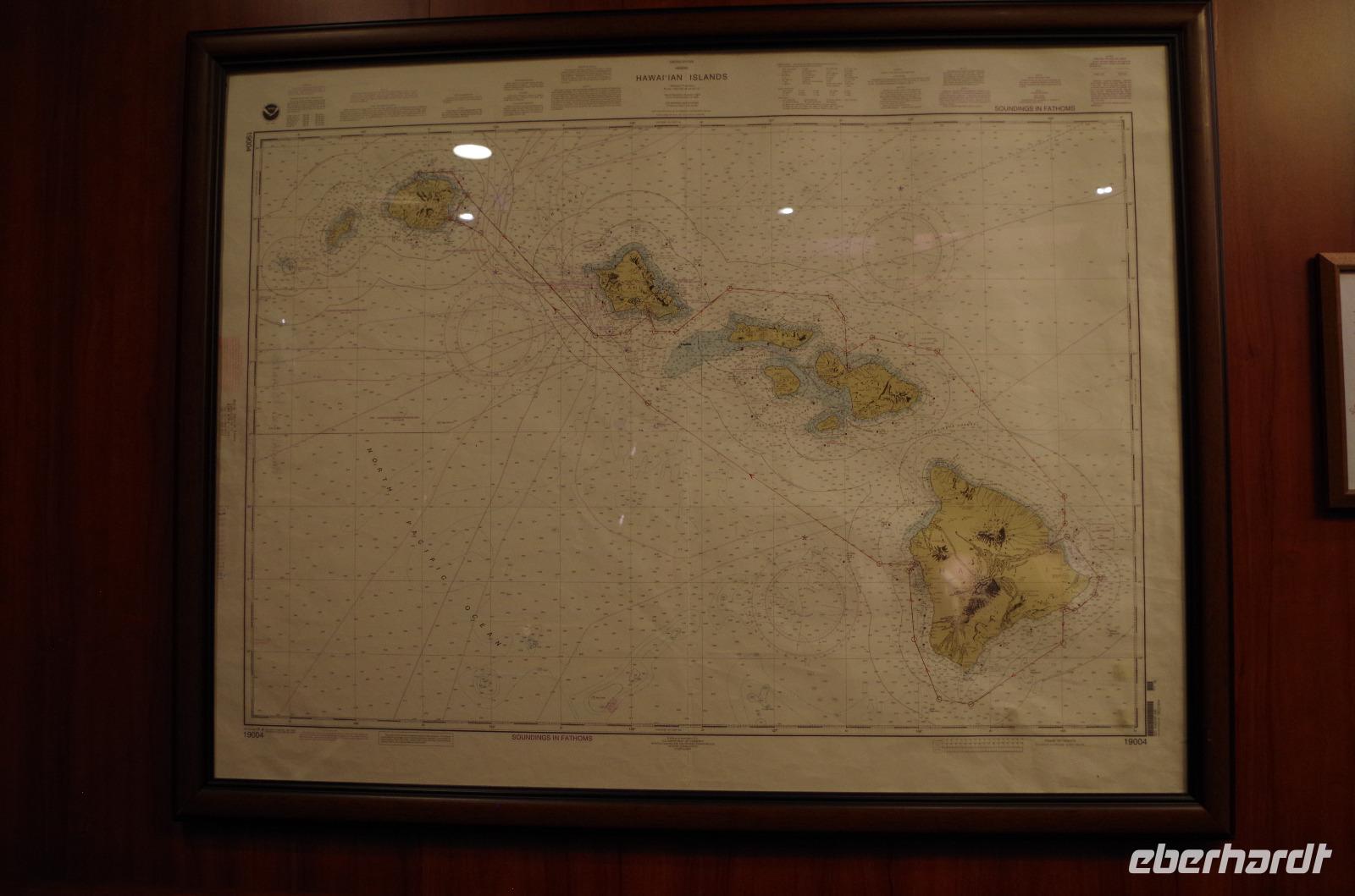 Abermals werden wir von warmen Sonnenstrahlen geweckt und treffen uns zwischen 07.30 Uhr und 08.00 Uhr zum Frühstück im Restaurant "Cinnamon's at the 'Ilikai". Es gibt zwar eine bestimmte Frühstückszeit ab 07.30 Uhr von rund einer Stunde für unsere Gruppe, aber die Gäste können ganz in Ruhe bis 09.00 Uhr frühstücken. Nicht so schön sind allerdings die Vögel über unseren Köpfen, welche bereits darauf lauern, etwas von unserem Frühstück abzubekommen. Aber solange sie nur schauen, stört uns das nicht weiter. Uns steht die gleiche Auswahl wie gestern zur Verfügung, zusätzlich erhalten die Gäste heute ein Glas frischgepressten Saft dazu, besonders Grapefruit-, Ananas- und Organgensaft können wir empfehlen. Gegen 09.00 Uhr haben wir ausreichend gefrühstückt und unsere Koffer sind gepackt, der Check-Out funktioniert einwandfrei. Unsere Koffer sind mit den Papier-Kofferanhängern von NCL zu versehen, welche die Gäste circa drei Wochen vor Abreise von Eberhardt TRAVEL erhalten haben. Die Reisebegleitung leiht sich von der Rezeption einen Tacker und Klebeband aus, damit wir die Anhänger gut an unseren Koffern befestigen können. Unser Bus steht bereit und wir fahren gegen 10.35 Uhr vom Hotel zur Anlegestelle der "Pride of America", dem Pier 2 im Hafen von Honolulu. Den Pier erreichen wir rund 25 Minuten später. Unsere Koffer können wir auf zwei verschiedene Art und Weisen aufgeben. Entweder werden sie durch das Personal von NCL verladen oder wir geben sie selbstständig auf. Wir entscheiden uns für die zweite Variante, da wir keine Menschenschlange vor uns haben und es somit schneller geht. Dann muss jeder Reisegast ein Gesundheitsformular ausfüllen, wobei die Reisebegleitung bei der Übersetzung behilflich ist. Für die Sicherheitskontrolle benötigen wir am Eingang unser mit den Reiseunterlagen erhaltenes Kreuzfahrtticket, den Reisepass und das zuvor ausgefüllte Gesundheitsformular. Des Weiteren ist es auf der NCL nicht mehr erlaubt, volle oder halbvoll gefüllte Getränkeflaschen an Bord zu nehmen. Diese Regelung wurde eingeführt, da wohl in der Vergangenheit zu viele Gäste Alkohol in Plastikflaschen an Bord geschmuggelt haben sollen und NCL dies mit der neuen Regelung unterbinden möchte. Demnach dürfen wir nur leere Getränkeflaschen an Bord nehmen. Nach der Sicherheitskontrolle erhalten wir die typischen hawaiianischen Ketten, frische Lei-Blumenketten für die Frauen und Muschelketten für die Männer. Die Lei-Ketten mit den frischen Blumen verwelken in der Regel nach ein bis zwei Tagen, so dass ein gemeinsames Gruppenfoto mit unseren Ketten innerhalb der ersten zwei Tage erfolgen wird :-) Anschließend gehen wir einzeln oder paarweise zum Check-In-Schalter, hinterlegen unsere Kreditkartendaten und erhalten unsere Bordkarte und auch das deutsche Programmheft. Eine Bezahlung mit Bargeld ist ebenso möglich, dies wird aber bei der Rezeption an Bord eingezahlt. Die Summe muss mindestens 300 USD pro Kabine betragen. Dann besteht die Möglichkeit ein Willkommensfoto machen zu lassen, was von uns aber nicht gewünscht ist. Beim Check-In haben wir alle eine sogenannte "Boarding-Nummer" erhalten. Im Wartebereich sind ausreichend Stühle vorhanden, so warten wir gemeinsam bis unsere Nummern 4 und 5 angerufen werden und wir an Bord gehen können. Gegen 12.00 Uhr heißt es dann endlich "Willkommen an Bord!", wobei unsere Freude ein wenig getrübt wird, nachdem wir erfahren, dass die Kabinen noch nicht freigegeben sind und auch die Türen zu den Gängen verschlossen sind. Die Kabinen sind ab 14.00 Uhr etagenweise bezugsfertig. Auf dem Pooldeck 11 sind glücklicherweise genügend Sonnenliegen vorhanden und das Wetter ist traumhaft. Wir wechseln uns mit dem Mittagessen ab, so dass wir nicht das komplette Handgepäck mitnehmen müssen. Mittagessen im Buffetrestaurant "Aloha Café" auf Deck 11 Mitte ist von 11.30 Uhr bis 16.00 Uhr und im "Key West Bar & Grill" auf Deck 12 Bug von 12.00 Uhr bis 16.00 Uhr möglich. Nach und nach sind unsere Kabinen bezugsfertig und die Gänge auf den einzelnen Decks werden geöffnet, dabei wird von oben begonnen, Deck 12 bis 4 abwärts. Die Durchsagen sind anfangs in einem sehr schnellen und schwer verständlichen Englisch, dies bessert sich aber während der Reise. Um 15.15 Uhr findet ein deutsches Informationstreffen mit der internationalen Gästebetreuung an Bord, Edward Brown, im Shuffles auf Deck 6 vorn am Bug auf Steuerbord-Seite statt. Die Gäste können sich entspannen, alle wichtigen Informationen erhalten sie von ihrer Reisebegleitung, welche an diesem Treffen teilnimmt. Um 16.00 Uhr treffen wir uns in der Hotellobby "Capitol Atrium" beim Gästeservice oder auch Rezeption auf Deck 5 Mitte und unternehmen einen kurzen gemeinsamen Rundgang auf dem Schiff. Interessant ist sicher auch, dass es auf dem Schiff kein Kasino gibt und ein Duty Free Shop wird auch nicht angeboten. Es dürfen keine Kasinos und Zollfreiläden angeboten werden, da sich das Schiff die komplette Zeit in hawaiianischen Gewässern befindet. Glücksspiel jeglicher Art sind laut hawaiianischen Rechtsvorschriften gesetzwidrig. Rund 45 Minuten später findet die obligatorische Seenotrettungsübung gemäß dem internationalen Seefahrtsgesetz SOLAS "Safety of Life at Sea" und den Bestimmungen der US Küstenwache an den Sammelstationen auf Deck 5 und 6 statt. Es ertönt ein vom Kapitän angekündigtes aus sieben kurzen und einem langen Ton bestehendes Signal. Dann müssen alle Passagiere zur jeweiligen Sammelstation, auch Musterstation genannt, gehen. Der Stationsbuchstabe steht jeweils auf der Innenseite der Kabinentür, der Schwimmweste und auch auf der Bordkarte. Die Schwimmweste befindet sich in der Kabine im Kleiderschrank. Auf der NCL "Pride of America" benötigen wir für die Sicherheitsübung keine Rettungsweste, also lassen wir diese gleich in der Kabine. Um 17.45 Uhr findet ein Hula-Tanzen auf dem Pooldeck 11 statt und um 18.00 Uhr treffen sich alle Gäste und die R