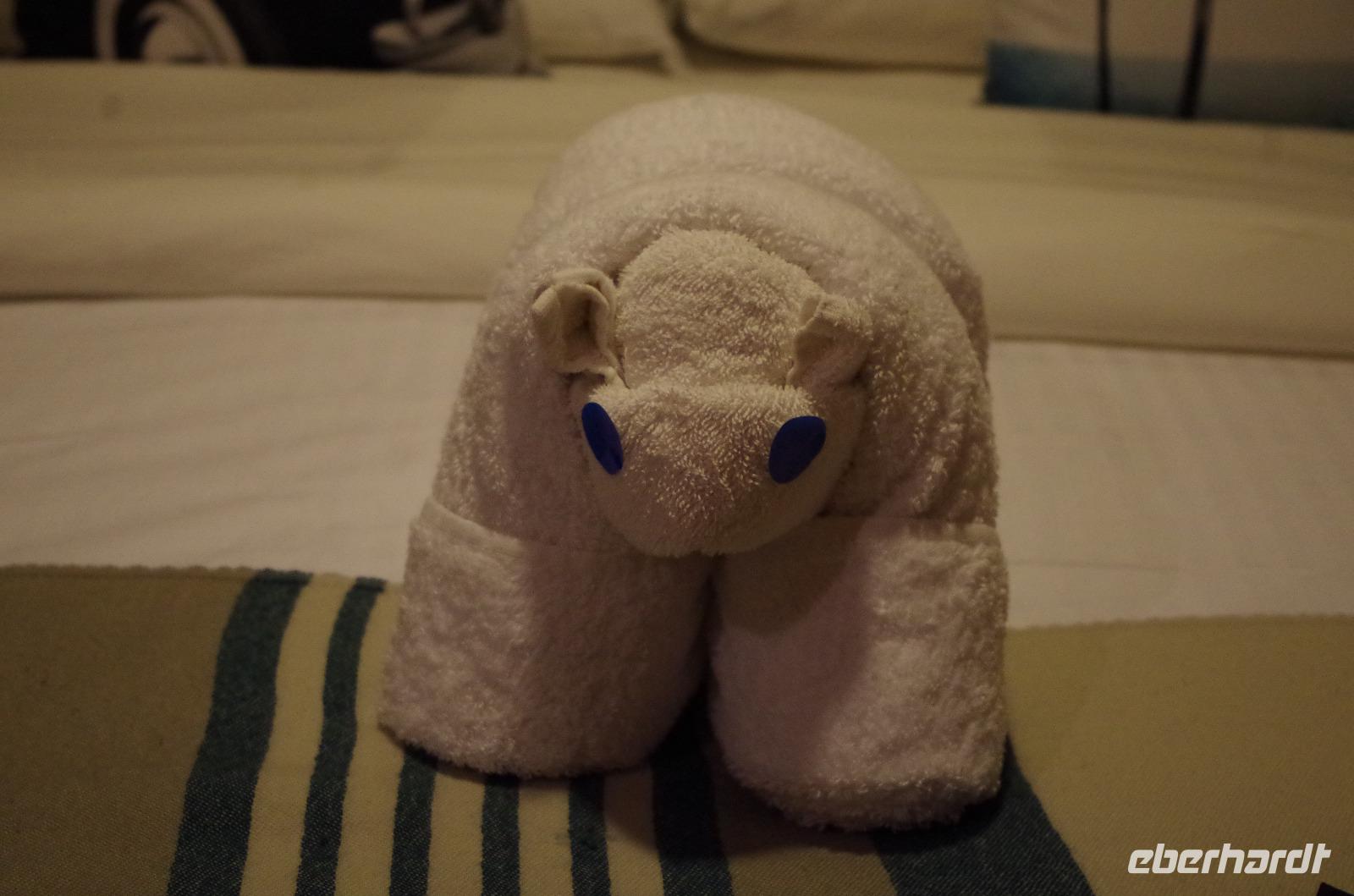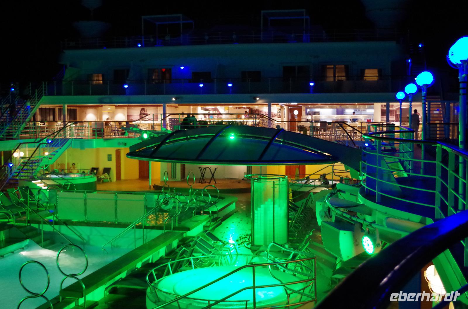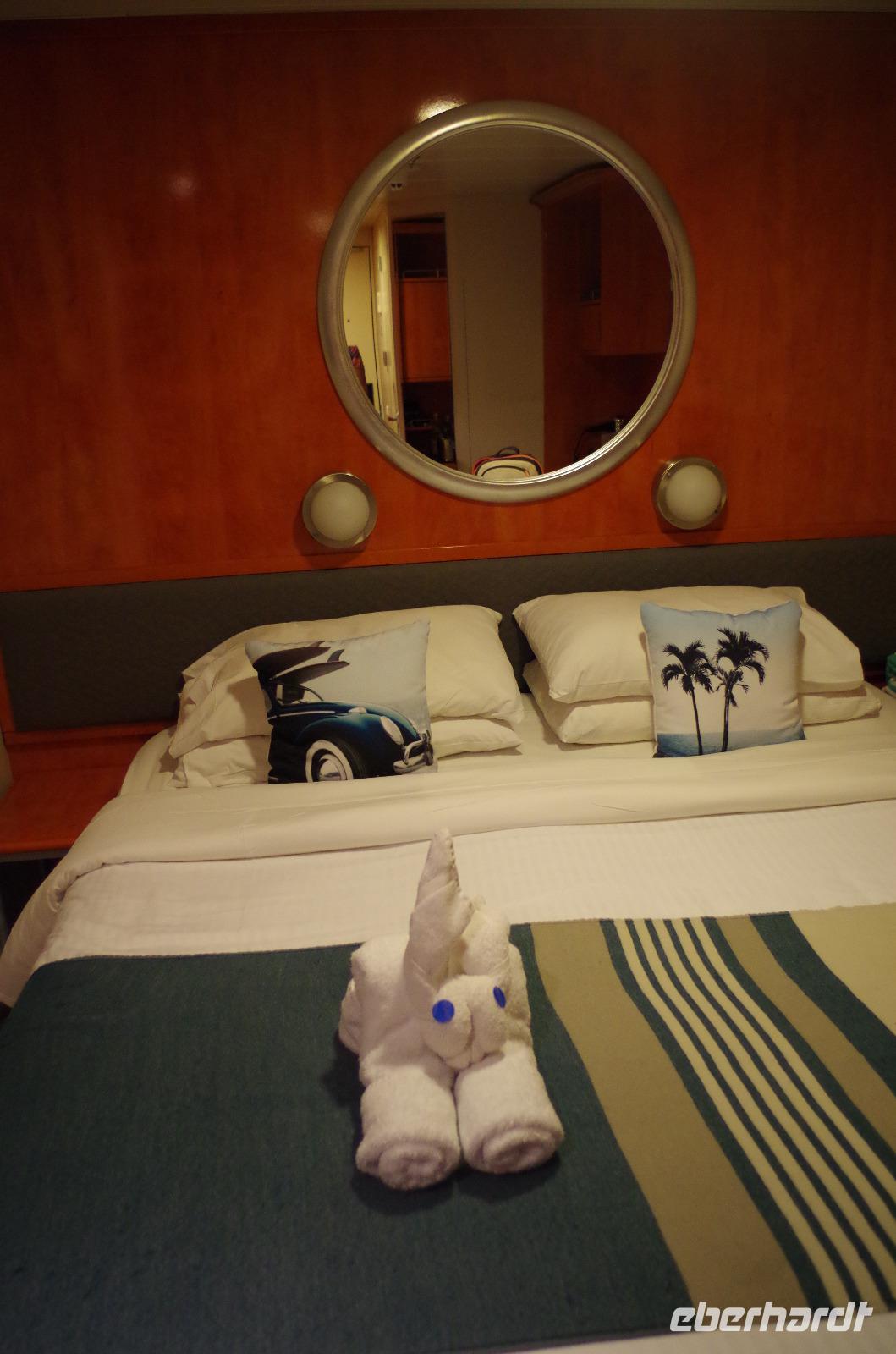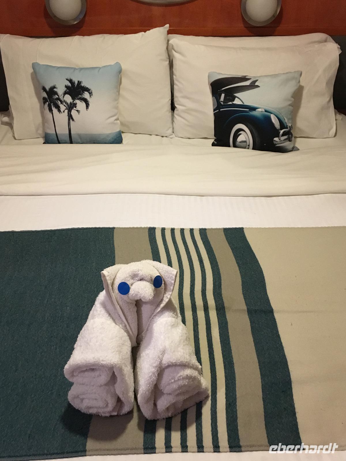 Abermals werden wir von warmen Sonnenstrahlen geweckt und treffen uns zwischen 07.30 Uhr und 08.00 Uhr zum Frühstück im Restaurant "Cinnamon's at the 'Ilikai". Es gibt zwar eine bestimmte Frühstückszeit ab 07.30 Uhr von rund einer Stunde für unsere Gruppe, aber die Gäste können ganz in Ruhe bis 09.00 Uhr frühstücken. Nicht so schön sind allerdings die Vögel über unseren Köpfen, welche bereits darauf lauern, etwas von unserem Frühstück abzubekommen. Aber solange sie nur schauen, stört uns das nicht weiter. Uns steht die gleiche Auswahl wie gestern zur Verfügung, zusätzlich erhalten die Gäste heute ein Glas frischgepressten Saft dazu, besonders Grapefruit-, Ananas- und Organgensaft können wir empfehlen. Gegen 09.00 Uhr haben wir ausreichend gefrühstückt und unsere Koffer sind gepackt, der Check-Out funktioniert einwandfrei. Unsere Koffer sind mit den Papier-Kofferanhängern von NCL zu versehen, welche die Gäste circa drei Wochen vor Abreise von Eberhardt TRAVEL erhalten haben. Die Reisebegleitung leiht sich von der Rezeption einen Tacker und Klebeband aus, damit wir die Anhänger gut an unseren Koffern befestigen können. Unser Bus steht bereit und wir fahren gegen 10.35 Uhr vom Hotel zur Anlegestelle der "Pride of America", dem Pier 2 im Hafen von Honolulu. Den Pier erreichen wir rund 25 Minuten später. Unsere Koffer können wir auf zwei verschiedene Art und Weisen aufgeben. Entweder werden sie durch das Personal von NCL verladen oder wir geben sie selbstständig auf. Wir entscheiden uns für die zweite Variante, da wir keine Menschenschlange vor uns haben und es somit schneller geht. Dann muss jeder Reisegast ein Gesundheitsformular ausfüllen, wobei die Reisebegleitung bei der Übersetzung behilflich ist. Für die Sicherheitskontrolle benötigen wir am Eingang unser mit den Reiseunterlagen erhaltenes Kreuzfahrtticket, den Reisepass und das zuvor ausgefüllte Gesundheitsformular. Des Weiteren ist es auf der NCL nicht mehr erlaubt, volle oder halbvoll gefüllte Getränkeflaschen an Bord zu nehmen. Diese Regelung wurde eingeführt, da wohl in der Vergangenheit zu viele Gäste Alkohol in Plastikflaschen an Bord geschmuggelt haben sollen und NCL dies mit der neuen Regelung unterbinden möchte. Demnach dürfen wir nur leere Getränkeflaschen an Bord nehmen. Nach der Sicherheitskontrolle erhalten wir die typischen hawaiianischen Ketten, frische Lei-Blumenketten für die Frauen und Muschelketten für die Männer. Die Lei-Ketten mit den frischen Blumen verwelken in der Regel nach ein bis zwei Tagen, so dass ein gemeinsames Gruppenfoto mit unseren Ketten innerhalb der ersten zwei Tage erfolgen wird :-) Anschließend gehen wir einzeln oder paarweise zum Check-In-Schalter, hinterlegen unsere Kreditkartendaten und erhalten unsere Bordkarte und auch das deutsche Programmheft. Eine Bezahlung mit Bargeld ist ebenso möglich, dies wird aber bei der Rezeption an Bord eingezahlt. Die Summe muss mindestens 300 USD pro Kabine betragen. Dann besteht die Möglichkeit ein Willkommensfoto machen zu lassen, was von uns aber nicht gewünscht ist. Beim Check-In haben wir alle eine sogenannte "Boarding-Nummer" erhalten. Im Wartebereich sind ausreichend Stühle vorhanden, so warten wir gemeinsam bis unsere Nummern 4 und 5 angerufen werden und wir an Bord gehen können. Gegen 12.00 Uhr heißt es dann endlich "Willkommen an Bord!", wobei unsere Freude ein wenig getrübt wird, nachdem wir erfahren, dass die Kabinen noch nicht freigegeben sind und auch die Türen zu den Gängen verschlossen sind. Die Kabinen sind ab 14.00 Uhr etagenweise bezugsfertig. Auf dem Pooldeck 11 sind glücklicherweise genügend Sonnenliegen vorhanden und das Wetter ist traumhaft. Wir wechseln uns mit dem Mittagessen ab, so dass wir nicht das komplette Handgepäck mitnehmen müssen. Mittagessen im Buffetrestaurant "Aloha Café" auf Deck 11 Mitte ist von 11.30 Uhr bis 16.00 Uhr und im "Key West Bar & Grill" auf Deck 12 Bug von 12.00 Uhr bis 16.00 Uhr möglich. Nach und nach sind unsere Kabinen bezugsfertig und die Gänge auf den einzelnen Decks werden geöffnet, dabei wird von oben begonnen, Deck 12 bis 4 abwärts. Die Durchsagen sind anfangs in einem sehr schnellen und schwer verständlichen Englisch, dies bessert sich aber während der Reise. Um 15.15 Uhr findet ein deutsches Informationstreffen mit der internationalen Gästebetreuung an Bord, Edward Brown, im Shuffles auf Deck 6 vorn am Bug auf Steuerbord-Seite statt. Die Gäste können sich entspannen, alle wichtigen Informationen erhalten sie von ihrer Reisebegleitung, welche an diesem Treffen teilnimmt. Um 16.00 Uhr treffen wir uns in der Hotellobby "Capitol Atrium" beim Gästeservice oder auch Rezeption auf Deck 5 Mitte und unternehmen einen kurzen gemeinsamen Rundgang auf dem Schiff. Interessant ist sicher auch, dass es auf dem Schiff kein Kasino gibt und ein Duty Free Shop wird auch nicht angeboten. Es dürfen keine Kasinos und Zollfreiläden angeboten werden, da sich das Schiff die komplette Zeit in hawaiianischen Gewässern befindet. Glücksspiel jeglicher Art sind laut hawaiianischen Rechtsvorschriften gesetzwidrig. Rund 45 Minuten später findet die obligatorische Seenotrettungsübung gemäß dem internationalen Seefahrtsgesetz SOLAS "Safety of Life at Sea" und den Bestimmungen der US Küstenwache an den Sammelstationen auf Deck 5 und 6 statt. Es ertönt ein vom Kapitän angekündigtes aus sieben kurzen und einem langen Ton bestehendes Signal. Dann müssen alle Passagiere zur jeweiligen Sammelstation, auch Musterstation genannt, gehen. Der Stationsbuchstabe steht jeweils auf der Innenseite der Kabinentür, der Schwimmweste und auch auf der Bordkarte. Die Schwimmweste befindet sich in der Kabine im Kleiderschrank. Auf der NCL "Pride of America" benötigen wir für die Sicherheitsübung keine Rettungsweste, also lassen wir diese gleich in der Kabine. Um 17.45 Uhr findet ein Hula-Tanzen auf dem Pooldeck 11 statt und um 18.00 Uhr treffen sich alle Gäste und die R