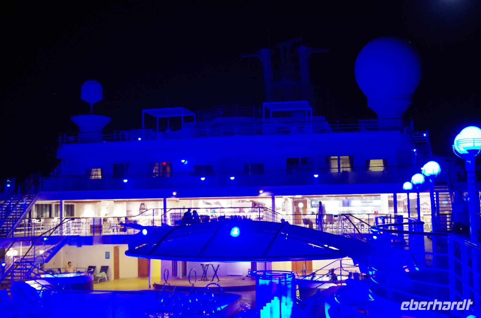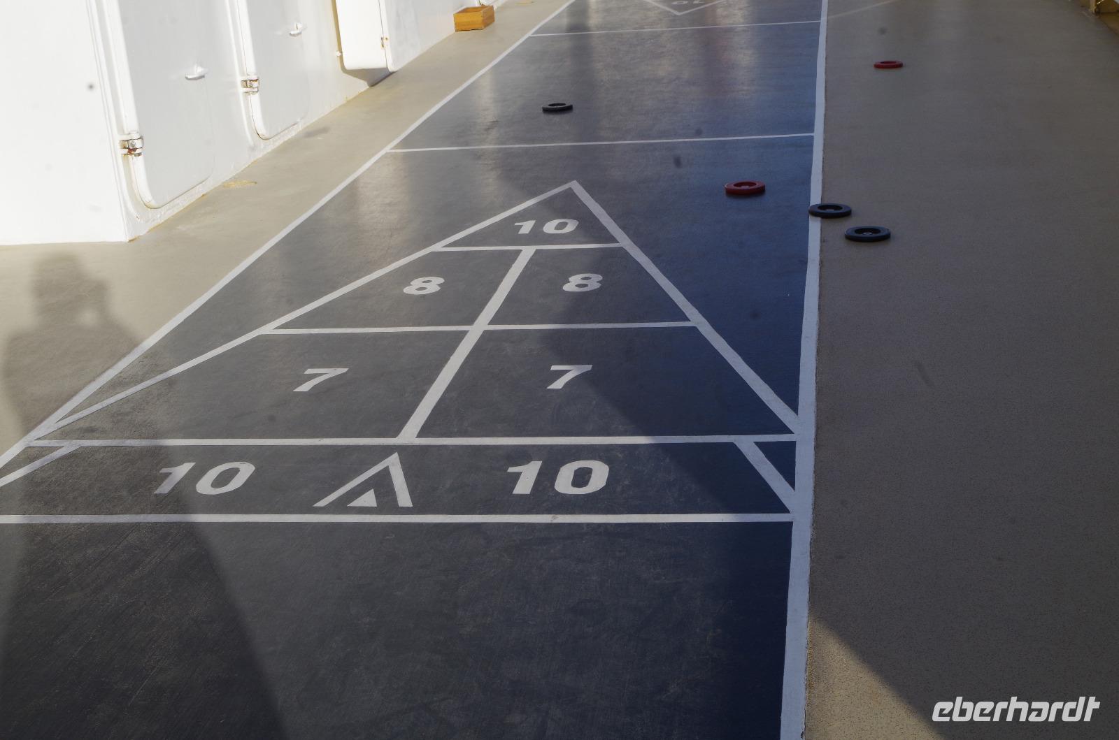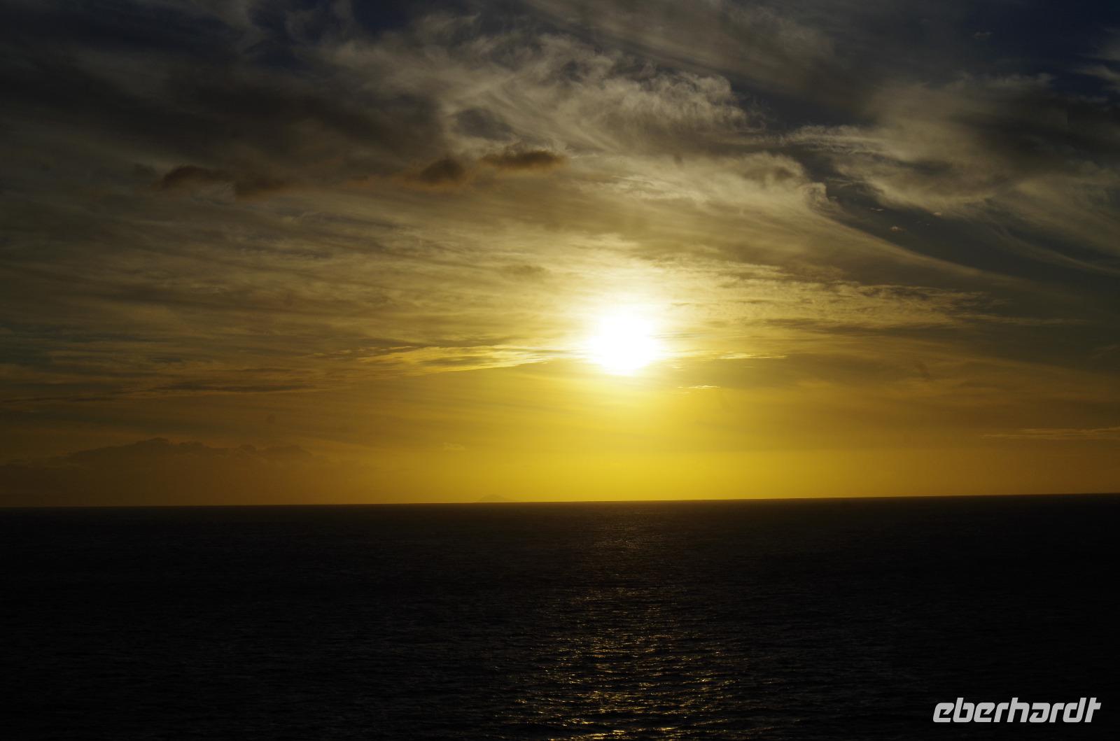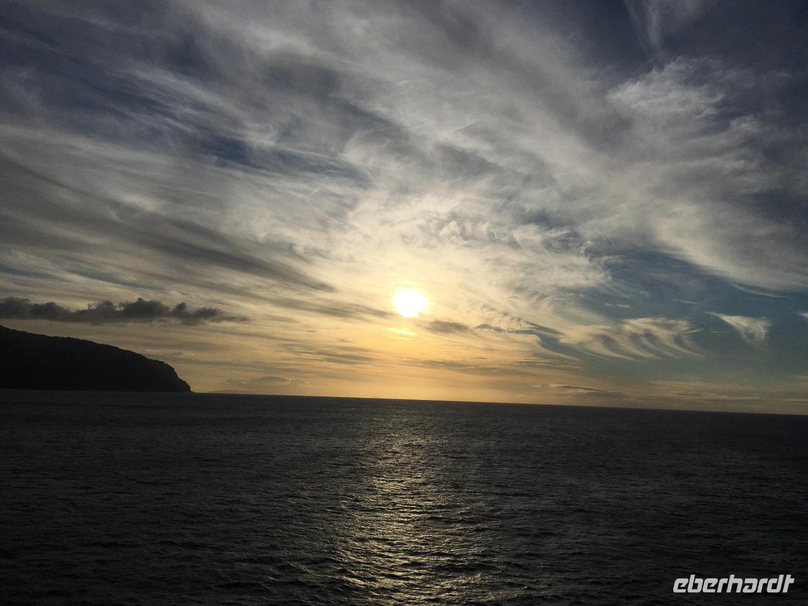 Während wir die vergangenen Tage von der Sonne verwöhnt wurden, scheint sie zu wissen, dass wir bald Hawaii verlassen werden. Der Himmel ist bedeckt und Regen liegt in der Luft. Das Frühstück genießen wir heute im Restaurant statt im Außenbereich. Um 09.00 Uhr treffen sich sieben Gäste und die Reisebegleitung am bekannten Ort, um gemeinsam zum Strand "Kalapaki Beach" zu laufen. Wir haben zwar leichten Sprühregen, aber dies macht sowohl der Reisebegleitung als auch den Gästen nicht wirklich etwas aus, da es sehr doch schwül-heiß ist und wir sowieso im Meer schwimmen gehen möchten. Während wir im Wasser sind, klart der Himmel langsam auf. Es regnet ab und zu, dennoch genießen wir das bis zu 25 Grad warme Wasser. Kostenfreies unbegrenztes WLAN kann beim Marriott's Kaua'i Beach Club empfangen werden, beim Anchor Cove Shopping Center rund zehn Gehminuten vom Schiff entfernt ist das kostenfreie WLAN auf 60 Minuten begrenzt. Gegen 11.30 Uhr spazieren wir wieder zum Schiff zurück. Wer möchte, kann sich um 12.00 Uhr hawaiianische Musik mit Lei Aloha im Capitol Atrium anhören. Um 12.15 Uhr findet die letzte hawaiianische Hula-Tanzstunde in der Mardi Gras Lounge in Vorbereitung auf die Pau Hana Hawaiianische Hula-Abschlussfeier im Capitol Atrium um 13.15 Uhr statt. Ein letztes Mal auf dieser Kreuzfahrt versuchen wir uns im Hula-Tanz und tanzen die Chorographie zu den Liedern in folgender Reihenfolge (1) "Thats's how we do the hula", (2) "Little grass shack" und (3) "Hukilau" zusammen mit unserem Tanzlehrer Kaulana Bucasas. Wer sich gern zuhause im Hula-Tanzen probieren möchte, kann gern zu diesen Liedern tanzen oder auf Empfehlung unseres Tanzlehrers auch zu den folgenden Titeln "That's the Hawaiian in me", Pearly shells", "Lovely hula hands", "Sophisticated Hula" oder "Puamana" (in Hawaiian). Alle an Bord heißt es 13.30 Uhr, so dass wir pünktlich um 14.00 Uhr von Nawiliwili, Kauai nach Honolulu, O'ahu starten können. Die Fahrt beträgt rund 345,4 Kilometer. Zum Nachmittag bietet die Reisebegleitung an, eine Runde Shuffleboard auf Deck 13 zu spielen. Wir sind fünf Personen, wobei die Frauen gegen die Männer antreten. Rund eine Stunde später gewinnen die Männer knapp mit 71 zu 63 Punkten. Die Frauen sind aber fairer Verliererinnen und gönnen den Männern ihren engen Sieg, aber nur ausnahmsweise *grins* Wir fahren am heutigen Tag gegen 17.15 Uhr an der Na Pali Küste entlang. Während wir die tolle Landschaft bestaunen, erleben wir auch einen wunderschönen Sonnenuntergang. Heute genießen wir ein letztes Mal ein köstliches Abendessen um 18.00 Uhr im Restaurant "Skyline" auf Deck 5 Heck. Wir verabschieden uns freundlich von unserem Kellner und danken ihm für eine schöne Zeit. Die Reisegäste haben heute noch eine besondere Einladung von Eberhardt erhalten. Wir treffen uns um 20.00 Uhr in der Napa Wine Bar auf Deck 6 zur Ausreiseinformation mit allen wichtigen Informationen für den morgigen Tag und der Verteilung der Kofferanhänger. Die Gäste sind zum Abschied auf ein Glas Sekt eingeladen und so stoßen wir gemeinsam auf eine wunderbare Reise an. Um 21.00 Uhr wird im Hollywood Theater "Vegas! Die Show" zum Abschluss gezeigt. Danach wird der ein oder andere Gast seinen Koffer zu Ende packen oder bereits schlafen gehen, Die Koffer sind mit den Kofferanhänger zu versehen und bis 00.00 Uhr vor die Kabinentür zu stellen. Wir gönnen uns eine entspannte Nacht bevor wir gefühlt die nächsten zwei Tage viel Zeit im Flugzeug verbringen werden.