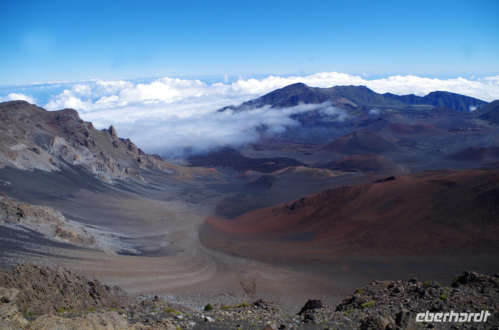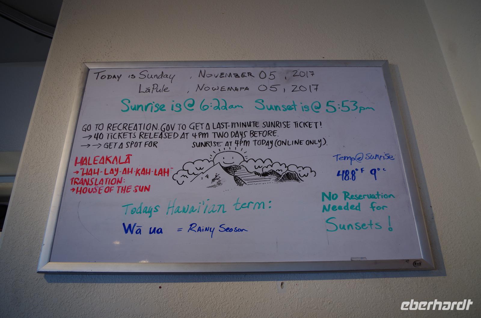 Unser Tag beginnt mit einem leckeren Frühstück ab 06.00 Uhr im Buffetrestaurant "Aloha Café" auf Deck 11 Mitte. Das Buffet bietet eine große Auswahl an Brot und Brötchen, Obst, Wurst, Cornflakes, Säften und Jogurt. Zudem besteht die Möglichkeit, auf Wunsch Omelette oder Spiegelei sowie Pancakes frisch zubereiten zu lassen. Ein Sitzplatz ist für jeden Gast vorhanden und die Lautstärke auf einem normalen Level. Zum Informationstreffen hat es auch einen nützlichen Hinweis zur Zimmerreinigung gegeben. Neben unserer Kabinentür befindet sich eine Drehscheibe mit vier verschiedenen Farben, wobei gelb für "Willkommen", rot für "Bitte nicht stören", grün für "Zimmerreinigung und Handtuchwechsel am Morgen" und blau für "Raumpflege am Abend" steht. Um 08.00 Uhr treffen sich sieben Gäste und die Reisebegleitung in der Hotellobby "Capitol Atrium" beim Gästeservice auf Deck 5 Mitte, um gemeinsam von Bord zu gehen und die ersten Gäste zum heute gebuchten Ausflug OGG01 "Haleakala Crater" zu sein. Dies hat die Reisebegleitung am Tag zuvor mit dem NCL Ausflugspersonal vom Shore Excursions Desk geklärt und abgesprochen. Ein Reisegast hat einen anderen Ausflug OGG79 "Straße nach Hana Deluxe" mit Treffpunkt im Hafengelände gebucht. Er startet aber gemeinsam mit uns. Im Hafengelände verabschieden wir ihn an seinem Treffpunkt und wir begeben uns zum Sammelpunkt unseres Ausflugs. Auf nette Nachfrage der Reisebegleitung erhalten wir vom NCL Ausflugspersonal jeder eine 0,5-Liter-Plastikflaschen Wasser. Wirklich eine nette Geste! Um 09.00 Uhr beginnt der NCL-Ausflug OGG01 Haleakala Crater. Unser singender und auf einer Ukulele spielender Busfahrer erwartet uns bereits. Er erklärt uns gleich zu Beginn, dass auf Hawaii alle Menschen eine große Familie sind. Familie heißt auf Hawaiianisch "Ohana". Dieses Wort werden wir während unserer Reise noch sehr oft hören. Aufgrund unseres selbständigen-von-Bord-Gehens erhalten wir die ersten Sitzplätze im vorderen Bereich des Busses. Der nur englischsprechende Busfahrer ist zugleich unser Guide, also haben wir abermals einen "Driverguide", was auf Hawaii sehr typisch ist. Unser Busfahrer hat ein enormes Wissen und erzählt uns spannende Fakten während der ganzen Fahrt. Eine simultane Übersetzung ist nicht möglich, da der Busfahrer mit Headset spricht. Daher werden in den einzelnen Pausen die wichtigsten Informationen durch die Reisebegleitung den Gästen übermittelt. Die Fahrt von rund 80 Kilometern zum Krater dauert etwa eineinhalb Stunden. Im "Park Headquarters Visitor Center" auf einer Höhe von 2.134 Meter legen wir eine kurze Harmoniepause von rund 20 Minuten ein. Hier erhalten wir auch Informationsmaterial zum Nationalpark in Deutsch. Anschließend fahren wir weiter zum Besucherzentrum "Halekala Visitor Center" auf einer Höhe von 2.969 Meter. Der höchste Punkt befindet sich am Pu'u'ula'ula Summit auf einer Höhe von 3.055 Meter über den Meeresspiegel. Gegen 10.45 Uhr erreichen wir das Besucherzentrum. Wir können rund 30 Minuten entspannt am Krater entlang spazieren und fotografieren. Besonders die Farbenvielfalt aus rot, grün, blau und braun begeistert uns. Das Wetter ist angenehm und wir haben einen tollen Blick auf den "Haleakala Crater". Sein Name kann mit "Haus der Sonne" übersetzt werden. Dieser riesige über eine Million Jahre alte Schildvulkan umschließt mehr als 75 Prozent der Inselfläche. Vermutlich ist sein letzter Ausbruch im Jahre 1790 stattgefunden, einen genauen Nachweis gibt es aber nicht. Interessant ist sicher auch dessen Umfang von rund 33,6 Kilometern und Tiefe von circa 1.219 Metern. Anschließend fahren wir den gleichen Weg zum Schiff zurück. Gern hätten wir auch den Nationalvogel gesehen, die Nene Gans, welche eine Adaptation der kanadischen Gans ist. Den Hafen von Kuhului erreichen wir um 13.00 Uhr. Wir verabschieden uns von unserem freundlichen Busfahrer, gehen gemeinsam an Bord und gönnen uns ein vorzügliches Mittagessen im Buffetrestaurant "Aloha Café" auf Deck 11 Mitte von 12.00 Uhr bis 15.00 Uhr oder im "Key West Bar & Grill" auf Deck 12 Bug von 12.00 Uhr bis 18.00 Uhr. Am Nachmittag spazieren einige Gäste und die Reisebegleitung zum rund zehn bis fünfzehn Gehminuten entfernten kleinem Einkaufszentrum. Wir können für eine Stunde kostenfreies WLAN nutzen. Ansonsten befinden wir uns in einem Industriehafen, außer diesem kleinen und ein rund 20 bis 30 Gehminuten entferntes größeres Einkaufszentrum hat dieser Ort nicht viel zu bieten. Ebenfalls freies WLAN bietet McDonalds an, welches sich auf dem Weg zum größeren Einkaufszentrum "Queen Ka'ahumanu Center" befindet. Um 18.00 Uhr treffen wir uns wieder zum gemeinsamen Abendessen im Restaurant "Skyline" auf Deck 5 Heck. Die deutschen Speisekarten sind bereits beim Eintreffen vorhanden und das Essen ist abermals sehr gut. Parallel zum Abendessen findet um 18.15 Uhr die Tanzstunde 'Gesellschaftstanz' in der Mardi Gras Lounge auf Deck 6 statt. Vielleicht schauen wir bei der nächsten Tanzstunde auch vorbei oder wir versuchen uns im Hula-Tanzen, was ebenfalls an Bord angeboten wird. Nach dem Essen lassen wir uns alle zusammen mit unseren noch relativ frischen Lei-Ketten und Muschelketten vom NCL Fotografen in der Hotellobby "Capitol Atrium" vor einer professionellen Fotowand fotografieren. Ein weiteres Gruppenfoto entsteht auf der Treppe im Atrium. Um 20.45 Uhr findet im Hollywood Theater auf Deck 5 eine Kokosnuss-Demonstration statt und um 21.00 Uhr ist Showtime "Aloha Polynesia" angesagt. Einige Gäste schauen sich diese interessante Vorstellung zur hawaiianischen Geschichte an. Mit einem zufriedenen Lächeln gehen wir heute nach einen tollen erlebnisreichen Tag zu Bett.