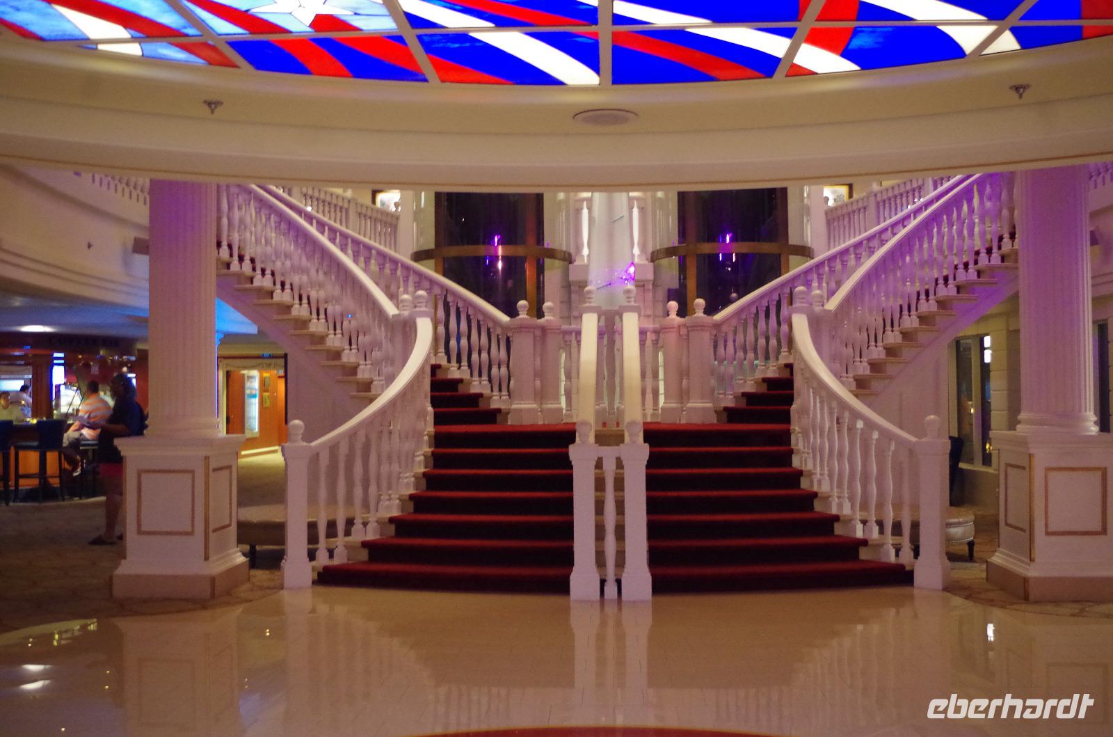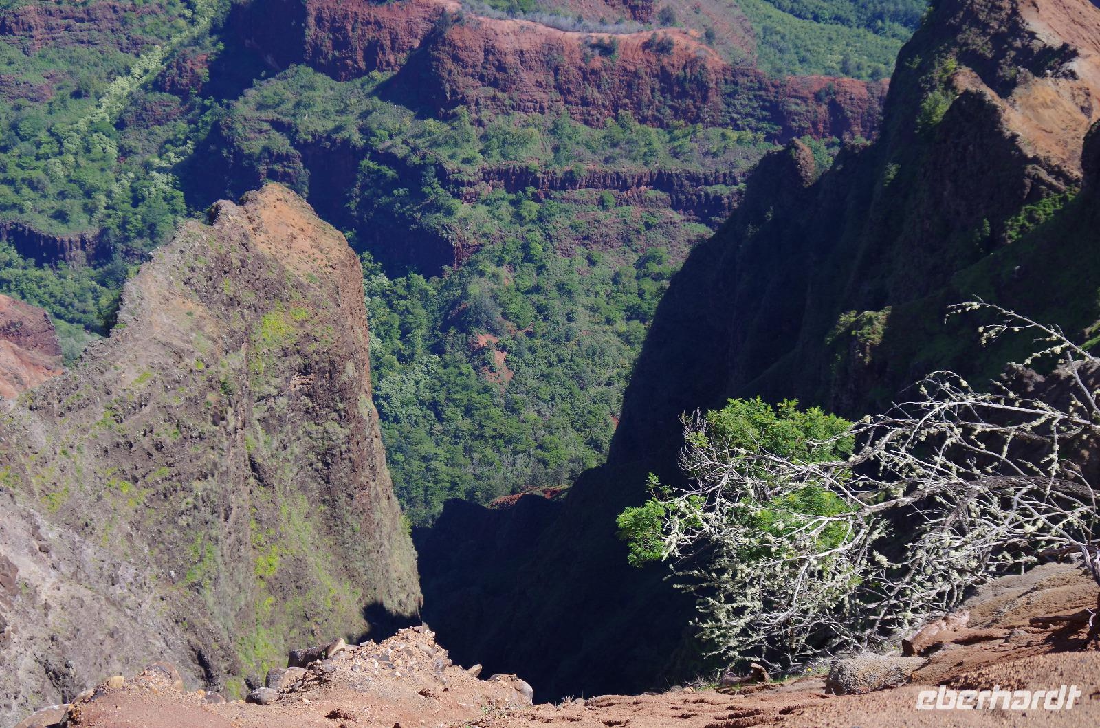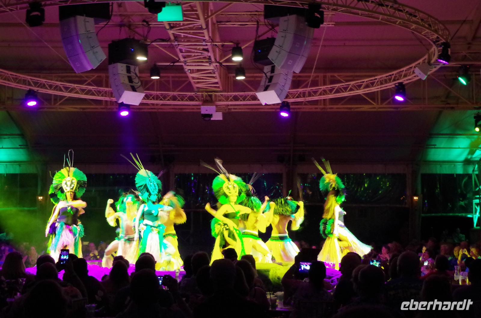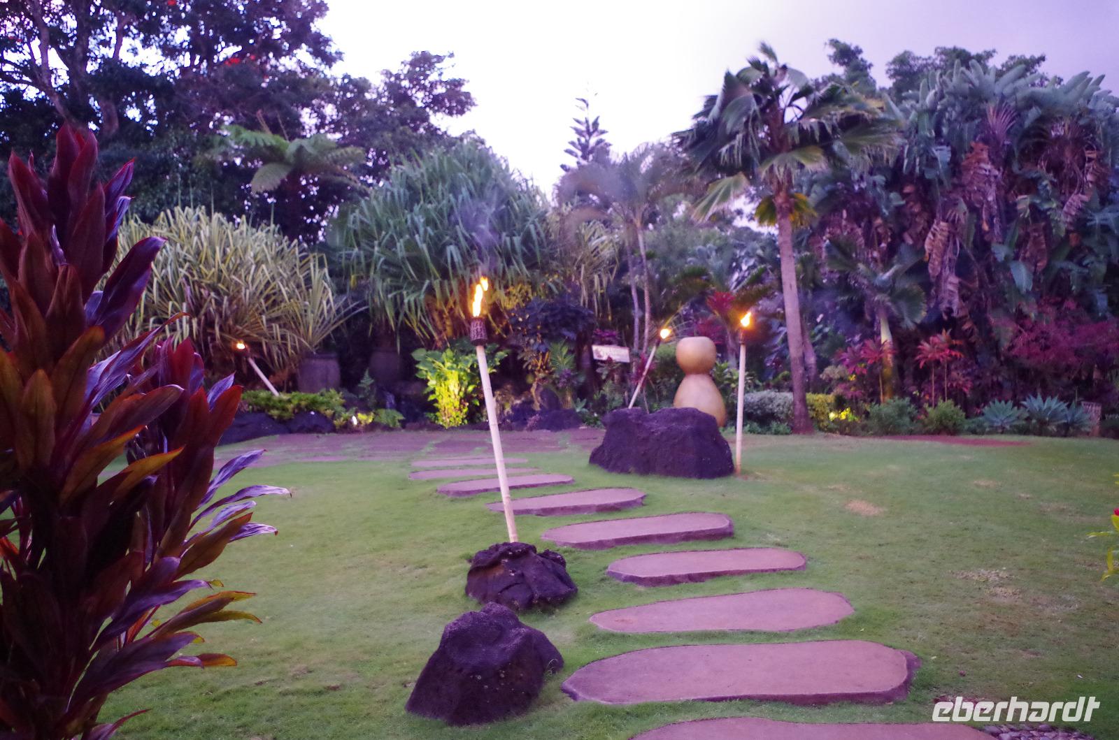 Pünktlich um 08.00 Uhr erreichen wir das touristische Städtchen Nawiliwili auf Kauai. Die Sonne lacht und es verspricht ein wunderbarer Tag zu werden. Kauai wird auch als Garteninsel bezeichnet, da sie mit üppigen Wäldern und vielen verschiedenen Laubbäumen versehen ist. Die Küste ist rund 1.776 Kilometer lang, wovon circa 50 Prozent Sandstrand sind. Die Insel Kauai ist bereits 5,8 Millionen Jahr alt und somit die älteste der größeren Inseln auf Hawaii. Wir genießen ein leckeres Frühstück im Buffetrestaurant und im Hauptrestaurant. Um 10.00 Uhr treffen sich fünf Gäste und die Reisebegleitung in der Hotellobby "Capitol Atrium", um gemeinsam von Bord zu gehen und in einem Großraumtaxi für bis zu sechs Personen eine individuelle Rundfahrt auf Kauai zum Weimea Canyon Lookout zu unternehmen. Die Preise sind ähnlich wie auf Maui, das Trinkgeld können die Gäste abermals selbst bestimmen und eine Ausflugsdauer von vier Stunden ist zu empfehlen. Das Taxi wurde bei Ankunft auf Kauai durch die Reisebegleitung organisiert, im Hafengelände stehen wie auf Maui verschiedene Taxiunternehmen für eine individuelle Tour auf Anfrage zur Verfügung. Unterwegs zum Weimea Canyon Lookout legen wir gegen 10.45 Uhr einen Foto-Stopp und Harmoniepause am "Russian Fort Elizabeth" ein. Die Fahrt im Taxi ist wieder sehr angenehm in bequemen Sitzen. Auf dem Weg zum Canyon erwarten uns viele Kurven und eine Serpentinenstraße, da fahren wir lieber zu sechst im Taxi statt mit rund 50 Gästen im Reisebus! Gegen 11.30 Uhr genießen wir einen tollen Blick auf den Weimea Canyon und die atemberaubende Landschaft. Auf der Rückfahrt legen wir mehrere kurze Foto-Stopps ein. Um 14.10 Uhr sind wir wieder im Hafen von Nawiliwili, Kauai zurück und verabschieden uns freundlich von unserem netten Taxifahrer. Zurück an Bord haben wir gar nicht viel Zeit, da sich alle Gäste und die Reisebegleitung um 15.30 Uhr in der Hotellobby "Capitol Atrium" zum heute gebuchten NCL-Ausflug NWK18 "Luau Kalamaku & Plantagenzug" trifft. Wir gehen gemeinsam ins Hollywood Theater auf Deck 5, wo wir ein grünes Papierarmband für den Eintritt zur Show und zum Essen erhalten. Auf Nachfrage beim NCL Personal können wir als Gruppe noch vor den NCL-Gästen von Bord gehen und bereits im Hafengelände warten. Wir erhalten zudem die wichtige Mitteilung, dass wir uns um 16.30 Uhr an der Zugstation der Plantage "Kilohana" einfinden müssen, um mit dem Plantagenzug zu fahren. Verpassen wir die für uns festgelegte Uhrzeit um 16.45 Uhr, dann können wir nicht mit dem Zug fahren. Aber unsere Eberhardt-Reisegruppe ist immer pünktlich, so dass wir auch in diesem Fall zur richtigen Zeit am Bahnhof stehen werden. Bereits ein paar Tage vor dem Ausflug haben wir einen Zettel auf die Kabine erhalten, auf welchen wir angeben sollten, mit wem wir während der Veranstaltung zusammensitzen möchten. Die Tischreservierung hat die Reisebegleitung für alle Gäste vorgenommen und wir werden am Tisch 214 platziert. Pünktlich um 16.00 Uhr beginnt der NCL-Ausflug NWK18 "Luau Kalamaku & Plantagenzug". Mit dem Bus fahren wir vom Hafen aus rund fünf bis zehn Minuten zur Plantage "Kilohana". Wir werden herzlich mit frischen Lei-Ketten für die Damen und Muschelketten für die Herren empfangen. Direkt am kleinen Bahnhof erhalten wir zwei Getränke-Tickets für zwei kostenfreie Getränke. Wir können sowohl alkoholische als auch nicht-alkoholische Getränke bestellen. Zu beachten ist allerdings, dass pro Person nur ein alkoholisches Getränk bestellt werden kann. Alle Personen unter 30 Jahren müssen zudem den Reisepass bei der Bestellung alkoholischer Getränke vorlegen. Neben den zwei kostenfreien Drinks können gegen Aufpreis von 2 USD weitere alkoholfreie und für 3 USD alkoholhaltige Getränke bestellt werden. Wir besichtigen aber zunächst den kleinen Bahnhof und Warten dann bis zur Abfahrt mit dem Plantagezug, welcher sich um fünfzehn Minuten verspätet. Um 17.00 Uhr fahren wir im Zug rund 30 Minuten rundherum um die Plantage. Die Erklärungen zu den Pflanzen und Tieren sind zwar auf Englisch, aber oftmals haben wir die Pflanzen bereits auf Hawaii gesehen, so dass sie uns schon bekannt sind. Eventuelle Übersetzungen werden auf Wunsch im Nachhinein von der Reisebegleitung vorgenommen. Nach der Fahrt finden wir uns gegen 17.30 Uhr an unserem reservierten Tisch 214 ein, holen gegen Abgabe der Tickets unsere Getränke an der Bar und warten auf die Eröffnung des Buffets. Das Buffet ist zwar ab 18.30 Uhr eröffnet, aber damit nicht gefühlt 500 Personen auf einmal zu den drei aufgebauten Buffets stürmen, werden die Gäste staffel-und tischweise vom Personal "aufgerufen". Salat und kleine Vorspeisen werden an den Tisch gebracht, die Hauptspeisen und der Nachtisch holen wir uns vom Buffet. Die Auswahl und das Essen sehr traditionell und schmecken uns. Unsere Getränketickets sind bis Showbeginn einzulösen, während und nach der Show ist dies nicht mehr möglich. Um 19.15 Uhr beginnt die Show von rund einer Stunde. Die Handlung hat die Reisebegleitung beim Warten auf die Fahrt mit dem Plantagenzug am Bahnhof den Gästen bereits zusammengefasst. Wir erleben eine tolle Unterhaltungsshow mit interessanten Tanzeinlagen und einer großartigen Feuerdarbietung. Um 20.15 Uhr ist die Veranstaltung zu Ende und wir begeben uns zum Bus. Wir müssen lediglich zehn Minuten warten und fahren dann zurück zum Schiff. Gegen 20.30 Uhr erreichen wir den Hafen und gehen an Bord. In der Hotellobby "Capitol Atrium" entsteht ein weiteres tolles Gruppenfoto mit hawaiianischen Ketten auf der Treppe. Wir sind gespannt, welche Erlebnisse morgen auf uns warten!
