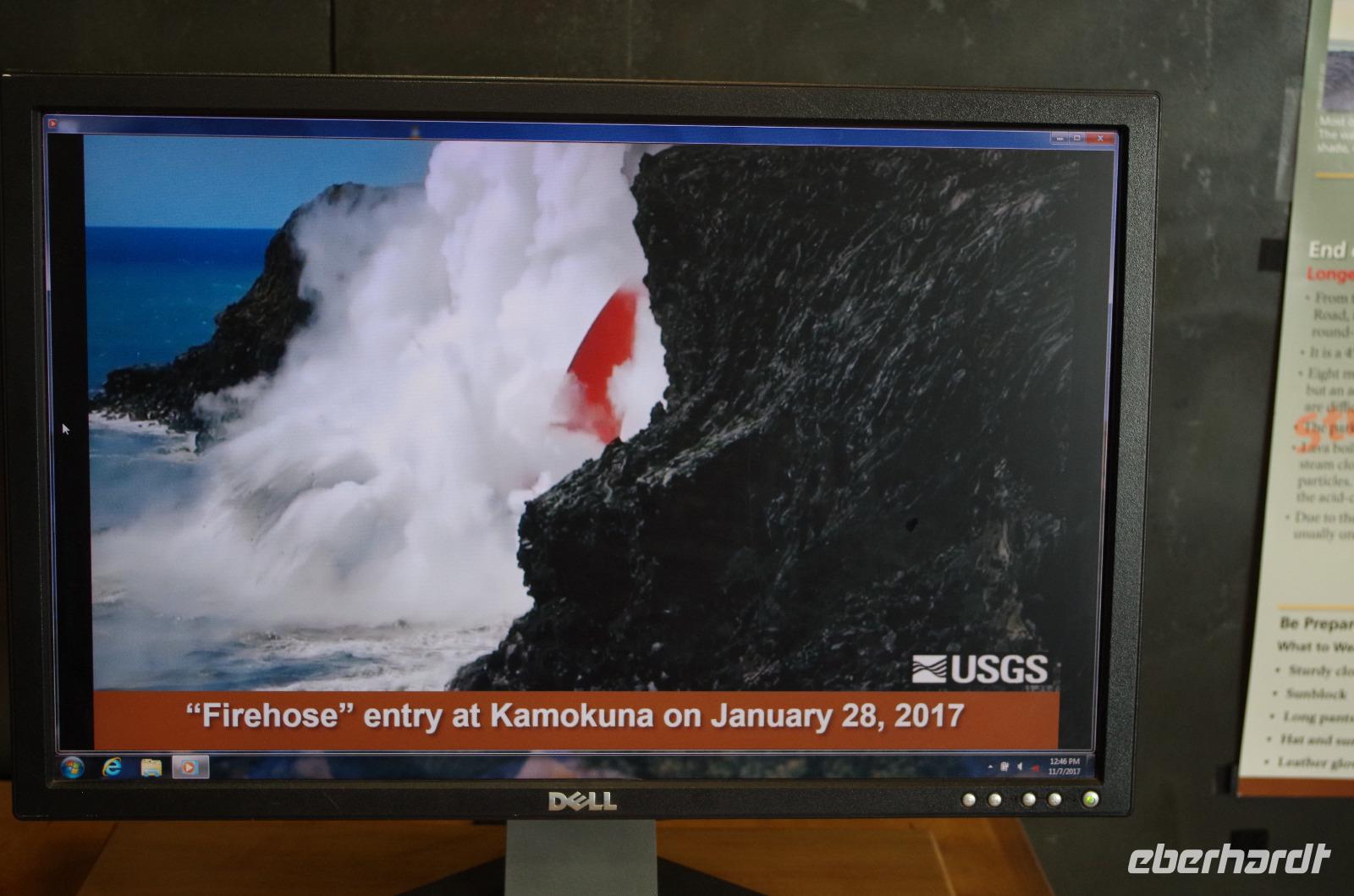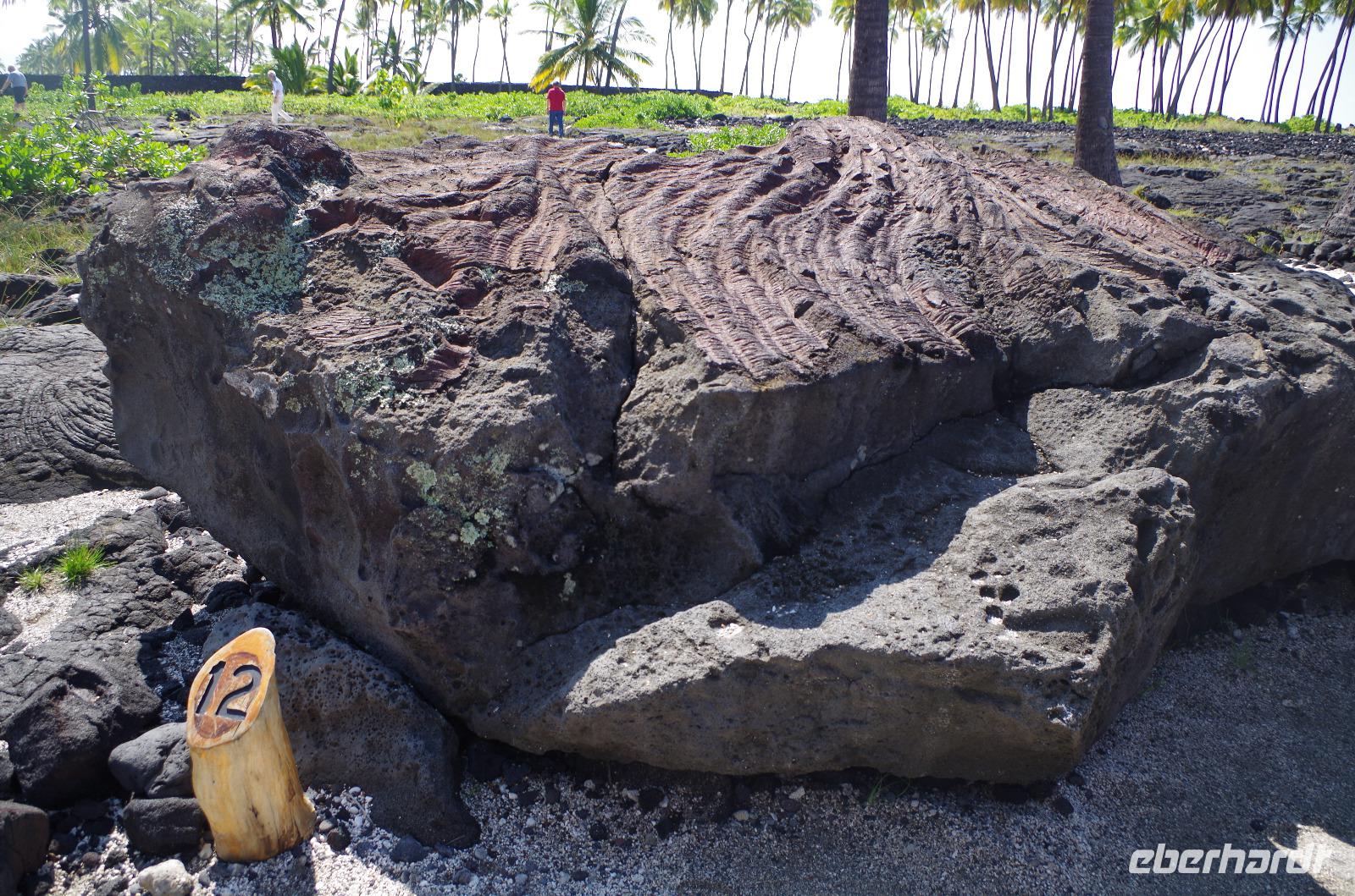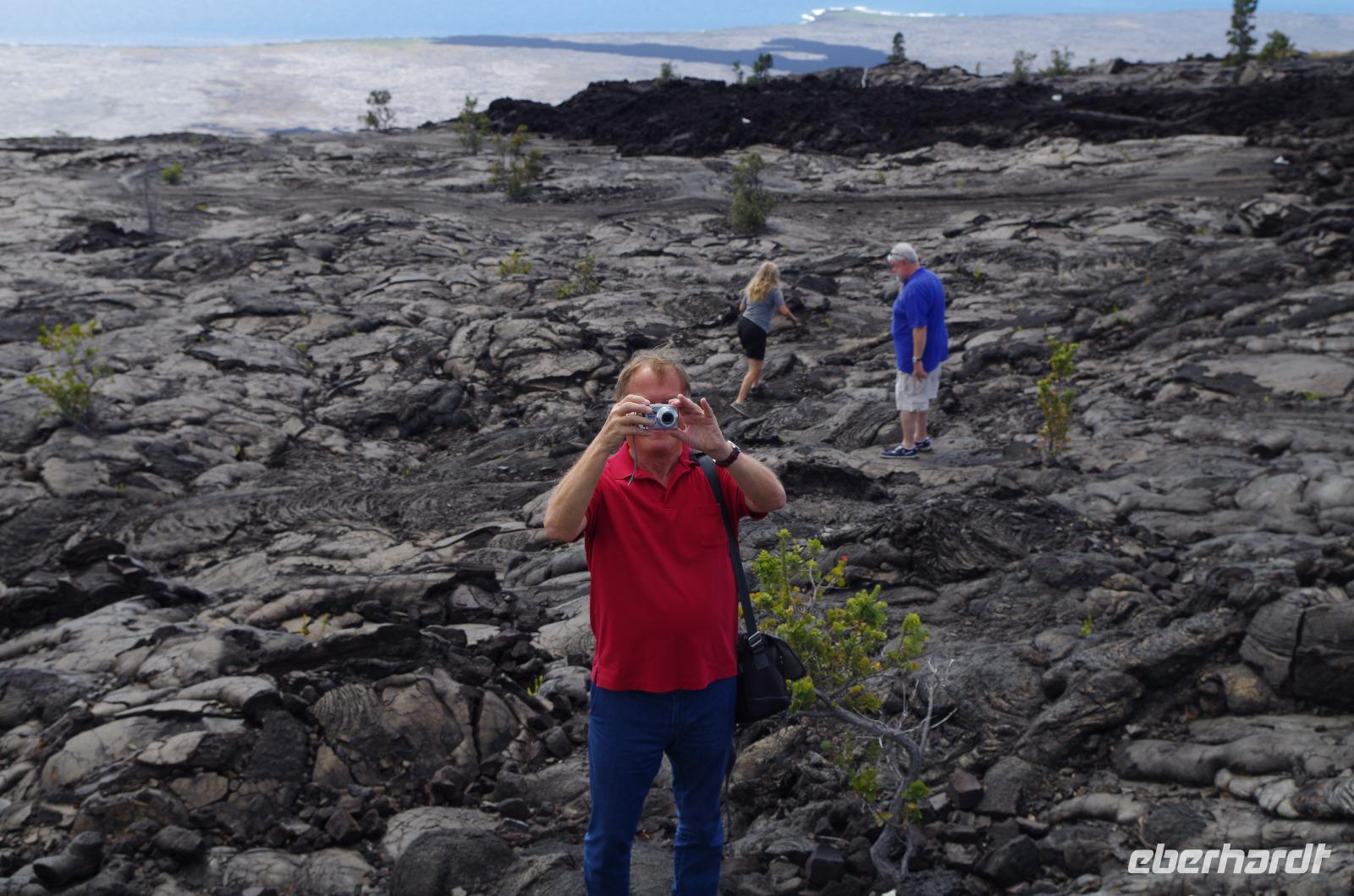 Die Sonne verwöhnt uns :-) Wir genießen bei strahlendem Sonnenschein auf der Außenterrasse ein leckeres Frühstück im Buffetrestaurant "Aloha Café" auf Deck 11 Mitte. Big Island ist die größte und jüngste der hawaiianischen Inseln. Sie besteht aus den fünf Vulkanen Mauna Kea, Mauna Loa, Hualalai, Kohala Mountain (Berg) und Kilauea. Im Halema'uma'u Kilauae lebt laut Volksglauben die hawaiianische Vulkangöttin mit Namen Pele. Auf der Insel werden wir auch den Ohia Baum sehen. Die Legende dazu besagt, dass die rachsüchtige Göttin Pele einen jungen hübschen Mann namens Ohia aus Eifersucht in den hässlichen Ohia Baum verwandelt hat, da sich der von Pele begehrte Mann in einer andere Frau mit Namen Lehua verliebt hatte. Lehua hatte sich auch in Ohia verliebt. Sie bittet sowohl Pele als auch die Götter darum, Ohia wieder in einen Menschen zu verwandeln. Pele lehnte dies ab, die Götter verwandelten die Geliebte stattdessen in die wunderschöne rote Lehua Blume, welche nun auf dem Ohia Baum wächst. Die Geliebten waren demnach wieder vereint. Noch heute glauben die Hawaiianer daran, dass das Pflücken einer solchen Blume Regen bringen wird, da durch das Pflücken die Geliebten getrennt werden. Um 08.00 Uhr treffen sich neun Gäste und eine Reisebegleitung bei der Rezeption in der Hotellobby "Capitol Atrium", um gemeinsam von Bord zu gehen und abermals die ersten Gäste zum heute gebuchten Ausflug ITO03 "Vulcano & Rainbow Falls" zu sein. Am Sammelpunkt im Hafengelände erhalten wir noch vor der Abfahrt unser Lunchpaket für den siebenstündigen Ausflug. Das Paket beinhaltet eine 0,5-Liter-Plastikflasche Wasser, einen Apfel, ein Truthahn-Sandwich, eine kleine Chips-Tüte und einen Schokoladenkeks pro Person. Gegen 08.45 Uhr beginnt der NCL-Ausflug ITO03 "Vulcano & Rainbow Falls" mit ebenfalls singendem Busfahrer Earl. Zuerst besuchen wir kurz nach 09.00 Uhr den Rainbow Falls Lookout mit Möglichkeit zur Harmoniepause. Wir betrachten unter anderem auch den großen Regenbaum (Samanea saman) "Monkey Pod Tree" und den Afrikanischen Tulpenbaum (Spathodea campanulata) "African Tulip Tree". Um 09.30 Uhr fahren wir weiter zum Thurston Lava Tube (Nahuku), welchen wir rund eine Stunde später besuchen. Unterwegs sehen wir Bäume mit den Früchten Guave, Avocado, Banane und Mango. Die Früchte am Straßenrand dürfen gepflückt werden, außer die Bäume befinden sich auf einem Grundstück. In Hilo zu wohnen ist sehr teuer. Ein einfaches Haus kostet rund 300.000 bis 400.000 US-Dollar, da gutes Material zum Hausbau so teuer ist. Zudem erklärt uns der Busfahrer den Unterschied zwischen normalen Häusern und einem Plantagenhaus: Bei einem Plantagenhaus ist das Dach für eine bessere Luftzirkulation höher gebaut, normale Häuser besitzen ein flaches Dach. Earl berichtet uns, dass Hilo in sechs Bezirke eingeteilt wird. Unser Busfahrer lebt in Puna. Dieser Bezirk ist rund 1.800 Quadratkilometer groß und circa 30.000 Einwohner leben hier. Der Lebensstandard in diesem Bezirk ist günstiger als in anderen Bezirken, da Puna mehrmals durch glühende Lava zerstört wird. Oftmals wissen Käufer aber nichts darüber. Erst vor zwei Jahren ist ein Drittel des Bezirks durch Lava zerstört wurden. Das größte Problem besteht darin, dass die Menschen nie wissen wann und wo die Eruption stattfindet. Ein Vulkan bricht langsam aus und auch die Lava strömt schleppend, so dass die Menschen in der Regel genügend Zeit zur Evakuierung haben. Von unserem Busfahrer erfahren wir, dass die berühmte Parker Ranch 1847 gegründet wurde. Sie erstreckt sich im Norden bei Weimea auf über 900 Quadratkilometer und beherbergt bis zu 60.000 Rinder. Die Kosten je Hektar belaufen sich jährlich auf 700 US-Dollar. Selbst der Busfahrer muss diesen Preis für seine 3-Hektar-Land zahlen, also 2.100 US-Dollar im Jahr. Auf dieser Ranch arbeiten zahlreiche hawaiianische Cowboys, auch Paniolo genannt. Die Ranch ist für Touristen geöffnet. Sie können sich die historischen Häuser anschauen und erfahren Details zur Geschichte der Familie Parker sowie zur Ankunft von John Palmer Parker auf der Insel. Weiter führt unsere Fahrt zum 1916 gegründeten Volcanoes National Park. Earl warnt uns davor, Steine aus dem Nationalpark mitzunehmen, da dies Unglück bringen soll. Die Steine werden im Volksglauben als das Haar oder die Fingernägel der Göttin Pele angesehen. Zudem erhält Earl ab und zu Briefe von Touristen, welche Steine mitgenommen haben, ihnen ein Unglück widerfahren ist und sie nun die Steine zurück auf die Insel senden. Unterwegs halten wir für einen individuellen Spaziergang über ehemalige Lavaströme in der Nähe vom Kealakomo Aussichtspunkt. Gegen 11.45 Uhr fahren wir zum Thomas A. Jaggar Museum. Wir besuchen dieses interessante Museum und beobachten den Rauch und die ab und zu aufsteigende Lava des Halema'uma'u Kraters. Am 03. Januar 1983 hat der gegenwärtige Ausbruch des Kilauea stattgefunden und seitdem ist das Land an dessen südlicher Küste um rund 283 Hektar angewachsen. Dieser Schildvulkan zählt zu den aktivsten Vulkanen weltweit. Es können zwei verschiedene Lavaformen aus dem Kilauea austreten. Einerseits ist dies die weniger gasförmige "Pahoehoe Lava", welche sich in kleinen Wellen langsam vorwärts bewegt. Dagegen strömt die "A'a Lava" mit brüchigen explosiven "Fingern" vorwärts, wenn sie mit Luft in Berührung kommt. Durch einen Lavatunnel, auch "Lava Tubes" genannt, wird die Lava eingespeist. Das Innere eines Lavatunnels kann durch eine Dachluke oder ein Oberlicht "Skylight", also durch ein eingestürztes Dach eines Tunnels, betrachtet werden. Die Menge der ausgebrochenen Lava in den letzten 30 Jahren beträgt rund vier Quadratkilometer. Zudem erfahren wir von unserem Busfahrer, dass sich eine neue Insel mit Namen Lo'ihi ungefähr 24 Kilometer vor der Küste und rund 969 Meter unter dem Meeresspiegel bildet. Eine halbe Stunde später fahren wir zum Orchideengarten "Akatsuka Orchid Gardens" und bestaunen