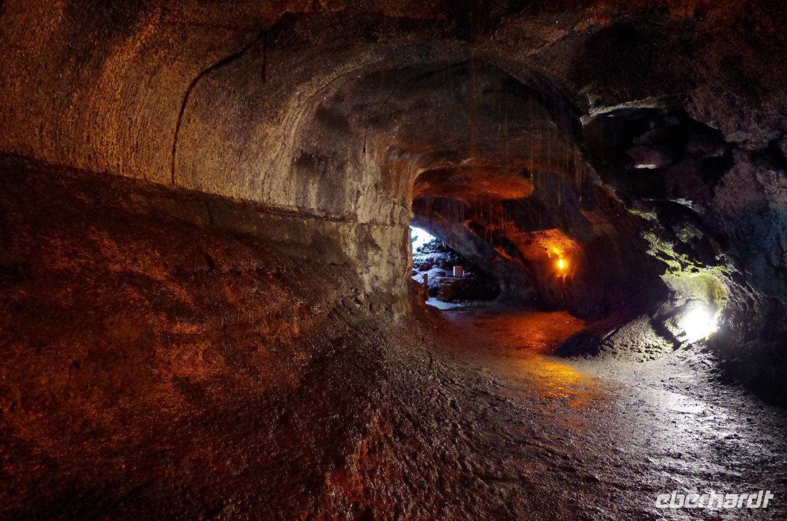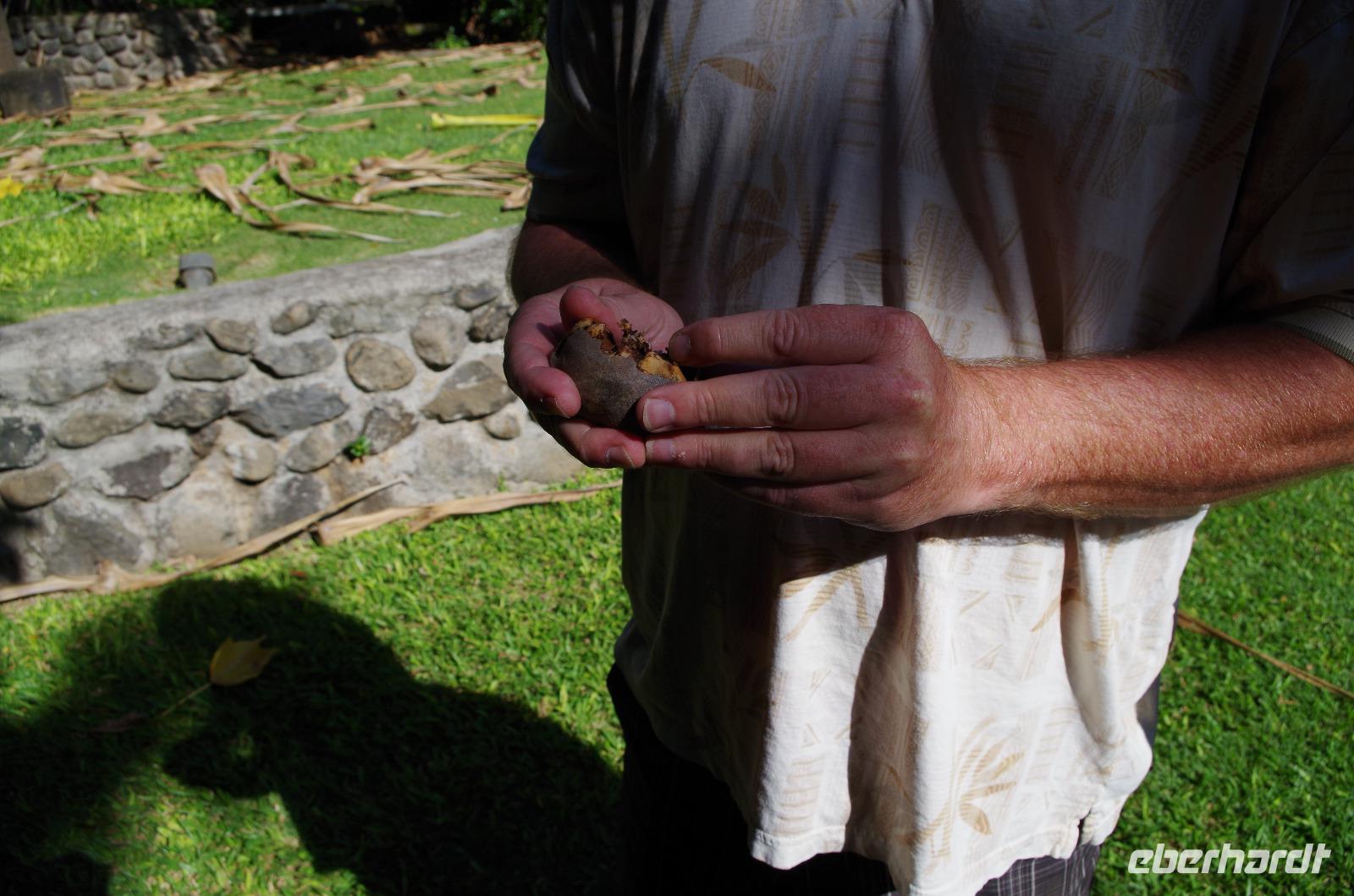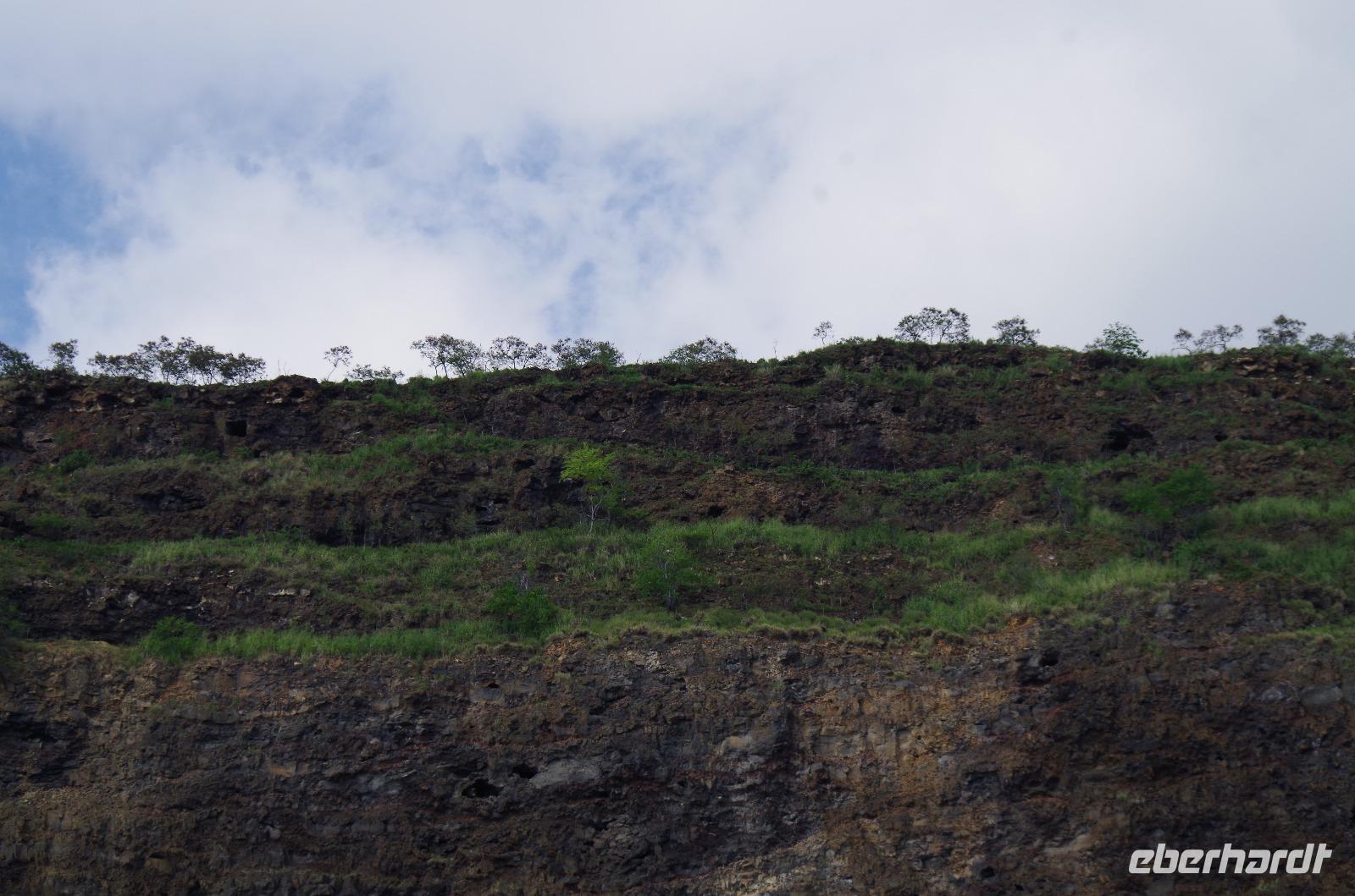 Die Sonne verwöhnt uns :-) Wir genießen bei strahlendem Sonnenschein auf der Außenterrasse ein leckeres Frühstück im Buffetrestaurant "Aloha Café" auf Deck 11 Mitte. Big Island ist die größte und jüngste der hawaiianischen Inseln. Sie besteht aus den fünf Vulkanen Mauna Kea, Mauna Loa, Hualalai, Kohala Mountain (Berg) und Kilauea. Im Halema'uma'u Kilauae lebt laut Volksglauben die hawaiianische Vulkangöttin mit Namen Pele. Auf der Insel werden wir auch den Ohia Baum sehen. Die Legende dazu besagt, dass die rachsüchtige Göttin Pele einen jungen hübschen Mann namens Ohia aus Eifersucht in den hässlichen Ohia Baum verwandelt hat, da sich der von Pele begehrte Mann in einer andere Frau mit Namen Lehua verliebt hatte. Lehua hatte sich auch in Ohia verliebt. Sie bittet sowohl Pele als auch die Götter darum, Ohia wieder in einen Menschen zu verwandeln. Pele lehnte dies ab, die Götter verwandelten die Geliebte stattdessen in die wunderschöne rote Lehua Blume, welche nun auf dem Ohia Baum wächst. Die Geliebten waren demnach wieder vereint. Noch heute glauben die Hawaiianer daran, dass das Pflücken einer solchen Blume Regen bringen wird, da durch das Pflücken die Geliebten getrennt werden. Um 08.00 Uhr treffen sich neun Gäste und eine Reisebegleitung bei der Rezeption in der Hotellobby "Capitol Atrium", um gemeinsam von Bord zu gehen und abermals die ersten Gäste zum heute gebuchten Ausflug ITO03 "Vulcano & Rainbow Falls" zu sein. Am Sammelpunkt im Hafengelände erhalten wir noch vor der Abfahrt unser Lunchpaket für den siebenstündigen Ausflug. Das Paket beinhaltet eine 0,5-Liter-Plastikflasche Wasser, einen Apfel, ein Truthahn-Sandwich, eine kleine Chips-Tüte und einen Schokoladenkeks pro Person. Gegen 08.45 Uhr beginnt der NCL-Ausflug ITO03 "Vulcano & Rainbow Falls" mit ebenfalls singendem Busfahrer Earl. Zuerst besuchen wir kurz nach 09.00 Uhr den Rainbow Falls Lookout mit Möglichkeit zur Harmoniepause. Wir betrachten unter anderem auch den großen Regenbaum (Samanea saman) "Monkey Pod Tree" und den Afrikanischen Tulpenbaum (Spathodea campanulata) "African Tulip Tree". Um 09.30 Uhr fahren wir weiter zum Thurston Lava Tube (Nahuku), welchen wir rund eine Stunde später besuchen. Unterwegs sehen wir Bäume mit den Früchten Guave, Avocado, Banane und Mango. Die Früchte am Straßenrand dürfen gepflückt werden, außer die Bäume befinden sich auf einem Grundstück. In Hilo zu wohnen ist sehr teuer. Ein einfaches Haus kostet rund 300.000 bis 400.000 US-Dollar, da gutes Material zum Hausbau so teuer ist. Zudem erklärt uns der Busfahrer den Unterschied zwischen normalen Häusern und einem Plantagenhaus: Bei einem Plantagenhaus ist das Dach für eine bessere Luftzirkulation höher gebaut, normale Häuser besitzen ein flaches Dach. Earl berichtet uns, dass Hilo in sechs Bezirke eingeteilt wird. Unser Busfahrer lebt in Puna. Dieser Bezirk ist rund 1.800 Quadratkilometer groß und circa 30.000 Einwohner leben hier. Der Lebensstandard in diesem Bezirk ist günstiger als in anderen Bezirken, da Puna mehrmals durch glühende Lava zerstört wird. Oftmals wissen Käufer aber nichts darüber. Erst vor zwei Jahren ist ein Drittel des Bezirks durch Lava zerstört wurden. Das größte Problem besteht darin, dass die Menschen nie wissen wann und wo die Eruption stattfindet. Ein Vulkan bricht langsam aus und auch die Lava strömt schleppend, so dass die Menschen in der Regel genügend Zeit zur Evakuierung haben. Von unserem Busfahrer erfahren wir, dass die berühmte Parker Ranch 1847 gegründet wurde. Sie erstreckt sich im Norden bei Weimea auf über 900 Quadratkilometer und beherbergt bis zu 60.000 Rinder. Die Kosten je Hektar belaufen sich jährlich auf 700 US-Dollar. Selbst der Busfahrer muss diesen Preis für seine 3-Hektar-Land zahlen, also 2.100 US-Dollar im Jahr. Auf dieser Ranch arbeiten zahlreiche hawaiianische Cowboys, auch Paniolo genannt. Die Ranch ist für Touristen geöffnet. Sie können sich die historischen Häuser anschauen und erfahren Details zur Geschichte der Familie Parker sowie zur Ankunft von John Palmer Parker auf der Insel. Weiter führt unsere Fahrt zum 1916 gegründeten Volcanoes National Park. Earl warnt uns davor, Steine aus dem Nationalpark mitzunehmen, da dies Unglück bringen soll. Die Steine werden im Volksglauben als das Haar oder die Fingernägel der Göttin Pele angesehen. Zudem erhält Earl ab und zu Briefe von Touristen, welche Steine mitgenommen haben, ihnen ein Unglück widerfahren ist und sie nun die Steine zurück auf die Insel senden. Unterwegs halten wir für einen individuellen Spaziergang über ehemalige Lavaströme in der Nähe vom Kealakomo Aussichtspunkt. Gegen 11.45 Uhr fahren wir zum Thomas A. Jaggar Museum. Wir besuchen dieses interessante Museum und beobachten den Rauch und die ab und zu aufsteigende Lava des Halema'uma'u Kraters. Am 03. Januar 1983 hat der gegenwärtige Ausbruch des Kilauea stattgefunden und seitdem ist das Land an dessen südlicher Küste um rund 283 Hektar angewachsen. Dieser Schildvulkan zählt zu den aktivsten Vulkanen weltweit. Es können zwei verschiedene Lavaformen aus dem Kilauea austreten. Einerseits ist dies die weniger gasförmige "Pahoehoe Lava", welche sich in kleinen Wellen langsam vorwärts bewegt. Dagegen strömt die "A'a Lava" mit brüchigen explosiven "Fingern" vorwärts, wenn sie mit Luft in Berührung kommt. Durch einen Lavatunnel, auch "Lava Tubes" genannt, wird die Lava eingespeist. Das Innere eines Lavatunnels kann durch eine Dachluke oder ein Oberlicht "Skylight", also durch ein eingestürztes Dach eines Tunnels, betrachtet werden. Die Menge der ausgebrochenen Lava in den letzten 30 Jahren beträgt rund vier Quadratkilometer. Zudem erfahren wir von unserem Busfahrer, dass sich eine neue Insel mit Namen Lo'ihi ungefähr 24 Kilometer vor der Küste und rund 969 Meter unter dem Meeresspiegel bildet. Eine halbe Stunde später fahren wir zum Orchideengarten "Akatsuka Orchid Gardens" und bestaunen