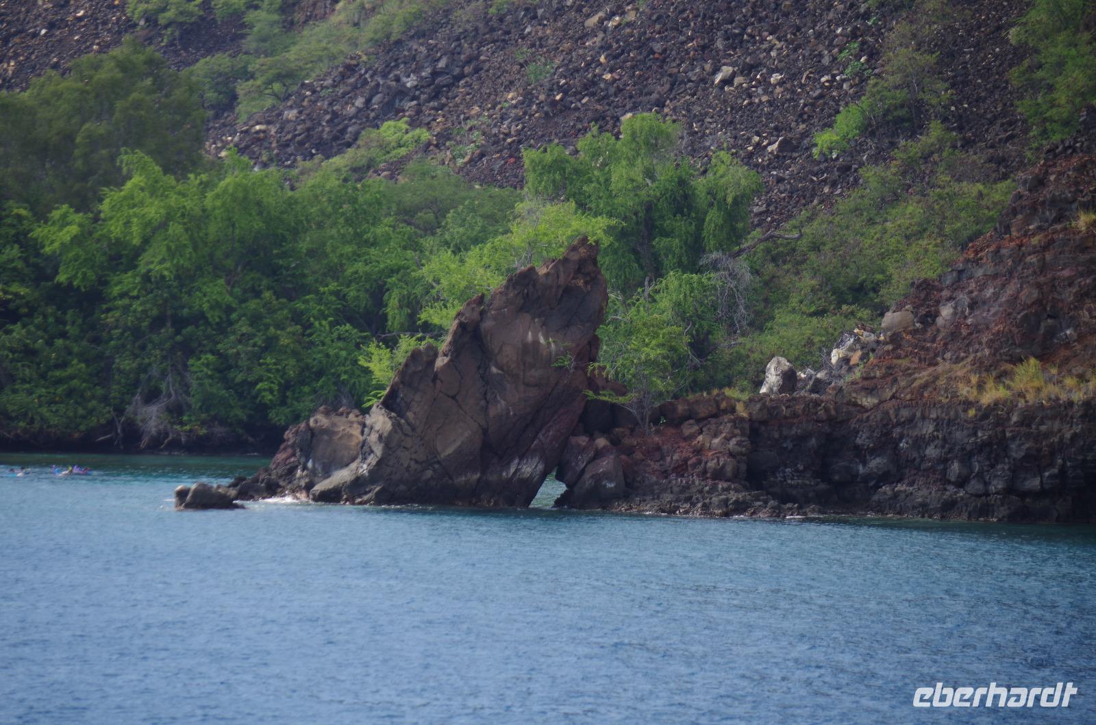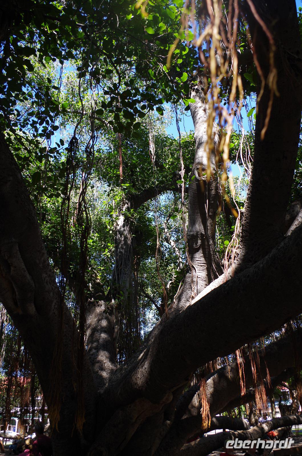 An unserem zweiten Tag auf der Insel Maui werden wir von der Sonne geweckt und gönnen uns unter anderem ein gutes Frühstück im Buffetrestaurant "Aloha Café" auf Deck 11 Mitte. Die gesamte Gruppe trifft sich heute um 09.00 Uhr bei der Rezeption in der Hotellobby "Capitol Atrium". Dieser auf dem Schiff zentral gelegene Ort eignet sich perfekt als Treffpunkt zur Besprechung oder für Ausflüge der Eberhardt Gäste. Heute möchten wir gern eine individuell gestaltete Tour auf Maui im Taxi unternehmen. Dafür hat die Reisebegleitung bereits am Vortag zwei Großraumtaxis organisiert. Der Preis pro Taxi pro Stunde ist abhängig von der Personenanzahl und startet bei 75 USD. Das Trinkgeld können die Gäste selbst bestimmen. Unsere zwei Taxis mit den Fahrern Art und Elijah warten bereits wie verabredet um 09.00 Uhr im Hafengelände auf uns. Die Sitze in den modernen Taxen sind wirklich bequem. Zudem ist es schön, nicht mit gefühlt 50 Personen im Bus zu sitzen. Die Insel Maui ist mit einer Fläche von 1.885 Quadratkilometern und 145.000 Einwohnern die zweitgrößte Insel. Sie wird auch als "The Valley Isle" bezeichnet, da das grüne und fruchtbare "Central Maui" vom rund 3.055 Meter hohen inaktiven Vulkan Heleakala im Osten und vom mit 1.764 Metern kleineren Vulkan Puu Kukui im Westen wie ein Tal eingeschlossen wird. Maui trägt den Namen des polynesischen Halbgotts des Feuers mit Namen Maui. Der letzte König der Insel hieß King Kamehameha Kahekili. Die Hauptwirtschaftszweige sind Landwirtschaft und Tourismus. Wir fahren zuerst zum rund 20 Minuten entfernten Iao Valley und Iao Needle. Die Zufahrt ist zwar aufgrund von Unwetter und Baumaßnahmen gesperrt, aber dennoch können wir einen kleinen Rundgang unternehmen. Nach 09.30 Uhr geht unsere Reise weiter zum Bailey House Museum, welches wir auch besuchen. Mit der sehr netten Besitzerin sprechen wir sogar in Deutsch. Gegen 10.10 Uhr fahren wir nach Lahaina, die ehemalige Hauptstadt von Hawaii. Unterwegs legen wir mehrere kleine Foto-Stopps ein. Zuerst in einem eher vornehmeren Stadtteil mit tollem Blick auf die "Pride of America" und die Stadt Kahului, dann eine Harmoniepause bei der Maui Tropical Plantation sowie einen Stopp am Launiupoko Beach Park kurz bevor wir Lahaina erreichen. Bis 1850 war Lahaina die hawaiianische Hauptstadt, erst danach ist sie nach Honolulu verlegt worden. Zudem ist diese Stadt für den Walfang bekannt. Gegen 11.15 Uhr besichtigen wir Hale Pa'ahao, ein ehemaliges Gefängnis in Lahaina. Wenig später erreichen wir auch dieses lebhafte touristische Städtchen mit über 11.000 Einwohnern und der bekannten Front St, eine bei rund zwei Millionen Touristen pro Jahr beliebten Touristen- und Einkaufsstraße. Besonders interessiert uns der aus Indien eingeführte und 1873 mit einer Größe von 2,4 Metern vor dem Gerichtsgebäude im Ortszentrum gepflanzte Banyanbaum, auch Bengalische Feige genannt. Heute ist dieser Baum über 18 Meter hoch und erstreckt sich über den ganzen Park. Seine Größe mit den ausladenden Ästen umfasst einen ganzen Straßenblock von rund 2.697 Quadratmetern und spendet bei strahlendem Sonnenschein sicher für jeden Reisegast ein schattiges Plätzchen. Entlang der Front St befinden sich viele kleine Museen wie das Baldwin House oder das Wo Hing Museum. Ein Blick in eine kleine Pearl Factory darf da auch nicht fehlen! Im ABC Store kaufen einige Gäste noch ein Wasser oder Softgetränk und dann geht es auch schon weiter zum Strand Ka'anapali Beach, welchen wir gegen 12.30 Uhr erreichen. Wir unternehmen einen kleinen Spaziergang am Ka'anapali Beach in der Nähe vom Hotel Marriott's Maui Ocean Club entlang oder nutzen das kostenfreie unbegrenzte WLAN des Marriott's Hotels. Die Badesachen und Handtücher haben wir mitgenommen, jedoch geht nur eine Reisegast aufgrund des kurzen Aufenthalts im über 20 Grad warmen Wasser schwimmen. Um 13.00 Uhr fahren wir zum Schiff zurück. Wir legen unterwegs einen Foto-Stopp am "Whale Lookout Point" ein. Die Wale wollen sich uns heute zwar nicht zeigen, die Aussicht ist dennoch sehr schön. Gegen 14.15 Uhr sind wir wieder im Hafen von Kuhului, Maui zurück und wir verabschieden uns freundlich von unseren Taxifahrern Art und Elijah. Ein Gruppenfoto darf an dieser Stelle natürlich nicht fehlen! An Bord findet um 15.00 Uhr die Tanzstunde zum "Hawaiianische Hula" in der Mardi Gras Lounge auf Deck 6 statt. Auch wir üben uns im Hula-Tanzen, bis zum Ende der Kreuzfahrt können wir das sicher nahezu perfekt ;-) Um 16.00 Uhr basteln wir unter Anleitung unsere eigene Kukui-Nuss-Halskette im Hollywood Theater auf Deck 5. Es wird hawaiianische Musik mit Lei Aloha und Aloha Lanai um 17.15 Uhr gespielt. Rund fünfzehn Minuten später müssen alle Gäste an Bord sein. Zur gewohnten Uhrzeit um 18.00 Uhr treffen wir uns zum Abendessen im uns bestens bekannten Restaurant "Skyline" auf Deck 5 Heck. Erst wundern wir uns noch, dass wir nicht wie geplant um 18.00 Uhr abgelegt haben, dann folgt auch schon die Durchsage vom Kapitän. Auf der für Maui bekannten Straße nach Hana "Road to Hana" hat es einen Unfall gegeben und mehrere Busse von NCL stecken im Stau fest, da es auch nur eine Küstenstraße gibt. Die Ausschiffung verschiebt sich zwar fast um vier Stunden, dennoch legen wir am nächsten Tag zur geplanten Uhrzeit in Hilo auf Big Island an. Ab 18.00 Uhr findet in allen Bereichen auf der NCL der Gala-Abend "Norwegian's Night Out" statt. Wer möchte, kann den Smoking oder das Cocktail-Kleid anziehen, Pflicht ist es aber nicht. Um 21.00 Uhr heißt es wieder Showtime "Lichter, Kamera, Musik!" im Hollywood Theater auf Deck 5. Nach der Show fahren wir gegen 22.00 Uhr endlich Richtung Big Island. Die Fahrt mit der NCL "Pride of America" von Kahului, Maui nach Hilo, Big Island beträgt rund 256,5 Kilometer. Wir freuen uns schon darauf :-)