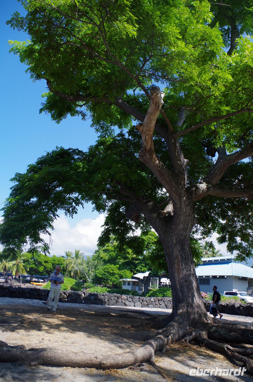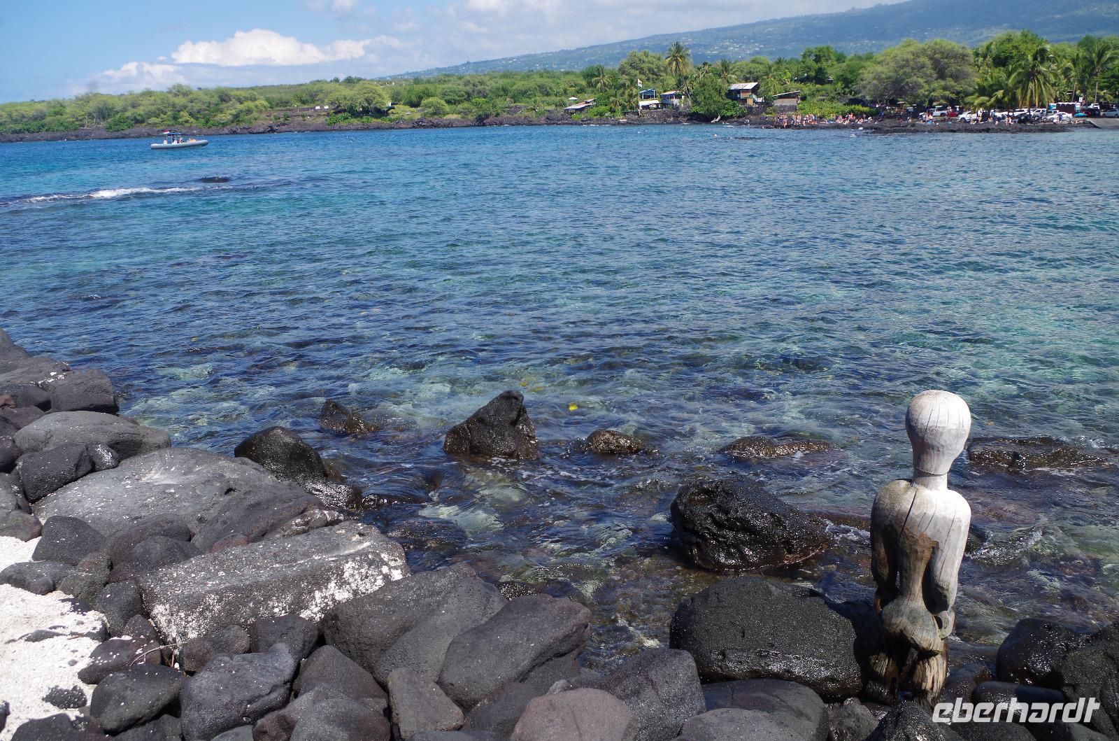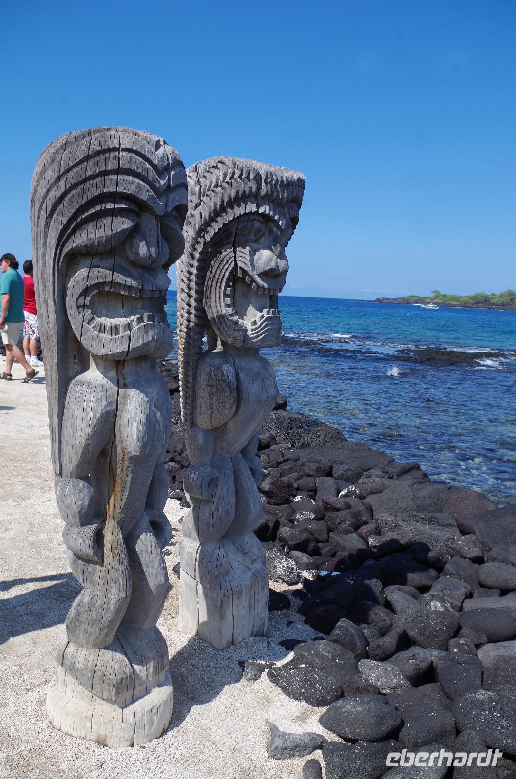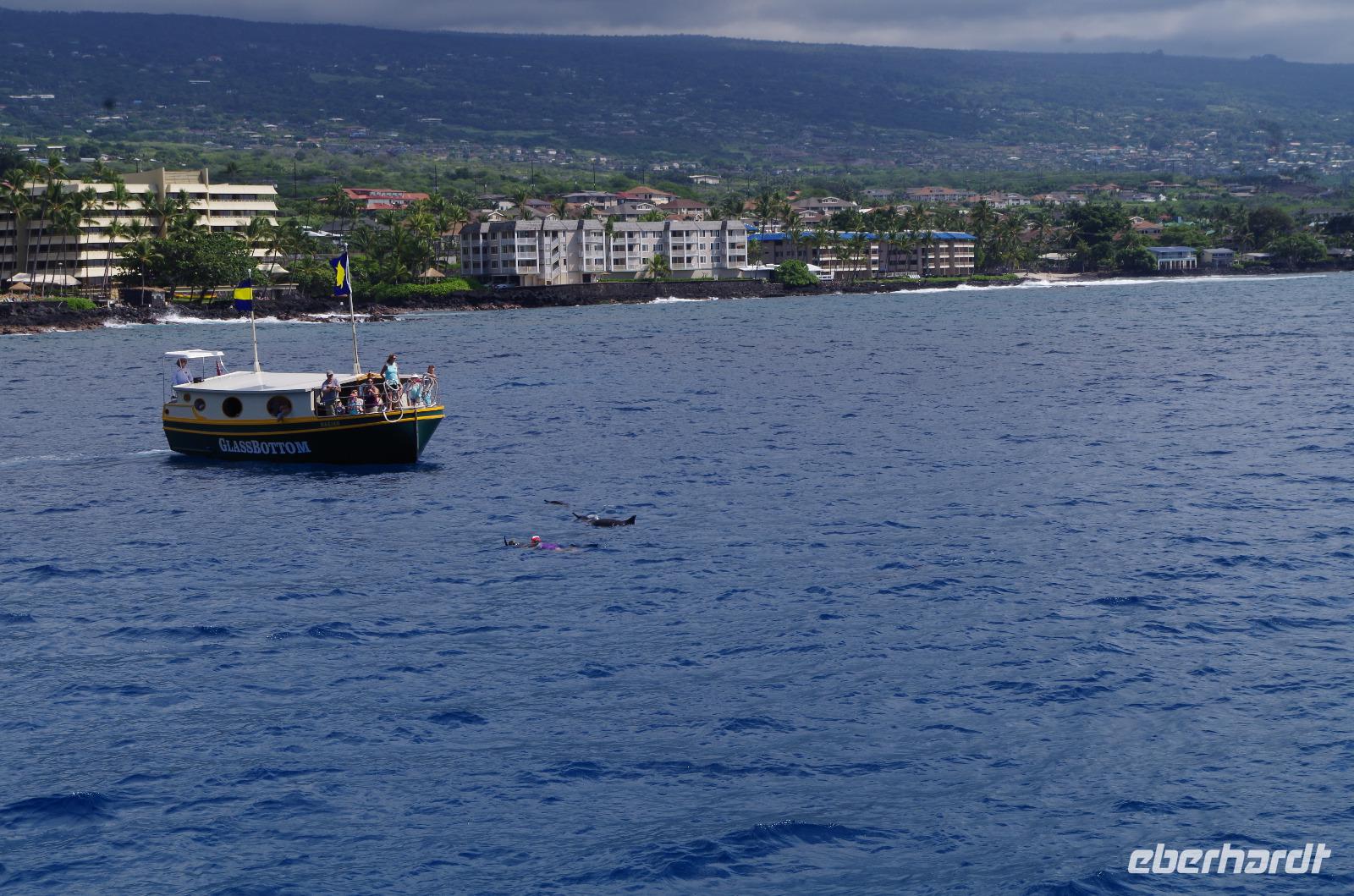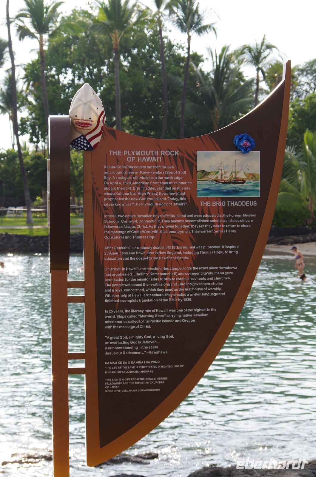 Wie könnte eine Tag besser starten als mit traumhaften Wetter und einem reichhaltigen Frühstück? Gut gestärkt treffen sich acht Reisegäste um 08.30 Uhr in der Hotellobby "Capitol Atrium" auf Deck 5 Mitte. Heute heißt es "Tendern", so dass wir nicht individuell von Bord gehen werden, sondern zum auf unserem Ticket des Ausflugs KOA45 "Kona zu Land und zu Wasser" hinterlegten Treffpunkt, das Hollywood Theater auf Deck 5, laufen. Wir starten gemeinsam mit den anderen NCL-Gästen zum Ausflug. Unsere Sitzplätze in der ersten Reihe tauschen wir heute ausnahmsweise gegen die Sitzplätze im hinteren Bereich des Busses, da wir aber nur am Vormittag mit dem Bus fahren, sind die Sitzplätze für uns in Ordnung. Das Lunchpaket unseres achtstündigen Ausflugs erhalten wir erst zur Bootsfahrt am frühen Nachmittag. Gegen 08.45 Uhr startet unsere "Tender-Fahrt" zum Hafen von Kona. Die Fahrt dauert rund zehn Minuten, mit Warten und Anstehen sind rund 30 Minuten einzuplanen. Um 09.15 Uhr beginnt der NCL-Ausflug ITO03 KOA45 "Kona zu Land und zu Wasser" mit natürlich singendem Busfahrer. Die hawaiianischen Busfahrer haben scheinbar alle eine gute Gesangsstimme, muss wohl an den Genen liegen *grins* Während wir gestern in Hilo gehört haben, dass es auf dieser Seite von Big Island an fast 250 Tagen im Jahr regnen soll, ist dies in Kona nicht der Fall. Insgesamt ist Big Island rund 10.473 Quadratkilometer groß mit einer Nord-Süd-Ausdehnung von circa 149 Kilometern und etwa 122 Kilometer breit von Ost nach West. Die gesamte Insel zählt circa 200.000 Einwohner, während ungefähr 70.000 Menschen in Hilo und rund 60.000 Personen in Kona leben. Zuerst schauen wir um 09.45 Uhr im Besucherzentrum "Royal Kona Coffee - Mill & Museum" vorbei, wo wir eine Harmoniepause einlegen und den für diese Stadt bekannten Kona-Kaffee probieren können. Unter Umständen wird der ein oder andere Reisegast womöglich durchaus stärkeren Kaffee zuhause gewohnt sein, aber probieren wir selbst! Im Souvenirladen kann der Kona-Kaffee und weitere Andenken gekauft werden. Nächster Programmpunkt ist der Besuch der St. Benedict Roman Catholic Church in Honaunau auf Big Island. Eine Erklärung in Englisch zu Hawaiis erster im Inneren nach hawaiianischer Art bemalter Kirche erfolgt durch eine charmante Kirchenmitarbeiterin. Die Malereien erzählen die Geschichte des Pfarrers Damien, wie er 1864 nach Hawaii gekommen ist. Die zusammenfasste Übersetzung erfolgt durch die Reisebegleitung. Anschließend fahren wir um 10.50 Uhr zum Nationalpark "Pu'uhonua o Honaunau", welchen wir rund 25 Minuten später besuchen. Vom Busfahrer erhalten wir eine englische Beschreibung, im Besucherzentrum den Plan vom Nationalpark mit Erklärung der sechszehn Stationen in Deutsch. Am Eingang sehen wir einen Nonibaum (Morinda citrifolia), dessen Früchte als Medizin bei Hautverletzungen verwendet werden. Gegen 12.00 Uhr fahren wir wieder zum Hafen zurück, wo wir gegen 13.00 Uhr angekommen. Nur fünfzehn Minuten später beginnt unsere dreistündige Bootsfahrt mit dem Katamaran der Firma "Body Glove". Bereits kurz nach Abfahrt erhalten wir unser Lunchpaket, bestehend aus einer Art Nudelsalat in einem kleinen Becher, einer kleinen Chips-Tüte und einem Burger. Die Getränke können entweder selbst an der Bar geholt werden oder das Bordpersonal serviert sie den Gästen. Alkoholfreie Getränke sind kostenfrei, Drinks mit Alkohol können die Gäste an der Bar gegen Aufpreis bestellen. Wir haben sonniges Traumwetter und erhalten zudem von einer englischsprachigen Historikerin an Bord viele weitere Erzählungen zur Geschichte Hawaiis. Begleitet werden wir von einer Vielzahl an Delphinen, welche sehr nah an das Boot herankommen. Zum Nachmittag werden uns noch Schokoladenkekse gereicht. Wir fahren rund eineinhalb Stunden bis zum Kapitän Thomas Cook Denkmal für einen Foto-Stopp und zur Delphin-Beobachtung. Anschließend geht es auf der gleichen Strecke wieder zum Hafen zurück. Um 16.00 Uhr erreichen wir den Hafen und unternehmen einen kurzen Spaziergang am Wasser entlang. Beim Hotel Courtyard by Marriott King Kamehameha's Kona Beach Hotel kann kostenfreies unbegrenztes WLAN empfangen werden. Wir fahren im "Tender-Boot" um 16.30 Uhr zurück zum Schiff, das letzte Tender-Boot soll um 17.00 Uhr starten. Um 17.30 Uhr ist die Abfahrt der "Pride of America" von Kano, Big Island nach Nawiliwili, Kauai, die Fahrt beträgt rund 438,1 Kilometer. Wir treffen uns zur gewohnten Uhrzeit um 18.00 Uhr im uns bereits bestens bekannten Restaurant "Skyline" auf Deck 5 Heck und genießen ein köstliches Abendessen. Um 21.00 Uhr findet die Show "Tenors of Rock" im Hollywood Theater auf Deck 5 statt. Die Musik ist allerdings viel zu laut, so dass wir das Theater bereits nach wenigen Minuten wieder verlassen und uns auf die Kabinen zurückziehen. Wir wünschen eine gute Nacht und freuen uns schon auf die kommenden spannenden Abenteuer auf Kauai.
