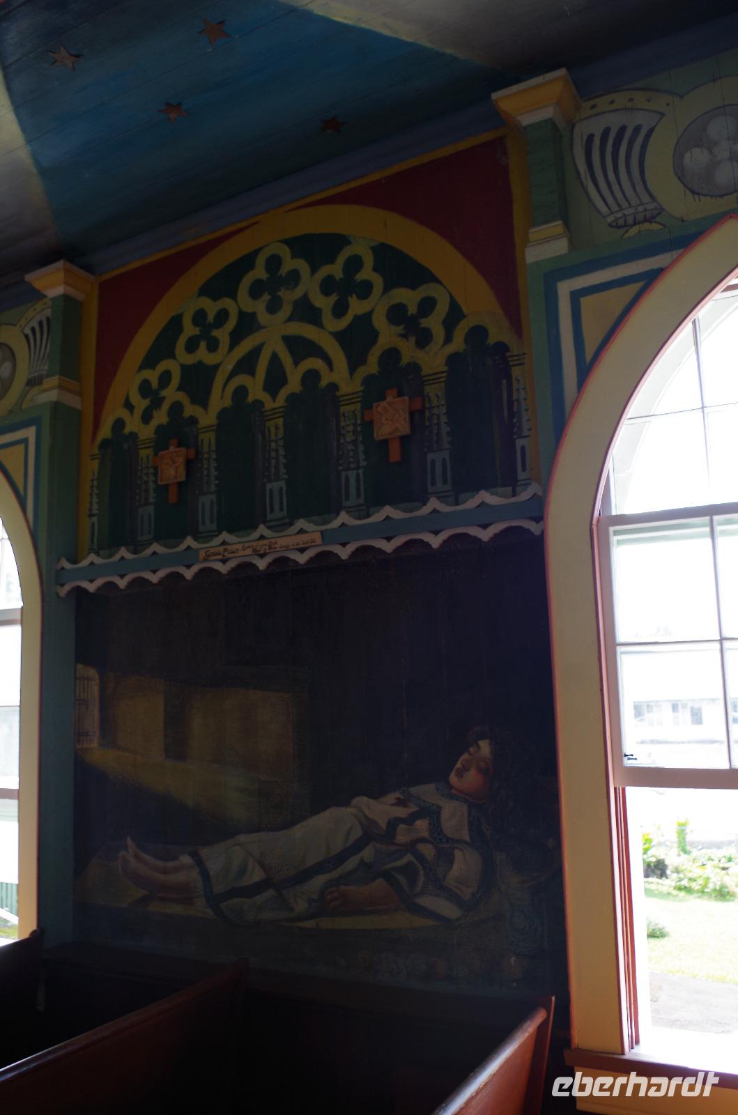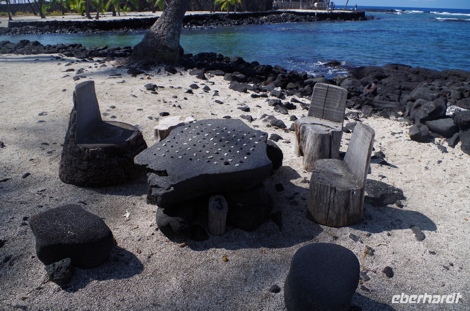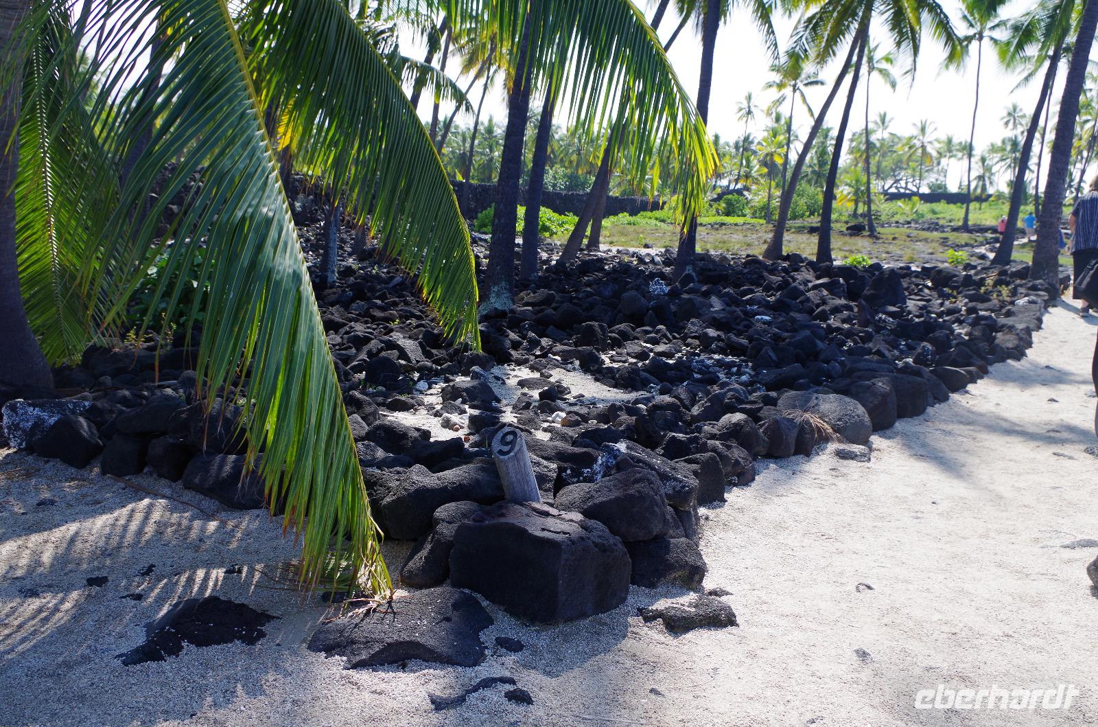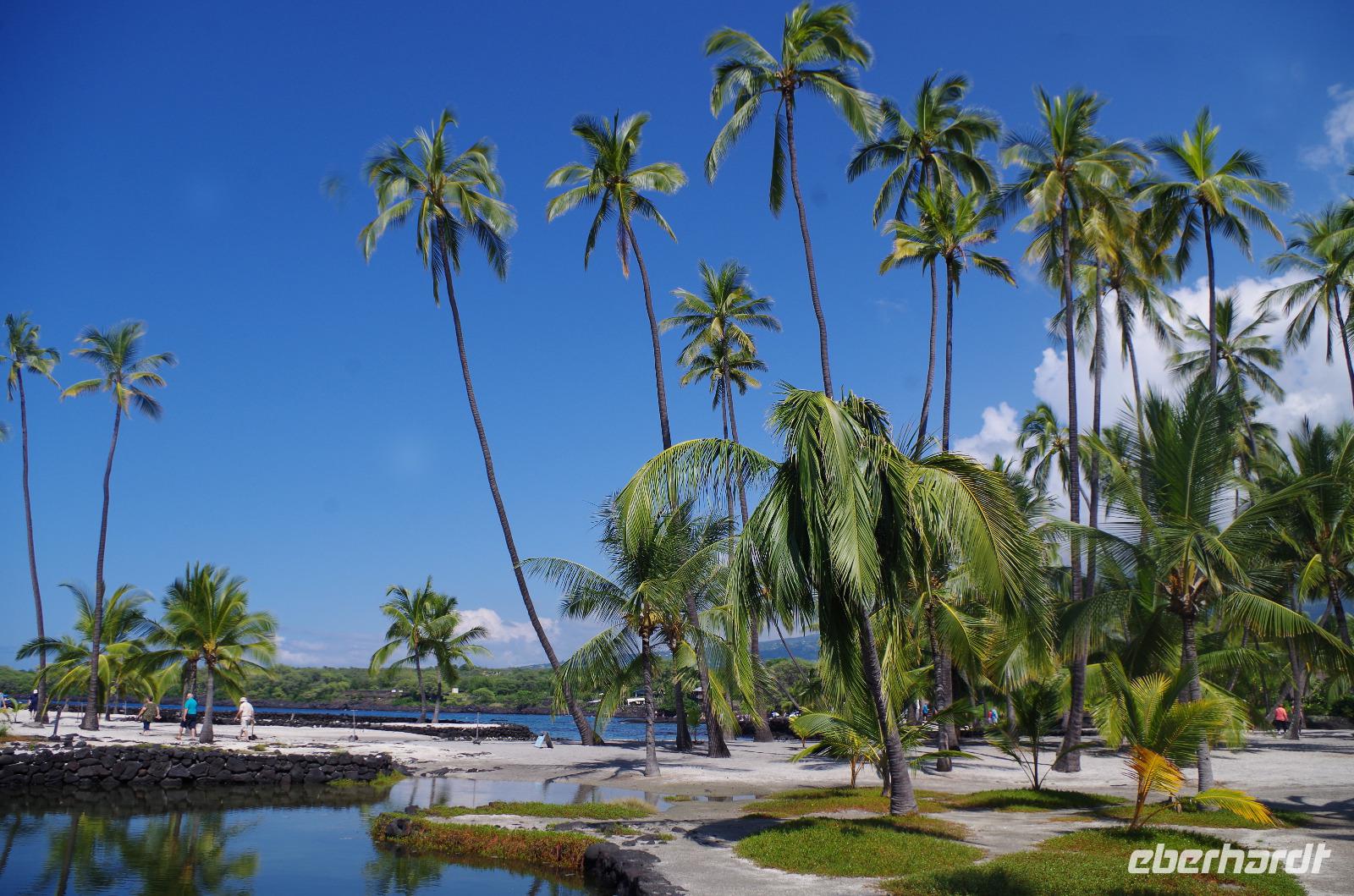 Wie könnte eine Tag besser starten als mit traumhaften Wetter und einem reichhaltigen Frühstück? Gut gestärkt treffen sich acht Reisegäste um 08.30 Uhr in der Hotellobby "Capitol Atrium" auf Deck 5 Mitte. Heute heißt es "Tendern", so dass wir nicht individuell von Bord gehen werden, sondern zum auf unserem Ticket des Ausflugs KOA45 "Kona zu Land und zu Wasser" hinterlegten Treffpunkt, das Hollywood Theater auf Deck 5, laufen. Wir starten gemeinsam mit den anderen NCL-Gästen zum Ausflug. Unsere Sitzplätze in der ersten Reihe tauschen wir heute ausnahmsweise gegen die Sitzplätze im hinteren Bereich des Busses, da wir aber nur am Vormittag mit dem Bus fahren, sind die Sitzplätze für uns in Ordnung. Das Lunchpaket unseres achtstündigen Ausflugs erhalten wir erst zur Bootsfahrt am frühen Nachmittag. Gegen 08.45 Uhr startet unsere "Tender-Fahrt" zum Hafen von Kona. Die Fahrt dauert rund zehn Minuten, mit Warten und Anstehen sind rund 30 Minuten einzuplanen. Um 09.15 Uhr beginnt der NCL-Ausflug ITO03 KOA45 "Kona zu Land und zu Wasser" mit natürlich singendem Busfahrer. Die hawaiianischen Busfahrer haben scheinbar alle eine gute Gesangsstimme, muss wohl an den Genen liegen *grins* Während wir gestern in Hilo gehört haben, dass es auf dieser Seite von Big Island an fast 250 Tagen im Jahr regnen soll, ist dies in Kona nicht der Fall. Insgesamt ist Big Island rund 10.473 Quadratkilometer groß mit einer Nord-Süd-Ausdehnung von circa 149 Kilometern und etwa 122 Kilometer breit von Ost nach West. Die gesamte Insel zählt circa 200.000 Einwohner, während ungefähr 70.000 Menschen in Hilo und rund 60.000 Personen in Kona leben. Zuerst schauen wir um 09.45 Uhr im Besucherzentrum "Royal Kona Coffee - Mill & Museum" vorbei, wo wir eine Harmoniepause einlegen und den für diese Stadt bekannten Kona-Kaffee probieren können. Unter Umständen wird der ein oder andere Reisegast womöglich durchaus stärkeren Kaffee zuhause gewohnt sein, aber probieren wir selbst! Im Souvenirladen kann der Kona-Kaffee und weitere Andenken gekauft werden. Nächster Programmpunkt ist der Besuch der St. Benedict Roman Catholic Church in Honaunau auf Big Island. Eine Erklärung in Englisch zu Hawaiis erster im Inneren nach hawaiianischer Art bemalter Kirche erfolgt durch eine charmante Kirchenmitarbeiterin. Die Malereien erzählen die Geschichte des Pfarrers Damien, wie er 1864 nach Hawaii gekommen ist. Die zusammenfasste Übersetzung erfolgt durch die Reisebegleitung. Anschließend fahren wir um 10.50 Uhr zum Nationalpark "Pu'uhonua o Honaunau", welchen wir rund 25 Minuten später besuchen. Vom Busfahrer erhalten wir eine englische Beschreibung, im Besucherzentrum den Plan vom Nationalpark mit Erklärung der sechszehn Stationen in Deutsch. Am Eingang sehen wir einen Nonibaum (Morinda citrifolia), dessen Früchte als Medizin bei Hautverletzungen verwendet werden. Gegen 12.00 Uhr fahren wir wieder zum Hafen zurück, wo wir gegen 13.00 Uhr angekommen. Nur fünfzehn Minuten später beginnt unsere dreistündige Bootsfahrt mit dem Katamaran der Firma "Body Glove". Bereits kurz nach Abfahrt erhalten wir unser Lunchpaket, bestehend aus einer Art Nudelsalat in einem kleinen Becher, einer kleinen Chips-Tüte und einem Burger. Die Getränke können entweder selbst an der Bar geholt werden oder das Bordpersonal serviert sie den Gästen. Alkoholfreie Getränke sind kostenfrei, Drinks mit Alkohol können die Gäste an der Bar gegen Aufpreis bestellen. Wir haben sonniges Traumwetter und erhalten zudem von einer englischsprachigen Historikerin an Bord viele weitere Erzählungen zur Geschichte Hawaiis. Begleitet werden wir von einer Vielzahl an Delphinen, welche sehr nah an das Boot herankommen. Zum Nachmittag werden uns noch Schokoladenkekse gereicht. Wir fahren rund eineinhalb Stunden bis zum Kapitän Thomas Cook Denkmal für einen Foto-Stopp und zur Delphin-Beobachtung. Anschließend geht es auf der gleichen Strecke wieder zum Hafen zurück. Um 16.00 Uhr erreichen wir den Hafen und unternehmen einen kurzen Spaziergang am Wasser entlang. Beim Hotel Courtyard by Marriott King Kamehameha's Kona Beach Hotel kann kostenfreies unbegrenztes WLAN empfangen werden. Wir fahren im "Tender-Boot" um 16.30 Uhr zurück zum Schiff, das letzte Tender-Boot soll um 17.00 Uhr starten. Um 17.30 Uhr ist die Abfahrt der "Pride of America" von Kano, Big Island nach Nawiliwili, Kauai, die Fahrt beträgt rund 438,1 Kilometer. Wir treffen uns zur gewohnten Uhrzeit um 18.00 Uhr im uns bereits bestens bekannten Restaurant "Skyline" auf Deck 5 Heck und genießen ein köstliches Abendessen. Um 21.00 Uhr findet die Show "Tenors of Rock" im Hollywood Theater auf Deck 5 statt. Die Musik ist allerdings viel zu laut, so dass wir das Theater bereits nach wenigen Minuten wieder verlassen und uns auf die Kabinen zurückziehen. Wir wünschen eine gute Nacht und freuen uns schon auf die kommenden spannenden Abenteuer auf Kauai.