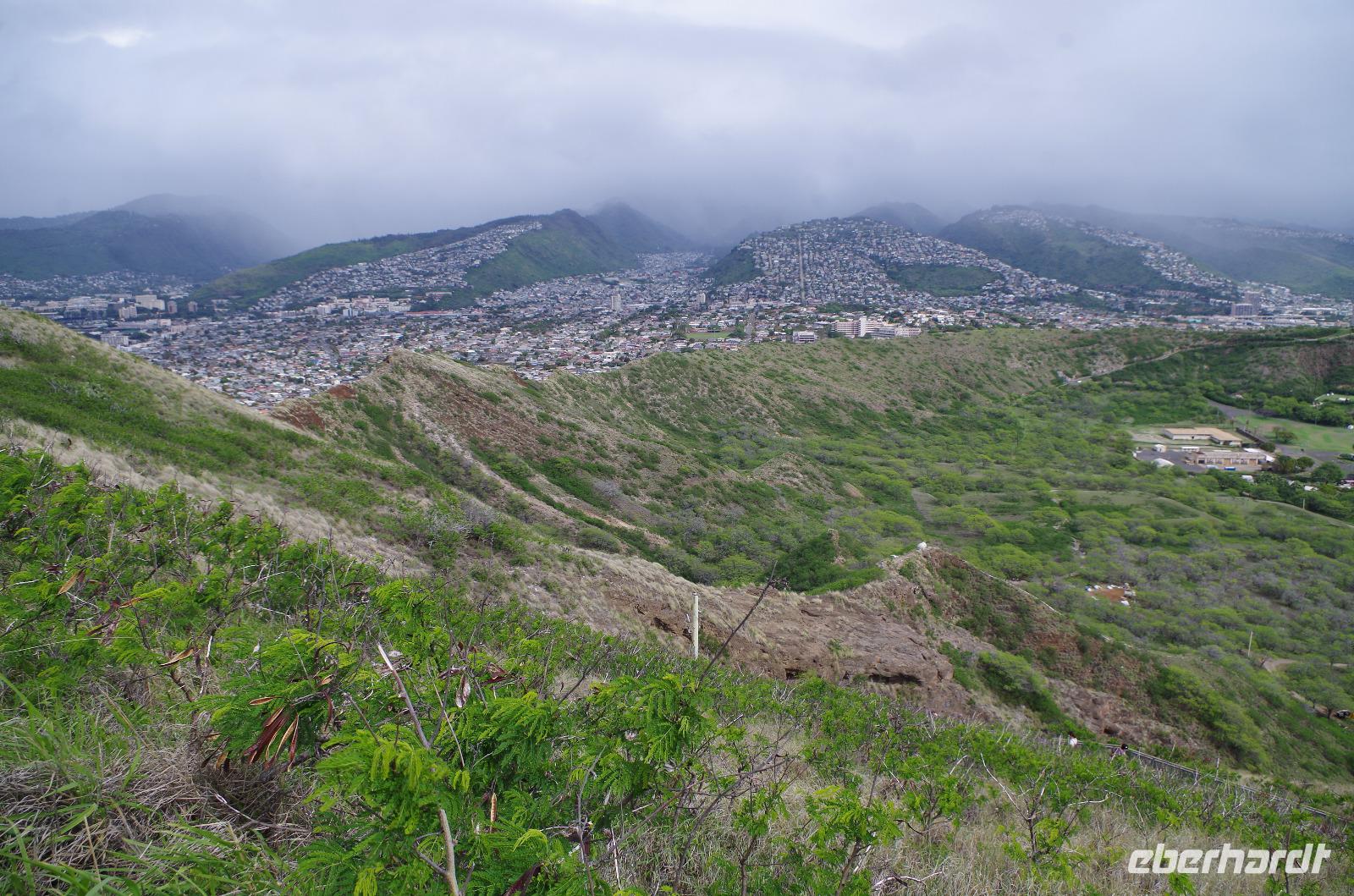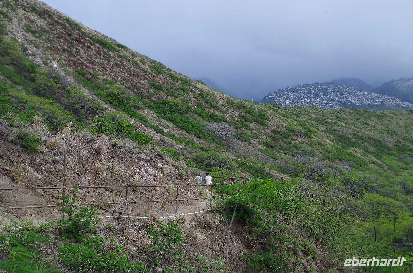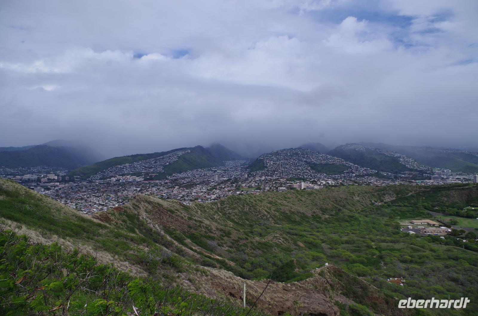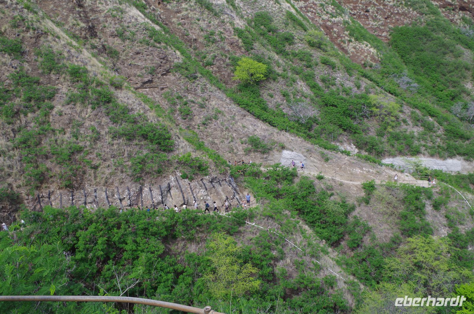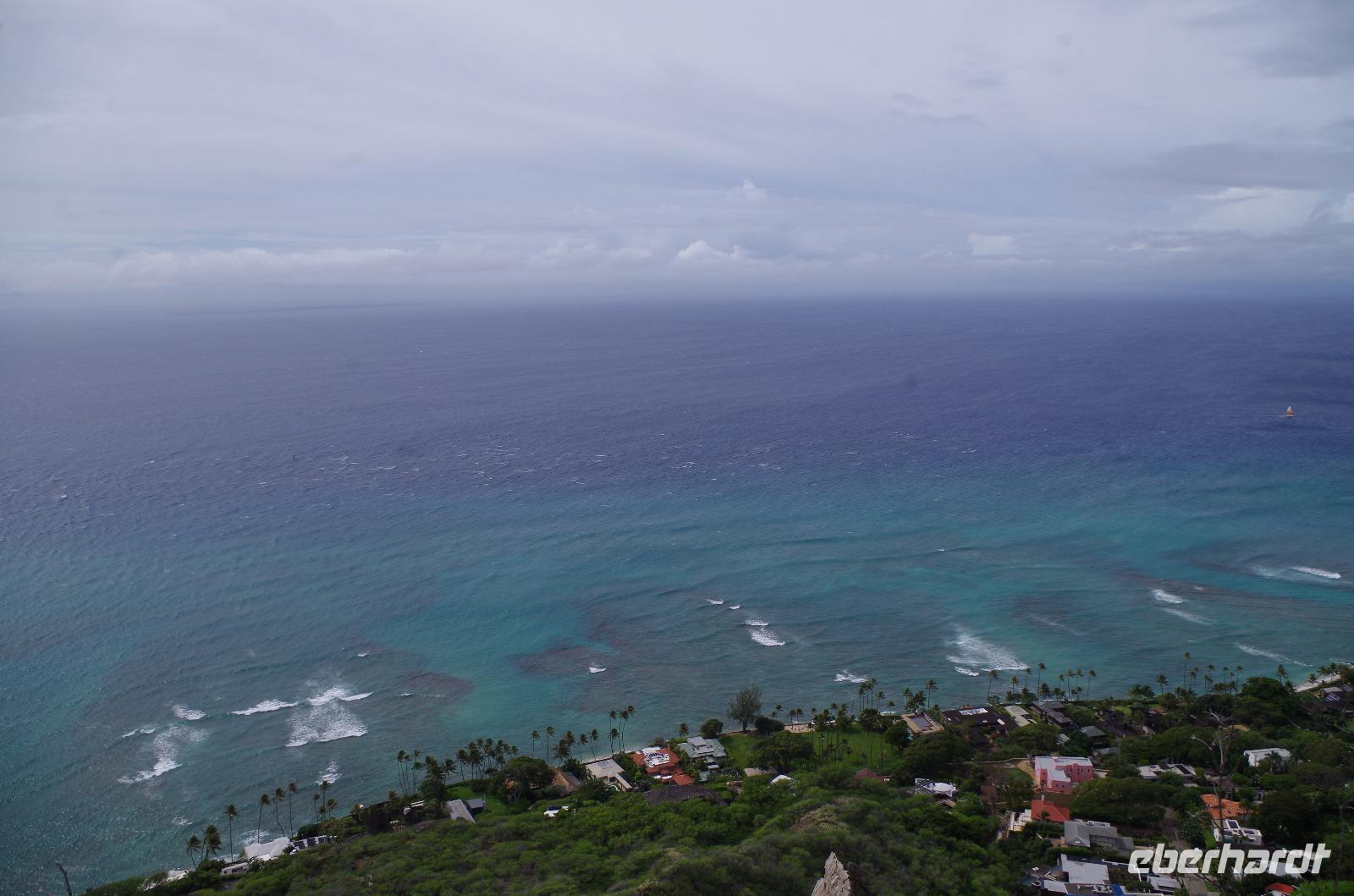 Bei strahlendem Sonnenschein erreichen wir Honolulu nachdem wir insgesamt rund 1.583 Kilometer vom 04.11.2017 bis 11.11.2017 gefahren sind. Wir gönnen uns noch ein leckeres Abschiedsfrühstück auf der NCL "Pride of America". Interessant ist vielleicht auch, was so auf der wöchentlichen Einkaufsliste des Küchenchefs steht. Darauf steht unter anderem rund 50.000 Eier, 12.684 Kilogramm Geflügel, 659 Liter Sahneeis, 8.154 Kilogramm Obst, 12.684 Kilogramm Gemüse, 408 Laibe geschnittenes Brot und 2.918 Liter Milch für die bis zu 2.450 Passagiere. Der durchschnittliche Treibstoffverbrauch liegt bei 400 Tonnen und der durchschnittliche Wasserverbrauch bei 26 bis 27 Millionen Litern. Um 08.30 Uhr sind die Kabinen zu verlassen und um 09.00 Uhr treffen wir uns in der Hotellobby "Capitol Atrium". Wir gehen gemeinsam von Bord und holen unsere Koffer in der Hafenhalle ab. Dann treffen wir am Pier 2 zuerst auf unseren örtlichen Reiseleiter Dominik aus Österreich. Der Check-Out hat sehr gut funktioniert, so dass wir eher als geplant am Treffpunkt sind und noch ein wenig auf den Bus warten werden. Es ist wirklich sehr heiß und schwül-warm, so dass wir im Hafengebäude warten. Um 10.00 Uhr verladen wir unsere Koffer in einem Kleinbus von Bassett Transportation für bis zu vierzehn Personen und starten unsere heutige Tagestour. Wir fahren am Waikiki Beach entlang zum Wahrzeichen Diamond Head, einen inaktiven Vulkankrater, welchen wir gegen 10.30 Uhr erreichen. Während drei Gäste und die Reisebegleitung eine Wanderung zum Aussichtpunkt vornehmen, verweilen die Gäste im Schatten auf Holzbänken zusammen mit dem örtlichen Reiseleiter Dominik am Ausgangspunkt unserer Wanderung. Für die Wanderung zur Aussichtsplattform mit traumhaften Blick über Honolulu benötigen wir rund 45 Minuten, der Rückweg auf der gleichen Serpentinenstrecke dauert circa 35 Minuten. Um 12.00 Uhr fahren wir weiter an der Küste entlang in Richtung des Tempels Byodo-In. Aber das Wetter meint es nicht gut mit uns oder besser gesagt, der Himmel "weint", da dies unser letzter Tag auf Hawaii ist. Das Wetter wird immer schlechter sowie ein leicht unangenehmer, anhaltender Dauerregen setzt ein. Wir legen unterwegs keinen Foto-Stopp ein, sondern fotografieren nur aus dem Bus heraus. Um 13.00 Uhr erreichen wir den Tempel Byodo-In, aber aufgrund des Dauerregens ist an ein Aussteigen nicht zu denken. Die Strecke vom Busparkplatz zum Tempel ist zwar nicht lang, dennoch wären wir komplett durchgeweicht ehe wir überhaupt am Eingang ankommen würde. Wir entscheiden uns als Gruppe, den Tempel nicht wie geplant zu besuchen, sondern weiterzufahren. Eintritt müssen wir dafür auch nicht zahlen. Unsere Fahrt führt uns weiter zu einer Macadamia-Nuss-Farm mit Souvenirladen und kostenfreiem Kaffee zum Probieren, wobei uns dieser Kaffee dank des zusätzlichen Nussgeschmacks wesentlich besser schmeckt als in Kona. Die Gäste kaufen im Souvenirladen das ein oder andere Souvenir für ihre lieben Daheimgebliebenen. Gegen 15.00 Uhr fahren wir zum Zentrum von Honolulu zurück und zum Waikiki Beach, genauer gesagt zum Kuhio Beach, wo uns die Statue eines des besten Wassersportlers der Welt, die Statue des Duke Kahanamoku, mit offenen Armen empfängt. Das Wetter hat sich ebenso verbessert, es regnet wesentlich weniger als noch vor einer Stunde. Am Wikiki Beach haben wir Zeit für einen kleinen Imbiss, zum Fotografieren oder zum Kauf von Souvenirs. Dann fahren wir um 16.30 Uhr zum nationalen Flughafen von Honolulu an den United Schalter. Den Daniel K. Inouye International Airport erreichen wir rund 30 Minuten später und wir verabschieden uns freundlich von unserem Reiseleiter Dominik. Wir suchen uns einen Sitzplatz am Flughafen, um unsere Koffer zu öffnen und uns umzuziehen. Die Reisebegleitung hat eine kleine Überraschung für die Gäste, indem sie ihnen ein kleines Abschiedsgeschenk im Namen von Eberhardt überreicht. Wir wechseln unsere sommerliche Kleidung gegen Strickjacke, lange Hose oder Pullover und verzehren unser vom Frühstück mitgenommenes Obst, da wir dieses nicht mit an Bord nehmen dürfen. Anschließend sind wir verpflichtet, unser Gepäck durchleuchten zu lassen, damit wir auch ja kein frisches Obst oder Gemüse sowie lebendige Tier mitführen. Dann begeben wir uns zum Check-In-Schalter von United, wo uns eine weniger gute Nachricht erreicht. Die Koffer sind am Automaten einzuchecken, was 'eigentlich' kein Problem sein sollte. Aber an dieser Stelle fällt wieder einmal das Wort 'eigentlich'. Die Automaten lesen keinen der deutschen Pässe ein und die Passdaten jeden einzelnen Gastes und der Reisebegleitung sind mit Hand einzugeben. Dies übernimmt natürlich die Reisebegleitung, aber die Prozedur nimmt schon eine Menge Zeit in Anspruch und beansprucht die Nerven aller Beteiligten. Das Servicepersonal von United ist bedauerlicherweise auch nicht wirklich eine Hilfe. Die Sitzplätze sind teilweise wieder durcheinander, ein Umsetzen ist abermals erst an Bord möglich. Eine erfreuliche Nachricht gibt es dennoch, denn unser Gepäck wird trotz der zwei bis drei Zwischenlandungen bis zum Endzielflughafen München, Berlin-Tegel, Stuttgart oder Dresden durchgecheckt. Gegen 19.00 Uhr passieren wir die Sicherheitskontrolle ohne Schwierigkeiten und Laufen gemeinsam zum Gate 24. Am Abfluggate erhalten die Gäste den von Eberhardt TRAVEL versprochenen Cocktail für die improvisierte Stadtrundfahrt an unserem zweiten Tag in Honolulu. Unseren leckeren "Abschiedsdrink" Bier oder Softgetränke genießen wir im Food Court. Am Flughafen haben sowohl die Geschäfte als auch die Souvenirläden und Kosmetikgeschäfte bis circa 20.00 Uhr geöffnet. Kostenfreies WLAN ist nicht wirklich vorhanden, ein schwaches Signal findet sich bei Starbucks. Pünktlich um 21.05 Uhr beginnt das Boarding unseres Fluges von Honolulu nach Los Angeles. Wir sind abermals in einer "Boarding-Gruppe" 3 oder 4 eingeteilt. Je nach Sitzplatz und Sitzreihe passieren wir den Eingan