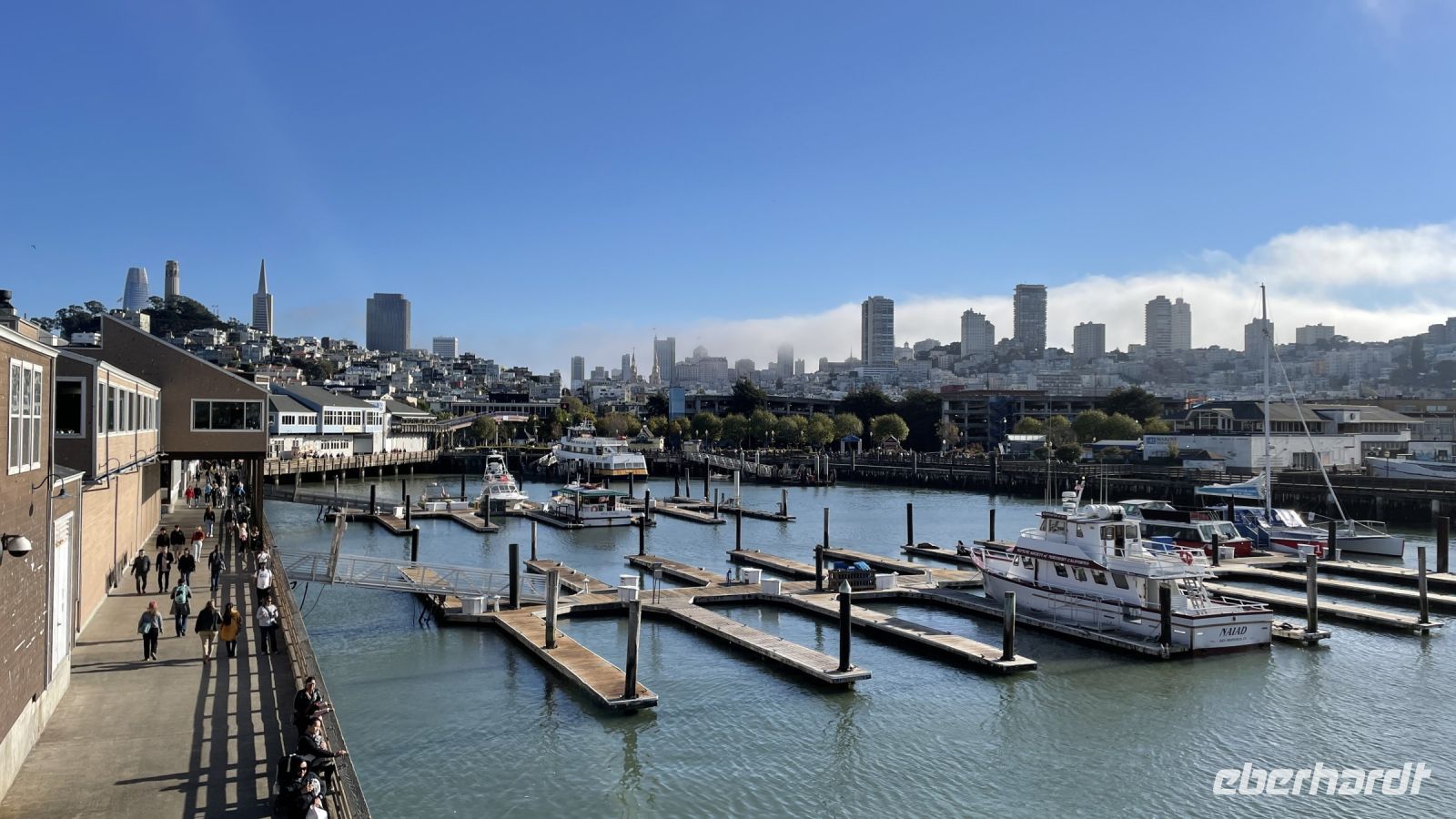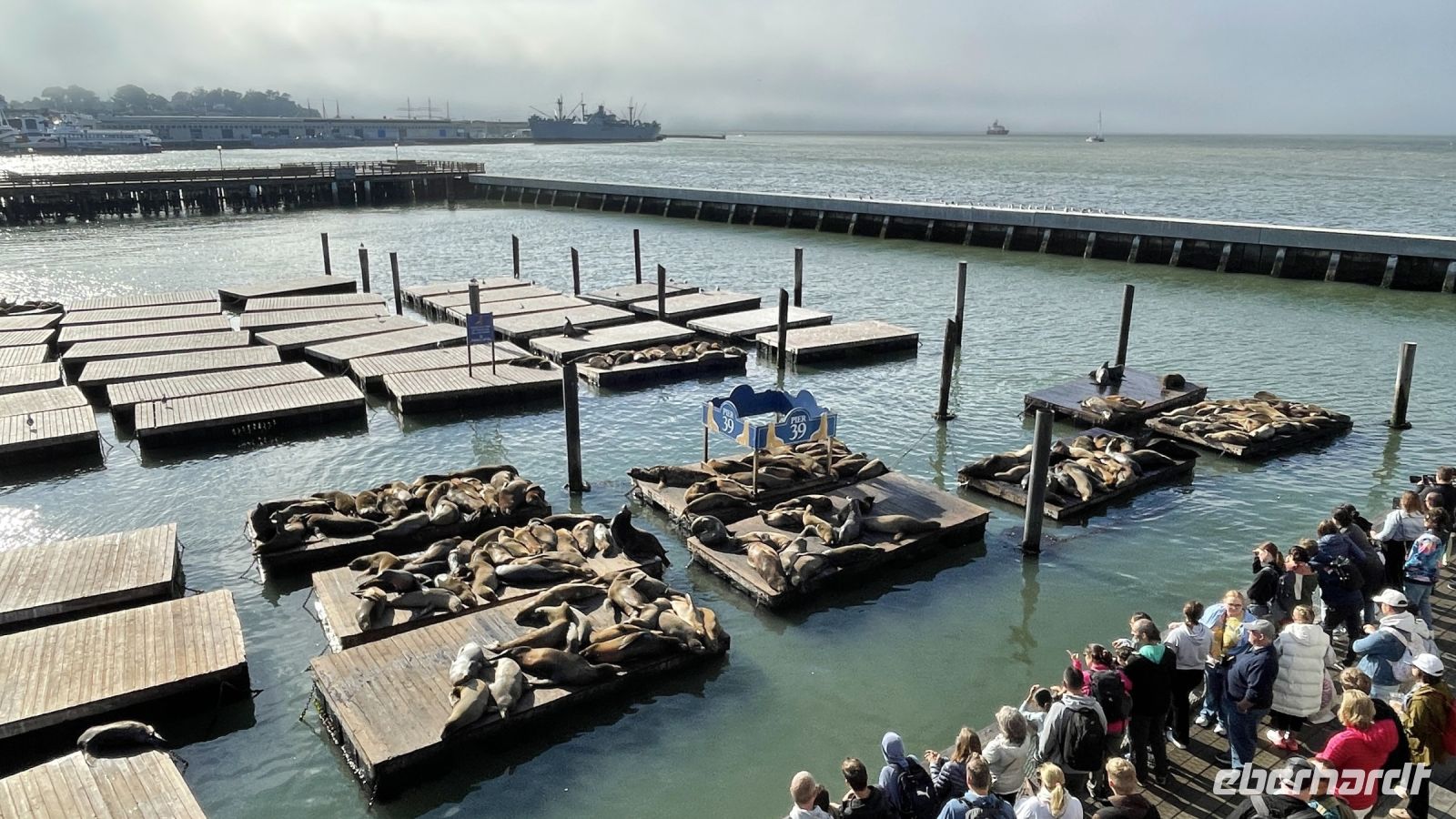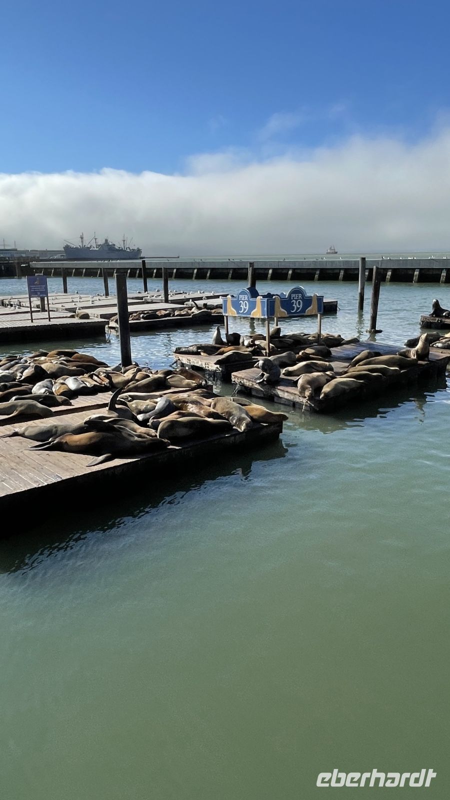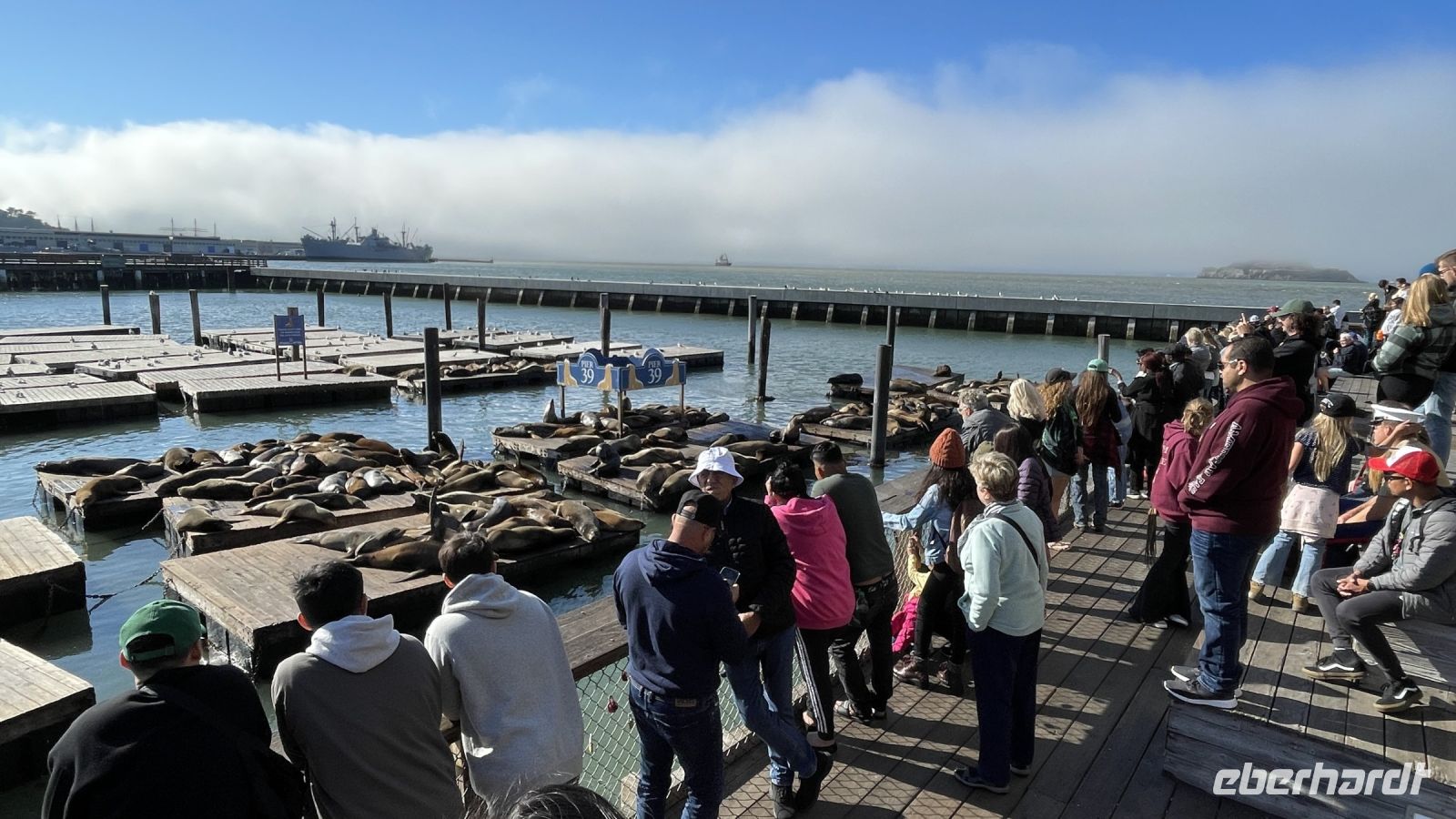 Nach der erstaunlich zügigen Einreisekontrolle werden wir von unserer örtlichen Reiseleiterin Amido in Empfang genommen. Gemeinsam fahren wir zum Hotel Caza an der Fishermanns Wharf, welches für die nächsten 3 Nächte unser Unterkunft ist. Unterwegs gibt Amido schon einige interessante Infos über die Stadt und erklärt das Programm für den nächsten Tag. Im Hotel angekommen, checken wir gemeinsam ein und schaffen unsere Koffer auf die Zimmer. Nach etwas Freizeit spazieren wir schließlich zum Pier 39, um einen ersten Eindruck von der Stadt zu erhaschen. Am Ende des Piers knipsen wir die ersten Schnappschüsse von der bekannten Seelöwen-Kolonie. Da einige Gäste das Mittagessen im Flieger verschlafen hatten oder schon wieder Hunger haben, beschließen wir in ein Restaurant am Pier 39 einzukehren. Nach dieser Stärkung setzt bei allen die Müdigkeit ein, denn aufgrund der Zeitverschiebung ist es bereits 4Uhr nachts in Deutschland. Somit beschließen wir heute zeitig ins Bett zu gehen, um fit für die nächsten Tage zu sein.