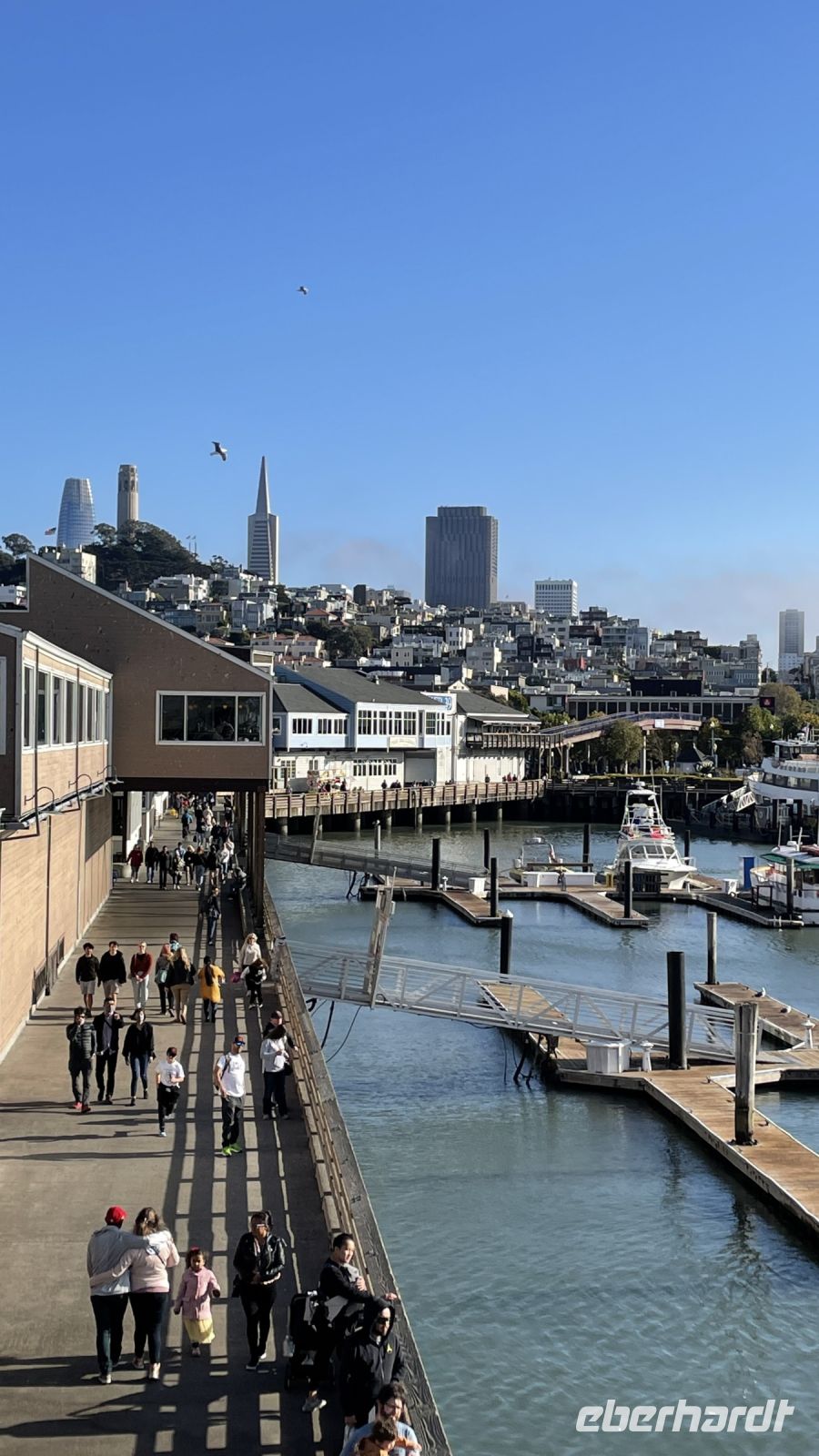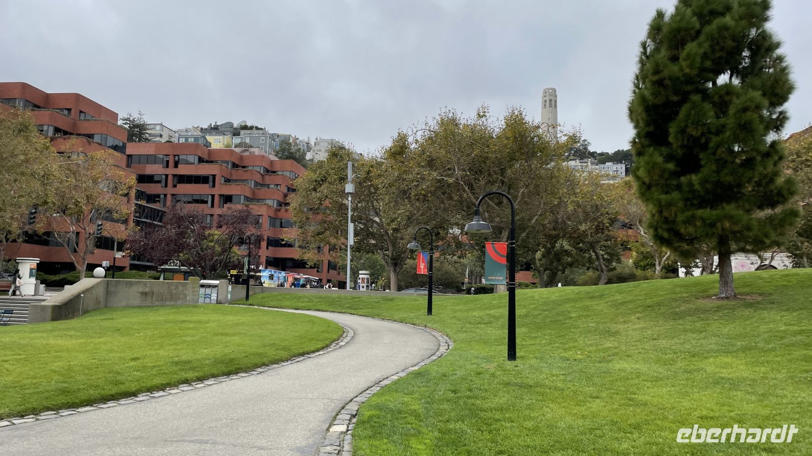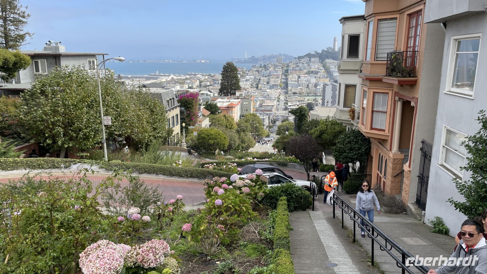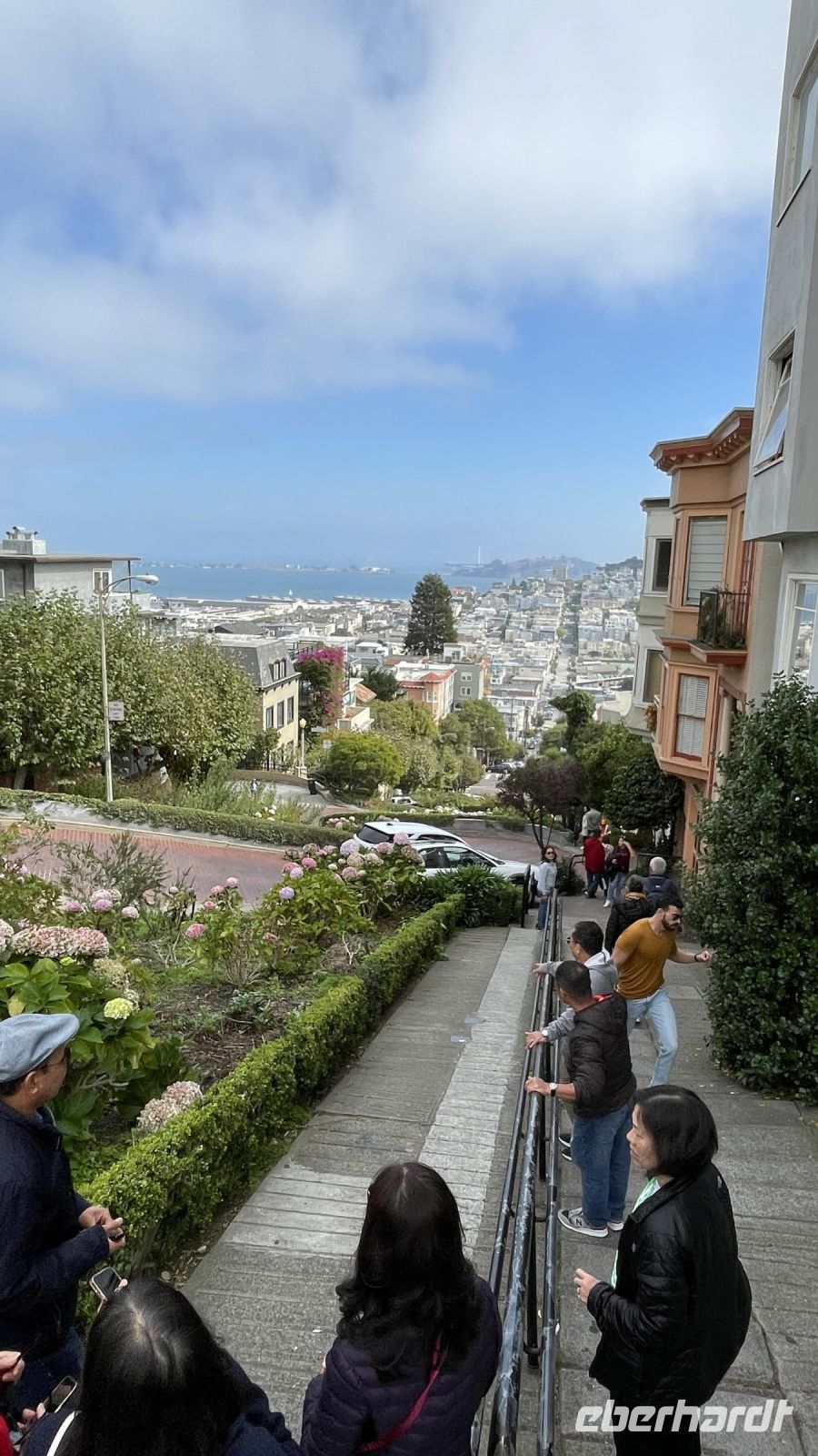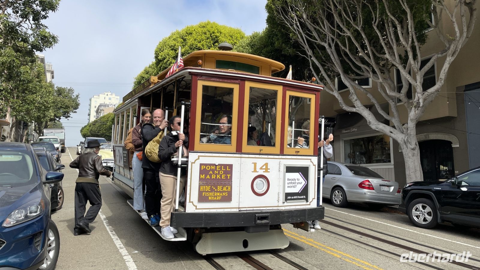 Heute haben wir einen Tag zur freien Verfügung, den wir natürlich mit einer weiteren Stadterkundung nutzen wollen. Nach dem Frühstück spazieren wir von unserem Hotel aus etwa 5min. zur Cablecar-Drehscheibe/ Haltestelle Powell/Mason Station und fahren ca. 30min. mit einer historischen alten Straßenbahn in Richtung Powell/Market Station in Downtown. Von dort aus geht es weiter zu Fuß zwischen den imposanten Hochhäusern in Richtung Salesforce Park. Dieser öffentliche Dachgarten ist ca. 219ha groß und vergleichbar mit dem High Line Park in Manhattan. Im unteren Teil befinden sich U-Bahn-Stationen und ein Busbahnhof. Der obere Teil ist grün bepflanzt und lädt zum Spazieren ein. Wir laufen den Park einmal von Anfang bis Ende komplett entlang und sind begeistert von der modernen Architektur und der grünen Lunge, mitten zwischen den Hochhäusern. Neben dem Park befindet sich auch der höchste Wolkenkratzer der Stadt - der 326m hohe Salesforce Tower. Wir setzen unseren Spaziergang fort und erreichen kurze Zeit später das Ferry Building. Hier legen wir eine kleine Pause ein und blicken wir auf die San Francisco-Oakland Bay Bridge. Nachdem wir die Sonnenstrahlen und das Flair am Hafen genießen konnten, geht es weiter mit einer historischen Straßenbahn aus den 70ern in Richtung Telegraphen Hügel. Hier besteigen wir unzählige Treppen bis wir schließlich den Coit Tower erreichen. Dieser Aussichtsturm wurde zu Ehren der Feuerwehrleute von San Francisco erbaut. Leider ist der Fahrstuhl kaputt, weshalb wir auch hier einige Treppen bis nach oben überwinden müssen. Oben angekommen haben wir eine tolle Aussicht über die Stadt, die Skyline und sogar bis zur Golden Gate Bridge. Rückzu nehmen wir einen öffentlichen Linienbus bis zum Pier39, wo wir eine kleine Mittagpause im Hard Rock Café/Restaurant einlegen. Für einige sogar eine große Mittagspause mit leckeren BBQ Spareribs. :-)