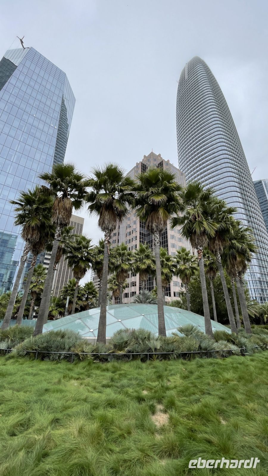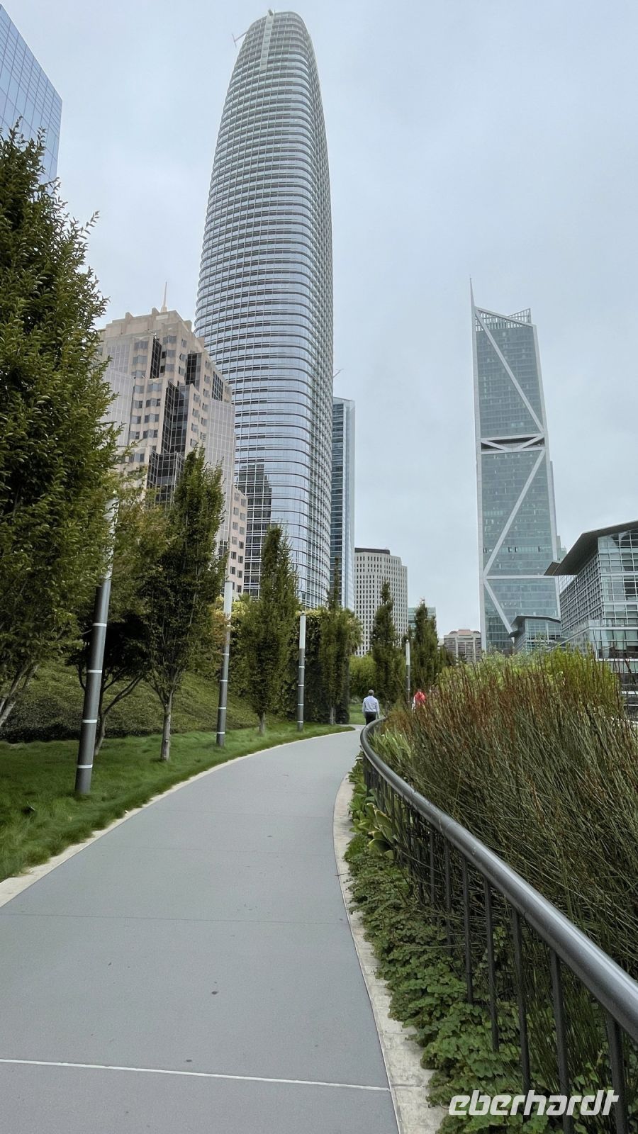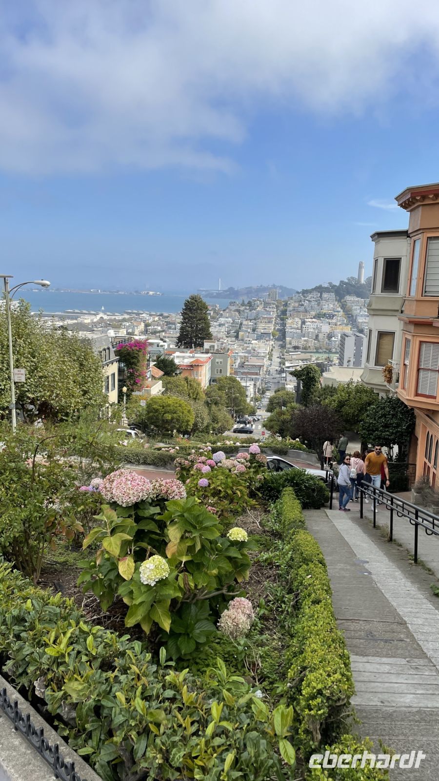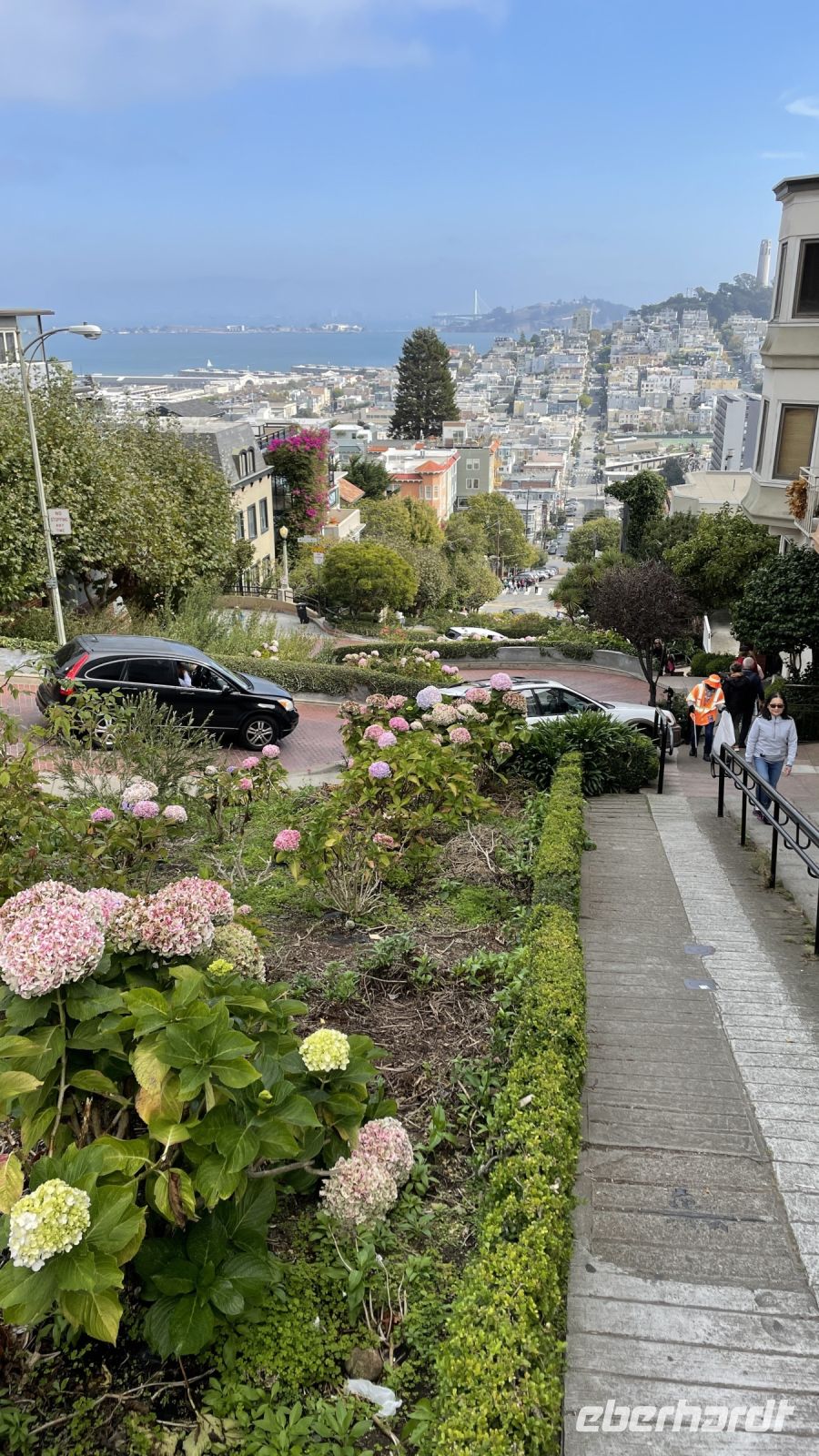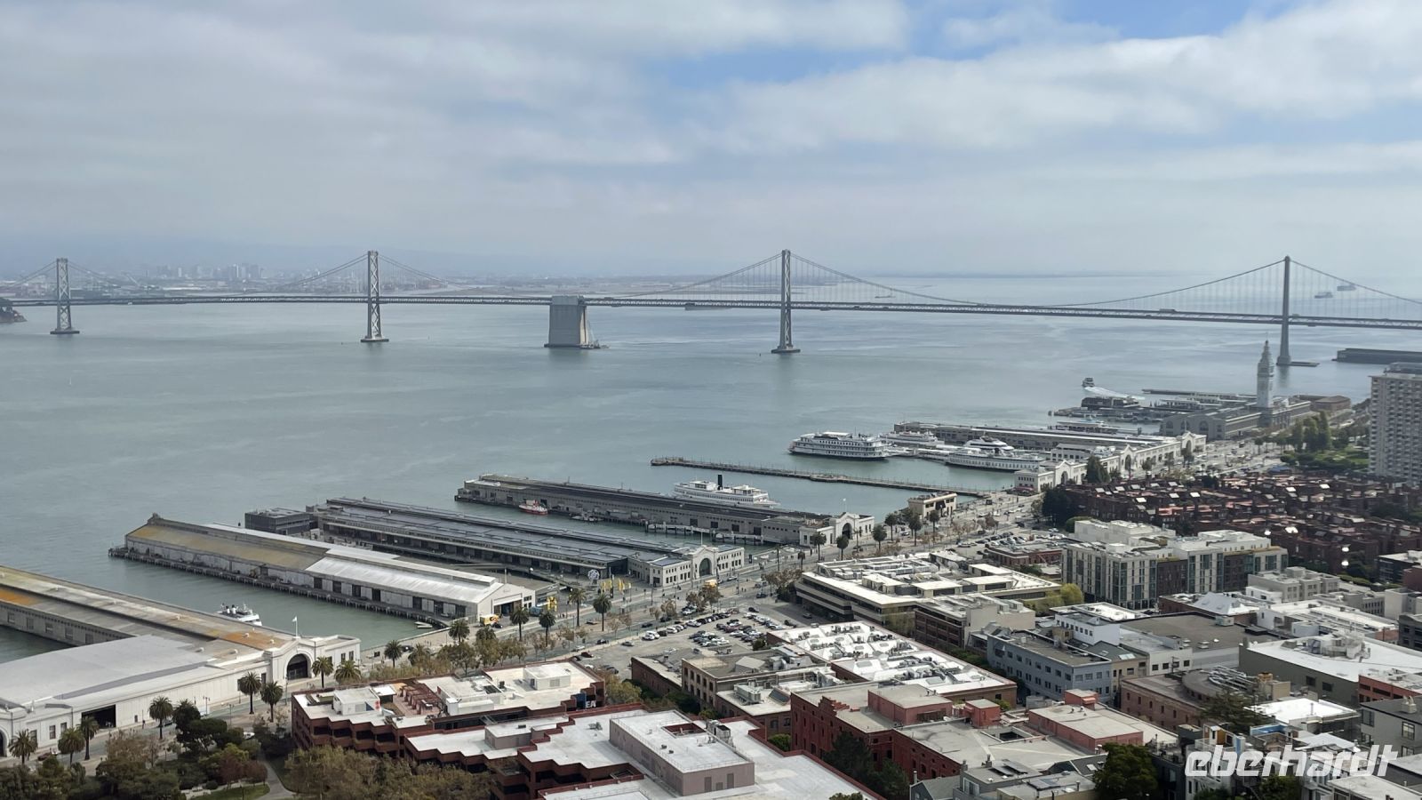 Heute haben wir einen Tag zur freien Verfügung, den wir natürlich mit einer weiteren Stadterkundung nutzen wollen. Nach dem Frühstück spazieren wir von unserem Hotel aus etwa 5min. zur Cablecar-Drehscheibe/ Haltestelle Powell/Mason Station und fahren ca. 30min. mit einer historischen alten Straßenbahn in Richtung Powell/Market Station in Downtown. Von dort aus geht es weiter zu Fuß zwischen den imposanten Hochhäusern in Richtung Salesforce Park. Dieser öffentliche Dachgarten ist ca. 219ha groß und vergleichbar mit dem High Line Park in Manhattan. Im unteren Teil befinden sich U-Bahn-Stationen und ein Busbahnhof. Der obere Teil ist grün bepflanzt und lädt zum Spazieren ein. Wir laufen den Park einmal von Anfang bis Ende komplett entlang und sind begeistert von der modernen Architektur und der grünen Lunge, mitten zwischen den Hochhäusern. Neben dem Park befindet sich auch der höchste Wolkenkratzer der Stadt - der 326m hohe Salesforce Tower. Wir setzen unseren Spaziergang fort und erreichen kurze Zeit später das Ferry Building. Hier legen wir eine kleine Pause ein und blicken wir auf die San Francisco-Oakland Bay Bridge. Nachdem wir die Sonnenstrahlen und das Flair am Hafen genießen konnten, geht es weiter mit einer historischen Straßenbahn aus den 70ern in Richtung Telegraphen Hügel. Hier besteigen wir unzählige Treppen bis wir schließlich den Coit Tower erreichen. Dieser Aussichtsturm wurde zu Ehren der Feuerwehrleute von San Francisco erbaut. Leider ist der Fahrstuhl kaputt, weshalb wir auch hier einige Treppen bis nach oben überwinden müssen. Oben angekommen haben wir eine tolle Aussicht über die Stadt, die Skyline und sogar bis zur Golden Gate Bridge. Rückzu nehmen wir einen öffentlichen Linienbus bis zum Pier39, wo wir eine kleine Mittagpause im Hard Rock Café/Restaurant einlegen. Für einige sogar eine große Mittagspause mit leckeren BBQ Spareribs. :-)