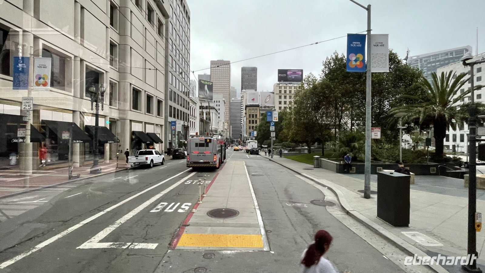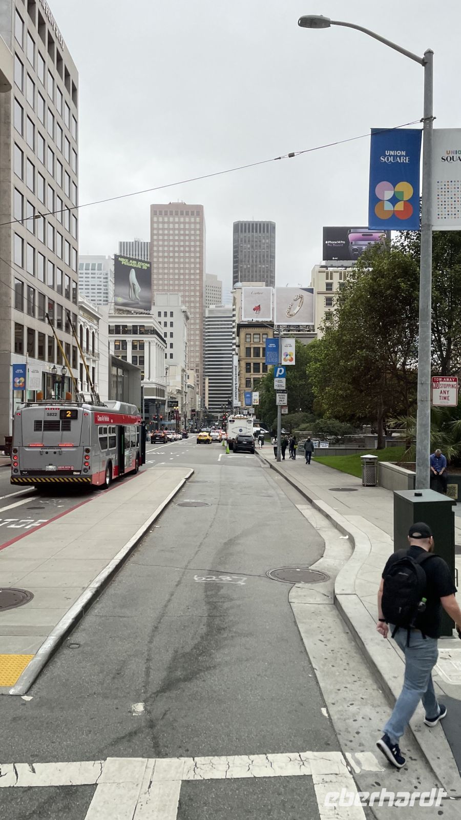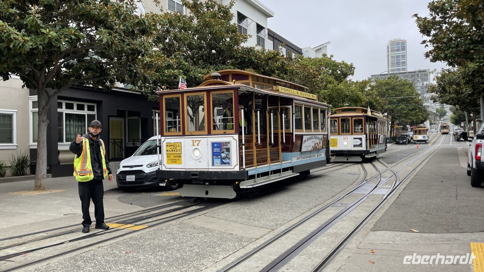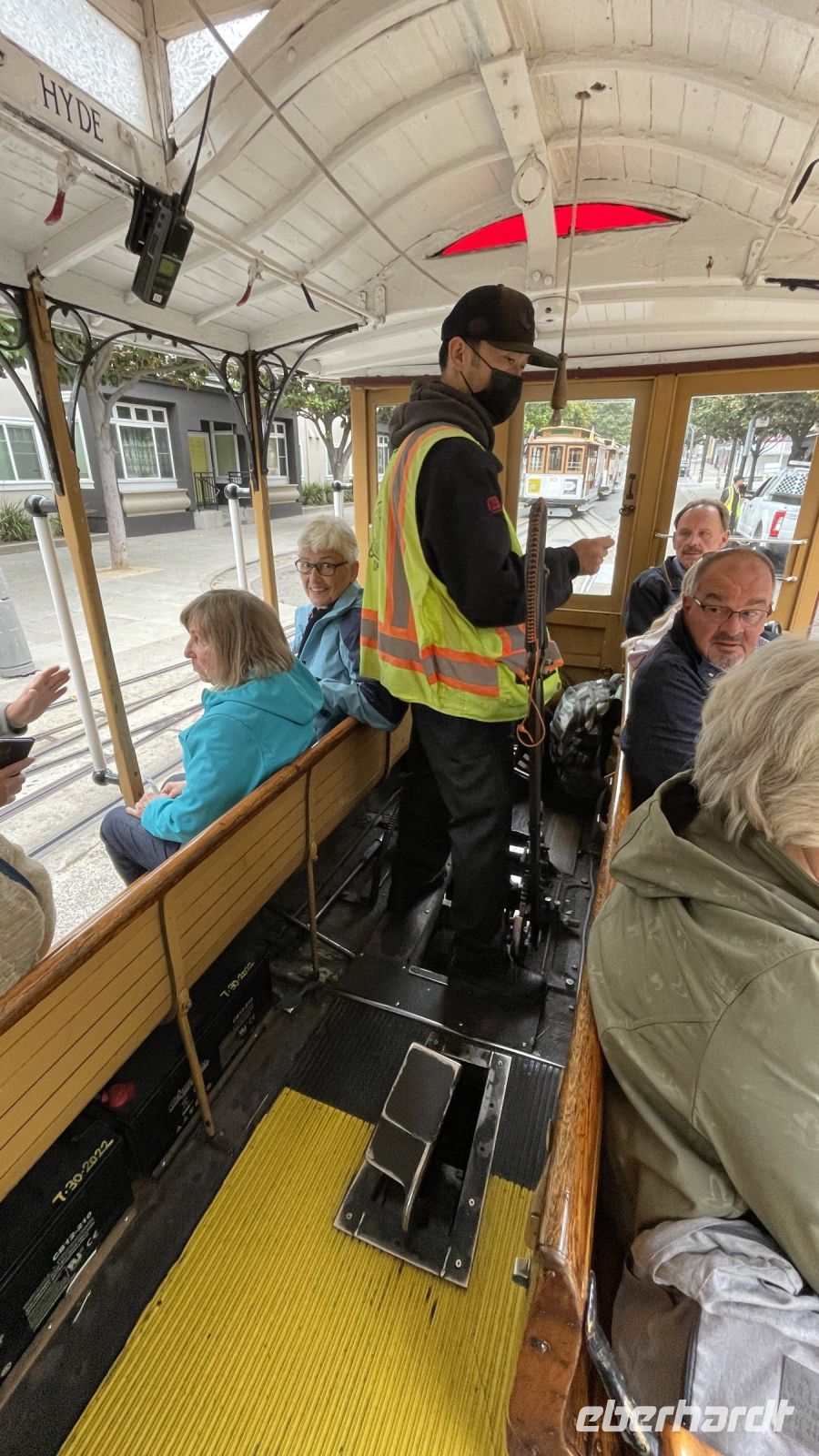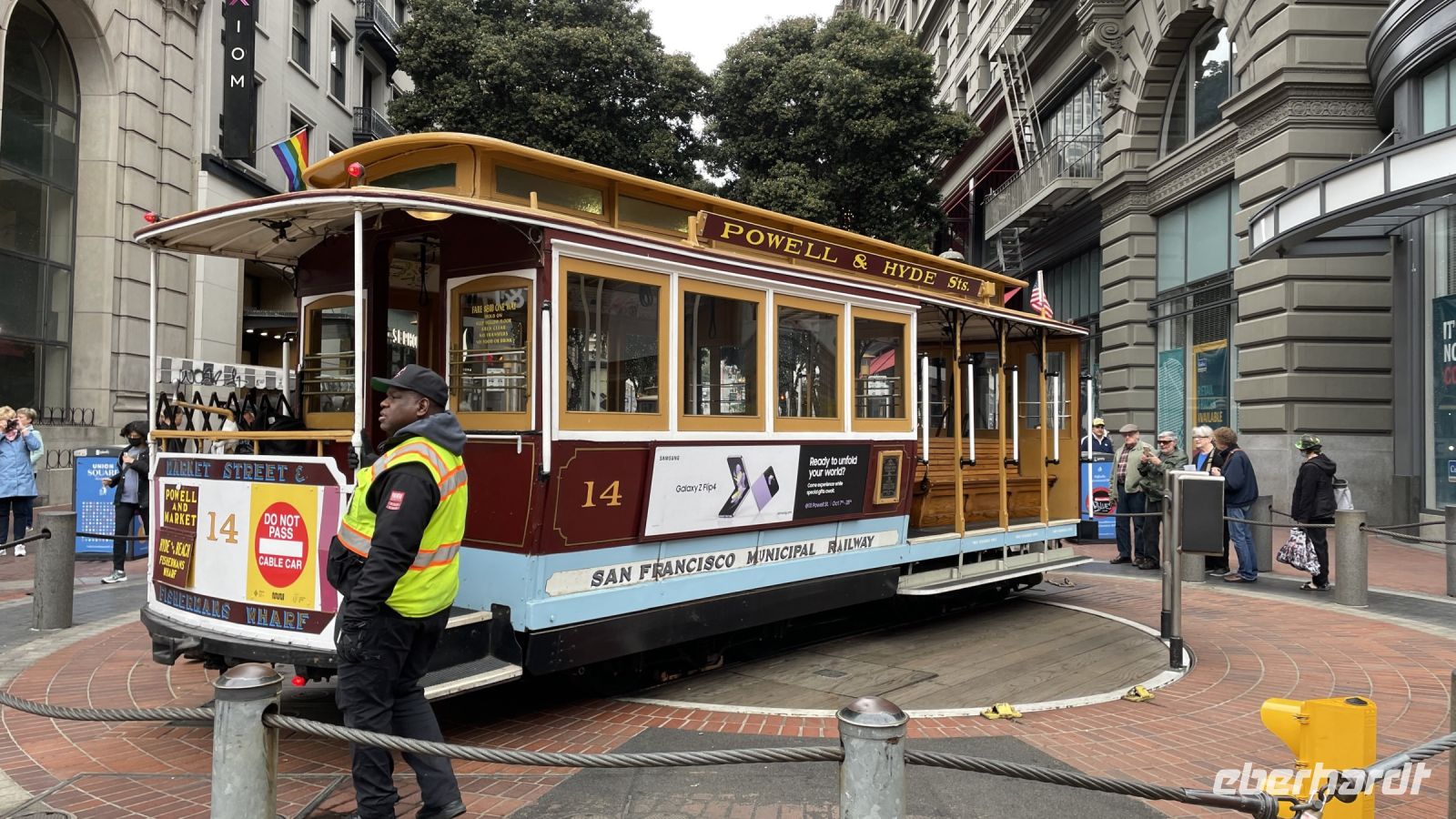 Heute haben wir einen Tag zur freien Verfügung, den wir natürlich mit einer weiteren Stadterkundung nutzen wollen. Nach dem Frühstück spazieren wir von unserem Hotel aus etwa 5min. zur Cablecar-Drehscheibe/ Haltestelle Powell/Mason Station und fahren ca. 30min. mit einer historischen alten Straßenbahn in Richtung Powell/Market Station in Downtown. Von dort aus geht es weiter zu Fuß zwischen den imposanten Hochhäusern in Richtung Salesforce Park. Dieser öffentliche Dachgarten ist ca. 219ha groß und vergleichbar mit dem High Line Park in Manhattan. Im unteren Teil befinden sich U-Bahn-Stationen und ein Busbahnhof. Der obere Teil ist grün bepflanzt und lädt zum Spazieren ein. Wir laufen den Park einmal von Anfang bis Ende komplett entlang und sind begeistert von der modernen Architektur und der grünen Lunge, mitten zwischen den Hochhäusern. Neben dem Park befindet sich auch der höchste Wolkenkratzer der Stadt - der 326m hohe Salesforce Tower. Wir setzen unseren Spaziergang fort und erreichen kurze Zeit später das Ferry Building. Hier legen wir eine kleine Pause ein und blicken wir auf die San Francisco-Oakland Bay Bridge. Nachdem wir die Sonnenstrahlen und das Flair am Hafen genießen konnten, geht es weiter mit einer historischen Straßenbahn aus den 70ern in Richtung Telegraphen Hügel. Hier besteigen wir unzählige Treppen bis wir schließlich den Coit Tower erreichen. Dieser Aussichtsturm wurde zu Ehren der Feuerwehrleute von San Francisco erbaut. Leider ist der Fahrstuhl kaputt, weshalb wir auch hier einige Treppen bis nach oben überwinden müssen. Oben angekommen haben wir eine tolle Aussicht über die Stadt, die Skyline und sogar bis zur Golden Gate Bridge. Rückzu nehmen wir einen öffentlichen Linienbus bis zum Pier39, wo wir eine kleine Mittagpause im Hard Rock Café/Restaurant einlegen. Für einige sogar eine große Mittagspause mit leckeren BBQ Spareribs. :-)