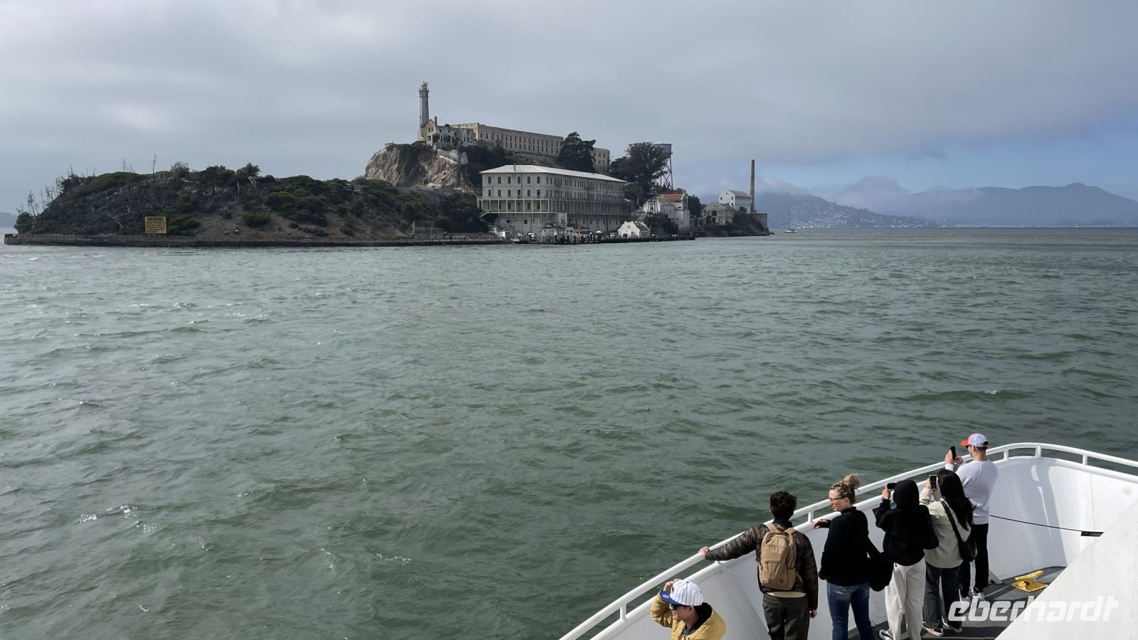 Heute unternehmen wir mit Reiseleiterin Amido eine tolle Stadtrundfahrt durch San Francisco. Zuerst fahren wir mit dem Reisebus entlang der Fishermanns Wharf und stoppen an einer Cable Car Haltestelle. Hier bieten sich erste Möglichkeiten eine alte Cable Car Straßenbahn zu fotografieren. Weiter geht es mit dem Bus durch Chinatown und die Innenstadt, wo sich die höchsten Hochhäuser befinden… auch Downtown oder Bankenviertel genannt. Wir erreichen kurze Zeit später die City Hall oder besser gesagt das Rathaus der Stadt. Die Kuppel ist die fünftgrößte Kuppel der Welt und 35m höher als das Kapitol in Washington. Grund genug um hier auch eine kleine Toilettenpause einzubauen, sogar mit vorheriger Sicherheitskontrolle. Danach setzen wir unsere Rundfahrt fort und erreichen den Alamo Square. Hier befinden sich die wunderschönen viktorianischer Häuser, die eines der berühmtesten Postkartenmotive der Stadt sind. Sie zählen außerdem zu der am häufigsten fotografierten Wohnstraßen Amerikas. Viele Häuser sind bunt angestrichen, weshalb sie auch als Painted Ladies bezeichnet werden. Weiter geht es zum Lincoln Park, wo wir einen ersten Blick auf die im Nebel eingehüllte Golden Gate Bridge erhaschen können. Mit der Hoffnung auf besseres Wetter, fahren wir weiter zum Golden Gate Park. An der weltberühmten Brücke angekommen, haben wir ausgiebig Zeit für Fotos und einen kleinen Spaziergang über einen Teil der 2,7km langen und 227m hohen Brücke. Leider hängt der Küstennebel immer noch sehr tief und das Wetter klärt sich erst später auf. Unser nächstes Ziel ist die Lombard Street. Hier hat man 1922 entschieden das ursprüngliche Gefälle von 27% durch eine Straße in Serpentinenform auf 18% Gefälle zu entschärfen. Ganz nebenbei wurde Sie zu einem berühmten Touristenmagnet. Wir spazieren die Straße einmal von oben bis unten komplett hinab. Nun kommen sogar erste Sonnenstrahlen hervor, was die Fotos gleich viel besser aussehen lässt. ?? Unten angekommen fahren wir mit unserem Reisebus und Reiseleiterin Amido zum Pier 33, wo wir uns auch schon wieder von ihr verabschieden dürfen. Hier endet unsere heutige Stadtrundfahrt. Nun müssen wir alleine zurechtkommen und wir fahren mit einer Fähre hinüber zu Alcatraz. Hier besuchen wir das weltbekannte ehemalige Hochsicherheitsgefängnis welches 1971 geschlossen wurde. Hier saß u.a. auch der Mafiosi Boss „Al Capone“ für 5 Jahre ein. Wir unternehmen für ca. 1,5 Stunden einen individuellen Rundgang durch die Gefängnisanlage. Über unsere Audioguides erfahren wir alles Wissenswerte über die Geschichte und Gegenwart dieses mystischen Ortes. Am späten Nachmittag fahren wir schließlich mit der Fähre zurück zum Pier 33 und spazieren von dort aus zum Hotel zurück. Abends gehen wir gemeinsam in ein Restaurant Abendessen und gehen relativ zeitig ins Bett, weil der Zeitunterschied noch stark zu spüren ist. Good Night San Francisco.