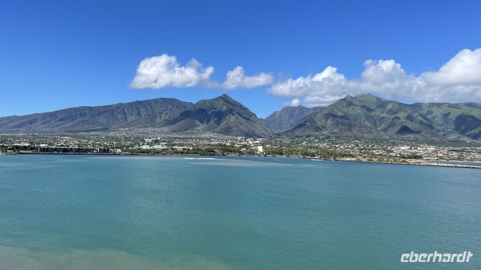 Heute erreichen wir Maui und ich unternehme mit 4 Gästen eine kleine Inselrundfahrt auf eigene Faust. Dazu mieten wir uns ein Taxi für ca. 150$ pro Person und fahren die Highlights der Insel ab. Als erstes erreichen wir den Strand Ho´okipa Beach, wo wir Schildkröten im Sand beobachten können- Weiter geht es durch das Ho‘olawa Valley, wo wir einen kleinen Spaziergang zu den Twin Wasserfällen einlegen. Danach fahren wir durch die Inselmitte, vorbei an der Maui Plantage und schließlich zum Maui Ocean Center. Hier können wir in großen Aquarien und in einem 3D Kino, die Unterwasserwelt des Pazifiks bestaunen. Weiter geht es in die Ortschaft Lahaina, wo wir am Hafen den größten Bayan Tree der USA bestaunen können. Zudem befinden sich hier einige historische Gebäude und Überreste einer über 200 Jahre alten Festungsanlage. Zum Abschluss des Tages fahren wir zum Lahina Beach, wo wir einen Badestopp am schönen Strand einlegen. Danach geht es wieder zurück zum Schiff, wo wir uns zum Abendessen mit allen anderen Reisegästen wieder treffen und jeder erzählt, was er so erlebt hat.