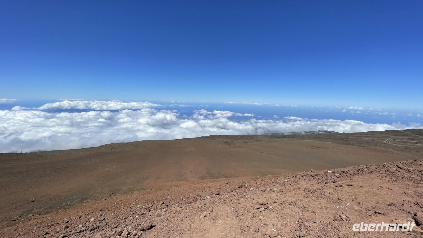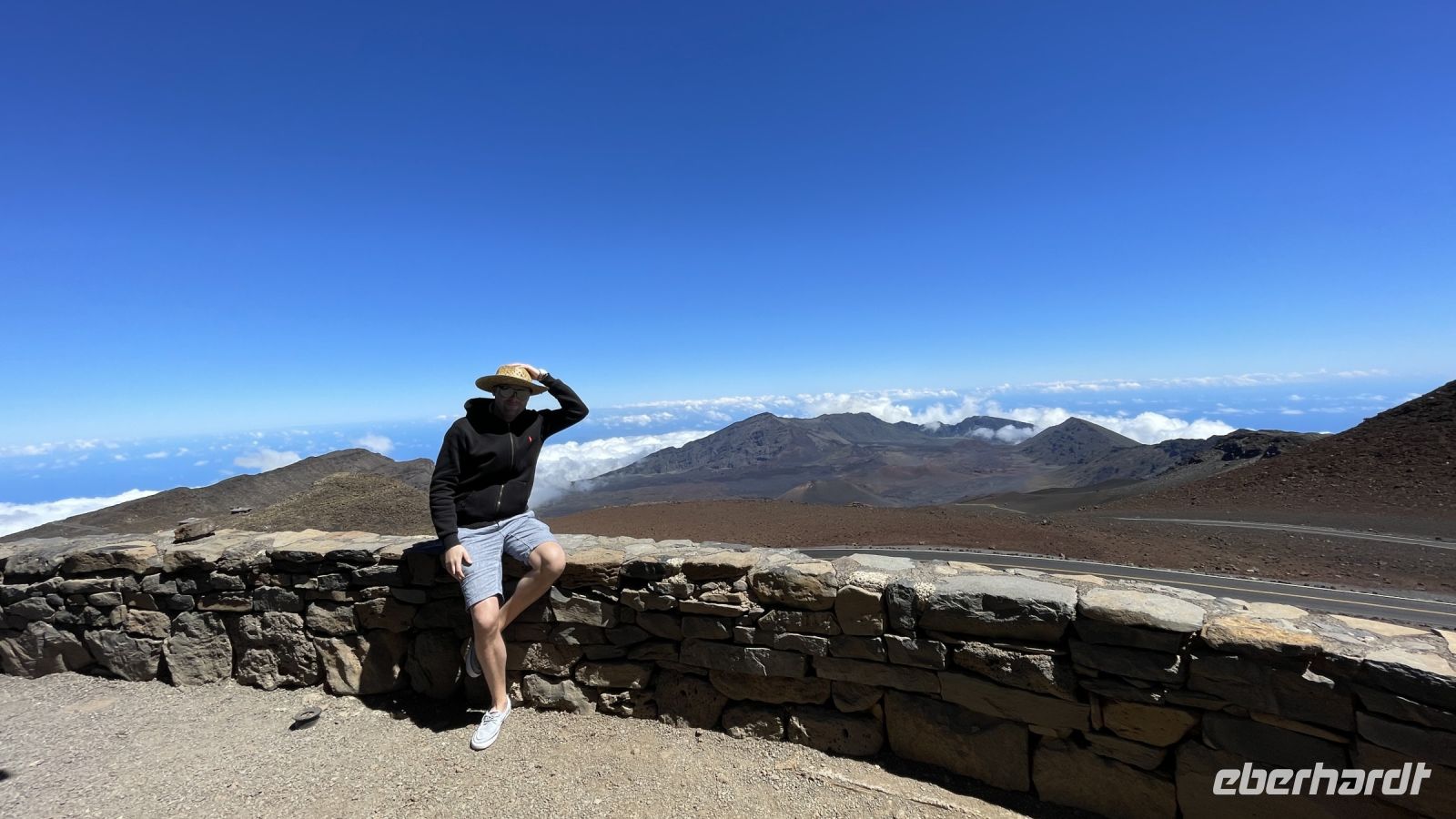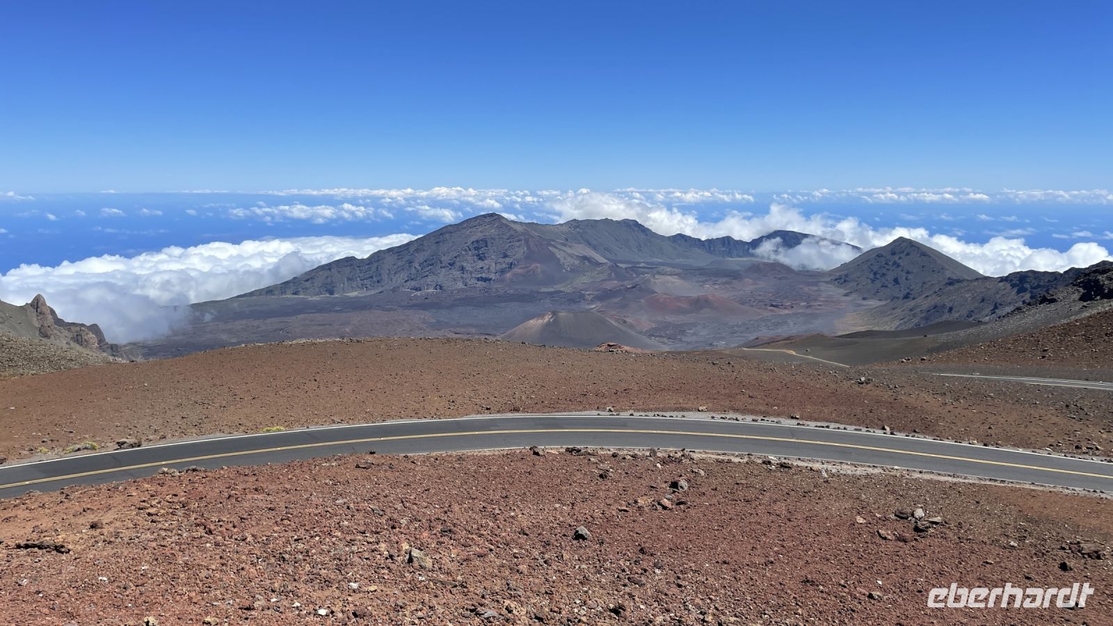 An unserem zweiten Tag in Maui, wollen wir heute den Halakela Krater erkunden. Heute sind wir schon 2 Taxen und 10 Personen. Gemeinsam fahren wir ca. 2 Stunden auf den 3055m hohen Vulkankrater hinauf. Oben angekommen genießen wir die Aussicht von verschiedenen Aussichtspunkten. Wir blicken in den Krater hinein und über einen Großteil der Insel. Wir stehen quasi über der Wolkendecke und merken das die Luft spürbar geringer ist. Bei ca. 20 Grad ist es auch 10 Grad kühler als an der Küste. Nach so viel Alpinen-Luft geht es wieder ins Tal hinab, wo wir am Kanaha Beach in der Nähe vom Schiff, einen Badestopp einlegen. Gegen 16:30Uhr erreichen wir wieder unser Schiff. Heute essen wir im Aloha Restaurant und treffen uns danach in der Champagner Bar auf einen Absacker-Drink.