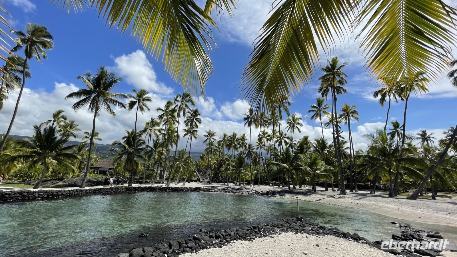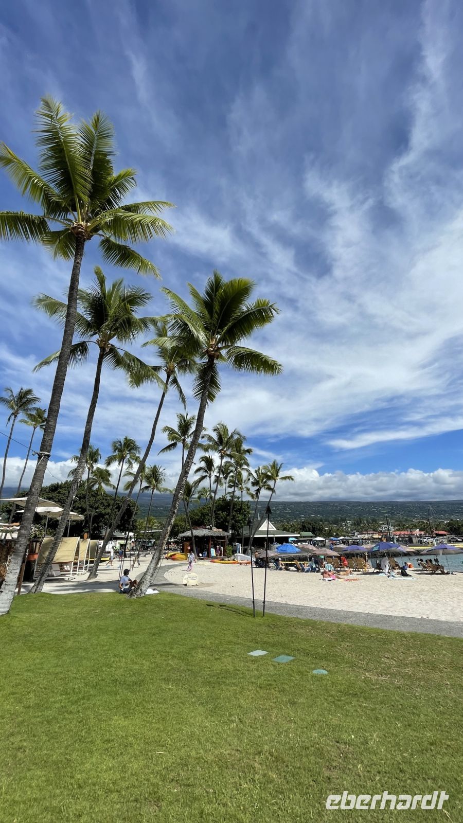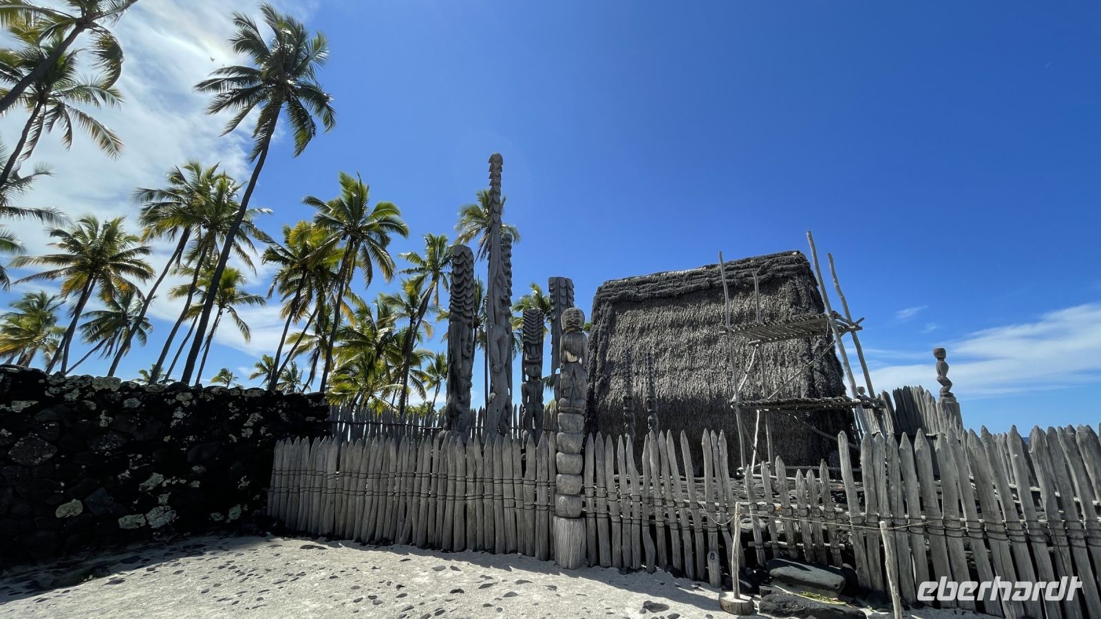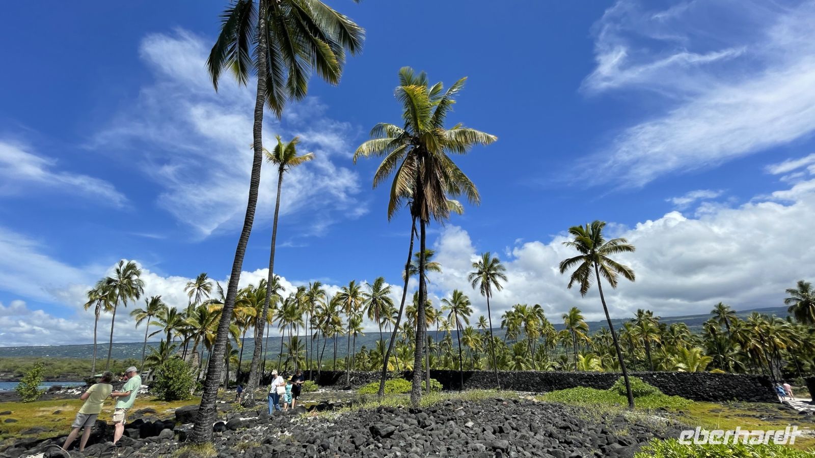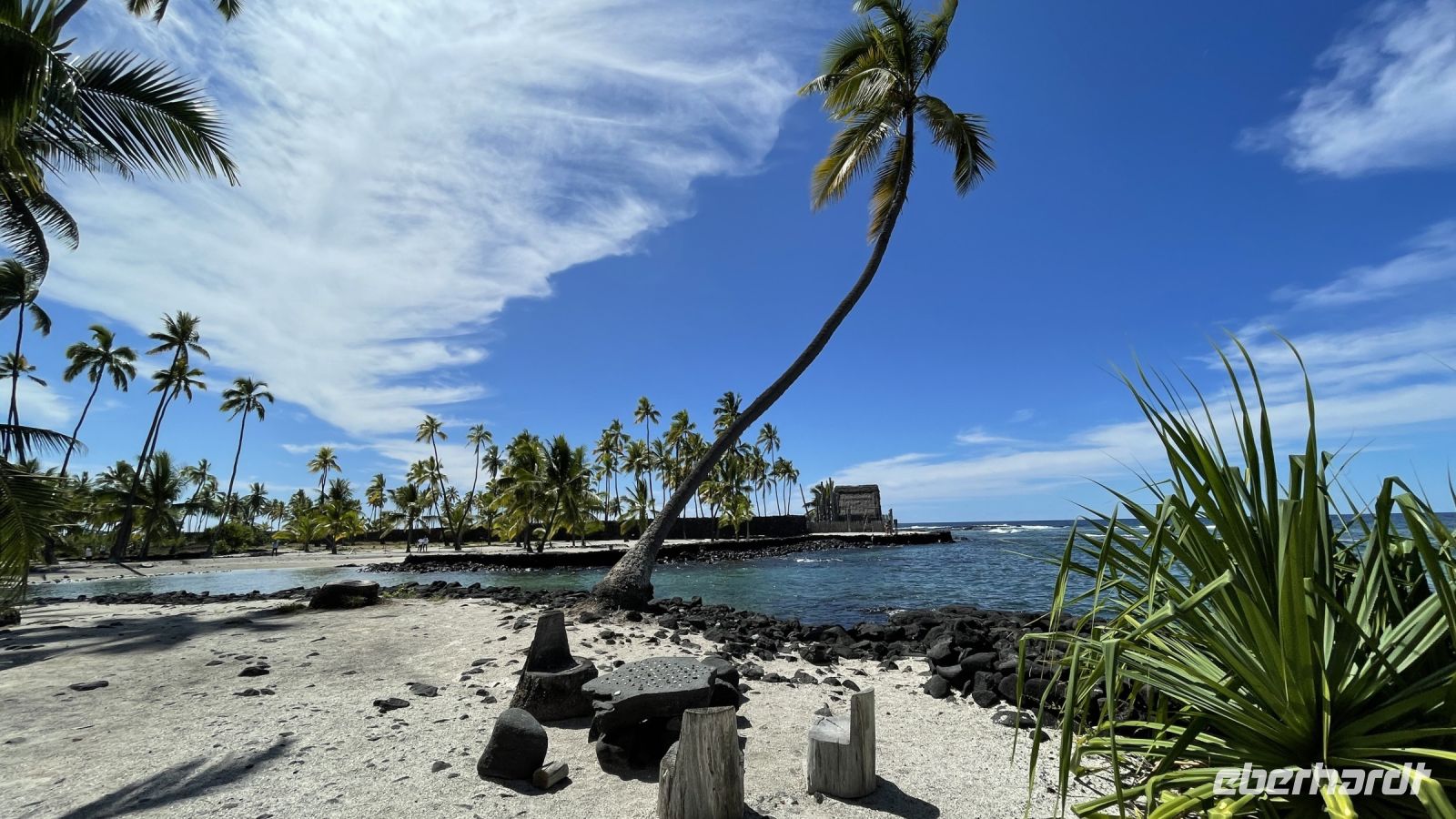 Tag 2 Auf Big Island. Da der Hafen von Kona zu klein ist, müssen wir die Tenderboote nehmen und relativ lange anstehen. Auf der Insel angekommen, fahren wir mit 3 Taxen zum Heritage Village „Puuhonua o Honaunau“ ca 30min. Dort angekommen unternehmen wir einen kleinen Rundgang durch das südseeanische Museum. Die Tempelanlage diente als Zufluchtsort und königliche Hofanlage und gewährt interessante Einblicke in die hawaiianische Kultur. Manchmal kann man am Strand sogar Meeresschildkröten sehen. Zurück geht es wieder mit unseren 3 Taxen und am Hafen wieder angekommen, nutzen die meisten die restliche Freizeit für ein ausgiebiges Band am schönen Sandstrand von Kona. Gegen 16:30Uhr fahren die letzten mit mir zum Schiff zurück. Unser Abendessen findet heute wieder im Aloha Restaurant statt.