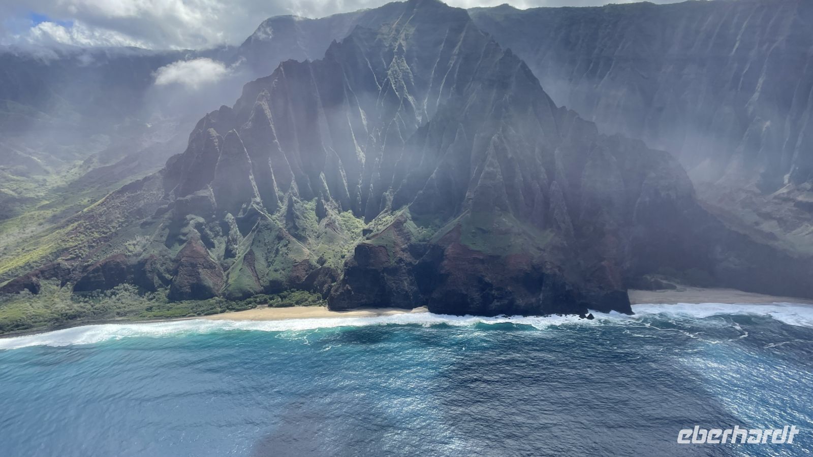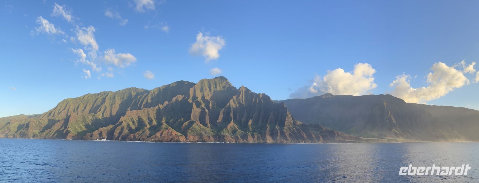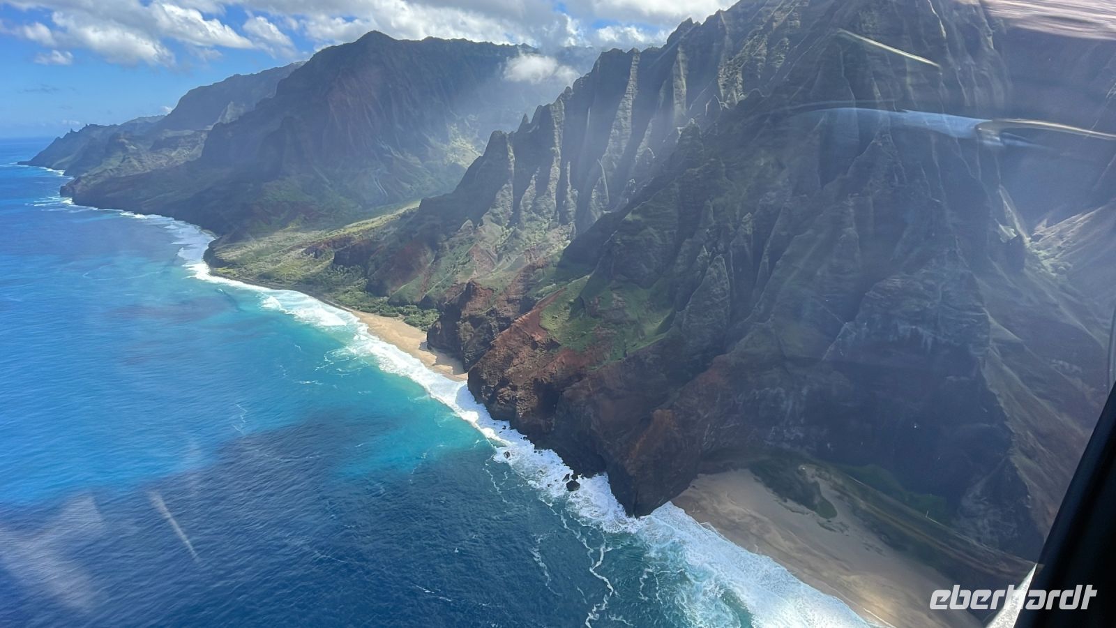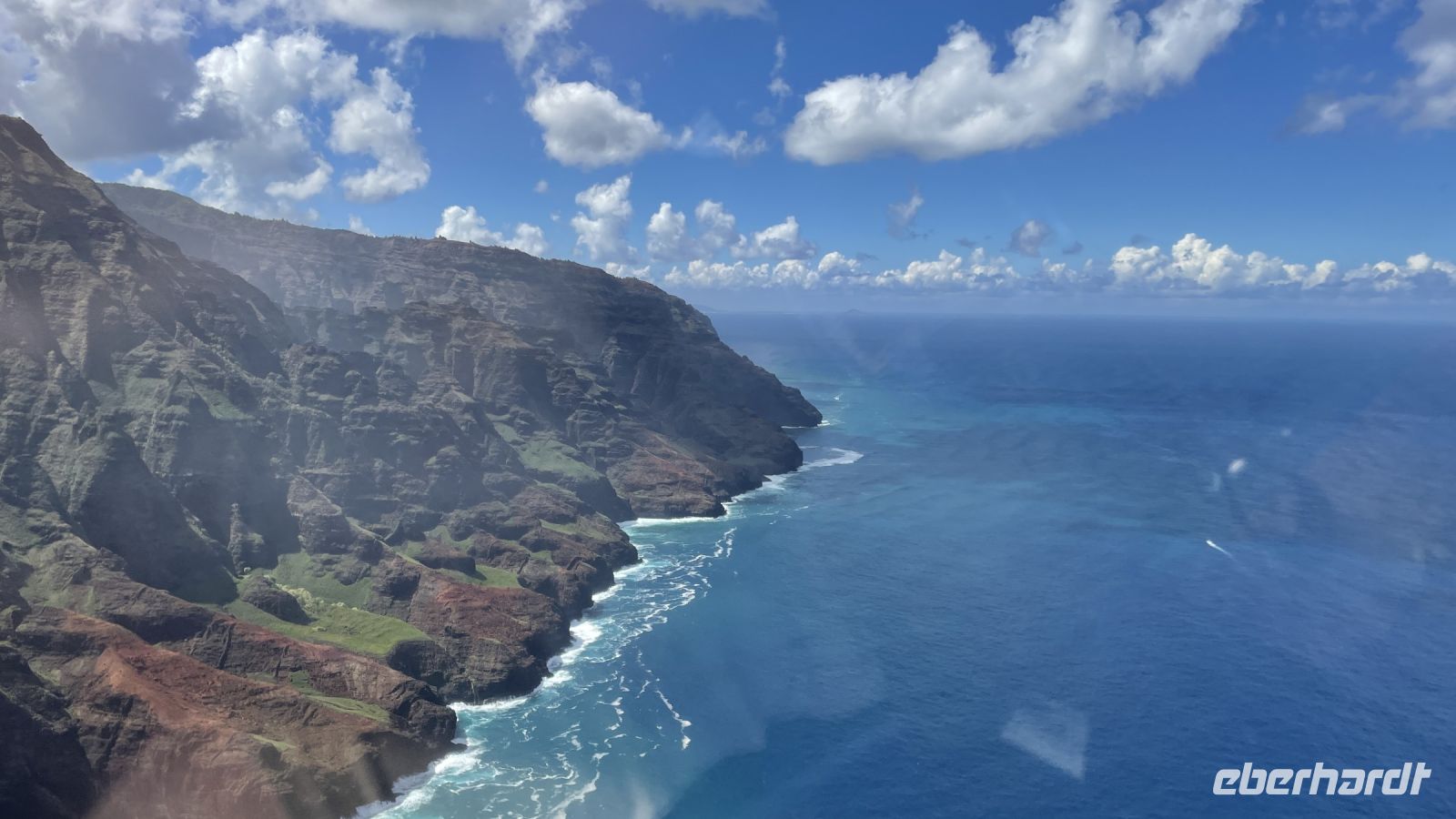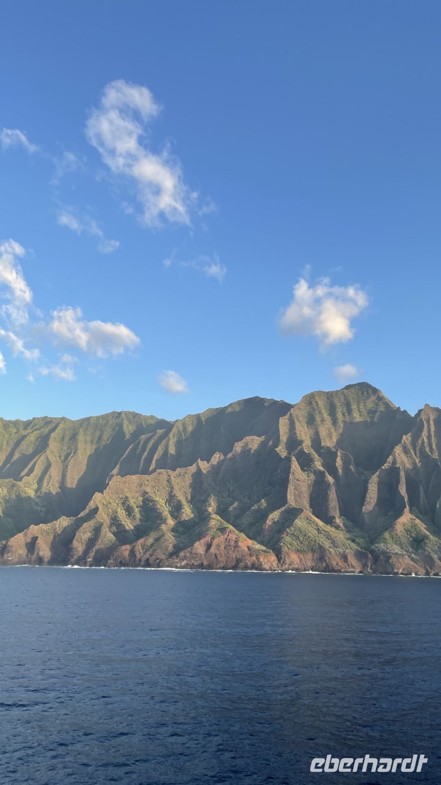 An unserem letzten Tag auf dem Schiff, genießen einige ihren freien Tag oder kommen mit mir mit zum Helikopter fliegen. 6 Gäste plus meine Person, haben sich für einen Rundflug über Kauai und die Jurassic Park Filmsets entschieden. Leider erfahren wir vor Ort, dass ein Helikopter kaputt ist und nur 2 Gäste mitfliegen können. Zum Glück konnte ich bei einer anderen Firma noch einen Alternativen Helikopter organisieren, weshalb wir nun alle in den Genuss kommen. Wir fliegen eine Stunde über die Insel… über den Waimea Canyon, unzählige Wasserfälle und schließlich entlang der atemberaubenden Napali Küste. Es ist einfach unglaublich schön! Danach geht es wieder aufs Schiff zurück und 14Uhr legen wir pünktlich wieder ab. Gegen 17:30Uhr erreichen wir noch einmal mit der Pride of America die Napali Küste. Bei einem traumhaften Sonnenuntergang genießen wir den Blick auf die gigantischen Felsen. Eine tolle Kreuzfahrt geht zu Ende und wir treffen uns zum Abendessen im Skyline Restaurant wieder. Danach lassen wir die Reise Revue passieren bei einem Absacker Drink an der Bar, bevor wir unsere Koffer packen.