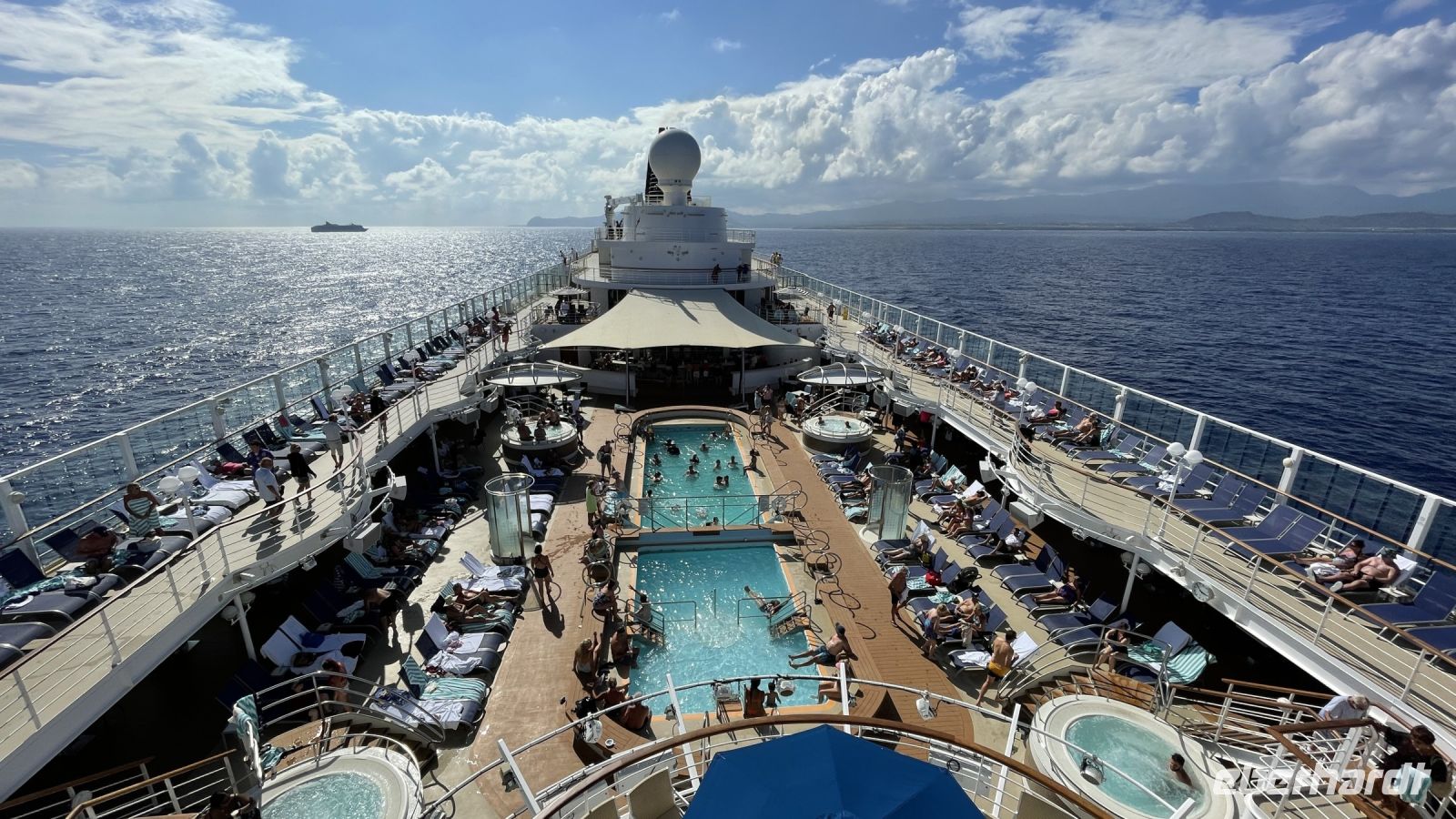 Wir verlassen unser Hotel gegen 11:00Uhr und fahren mit gepackten Koffern in Richtung Hafen. Dort angekommen werden unsere Koffer gleich von den Kofferboys ausgeladen. Der Check-in klappt reibungslos und wir kommen zügig auf das Schiff. Die Pride of America ist also nun unser Zuhause für die nächste Woche. Als erstes statten wir dem Ausflugsdesk einen Besuch ab. Dort erfahren wir leider, dass die meisten Ausflüge bereits ausgebucht sind, obwohl uns eine andere Information im Vorfeld erreichte. Einige Gäste hatten schon im Vorfeld ihre Ausflüge gebucht, einige jedoch noch nicht. Alle Gäste die nun keine Ausflüge mehr Buchen können, haben nun die Möglichkeit mit mir auf eigene Faust die verschiedenen Inseln zu erkunden. Dazu später mehr…! Wir gehen erstmal zum Mittagessen und beziehen danach unsere Kabinen. Danach unternehmen wir einen kleinen Schiffsrundgang und am frühen Abend legt das Schiff von Honolulu ab. Nun stechen wir in See und fahren in Richtung Maui. Unser Abendessen genießen wir im Skyline Restaurant. Das Essen schmeckt sehr gut, jedoch dauert der Service relativ lange. Wir müssen feststellen, dass aufgrund der Coronakrise viele ungelernte Mitarbeiter auf dem Schiff arbeiten. Nichts desto trotz, freuen wir uns auf eine tolle Hawaii Kreuzfahrt. :-)