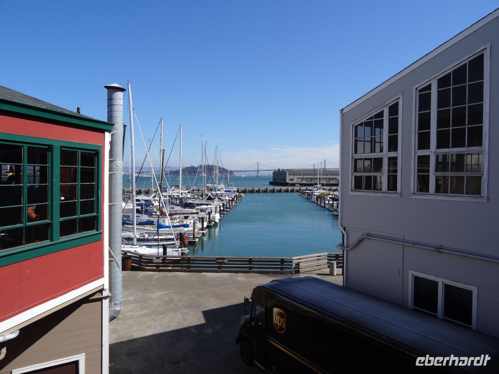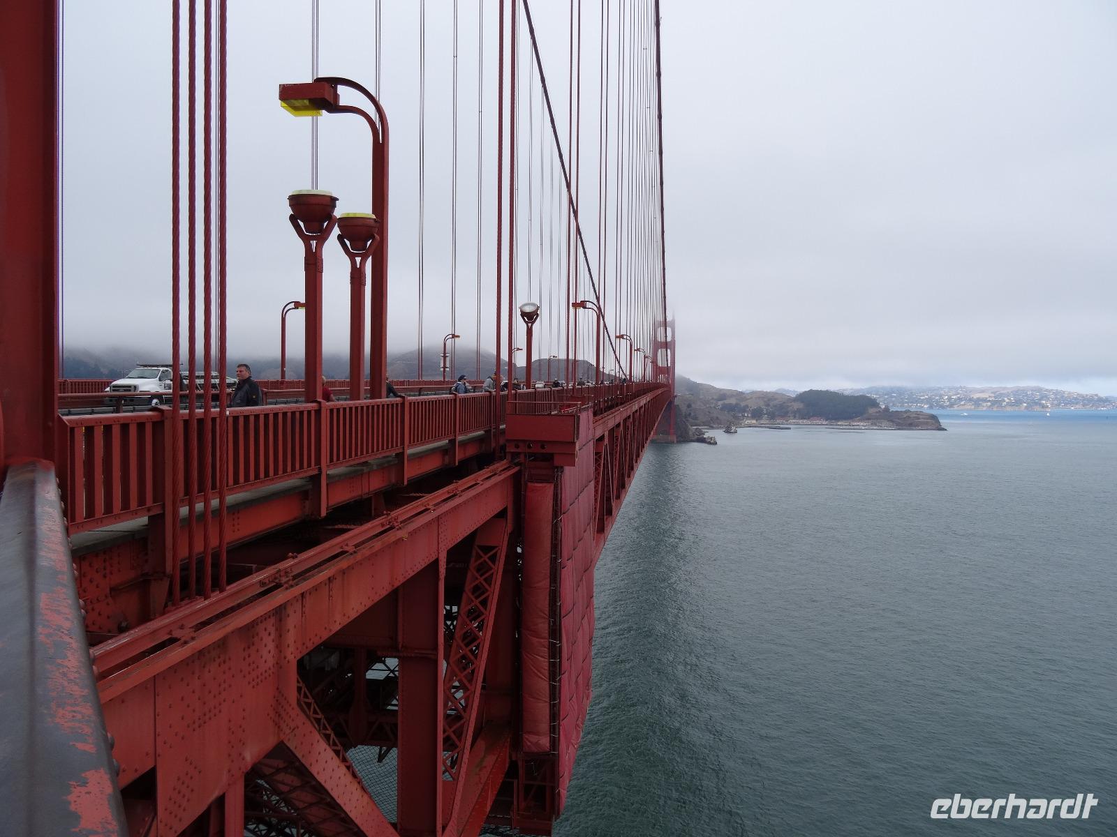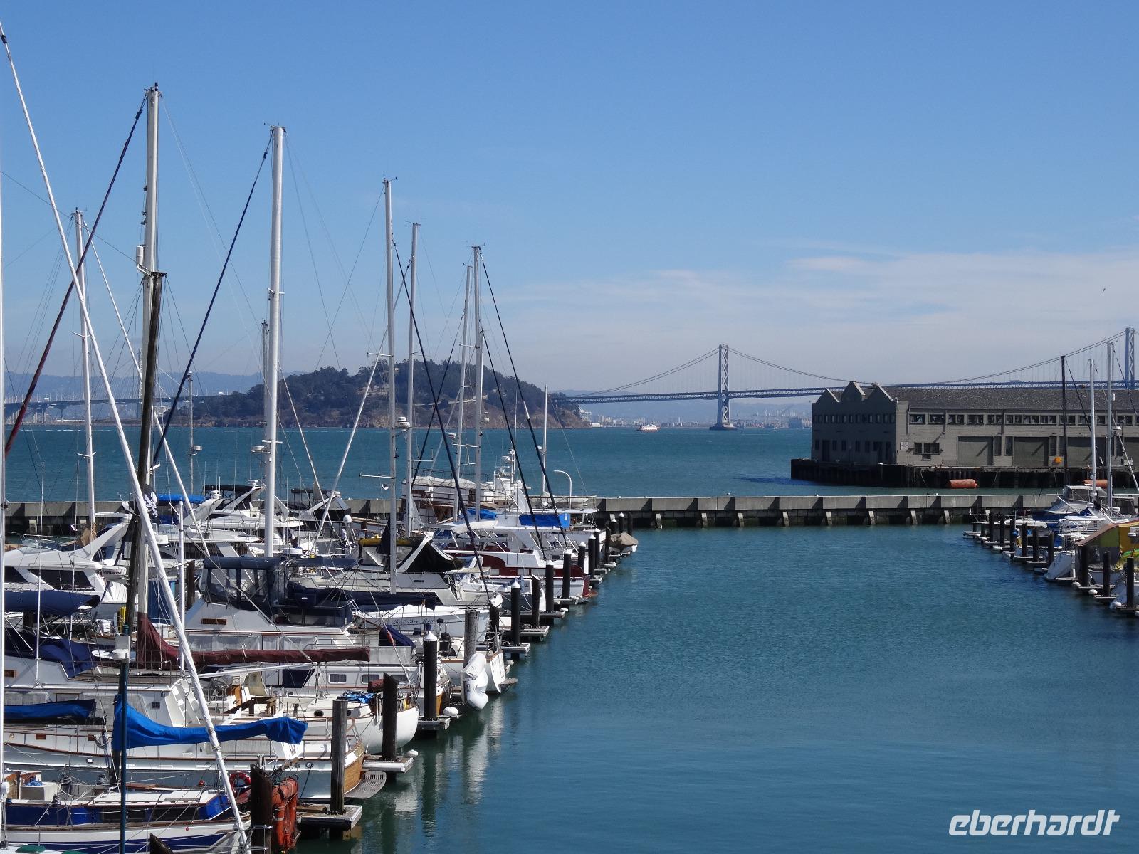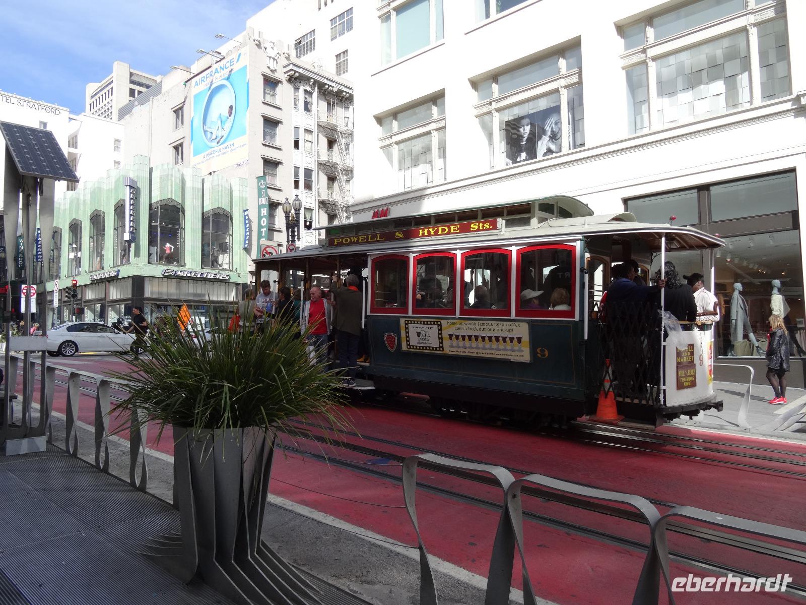 Der heutige Tag versprach mit dem Besuch der Gefängnisinsel Alcatraz einen weiteren Höhepunkt unserer Besichtigungen in der Bay-Area. Sätze wie dieser: "Brich die Regeln und du gehst ins Gefängnis, brich die Gefängnisregeln und du gehst nach Alcatraz" machten seit jeher den morbiden Charme und die Faszination der ehemaligen Gefängnisinsel aus. Jeder Besucher will erfahren, wo und wie einst Al Capone eingesessen hat und warum dieses Gefängnis als absolut ausbruchssicher galt. Mit der California Cable Car Linie fuhren wir bis zur Drumm Street, um von da aus den Weg zum Pier 33, von wo aus die Fähre nach Alcatraz übersetzt, zu Fuß zu gehen. Es war wieder ein schöner Tag und die Vorfreude beschleunigte unsere Schritte. Nach zahlreichen einleitenden und belehrenden Worten durch die Security am Pier 33, was man darf und vor allem nicht darf auf "The Rock", der Insel der Schwerstverbrecher, ging es in knapp zwanzigminütiger Fahrt mit einer Fähre hinüber. Hier angekommen, erklärte ein Parkranger nochmals den Ablauf der Besichtigung und tat Informationen und Hintergründe zum Gefängnis kund. The Rock erkundet man mittels einer Audio-Guided-Tour, welche akustisch sehr anschaulich, realitätsnah und inhaltlich ansprechend gemacht ist. Dabei wurde man durch den Sprecher sukzessive durch die Räumlichkeiten des Gefängnisses geleitet und mit besonderen Ereignissen konfrontiert, so dass man selbst ein beklemmendes Gefühl für die damaligen Bedingungen und die herrschenden Umstände entwickeln konnte. Nach kurzweiligen zwei Stunden waren uns die Namen Alvin "Creepy" Karpis, Robert "The Birdman" Stroud oder auch die von Bernard Coy und Joe Cretzer, zwei Initiatoren der sogenannten "Schlacht von Alcatraz", nicht mehr unbekannt. Trotzdem gelüstete uns nach so viel Gefängnisluft wieder nach freiheitlicher Weite und so verließen wir die Insel am frühen Nachmittag wieder auf demselben Weg wie wir hergekommen waren. Um die "wiedergewonnene" Freiheit richtig auskosten zu können, gab es kein weiteres bindendes Tagesprogramm, sondern jeder konnte nach Gutdünken und Interesse die nächsten Stunden in der Stadt genießen. Ein Teil der Gruppe spazierte bis zur Bay Street/ Ecke Taylor, um von hier aus mit einem Cable Car der Linie Powell-Mason quer durch Downtown zur Market Street zu fahren. Die quietschende, ratternde und manchmal auch unbequeme Fahrt mit einem Cable Car ist sicherlich eines der länger in Erinnerung bleibenden Dinge, die man als Tourist auf seinen Reisen unternehmen kann. Wo sonst kann man bei heutigem Straßenverkehr noch längsseits aus "der Bahn hängen", ohne dafür mit empfindlichen Strafen rechnen zu müssen? Ja, sicher, in Indien und im Herzen Afrikas mag das noch der Fall sein, aber für uns urbanisierte, paragraphenkonforme Wohlstandskosmopoliten war das eine Sensation! Und das auf einer richtigen Berg- und Talfahrt mit einem hundert Jahre alten Vehikel im Herzen der Zukunftsmetropole. Wo um die Ecke Google und Uber an selbstfahrenden Autos forschen und irgendwann von hier aus die Nachricht in die Welt dringen wird, dass Autos, Handys und ein eigener Wille ab sofort obsolet sind. Wir beamen uns fort, hyperkommunizieren und lassen denken. Aber so lange wir diese Stufe (glücklicherweise) nicht erreicht haben, fahren wir Cable Car! Und machten Macy's und ein paar tolle Geschäfte am Union Square unsicher, bevor wir pflastermüde in unser Heim auf Zeit an der Van Ness Avenue zurückkehrten. Nicht ohne noch Geld in diversen Restaurationen über die Stadt verteilt zu hinterlassen. Denn Hunger wird wahrscheinlich nie obsolet...
