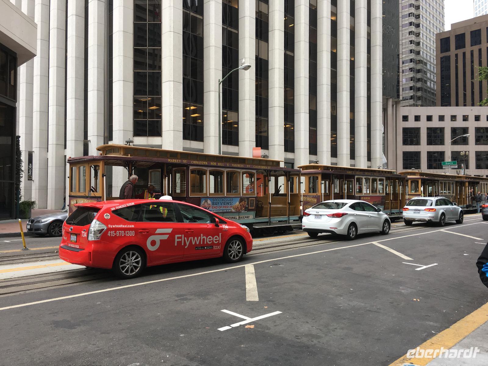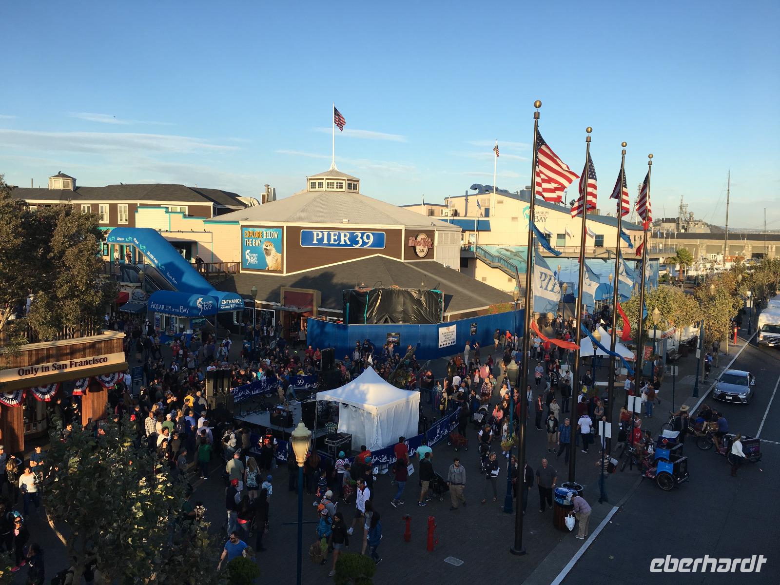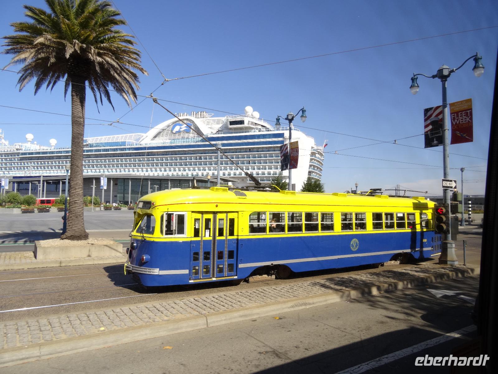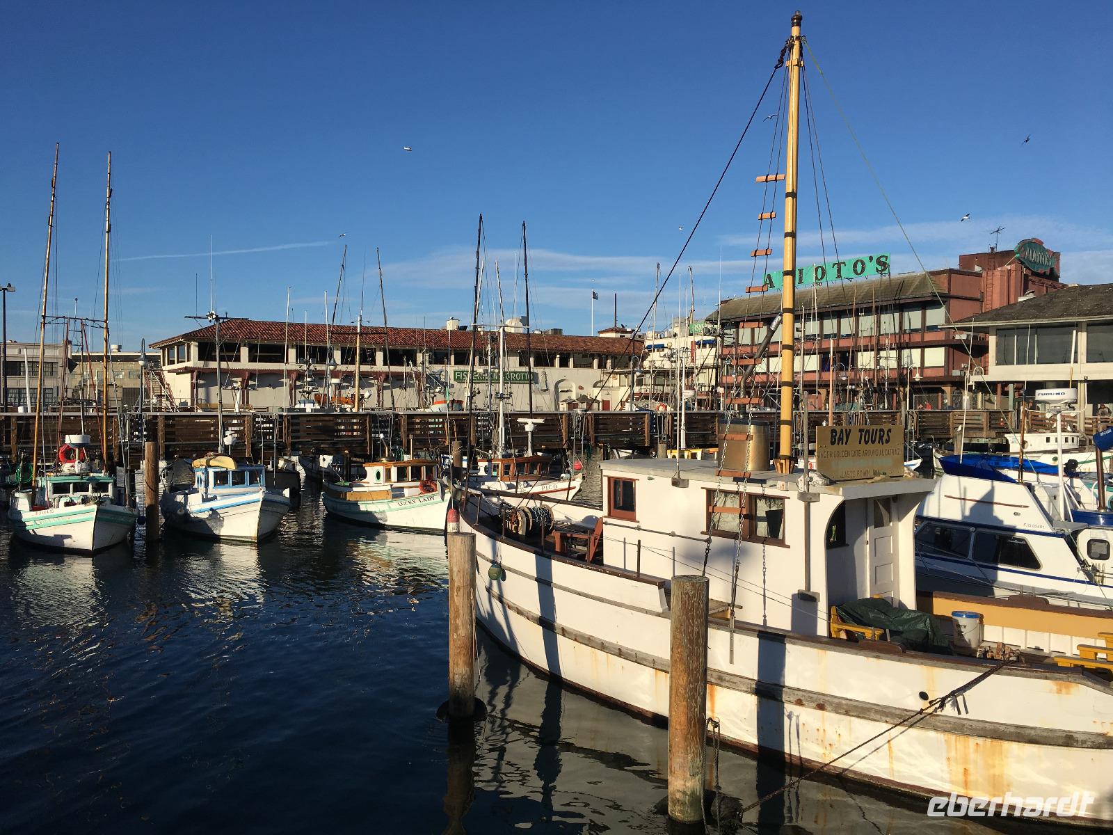 Der heutige Tag versprach mit dem Besuch der Gefängnisinsel Alcatraz einen weiteren Höhepunkt unserer Besichtigungen in der Bay-Area. Sätze wie dieser: "Brich die Regeln und du gehst ins Gefängnis, brich die Gefängnisregeln und du gehst nach Alcatraz" machten seit jeher den morbiden Charme und die Faszination der ehemaligen Gefängnisinsel aus. Jeder Besucher will erfahren, wo und wie einst Al Capone eingesessen hat und warum dieses Gefängnis als absolut ausbruchssicher galt. Mit der California Cable Car Linie fuhren wir bis zur Drumm Street, um von da aus den Weg zum Pier 33, von wo aus die Fähre nach Alcatraz übersetzt, zu Fuß zu gehen. Es war wieder ein schöner Tag und die Vorfreude beschleunigte unsere Schritte. Nach zahlreichen einleitenden und belehrenden Worten durch die Security am Pier 33, was man darf und vor allem nicht darf auf "The Rock", der Insel der Schwerstverbrecher, ging es in knapp zwanzigminütiger Fahrt mit einer Fähre hinüber. Hier angekommen, erklärte ein Parkranger nochmals den Ablauf der Besichtigung und tat Informationen und Hintergründe zum Gefängnis kund. The Rock erkundet man mittels einer Audio-Guided-Tour, welche akustisch sehr anschaulich, realitätsnah und inhaltlich ansprechend gemacht ist. Dabei wurde man durch den Sprecher sukzessive durch die Räumlichkeiten des Gefängnisses geleitet und mit besonderen Ereignissen konfrontiert, so dass man selbst ein beklemmendes Gefühl für die damaligen Bedingungen und die herrschenden Umstände entwickeln konnte. Nach kurzweiligen zwei Stunden waren uns die Namen Alvin "Creepy" Karpis, Robert "The Birdman" Stroud oder auch die von Bernard Coy und Joe Cretzer, zwei Initiatoren der sogenannten "Schlacht von Alcatraz", nicht mehr unbekannt. Trotzdem gelüstete uns nach so viel Gefängnisluft wieder nach freiheitlicher Weite und so verließen wir die Insel am frühen Nachmittag wieder auf demselben Weg wie wir hergekommen waren. Um die "wiedergewonnene" Freiheit richtig auskosten zu können, gab es kein weiteres bindendes Tagesprogramm, sondern jeder konnte nach Gutdünken und Interesse die nächsten Stunden in der Stadt genießen. Ein Teil der Gruppe spazierte bis zur Bay Street/ Ecke Taylor, um von hier aus mit einem Cable Car der Linie Powell-Mason quer durch Downtown zur Market Street zu fahren. Die quietschende, ratternde und manchmal auch unbequeme Fahrt mit einem Cable Car ist sicherlich eines der länger in Erinnerung bleibenden Dinge, die man als Tourist auf seinen Reisen unternehmen kann. Wo sonst kann man bei heutigem Straßenverkehr noch längsseits aus "der Bahn hängen", ohne dafür mit empfindlichen Strafen rechnen zu müssen? Ja, sicher, in Indien und im Herzen Afrikas mag das noch der Fall sein, aber für uns urbanisierte, paragraphenkonforme Wohlstandskosmopoliten war das eine Sensation! Und das auf einer richtigen Berg- und Talfahrt mit einem hundert Jahre alten Vehikel im Herzen der Zukunftsmetropole. Wo um die Ecke Google und Uber an selbstfahrenden Autos forschen und irgendwann von hier aus die Nachricht in die Welt dringen wird, dass Autos, Handys und ein eigener Wille ab sofort obsolet sind. Wir beamen uns fort, hyperkommunizieren und lassen denken. Aber so lange wir diese Stufe (glücklicherweise) nicht erreicht haben, fahren wir Cable Car! Und machten Macy's und ein paar tolle Geschäfte am Union Square unsicher, bevor wir pflastermüde in unser Heim auf Zeit an der Van Ness Avenue zurückkehrten. Nicht ohne noch Geld in diversen Restaurationen über die Stadt verteilt zu hinterlassen. Denn Hunger wird wahrscheinlich nie obsolet...