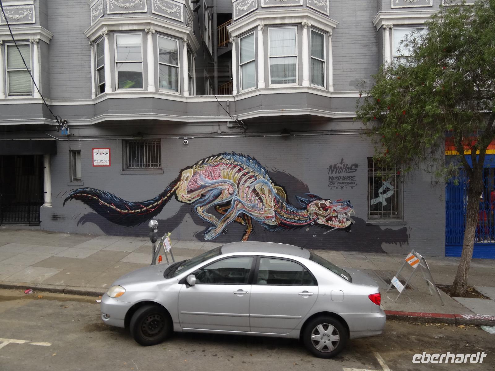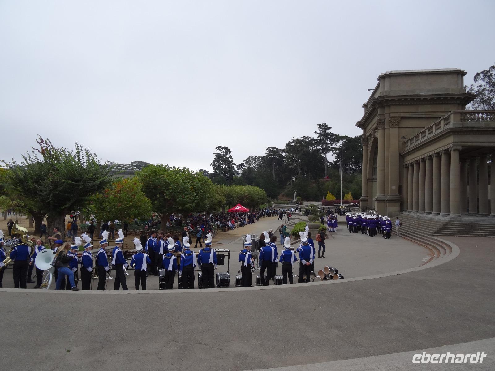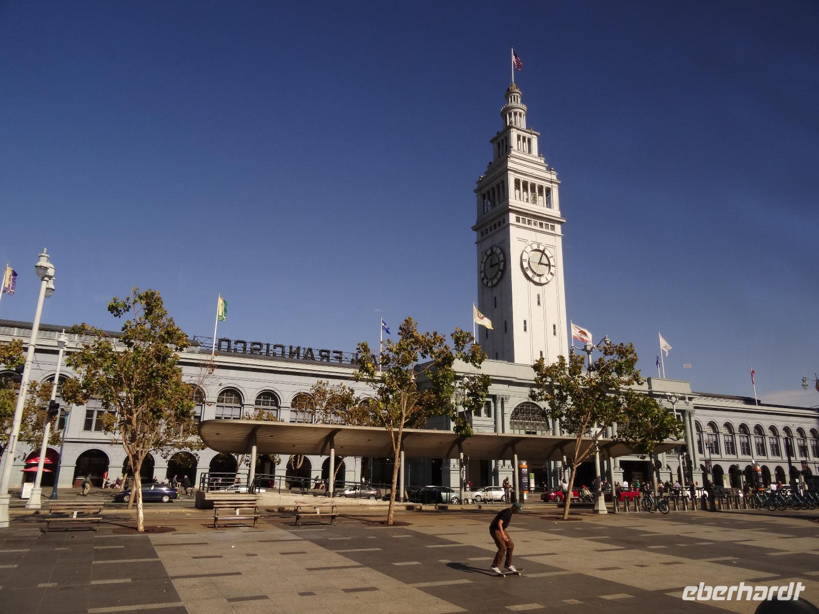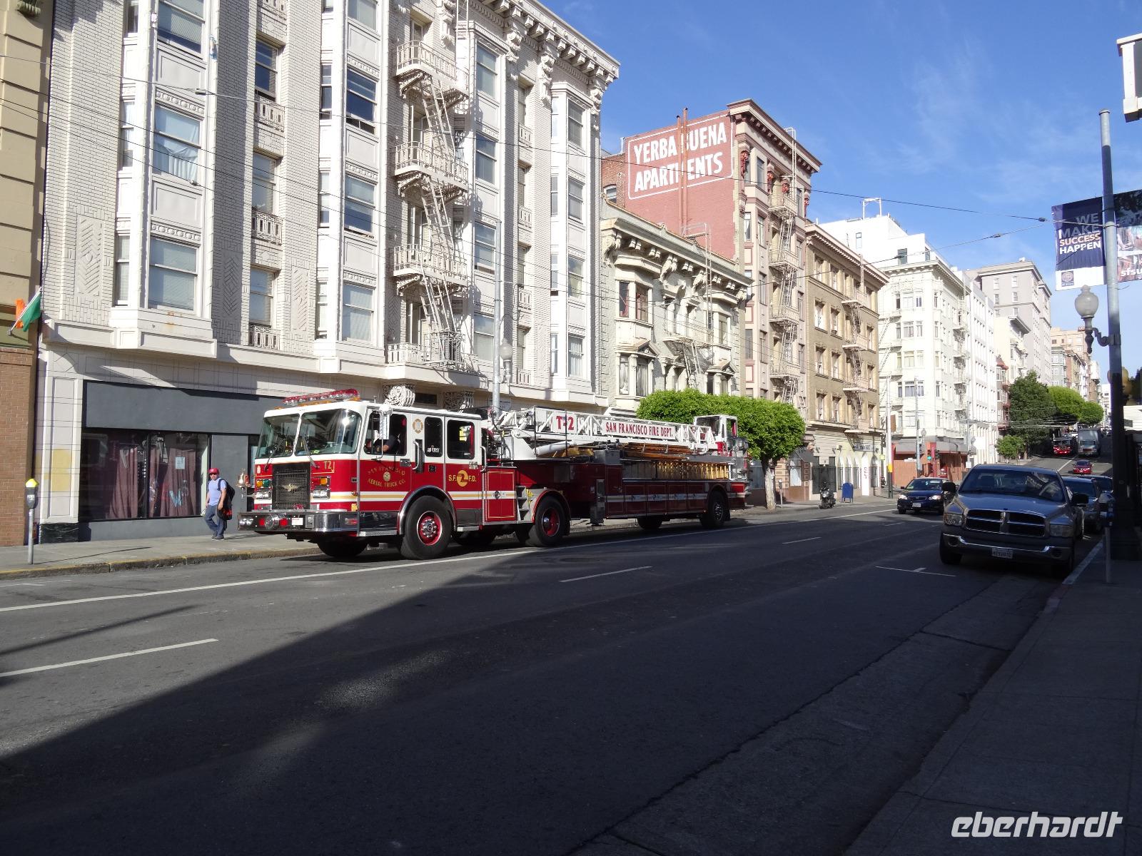 Nach ein paar Stunden erholsamen Schlafes und einem guten Frühstück ging es auf große Stadtrundfahrt. Wir alle waren gespannt auf die bekannten Sehenswürdigkeiten, die wir schon oft auf Bildern bewundern konnten und jetzt endlich in Natura erleben durften. Wir fuhren nordwärts durch Russian Hill, wo man während des Goldrauschs die Gräber russischer Trapper fand, an der bekannten Lombard Street vorbei, danach über Telegraph Hill und Chinatown in Richtung Süden, wo unser erster Stopp am Civic Center erfolgte. Wir stiegen aus und bewunderten die dem Petersdom nachempfundene City Hall, das Rathaus der Stadt, bevor wir unseren Weg mit dem Bus zum Alamo Square fortsetzten, um die wunderbar bunten viktorianischen Häuser, die Painted Ladies, anzuschauen. Leider waren hier größere Baumaßnahmen in der Durchführung, so dass das weithin bekannte Motiv nicht sehr fotogen rüberkam. Nächster Stopp war die architektonisch beeindruckende St. Marys Cathedrale, die in ihrem Inneren bis zu 2500 Menschen Platz gewähren kann. Nicht fehlen darf natürlich das älteste Gebäude San Franciscos, die 1776 gegründete spanische Mission Dolores, die im Laufe ihrer Geschichte so manches Erdbeben überstanden hat. Anschließend passierten wir die Viertel Castro und Heights Ashbury, die vor allem Aufgrund ihrer schwul-lesbischen Community bzw. ihrer Hippivergangenheit Bekanntheit erlangt haben. Wir fuhren in den Golden Gate Park ein, die grüne Oase in der Stadt und pausierten für 20 Minuten am Concourse, wo diverse Spielmannszüge ihre kurzen Auftritte hinlegten. Sehr zur Freude und unter dem Applaus des Publikums. Über Ocean Beach, dem "Surferstrand" der Stadt, ging es am Lincoln Park und dem Presidio vorbei zur Golden Gate Bridge, wo wir unseren Bus verließen und das wahrscheinlich wichtigste Bauwerk San Franciscos zu Fuß überquerten. Weithin leuchtend im Farbton "International Orange" brauchten wir eine gute Stunde, um das 2,8 Kilometer lange Wahrzeichen gemächlichen Schrittes zu überqueren. Dabei nahm weniger die tolle Aussicht unsere permanente Aufmerksamkeit in Anspruch, sondern die scheinbar militant-vorfahrtsbeanspruchenden Radfahrer, die einen trillerpfeifend mit beinahe Tour-de-France-Geschwindigkeit waghalsig überholten. Am anderen Ende im Marin County stiegen wir wieder in unseren Bus und durchfuhren das kleine, beschauliche Städtchen Sausolito, welches seinen Bewohnern eine großstadtnahe, aber durchaus kleinbürgerlich-elitäre Idylle bieten kann. Wieder in der Stadt zurück passierten wir Pacific Heights, bevor wir am Fisherman's Wharf, genauer gesagt am Pier 39, eine kleine Mittagspause einlegten. Hier gab es so ziemlich alles, was der moderne Tourist zur schnellen Sättigung von Augen, Ohren und vor allem Magen normalerweise sucht. Inklusive einer kleinen Seelöwenkolonie, die sich hier auf hölzernen Pontons häuslich niedergelassen hat. Derart gestärkt an Leib und Seele setzten wir unsere Stadterkundung fort und begaben uns erneut zur Lombard-Street, um diese jetzt auf dem berühmten, gewundenen Teilstück zu Fuß zu erkunden. Wieder im Bus, machten wir dem Embarcadero unsere Aufwartung und fuhrnierten (mein persönlicher Beitrag zum Kunstwort des Jahres: eine Mischung aus fahren und flanieren) gemächlich zwischen Fishermann's Wharf und dem Ferry Building entlang, immer die auffällig bunt lackierten alten Trambahnen im Blick. Zum Abschluss unserer heutigen Tour durchquerten wir South Beach und South of Market mit den emporspringenden Neubauten im Safer-Earthquake-Style, bevor wir über den Financial District, Nob Hill und Japantown zum Hotel zurückfuhren. Eine wunderbare Fahrt durch eine wunderbare Stadt an einem wunderbaren Tag (Columbus-Day) nahm damit ihr Ende.