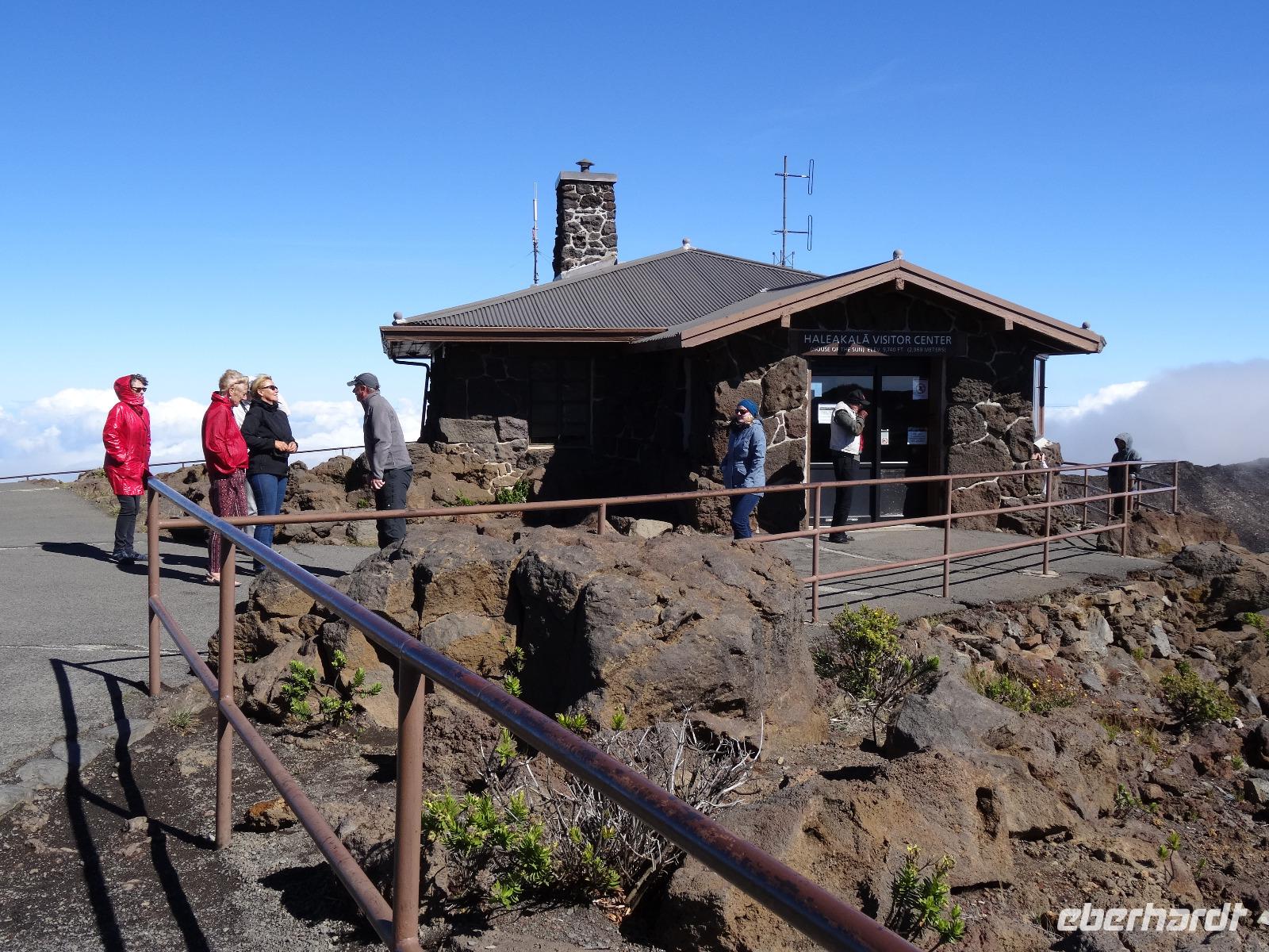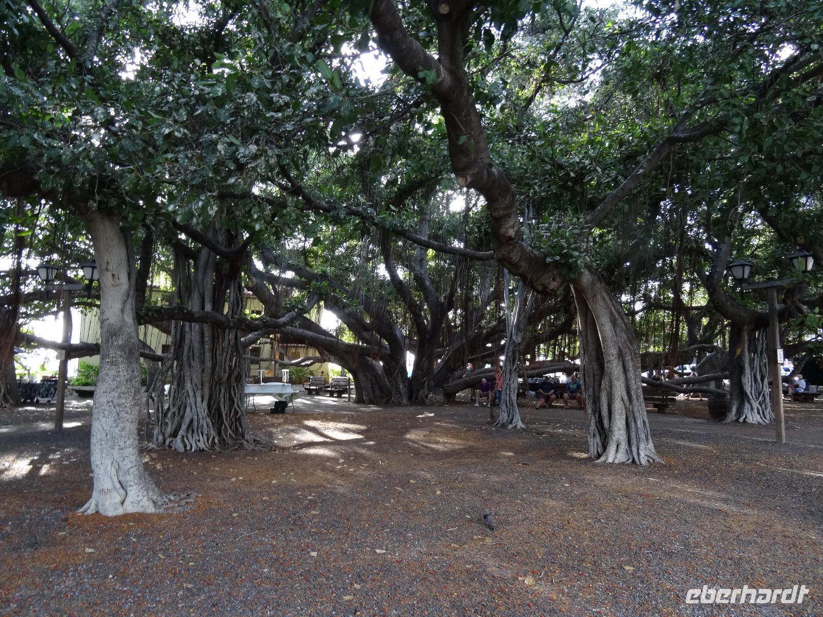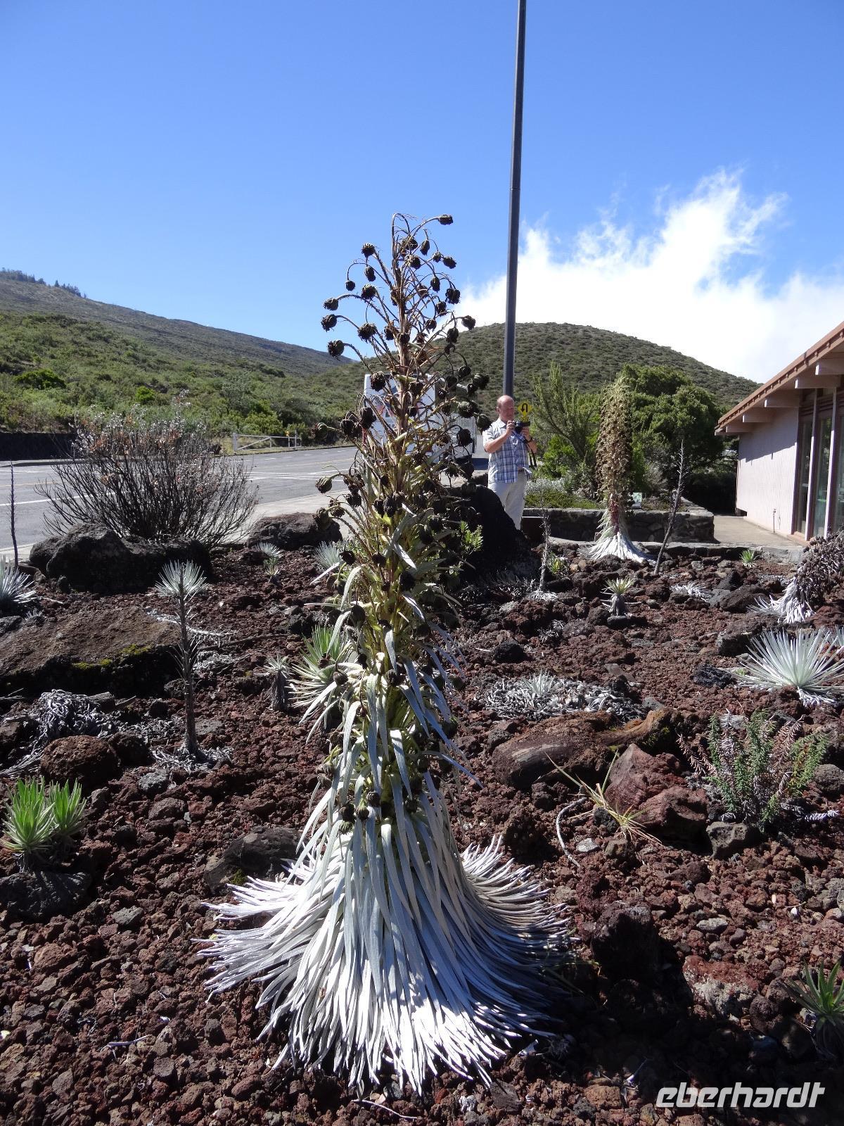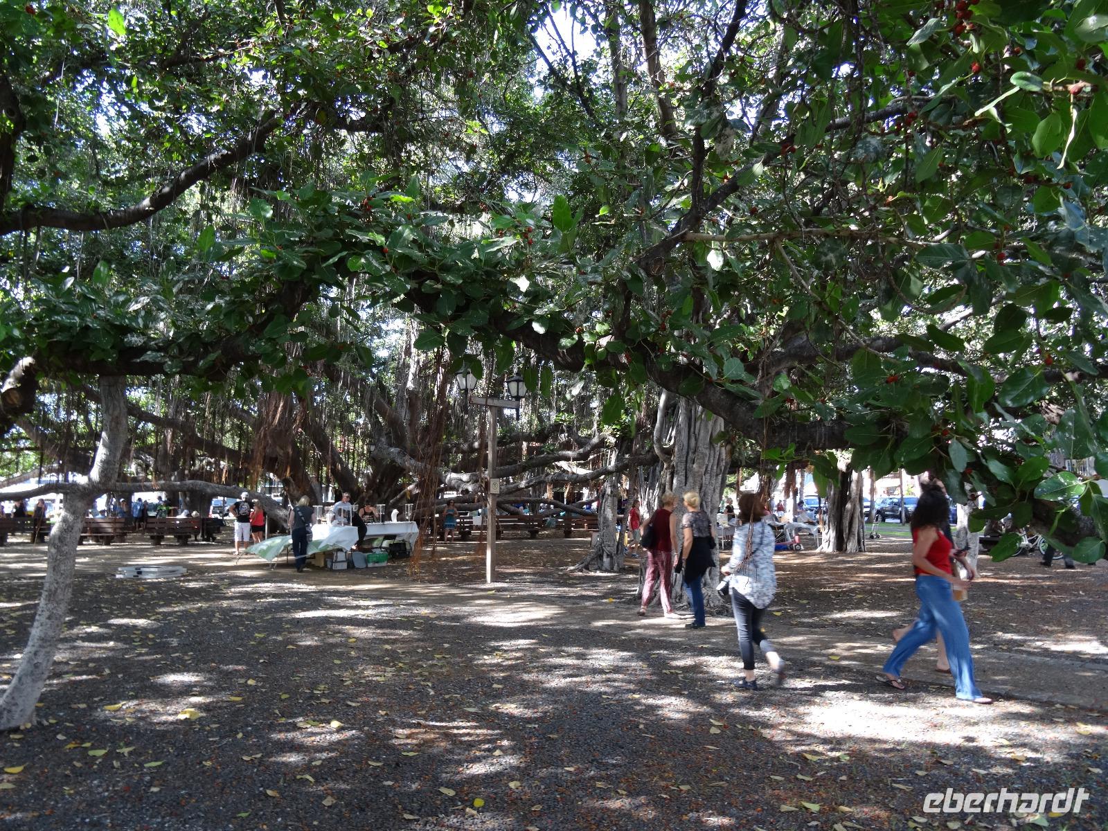 Seitdem wir auf Maui waren, schien uns der Regen zu verfolgen. Als wir an diesem Morgen unsere Augen aufschlugen und aus dem Fenster schauten, war ringsumher alles nass. Was generell nichts Schlechtes bedeuten muss, da das Wetter hier auch relativ schnell umschlägt. Aber von ewiger Sonneninsel kann auch keine Rede sein. So bestiegen wir nach dem Frühstück unseren Bus und starteten zu einer Fahrt, die uns auf knapp dreitausend Meter Höhe bringen sollte. Kleidungstechnisch waren wir sowohl für kalte Temperaturen als auch für Regen gerüstet. Wir fuhren an Lahaina vorbei die schöne Küstenstraße in Richtung Kahului entlang, passierten dabei die engste Stelle der Insel, die in der Nord-Südausdehnung nur knapp 15 Kilometer breit ist und der Insel ihren Beinamen Talinsel gegeben hat. Betrachtet man diese Stelle nämlich von den beiden Bergen Haleakala und Mauna Kahalawai aus, blickt man (zwangsläufig) in ein sich so ergebendes Tal. Wir bogen vor Kahului auf die Straße zum Nationalpark Haleakala ab und konnten zu unserer Freude feststellen, dass sich das Wetter im Trockenmodus befand. Wenn wir jetzt noch gute Sicht am Krater hätten... Doch soweit war es noch nicht. Vorher galt es, die serpentinenreiche Straße bergaufwärts zu meistern. Unterwegs sahen wir ein paar wenige Proteen und die seltene, nur hier wachsende Pflanze Ahinahina, das Silberschwert. Nach dem Erreichen des Haleakala-Besucherzentrums stiegen wir aus und - fröstelten. Es schien zwar glücklicherweise die Sonne, dafür blies der kalte Wind umso heftiger. Nichtsdestotrotz genossen wir hier in dreitausend Meter Höhe einen tollen Ausblick auf den riesigen Krater, der sich uns zu Füßen in verschiedenen Farben darbot. Stetige Wolkenbewegungen sorgten für immer andere Sichtfelder und am Ende unseres Aufenthalts zog urplötzlich so viel Nebel auf, dass der Krater und das nahegelegene Observatorium quasi im Nichts verschwanden. Vorher war uns aber noch der Blick auf die Nachbarinsel Big Island vergönnt, wo wir die beiden beherrschenden Vulkane Mauna Kea und Mauna Loa gut sehen konnten. Wir verließen den Haleakala-Gipfel wieder und begaben uns zurück auf Meeresspiegelniveau. Über Hali'imaile und Pa'ia fuhren wir weiter zur Maui Tropical Plantation bei Waikapua. Diese wunderschöne tropische Anlage bot einen guten Überblick über die Flora Hawaiis. Teile von alten Industrieanlagen waren dabei architektonisch eindrucksvoll in die Landschaft integriert worden und gingen mit den sie umgebenden Pflanzen eine wunderbare Symbiose ein. Bei einer kleinen Plantagenrundfahrt mit einer Elektrobahn sahen wir viele der hier wachsenden Pflanzen und Früchte aus der Nähe und konnten einer Schauvorführung beiwohnen, die das fachmännische Öffnen einer Kokosnuss zeigte. Zu guter Letzt führte uns unsere Tour nach Lahaina, in die ehemalige Inselhauptstadt unter Kamehameha I. und spätere Walfängerhochburg im Pazifik. Davon zeugen heute nur noch wenige Memorabilien, hat sich das Städtchen doch mittlerweile dem Tourismus an den Hals geworfen und dementsprechend viele Restaurants, Shops, Museen und vor allem Galerien entstehen lassen, die um die Gunst der Besucher buhlen. Einige wenige Häuser aus der Zeit des Walfangs waren noch zu besichtigen. Ein botanisches Highlight war sicher der mehr als 140 Jahre alte indische Banyasbaum, der mit einer Kronenfläche von knapp einem Hektar der drittgrößte Baum seiner Art weltweit ist. Wir verließen Lahaina, was auf Deutsch "Gnadenlose Sonne" bedeutet und während unseres Aufenthaltes spürbar war, am späten Nachmittag und kehrten in unser Hotel am Ka'anapali Beach zurück. Bevor wir uns jedoch mit dem Packen der Koffer beschäftigen wollten, nutzten einige die verbleibende Zeit noch zum Baden, Schnorcheln oder um einfach noch ein paar Andenken shoppen zu gehen.