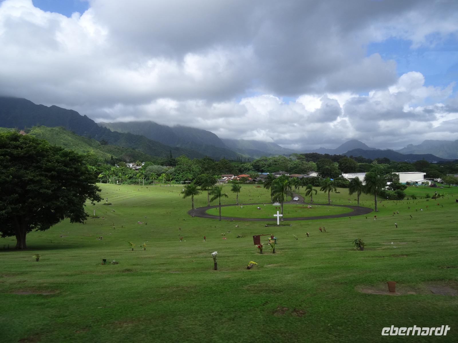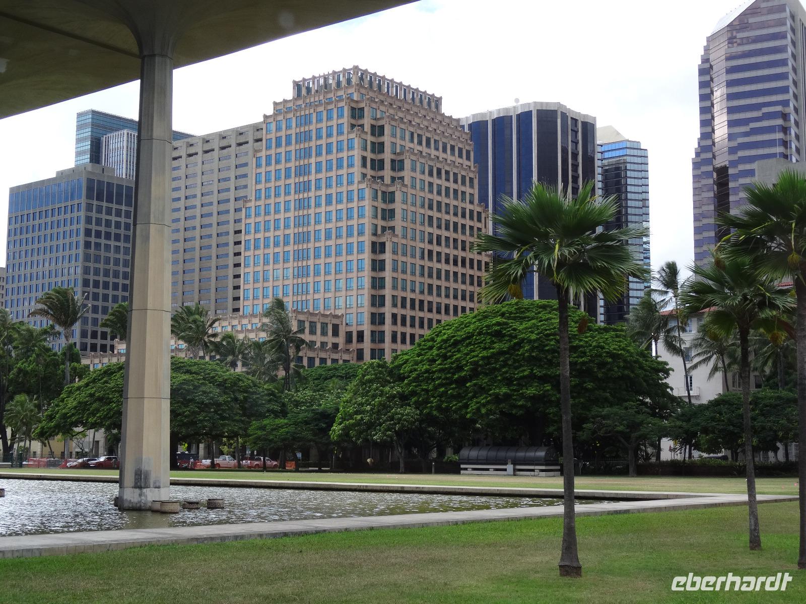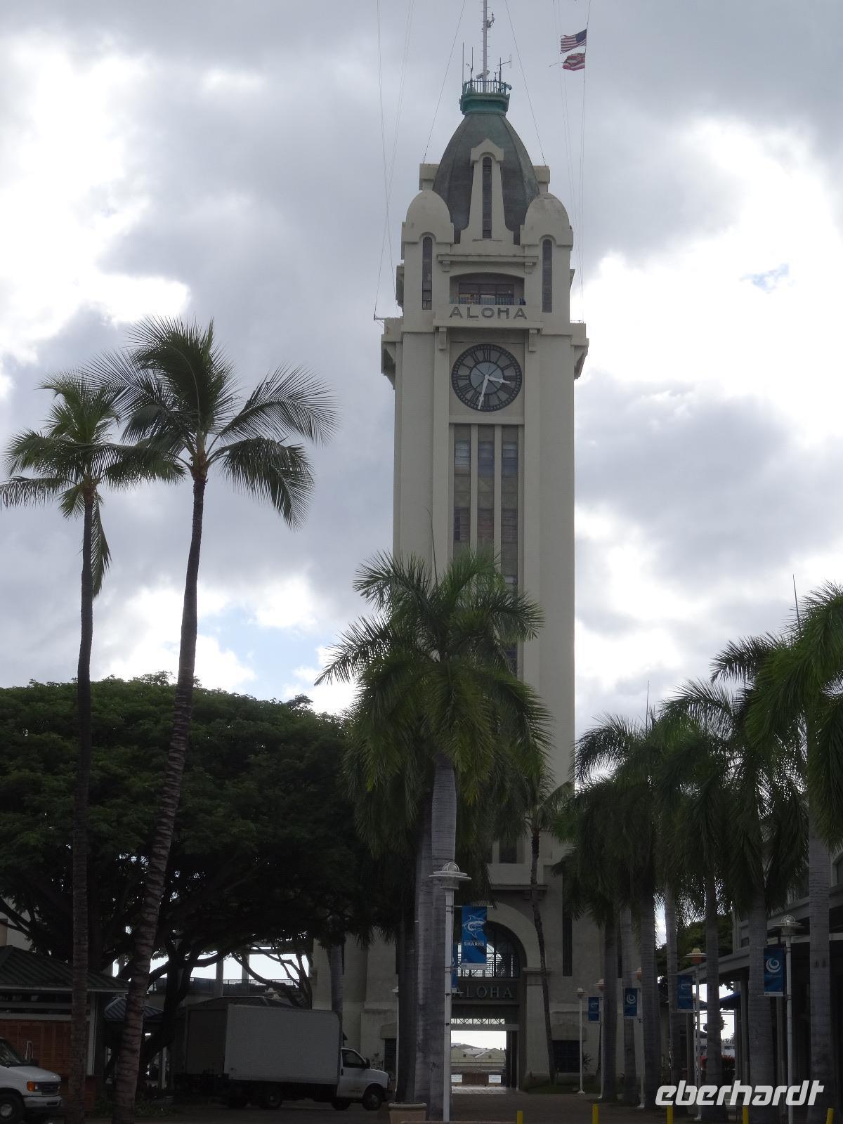 Wer an Hawaii denkt, hat in erster Linie die landschaftlichen Schönheiten vor Augen, wird bestenfalls aber auch die weltpolitisch bedeutenden Ereignisse des Jahres 1941 kennen, die auf der Insel Oahu stattgefunden haben. Die Rede ist von dem japanischen Luftangriff auf den Marinestützpunkt Pearl Harbor sowie die Air Force Bases Hickham, Wheeler und andere. Die Ereignisse von damals bedeuteten den Eintritt der USA in den 2. Weltkrieg sowie die Kriegserklärung an Japan. Mit derlei historischen Vorkenntnissen gerüstet, wollten wir heute die nationale Gedenkstätte Pearl Habor besichtigten. In knapp dreißig Minuten gelangten wir zum Ausstellungsgelände, welches wir nach einem kurzen Sicherheitscheck betraten. Bevor wir einen etwa halbstündigen Film über die damaligen Geschehnisse im pazifischen Raum sahen, konnten wir uns noch mit den ausgestellten Exponaten und ergänzenden Erklärungen im Freigelände befassen. Anschließend gelangten wir mit einem Tender zum USS Arizona Memorial, welches über der Stelle errichtet wurde, wo das Schlachtschiff am 07. Dezember 1941 im Hafenbecken vernichtet wurde und 1177 Seeleute den Tod fanden. Reste des Schiffes sind immer noch sichtbar, da das Wrack zwar teilweise demontiert, aber nie gehoben wurde. Es dient als Ruhestätte für die überwiegende Mehrheit der gefallenen Besatzungsmitglieder. Wir verließen die Gedenkstätte und überquerten die Brücke nach Ford Island, wo wir das Battleship USS Missouri besichtigten. Das heutige Museumsschiff wurde neben dem Wrack der USS Arizona festgemacht, hatte es doch wie dieses eine ähnliche historische Bedeutung. Am 02. September 1945 unterschrieben die Vertreter Japans auf diesem Schiff die Kapitulationserklärung und sorgten damit für das Ende des 2. Weltkrieges. Mehrfach modernisiert diente es noch bis in die 90er Jahre des letzten Jahrhunderts als Kriegsschiff der Navy. Viele Bereiche des Schiffes waren zugänglich, konnten selbst erkundet werden oder wurden uns bei einer Führung näher erläutert. Es war schon früher Nachmittag, als wir uns mit dem Bus auf den Rückweg nach Honolulu machten. Nach einer kleinen Mittagspause bei Gordon Biersch, direkt am Hafen gelegen, wo man auch Spätzle, Bratwurst, Sauerkraut und Bier nach deutschem Reinheitsgebot bekam, unternahmen wir eine kleine Stadtrundfahrt durch Honolulu. Vorbei an den Wohn- und Bürotürmen Downtown's fuhren wir zum Parlament, wo wir kurz stoppten, bevor wir durch Chinatown zum Iolani-Palace, dem Königspalast gelangten, welcher 1881 fertiggestellt wurde. Wir besichtigten ihn von außen, währenddessen uns Brigitte weitere Informationen zu seiner Geschichte und seinen königlichen Bewohnern zuteilwerden ließ. Anschließend überquerten wir die Straße und gelangten zur gegenüberliegenden Statue von König Kamehameha I., dem ersten König von Hawaii, der die Inseln 1810 zu einem Königreich vereinte. Die Statue steht vor dem Aliiolani Hale, einem Gebäude, in dem der oberste Gerichtshof von Hawaii untergebracht ist. Ein letzter kurzer Abstecher zum Aloha-Tower, dem Wahrzeichen der pazifischen Metropole, der seit 1926 die ankommenden Schiffe aus aller Welt begrüßt und danach ging es zurück zu unserem Hotel.