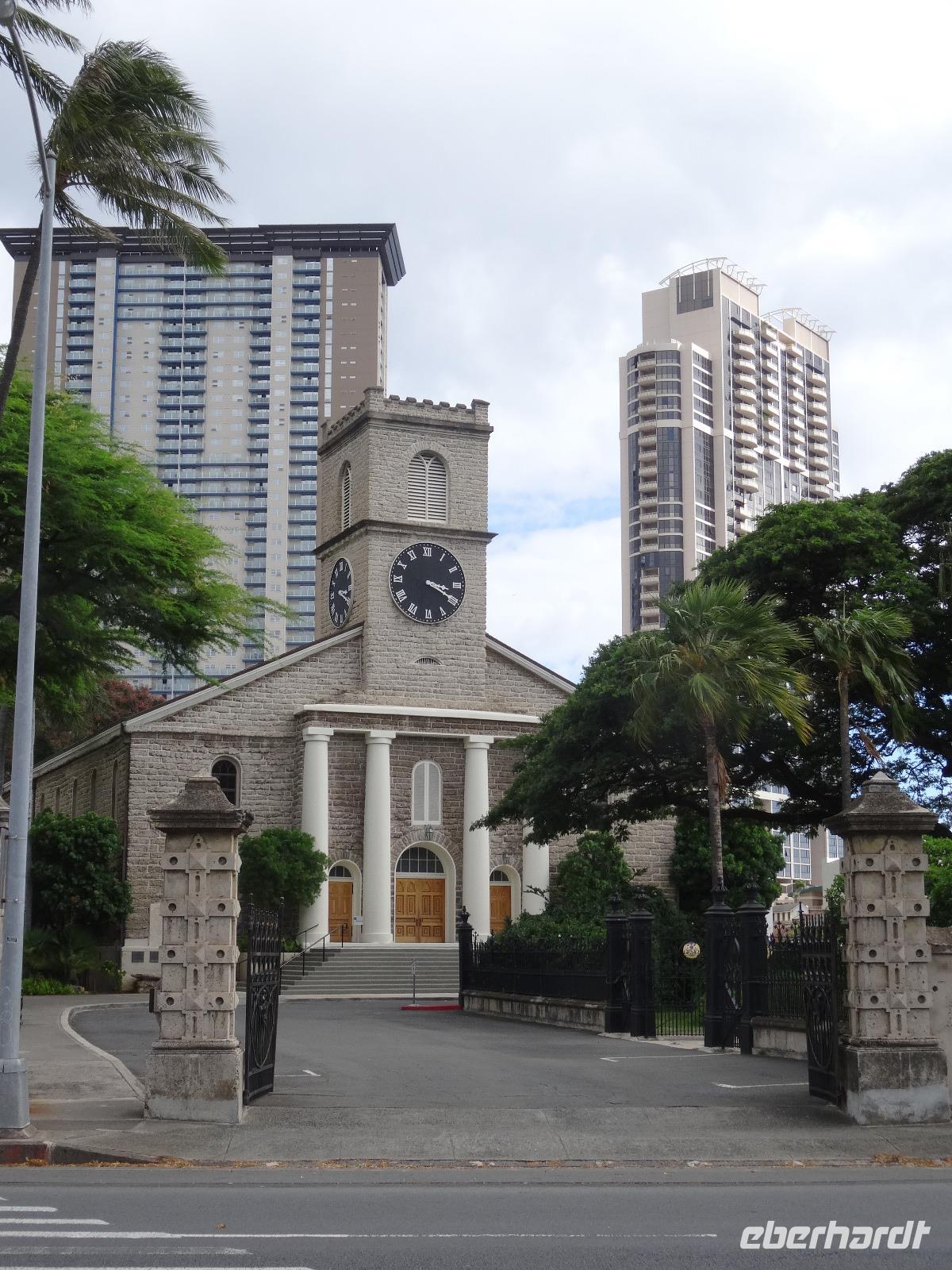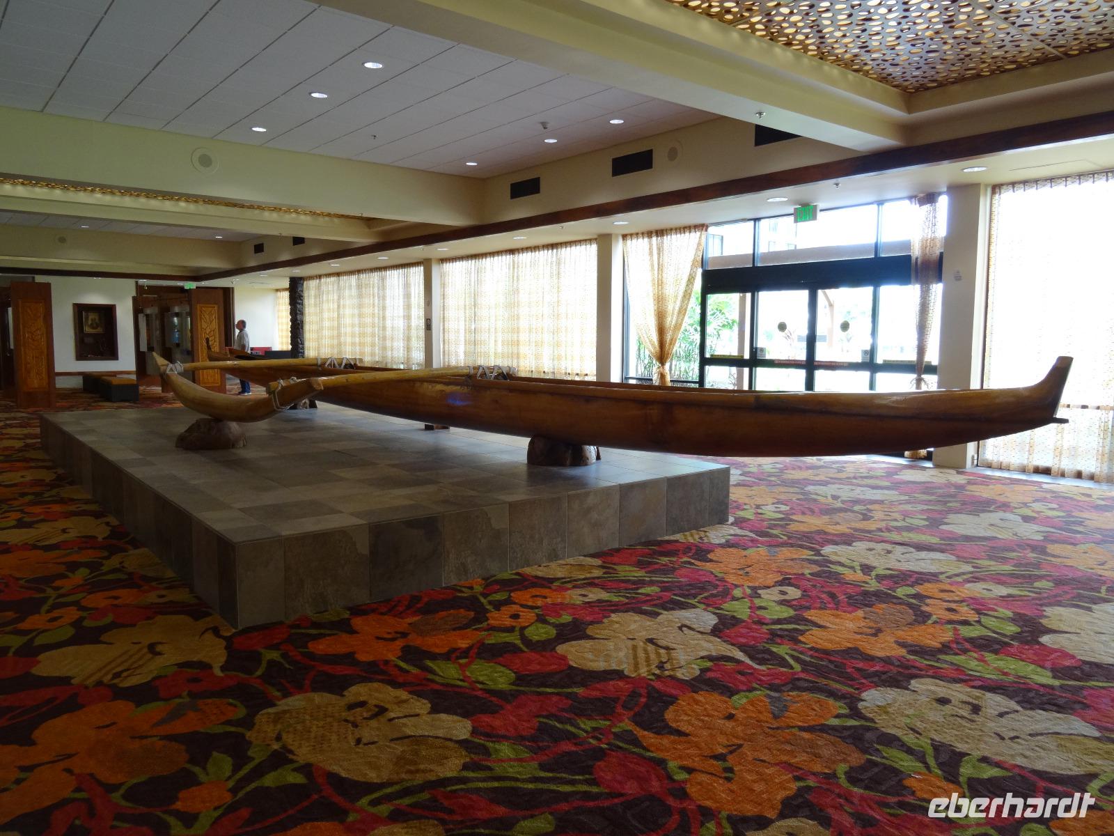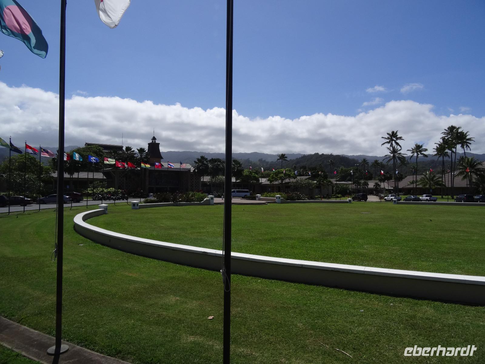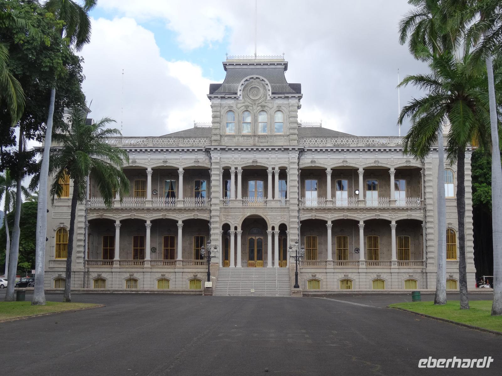 Wer an Hawaii denkt, hat in erster Linie die landschaftlichen Schönheiten vor Augen, wird bestenfalls aber auch die weltpolitisch bedeutenden Ereignisse des Jahres 1941 kennen, die auf der Insel Oahu stattgefunden haben. Die Rede ist von dem japanischen Luftangriff auf den Marinestützpunkt Pearl Harbor sowie die Air Force Bases Hickham, Wheeler und andere. Die Ereignisse von damals bedeuteten den Eintritt der USA in den 2. Weltkrieg sowie die Kriegserklärung an Japan. Mit derlei historischen Vorkenntnissen gerüstet, wollten wir heute die nationale Gedenkstätte Pearl Habor besichtigten. In knapp dreißig Minuten gelangten wir zum Ausstellungsgelände, welches wir nach einem kurzen Sicherheitscheck betraten. Bevor wir einen etwa halbstündigen Film über die damaligen Geschehnisse im pazifischen Raum sahen, konnten wir uns noch mit den ausgestellten Exponaten und ergänzenden Erklärungen im Freigelände befassen. Anschließend gelangten wir mit einem Tender zum USS Arizona Memorial, welches über der Stelle errichtet wurde, wo das Schlachtschiff am 07. Dezember 1941 im Hafenbecken vernichtet wurde und 1177 Seeleute den Tod fanden. Reste des Schiffes sind immer noch sichtbar, da das Wrack zwar teilweise demontiert, aber nie gehoben wurde. Es dient als Ruhestätte für die überwiegende Mehrheit der gefallenen Besatzungsmitglieder. Wir verließen die Gedenkstätte und überquerten die Brücke nach Ford Island, wo wir das Battleship USS Missouri besichtigten. Das heutige Museumsschiff wurde neben dem Wrack der USS Arizona festgemacht, hatte es doch wie dieses eine ähnliche historische Bedeutung. Am 02. September 1945 unterschrieben die Vertreter Japans auf diesem Schiff die Kapitulationserklärung und sorgten damit für das Ende des 2. Weltkrieges. Mehrfach modernisiert diente es noch bis in die 90er Jahre des letzten Jahrhunderts als Kriegsschiff der Navy. Viele Bereiche des Schiffes waren zugänglich, konnten selbst erkundet werden oder wurden uns bei einer Führung näher erläutert. Es war schon früher Nachmittag, als wir uns mit dem Bus auf den Rückweg nach Honolulu machten. Nach einer kleinen Mittagspause bei Gordon Biersch, direkt am Hafen gelegen, wo man auch Spätzle, Bratwurst, Sauerkraut und Bier nach deutschem Reinheitsgebot bekam, unternahmen wir eine kleine Stadtrundfahrt durch Honolulu. Vorbei an den Wohn- und Bürotürmen Downtown's fuhren wir zum Parlament, wo wir kurz stoppten, bevor wir durch Chinatown zum Iolani-Palace, dem Königspalast gelangten, welcher 1881 fertiggestellt wurde. Wir besichtigten ihn von außen, währenddessen uns Brigitte weitere Informationen zu seiner Geschichte und seinen königlichen Bewohnern zuteilwerden ließ. Anschließend überquerten wir die Straße und gelangten zur gegenüberliegenden Statue von König Kamehameha I., dem ersten König von Hawaii, der die Inseln 1810 zu einem Königreich vereinte. Die Statue steht vor dem Aliiolani Hale, einem Gebäude, in dem der oberste Gerichtshof von Hawaii untergebracht ist. Ein letzter kurzer Abstecher zum Aloha-Tower, dem Wahrzeichen der pazifischen Metropole, der seit 1926 die ankommenden Schiffe aus aller Welt begrüßt und danach ging es zurück zu unserem Hotel.