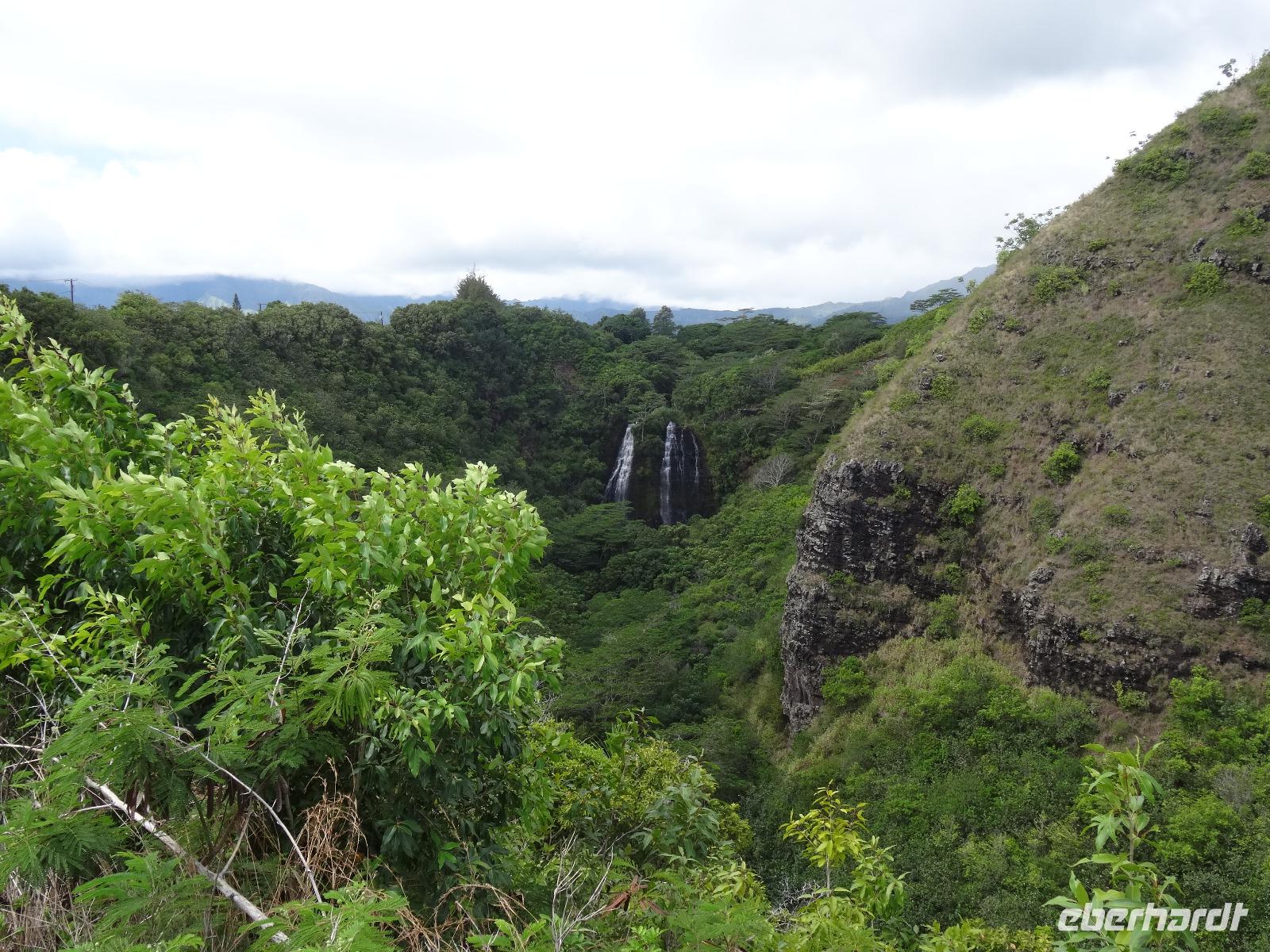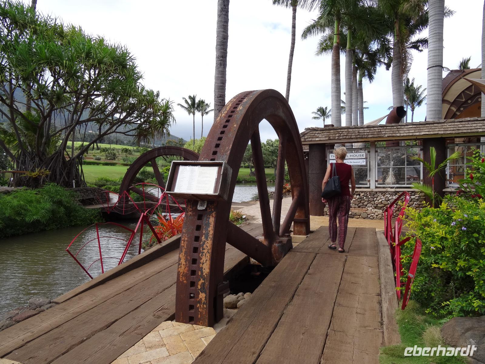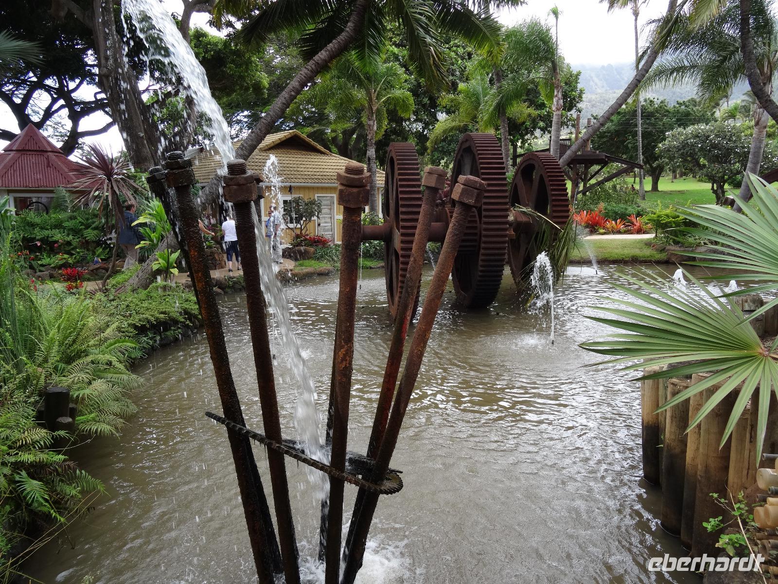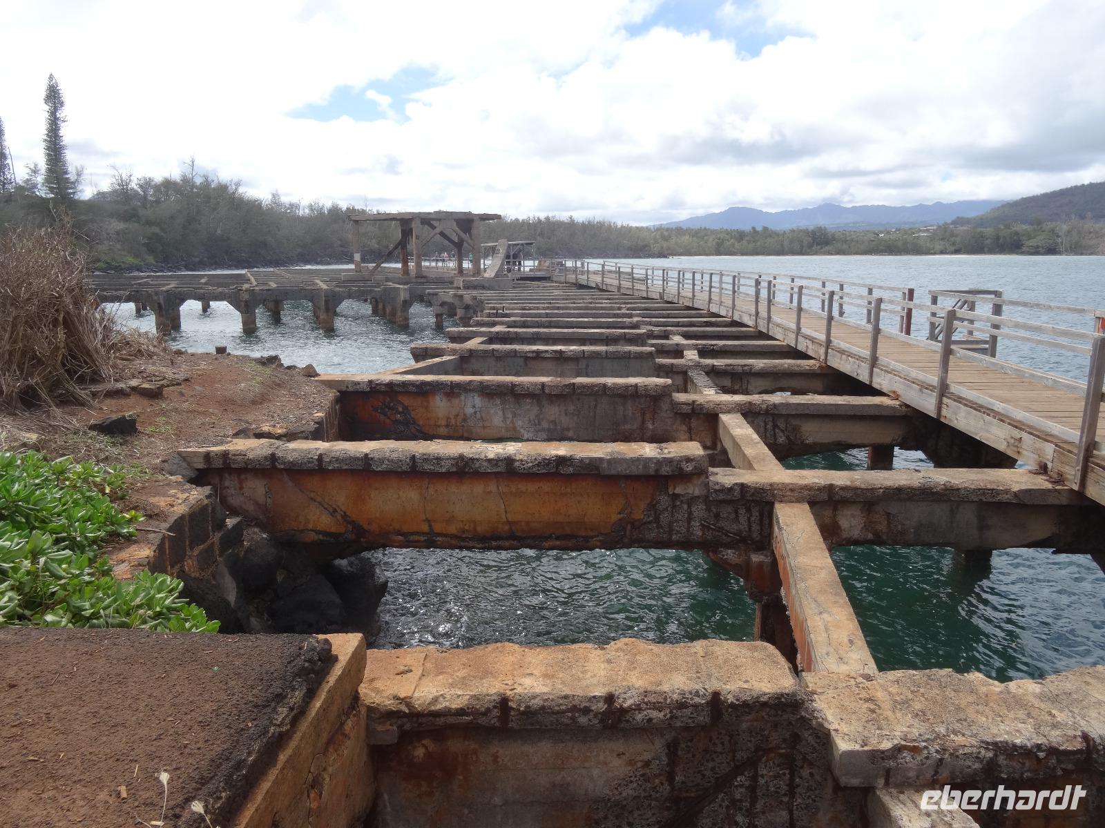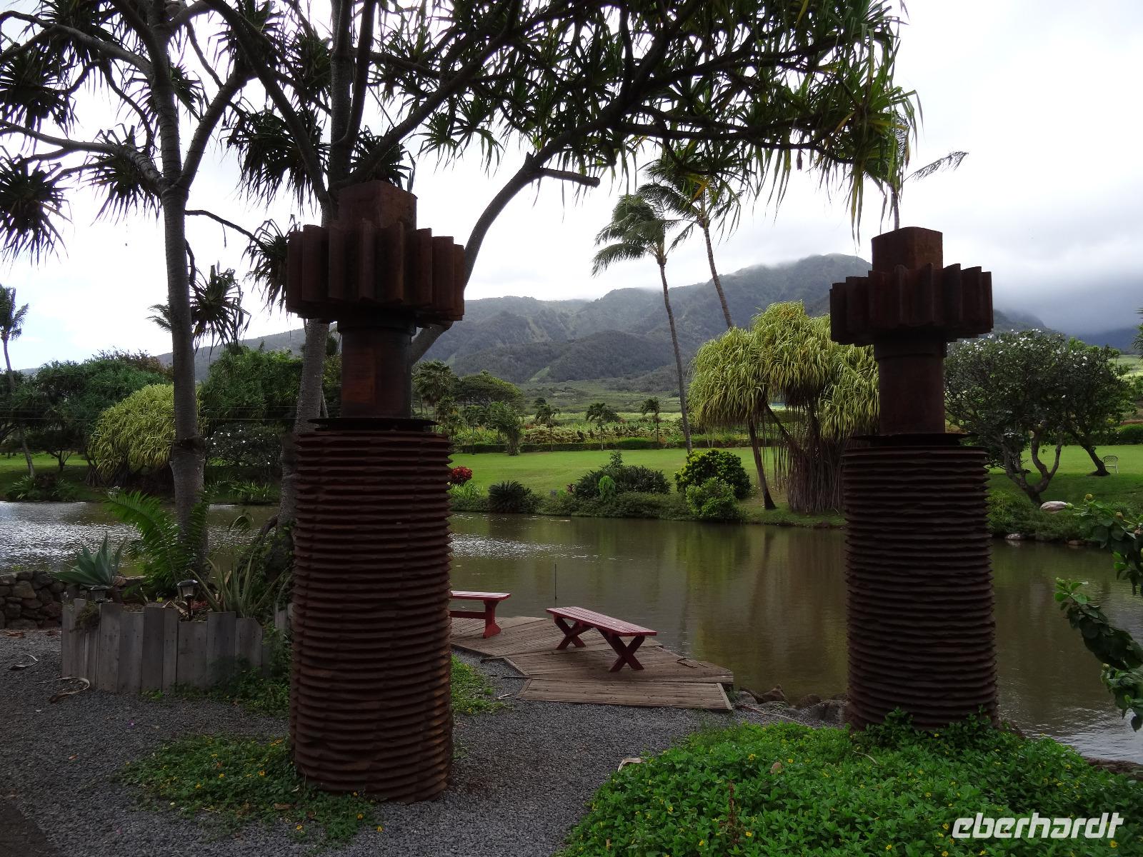 Das Aufstehen fiel uns heute überhaupt nicht schwer, stand doch ein absolutes Highlight und der beste Grund, Kauai zu besuchen, auf dem Programm. Es ging mit dem Helikopter über die Insel und das Wetter versprach seinen Teil zum Gelingen beitragen zu wollen. Nach einem stärkenden Frühstück wurden wir mit einem Transfer zur Heli-Base nach Lihue gebracht. Nach dem obligatorischen Wiegen (die Ergebnisse waren glücklicherweise nicht für jedermann einsehbar, puuh...) wurden wir vom Team der Blue Hawaiian Helicopters in den Ablauf und die Sicherheitsbestimmungen eingewiesen. Nach der gewichtsbestimmenden Gruppenbildung bestiegen wir nacheinander die bereitstehenden American Europter ECO Star Helicopter und erhoben uns in die Lüfte. Ein Flugteam bestand jeweils aus einem Piloten und sechs Passagieren. Es war im wahrsten Sinne des Wortes ein erhebendes Gefühl, den Flugplatz unter sich immer kleiner werden zu sehen und in die grüne Wildnis Kauai's hinauszufliegen. Unter uns sahen wir das beeindruckende Hanapepe Valley, bevor wir die Mana Waiapuna, besser bekannt als die "Jurassic Park Falls" auftauchen sahen. Unser Pilot gab dazu immer die entsprechenden Erklärungen und nicht selten wurde das Ganze auch durch die passende Filmmusik untermalt, da in dieser üppig grünen Dschungellandschaft schon viele Hollywood-Blockbuster gedreht wurden. Avatar, Pirates of the Caribian oder Jurassic Park waren nur einige davon. Über den Olokele Canyon hinaus erreichten wir den spektakulären Waimea Canyon, den man Aufgrund seiner Ähnlichkeit mit seinem großen Bruder auch den "Grand Canyon of the Pacific" nennt. Wir genossen das Farbenspiel der Felsformationen, welche sich bizarr in die Tiefe ausbreiteten, bevor wir die fantastische Na Pali Coast erreichten und auf einen Parallelkurs einschwenkten. Uns bot sich von hoch oben ein traumhafter, unvergesslicher Anblick. Dann drehten wir zur Hanalei Bay und dem Princeville Resort ab, paradiesische Kleinode inmitten der schroffen Küstenlinie, bevor wir die Wailua Falls überflogen. Da das Wetter an diesem Tag sehr gut war, konnten wir auch zum Mt. Waialeale, ins Herz des ehemaligen Vulkans, quasi der Geburtsstätte der Insel, fliegen. Hier befindet man sich am nassesten Ort auf Erden, wo durchschnittlich 12000 mm Regen pro Jahr gemessen werden. Damit konkurriert man zwar mit zwei Orten in Indien und Kolumbien um den Titel, aber Rekorde sind ja manchmal auch subjektiv in der Messung und Bewertung. Nach diesem unglaublichen Flug über die älteste Insel des Archipels landeten wir wohlbehalten wieder in Lihue. Nach kurzer Fahrt zum Hotel waren etwas Entspannung und eine kleine Mittagspause angesagt. Am frühen Nachmittag setzten wir dann die Erkundung von Kauai fort, dieses Mal nicht mit dem Hubschrauber, sondern mit dem Bus. "Tante Berni", unsere Busfahrerin, nach eigener Aussage eine Mischung aus englischen (Vater)Genen und Vielvölkergenen mütterlicherseits, brachte uns zuerst zu den Opaekaa Falls und zum Wailua River, wo wir einen kurzen Fotostopp einlegten. Anschließend ging es direkt an die Küste, zum einstmals wichtigen, heute längst den Elementen überlassenen Warenumschlagplatz Ahukini Pier & Landing. Nur noch Zementgerippe zeugten von dem einstigen Sinn der Anlage. Danach fuhren wir weiter nach Lihue, wo wir etwas Freizeit zum Baden, Bummeln oder Shoppen hatten. Auf dem Rückweg zu unserem Hotel machten wir einen Abstecher zum Wailua River, ganz in der Nähe von Smith's tropischen Garten, von wo aus man einen schönen Blick auf eine Felsformation hat, die man "Schlafender Titan" nennt. Dessen nicht genug, gönnten wir uns noch eine Durchfahrt durch den Lydgate Park, wo viele Familien mit Freunden und Angehörigen ihren Tag bei Barbecue, Spiel und Spaß verbrachten. Rechtzeitig zum Abendessen waren wir wieder in unserem Hotel, wo wir uns ein Schweinekotelett mit Reis und Gemüse sowie eine leckere Papaya-Creme-Brulee schmecken ließen. Ein Tag voller wunderbarer Eindrücke ging damit zu Ende.