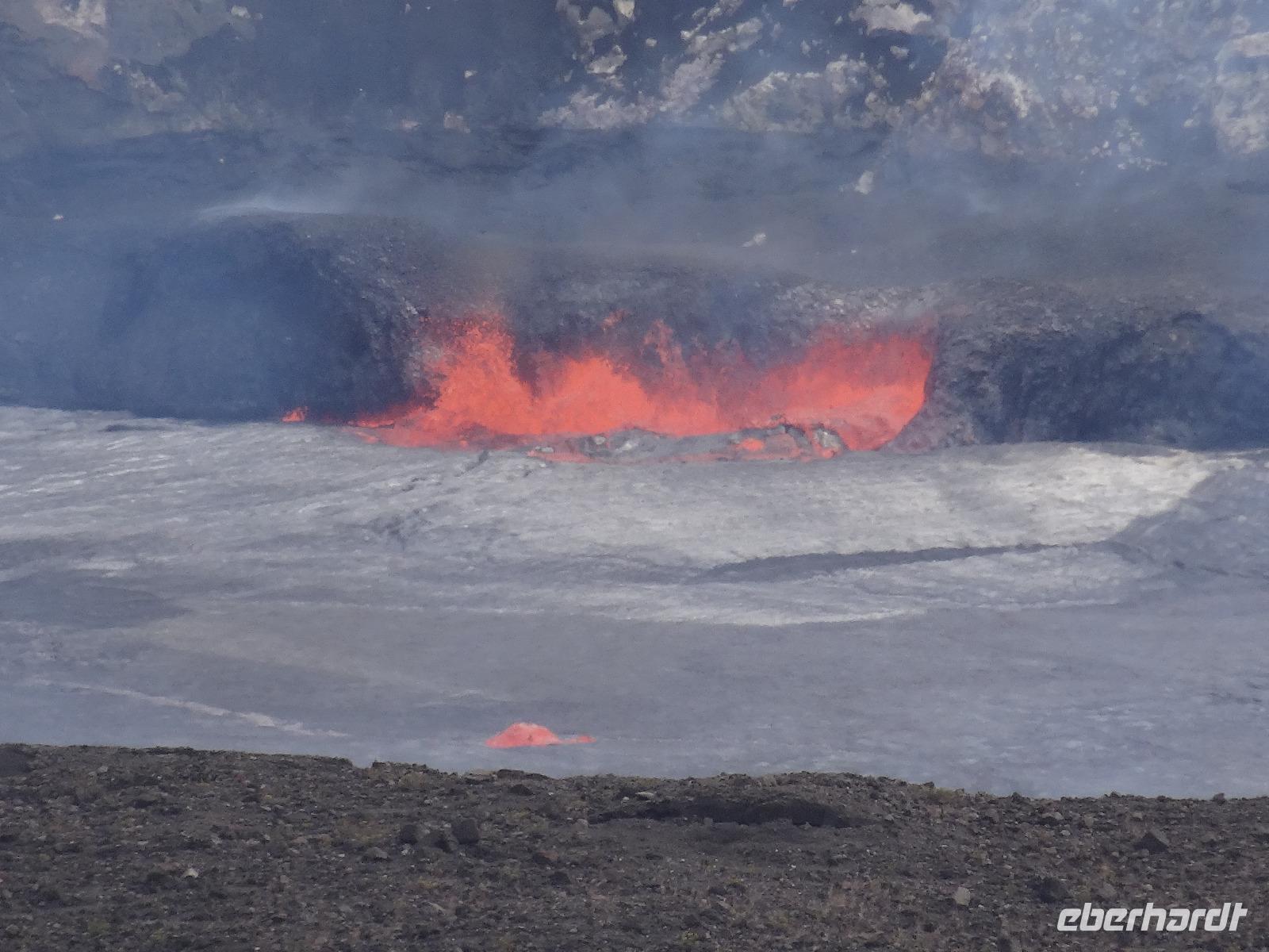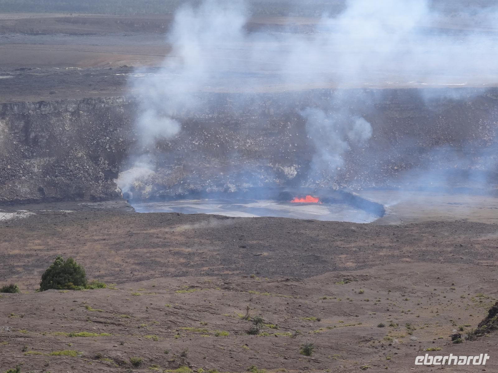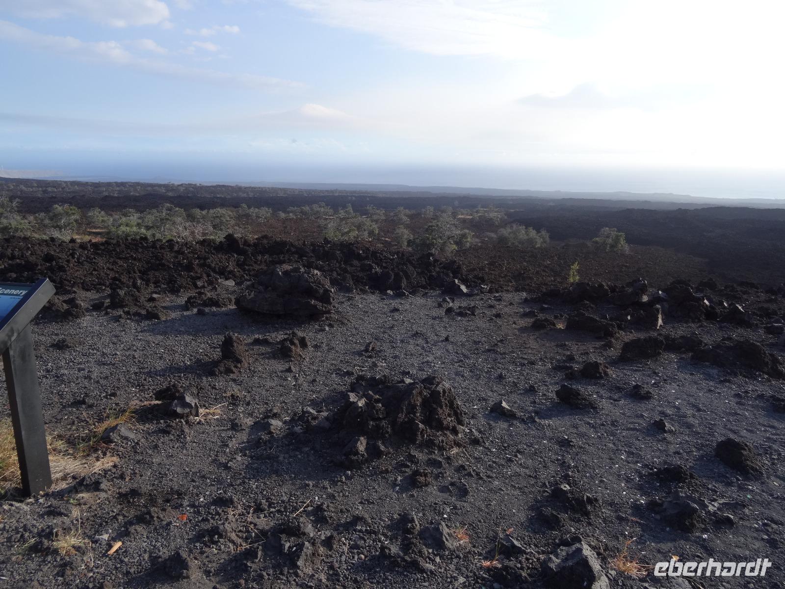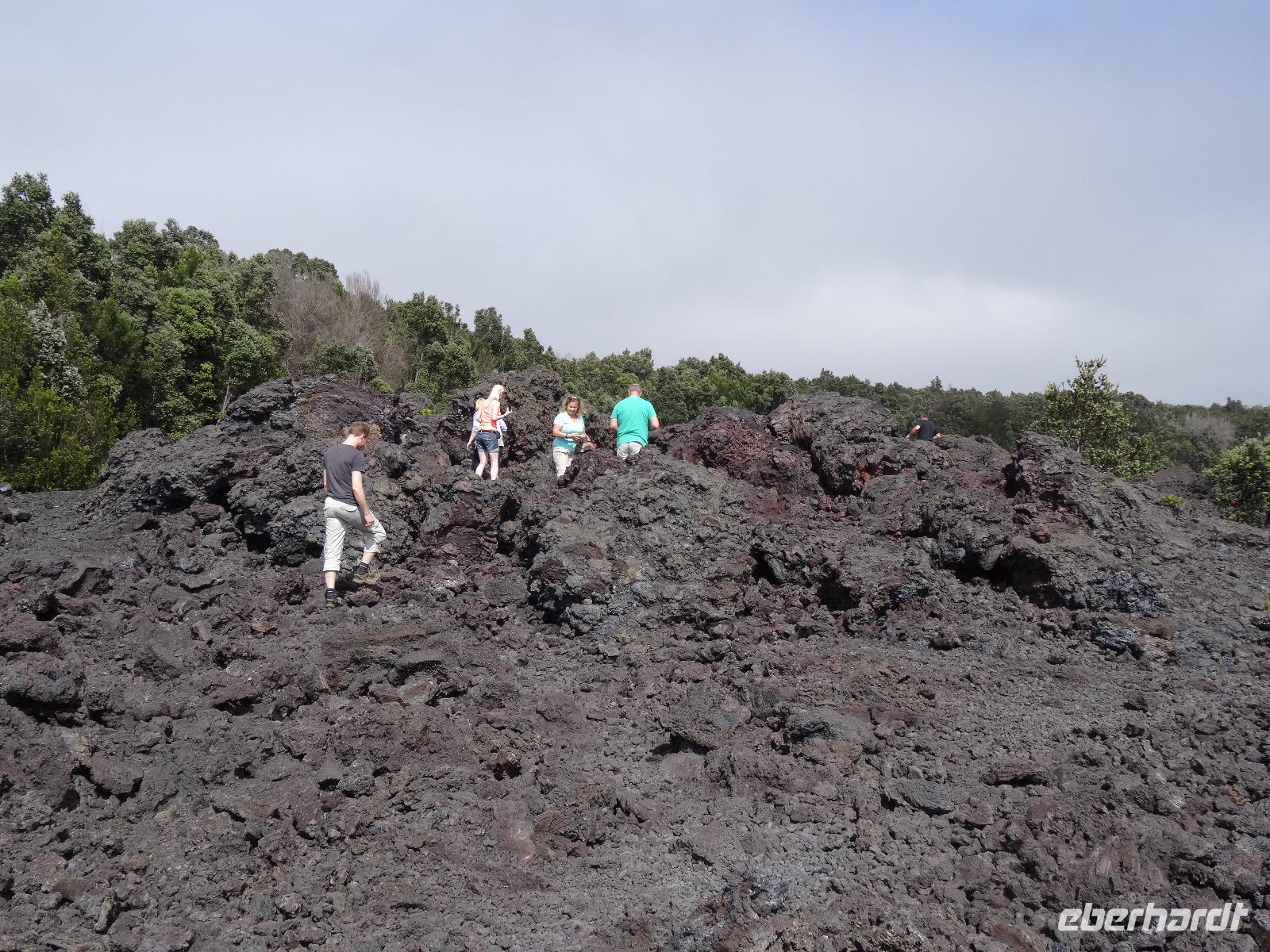 Nach einem sehr reichhaltigen Frühstück mit tollem Blick auf das azurblaue Wasser ging es heute auf Big-Island-Erkundungstour. Wir verließen Kona in nordwestlicher Richtung und fuhren an kleinen Lavafeldern vorbei, die meist gefährlich nahe an den wenigen Siedlungen gelegen waren. Obwohl wir uns auf der Insel mit den aktivsten Vulkanen der Welt befanden, schien das den hier lebenden knapp 180.000 Einwohnern keine Angst zu machen; im Gegenteil, Bewohner solcherart gefährlicher Hotspots haben ein jahrhundertealtes Urvertrauen in die natürliche "Rechtschaffenheit der Elemente". Leider hatte das Element Wasser am heutigen Morgen die Oberhand, so dass wir uns auf unserer Fahrt von tiefen Wolken, Nebel und leichtem Sprühregen begleitet sahen. Das sollte sich zwar im Laufe des Tages immer mal wieder ändern, verwehrte uns aber größtenteils die Blicke auf die beiden beherrschenden Vulkane Mauna Loa und Mauna Kea. Während wir ersteren während unserer gesamten Inselumkreisung nie richtig zu Gesicht bekamen, konnten wir doch wenigstens den Mauna Kea, den 4241 Meter hohen erloschenen Vulkan, von der einen oder anderen Stelle aus aufs Foto bannen. Je nördlicher wie kamen, desto spärlicher wurden die Lavazungen, dafür nahm das nutzbare Ranchland zu. Auf unserem Weg nach Waimea durchquerten wir die riesige Parker Ranch, eine der größten Viehzuchtbetriebe in den USA und seit 1847 Heimat der Paniolos, der hawaiianischen Cowboys. Zwischendurch machten wir eine kleine Pause im Parker-Ranch-Center, wo es neben diversen Restaurationen vor allem Cowboy-Utensilien und Merchandising-Artikel zu kaufen gab. Der Highway 19 führte uns dann weiter über Honoka'a die Hamakua Küste entlang. Obwohl sich jetzt auch ab und an die Sonne zeigte, lag der Mauna Kea von Nordosten betrachtet größtenteils im Nebel oder war durch tiefhängende Wolken nicht zu sehen. Ungeachtet dessen durchfuhren wir am späten Vormittag die nach Inselmaßstäben größere Stadt Hilo, bevor wir um die Mittagszeit in der Nähe des Volcanoes National Park im Lava Rock Café unsere Lunchpause bei typisch amerikanischem, aber durchaus schmackhaften Essen einlegten. Solcherart gestärkt konnten wir uns nun auf die nachfolgenden Besichtigungen im Nationalpark freuen. Zuvor hielten wir aber noch kurz an der Akatsuka Orchideen Farm, wo eine Vielzahl wunderbarer Orchideen im sogenannten Orchid Maze ausstellt wurden, der gegen ein kleines Entgelt betreten werden konnte und dem interessierten Besucher eine große Artenvielfalt offerierte. Nach der Einfahrt in den Vulcanoes National Park passierten wir die Steam Vents, wo heißer Dampf aus Löchern im Boden emporsteigt und hielten anschließend am Observatorium und Jagger Museum, von wo aus man einen fantastischen Blick auf den Kilauea Krater hatte, dem derzeit aktivsten Vulkan der Welt. Dampfschwaden stiegen aus dem flachen Krater empor und mit bloßem Auge war die brodelnde Lava zu erkennen, so dass allenthalben die Hobbyfotografen ihrem Handwerk nachgingen. Auch wenn es sich nur um kleine, nicht sehr hohe Eruptionen handelte, war es doch ein unvergessliches Schauspiel, was sich unseren Augen bot. Zumal diese "Eruptiönchens" am Kilauea bereits seit 1983 andauerten. Die nächsten Stopps am erkalteten Lavasee und an einem Lavafeld aus den neunzehnhundertsiebziger Jahren führten uns den Nachlass der alles verschlingenden Gewalt von fließender Lava eindrucksvoll vor Augen. Zurück im Bus, erreichten wir ein paar Meilen weiter die Lava Thurston Tube, einen etwa dreihundert Meter langen Lavatunnel. Um zum Tunnel zu gelangen, muss man durch einen dichten, urzeitlichen Farnwald spazieren, der an einigen Stellen von Feuchtigkeit und diffusem Zwielicht geprägt ist. Ein bisschen wie Jurassic Park, nur ohne Raptoren. Hofften wir zumindest... Lavatunnel entstehen durch das erkalten der äußeren Lavaschicht, während sich die darunter liegende Lava weiterbewegt. Die äußere, bereits verfestigte Lavaschicht kann dabei große Flächen bedecken und durch das Ausbleiben von neuem, fließendem Lavamaterial zur Bildung von solchen Hohlräumen beitragen. Beim Durchschreiten des Lavatunnels musste man trotzdem unwillkürlich an menschliche Einflussnahme denken, denn die Röhre sah ziemlich "geformt" aus, so wie man das auch aus Bergwerksschächten kennt. Aber wir wollen Mutter Natur in diesem Fall keine menschliche Hilfe unterstellen, sondern glaubten an die natürliche Genesis. Anschließend verließen wir den Nationalpark wieder und begaben uns zum Punalu'u Black Sand Beach, einem, wie der Name schon sagt, schwarzsandigen Strandabschnitt im Süden der Insel. Hier befand sich auch ein Refugium der hawaiianischen grünen Seeschildkröte, von welchen wir zwei stattliche Exemplare am Strand in der Sonne liegend sahen. Auf unserem nachfolgenden Heimweg entlang der Südküste hielten wir noch in dem kleinen Örtchen Na'alehu, um im Punalu'u Bake Shop, der südlichsten Bäckerei der USA, Sweetbread, die Spezialität des Hauses zu kosten. Sweetbread, unserem Milchbrötchen ähnlich, gab es in verschiedenen Geschmacksrichtungen. Ich kaufte zwei Brote und wir kosteten uns durch die Geschmacksrichtungen Apfel-Zimt (gefüllt) und Mango-Taro-Guave (farbenfroh). Lecker und Kalorienreich. Auf unserer Rückfahrt nach Kona hielten wir noch an einem alten Lavafeld von 1907 und Brigitte erklärte uns die Unterschiede zwischen Aa-Lava, welche spitz und scharfkantig ist und Pahoehoe-Lava, die glasige Oberflächen ausbildet. Mit viel neuem Wissen und tollen Bildern im Kopf erreichten wir am Abend unser Hotel und ließen den Tag bei einem Mai Tai, einer Pina Colada oder einfach einem kalten Bier zufrieden ausklingen.