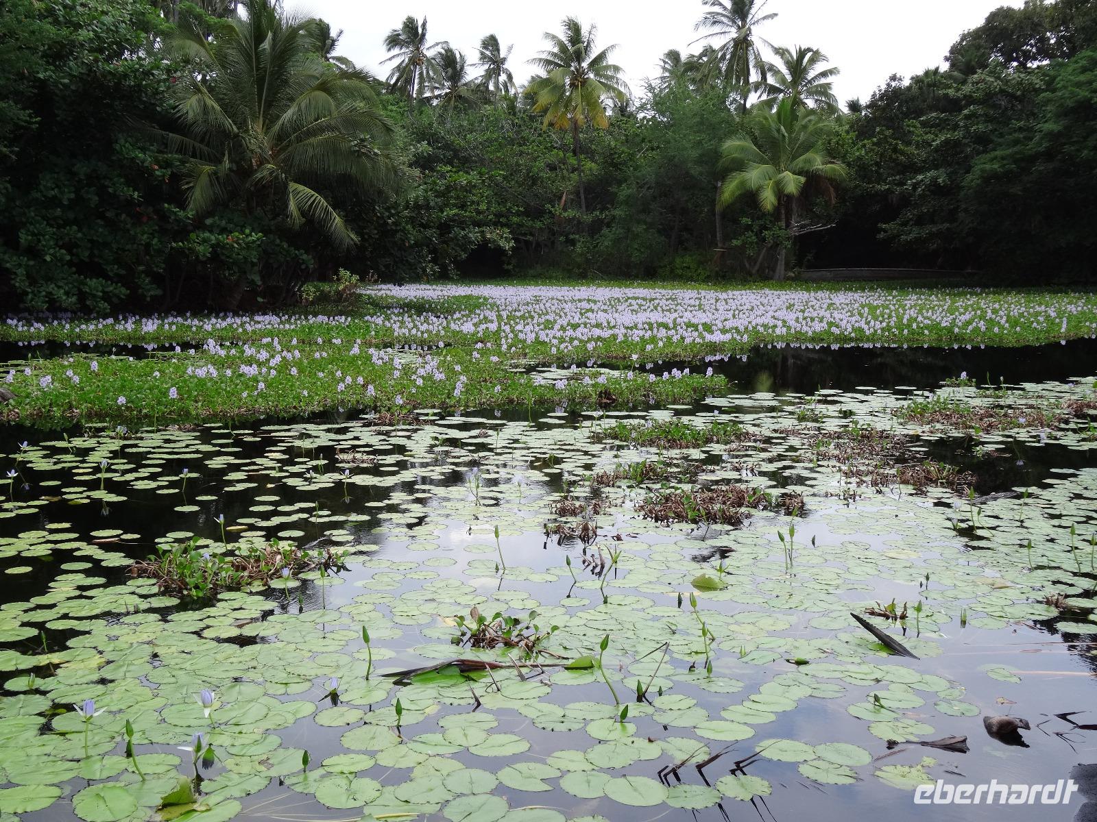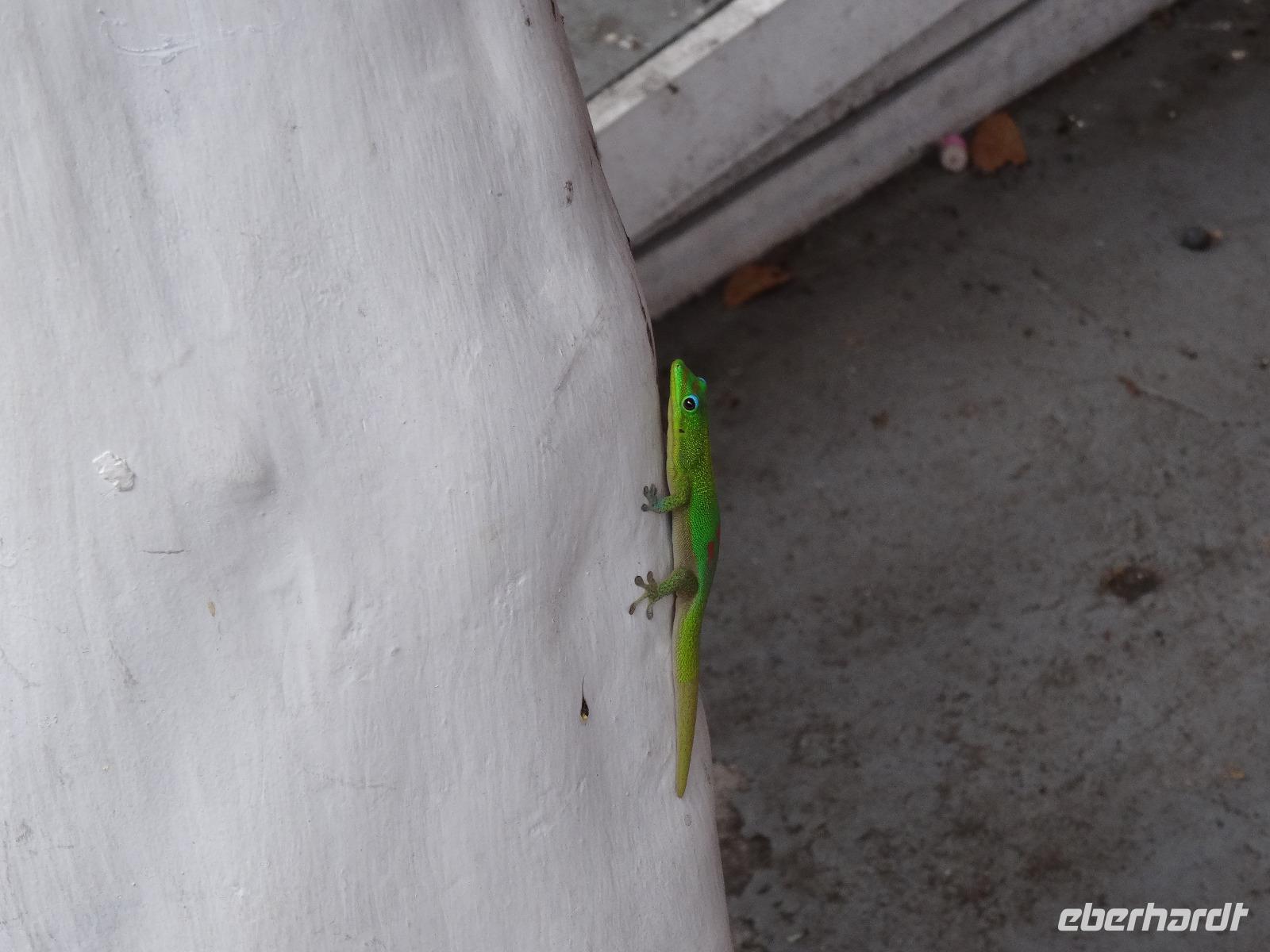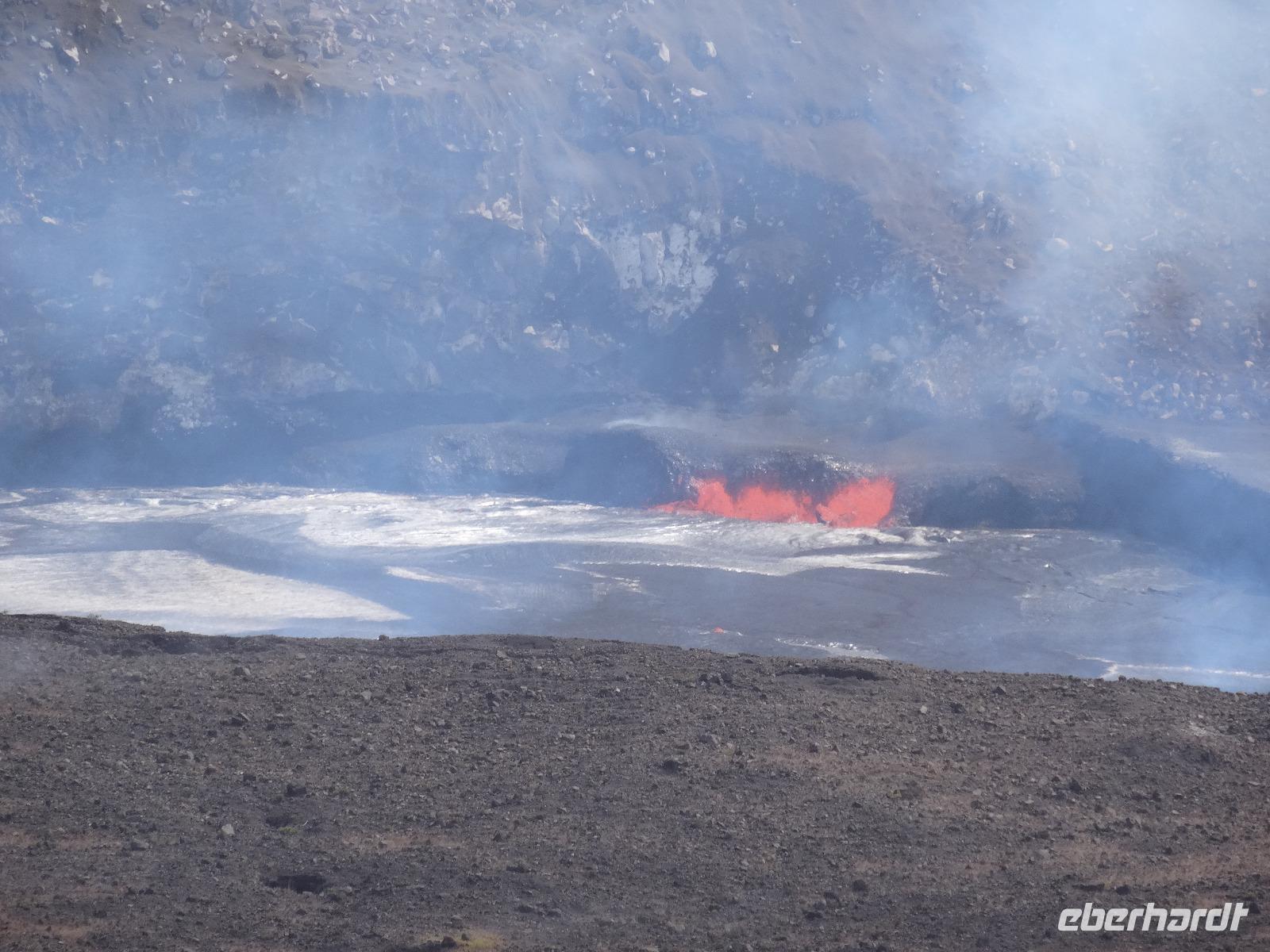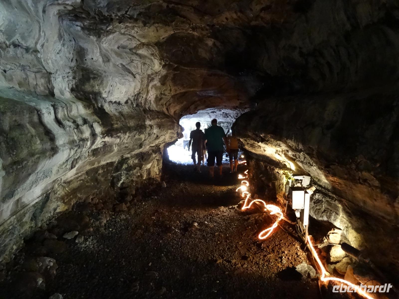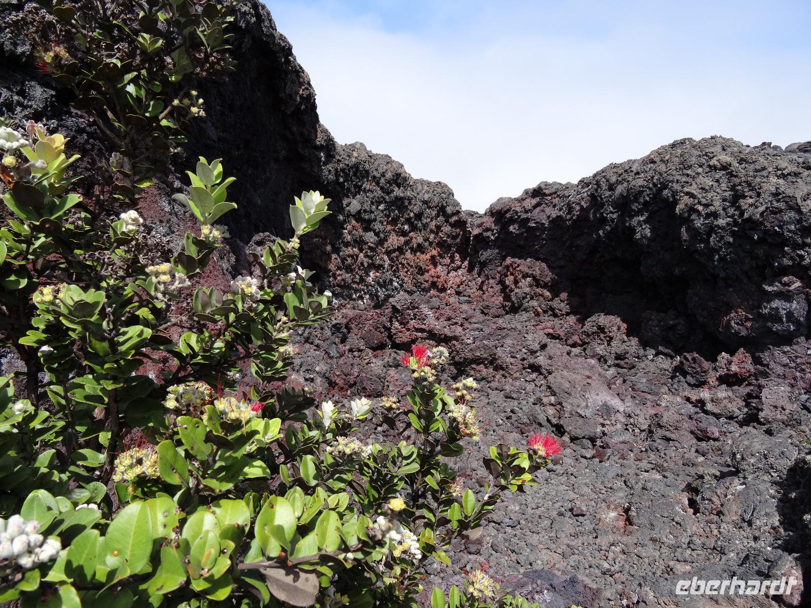 Nach einem sehr reichhaltigen Frühstück mit tollem Blick auf das azurblaue Wasser ging es heute auf Big-Island-Erkundungstour. Wir verließen Kona in nordwestlicher Richtung und fuhren an kleinen Lavafeldern vorbei, die meist gefährlich nahe an den wenigen Siedlungen gelegen waren. Obwohl wir uns auf der Insel mit den aktivsten Vulkanen der Welt befanden, schien das den hier lebenden knapp 180.000 Einwohnern keine Angst zu machen; im Gegenteil, Bewohner solcherart gefährlicher Hotspots haben ein jahrhundertealtes Urvertrauen in die natürliche "Rechtschaffenheit der Elemente". Leider hatte das Element Wasser am heutigen Morgen die Oberhand, so dass wir uns auf unserer Fahrt von tiefen Wolken, Nebel und leichtem Sprühregen begleitet sahen. Das sollte sich zwar im Laufe des Tages immer mal wieder ändern, verwehrte uns aber größtenteils die Blicke auf die beiden beherrschenden Vulkane Mauna Loa und Mauna Kea. Während wir ersteren während unserer gesamten Inselumkreisung nie richtig zu Gesicht bekamen, konnten wir doch wenigstens den Mauna Kea, den 4241 Meter hohen erloschenen Vulkan, von der einen oder anderen Stelle aus aufs Foto bannen. Je nördlicher wie kamen, desto spärlicher wurden die Lavazungen, dafür nahm das nutzbare Ranchland zu. Auf unserem Weg nach Waimea durchquerten wir die riesige Parker Ranch, eine der größten Viehzuchtbetriebe in den USA und seit 1847 Heimat der Paniolos, der hawaiianischen Cowboys. Zwischendurch machten wir eine kleine Pause im Parker-Ranch-Center, wo es neben diversen Restaurationen vor allem Cowboy-Utensilien und Merchandising-Artikel zu kaufen gab. Der Highway 19 führte uns dann weiter über Honoka'a die Hamakua Küste entlang. Obwohl sich jetzt auch ab und an die Sonne zeigte, lag der Mauna Kea von Nordosten betrachtet größtenteils im Nebel oder war durch tiefhängende Wolken nicht zu sehen. Ungeachtet dessen durchfuhren wir am späten Vormittag die nach Inselmaßstäben größere Stadt Hilo, bevor wir um die Mittagszeit in der Nähe des Volcanoes National Park im Lava Rock Café unsere Lunchpause bei typisch amerikanischem, aber durchaus schmackhaften Essen einlegten. Solcherart gestärkt konnten wir uns nun auf die nachfolgenden Besichtigungen im Nationalpark freuen. Zuvor hielten wir aber noch kurz an der Akatsuka Orchideen Farm, wo eine Vielzahl wunderbarer Orchideen im sogenannten Orchid Maze ausstellt wurden, der gegen ein kleines Entgelt betreten werden konnte und dem interessierten Besucher eine große Artenvielfalt offerierte. Nach der Einfahrt in den Vulcanoes National Park passierten wir die Steam Vents, wo heißer Dampf aus Löchern im Boden emporsteigt und hielten anschließend am Observatorium und Jagger Museum, von wo aus man einen fantastischen Blick auf den Kilauea Krater hatte, dem derzeit aktivsten Vulkan der Welt. Dampfschwaden stiegen aus dem flachen Krater empor und mit bloßem Auge war die brodelnde Lava zu erkennen, so dass allenthalben die Hobbyfotografen ihrem Handwerk nachgingen. Auch wenn es sich nur um kleine, nicht sehr hohe Eruptionen handelte, war es doch ein unvergessliches Schauspiel, was sich unseren Augen bot. Zumal diese "Eruptiönchens" am Kilauea bereits seit 1983 andauerten. Die nächsten Stopps am erkalteten Lavasee und an einem Lavafeld aus den neunzehnhundertsiebziger Jahren führten uns den Nachlass der alles verschlingenden Gewalt von fließender Lava eindrucksvoll vor Augen. Zurück im Bus, erreichten wir ein paar Meilen weiter die Lava Thurston Tube, einen etwa dreihundert Meter langen Lavatunnel. Um zum Tunnel zu gelangen, muss man durch einen dichten, urzeitlichen Farnwald spazieren, der an einigen Stellen von Feuchtigkeit und diffusem Zwielicht geprägt ist. Ein bisschen wie Jurassic Park, nur ohne Raptoren. Hofften wir zumindest... Lavatunnel entstehen durch das erkalten der äußeren Lavaschicht, während sich die darunter liegende Lava weiterbewegt. Die äußere, bereits verfestigte Lavaschicht kann dabei große Flächen bedecken und durch das Ausbleiben von neuem, fließendem Lavamaterial zur Bildung von solchen Hohlräumen beitragen. Beim Durchschreiten des Lavatunnels musste man trotzdem unwillkürlich an menschliche Einflussnahme denken, denn die Röhre sah ziemlich "geformt" aus, so wie man das auch aus Bergwerksschächten kennt. Aber wir wollen Mutter Natur in diesem Fall keine menschliche Hilfe unterstellen, sondern glaubten an die natürliche Genesis. Anschließend verließen wir den Nationalpark wieder und begaben uns zum Punalu'u Black Sand Beach, einem, wie der Name schon sagt, schwarzsandigen Strandabschnitt im Süden der Insel. Hier befand sich auch ein Refugium der hawaiianischen grünen Seeschildkröte, von welchen wir zwei stattliche Exemplare am Strand in der Sonne liegend sahen. Auf unserem nachfolgenden Heimweg entlang der Südküste hielten wir noch in dem kleinen Örtchen Na'alehu, um im Punalu'u Bake Shop, der südlichsten Bäckerei der USA, Sweetbread, die Spezialität des Hauses zu kosten. Sweetbread, unserem Milchbrötchen ähnlich, gab es in verschiedenen Geschmacksrichtungen. Ich kaufte zwei Brote und wir kosteten uns durch die Geschmacksrichtungen Apfel-Zimt (gefüllt) und Mango-Taro-Guave (farbenfroh). Lecker und Kalorienreich. Auf unserer Rückfahrt nach Kona hielten wir noch an einem alten Lavafeld von 1907 und Brigitte erklärte uns die Unterschiede zwischen Aa-Lava, welche spitz und scharfkantig ist und Pahoehoe-Lava, die glasige Oberflächen ausbildet. Mit viel neuem Wissen und tollen Bildern im Kopf erreichten wir am Abend unser Hotel und ließen den Tag bei einem Mai Tai, einer Pina Colada oder einfach einem kalten Bier zufrieden ausklingen.
