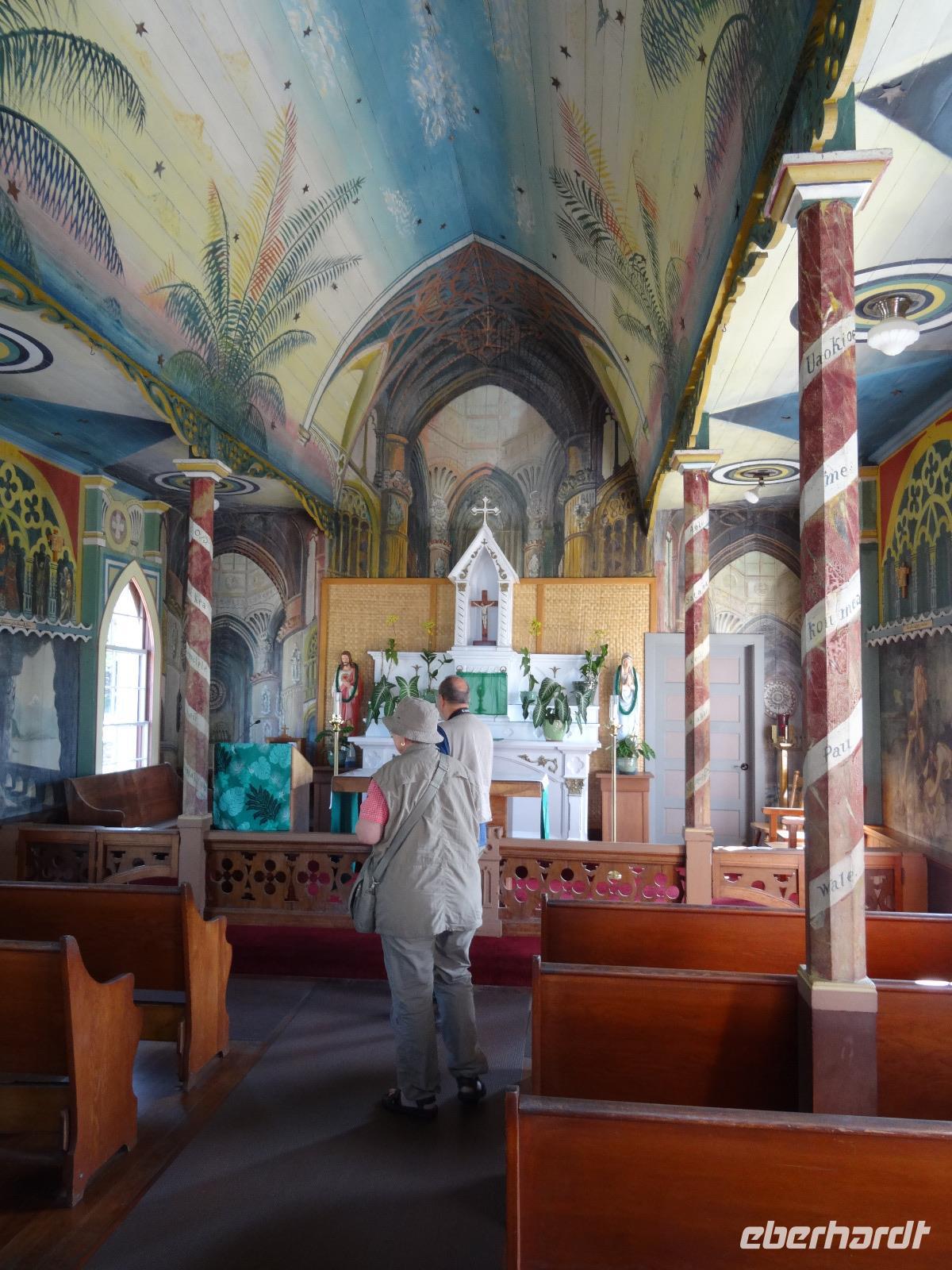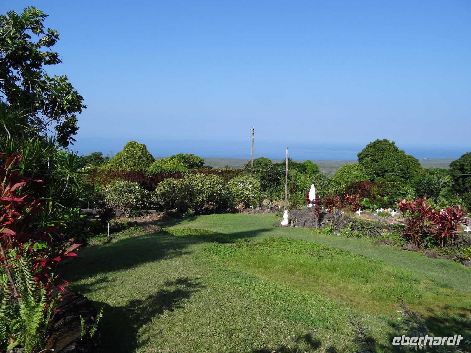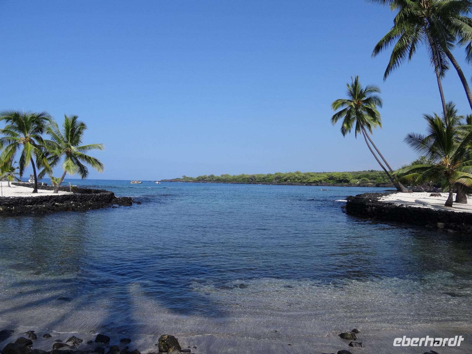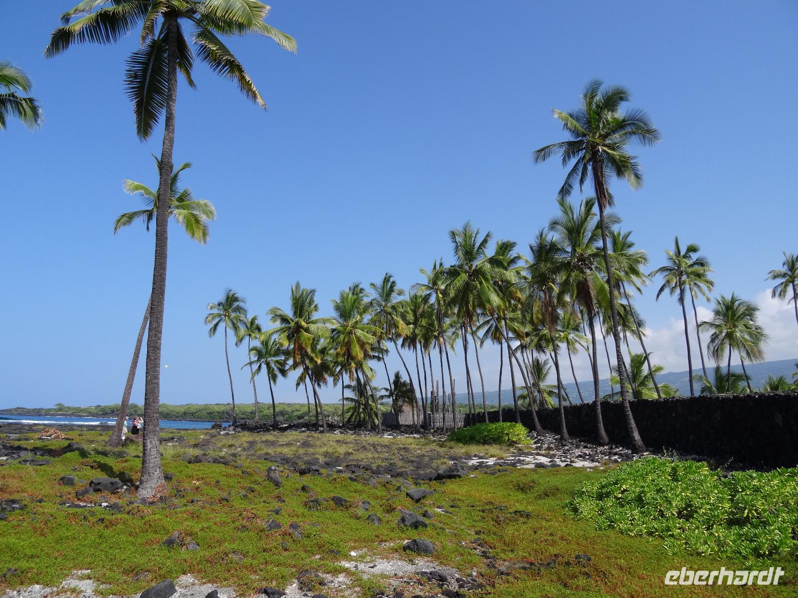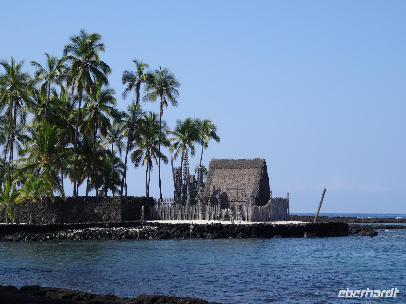 Während wir am gestrigen Tag eher auf vulkanischen Spuren unterwegs waren und die Insel in ihrer Gesamtheit umrundeten, ging es heute "nur" in die Umgebung von Kona, um uns mit dem historischen Teil Hawaiis auseinanderzusetzen. Dazu verließen wir Kona heute in südliche Richtung und genossen unterwegs eine tolle Aussicht auf die Kealakekua-Bucht, wo Captain James Cook am 14. Februar 1779 bei Auseinandersetzungen mit den Einheimischen seinen Tod fand. Weiter ging die Fahrt bis zur pittoresken St. Benedict's Painted Church, welche durch ihre hawaiianischen Malereien im Inneren weithin bekannt ist. Die kleine katholische Kirche wurde im Jahre 1899 durch John Velghe errichtet und steht oberhalb der Kealakekua-Bucht. Nächster Programmpunkt war das Freilichtmuseum Pu´uhonua ´o Honaunau, welche in früheren Zeiten die königlichen Hofanlagen beherbergte und gleichzeitig traditioneller Zufluchtsort hawaiianischer Gesetzesbrecher war. Bei einem Rundgang durch die gepflegte Anlage lernten wir die Lebensweise und die Lebensbedingungen der hawaiianischen Ureinwohner am Hofe des Königs kennen. Wir erfuhren, warum sich Gesetzesbrecher wieder "freiflüchten" konnten und welche Regularien dabei beachtet werden mussten. Eine spannende, kurzweilige Tour de Historic bei wunderschönem Wetter und interessanten Erläuterungen. Nach einer reichlichen Stunde nahmen wir wieder Fahrt auf und gelangten zu einer Kaffee-Rösterei, wo wir uns etwas mit der Produktion der kleinen, aber sehr wichtigen Bohnen beschäftigen wollten. Weltweit ein Genussmittel, gehören die Bohnen des Kona-Kaffees zu den edleren Sorten im Kaffee-Universum. Nach einer kleinen Verkostung verschiedener geschmacklicher Stile begaben wir uns auf einen kurzen Rundgang über das Produktionsgelände. Dabei durchquerten wir auch eine kleine Lava Tube, die es aber an Größe und Bedeutung nicht mit der gestern gesehenen aufnehmen konnte. Nach diversen Kaffeekäufen traten wir die Rückfahrt nach Kona an, welches wir um die Mittagszeit erreichten. Im Kamehameha Hotel, in unmittelbarer Nachbarschaft des Kreuzfahrtpiers, besichtigten wir eine Ausstellung zur namensgebenden Königsdynastie, bevor sich alle am Nachmittag den "gewöhnlichen" Urlaubsvergnügungen (Baden, Schnorcheln, lesen, relaxen uvm.) hingaben. Den Abend beschlossen wir bei einem Essen in einem der vielen kleinen Restaurants von Kona und einem Schlummertrunk an der Hotelbar.