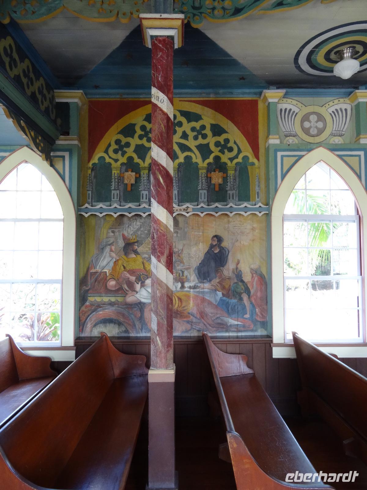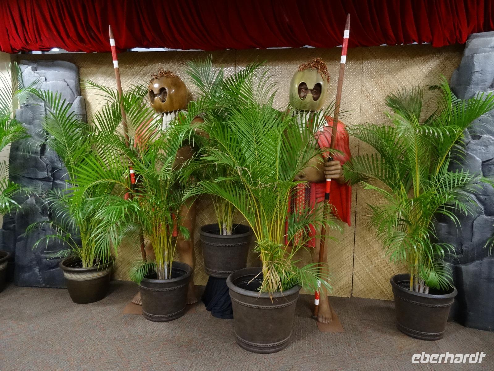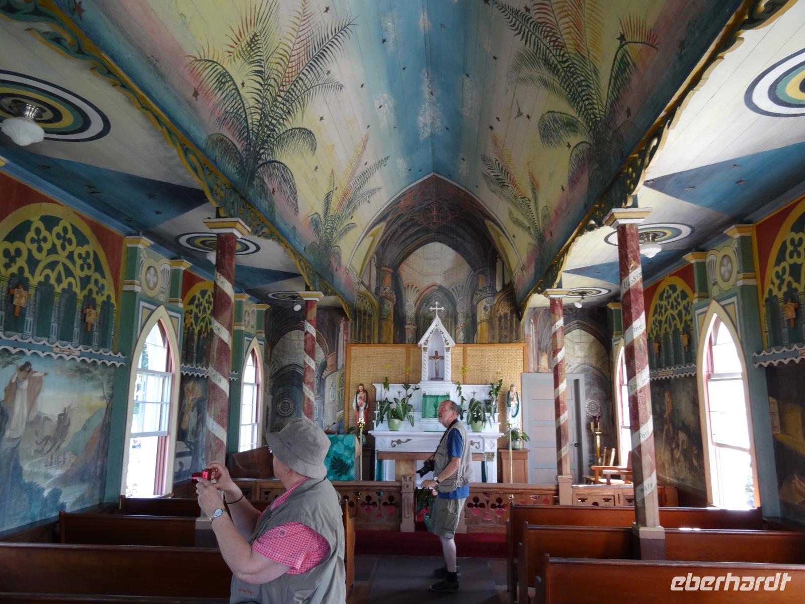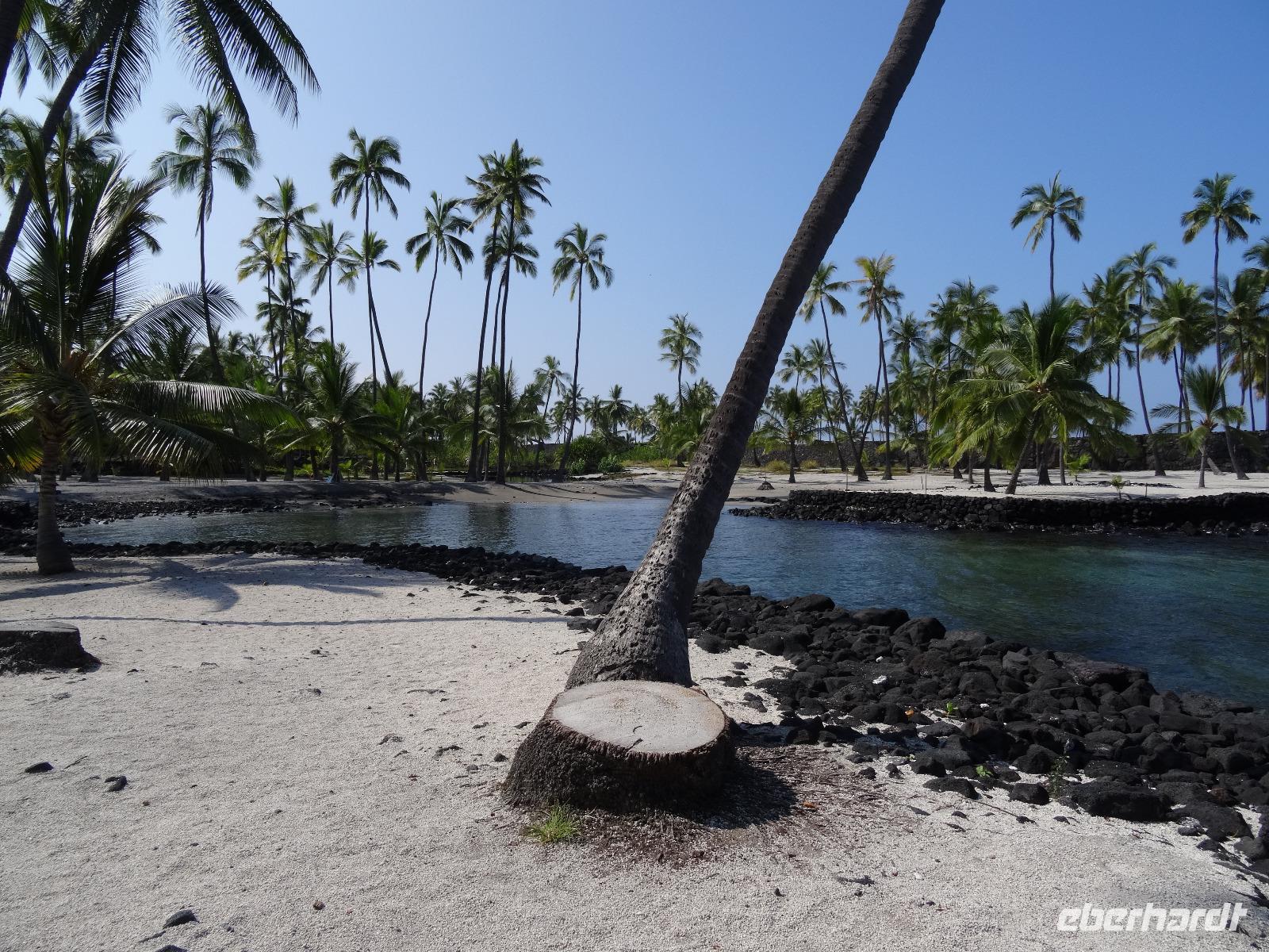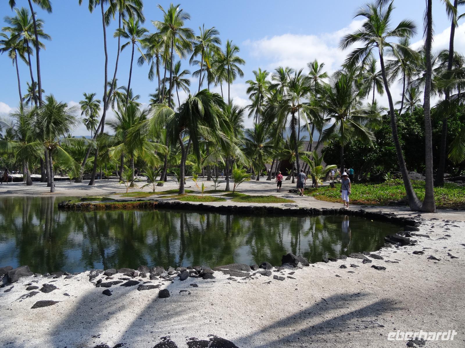 Während wir am gestrigen Tag eher auf vulkanischen Spuren unterwegs waren und die Insel in ihrer Gesamtheit umrundeten, ging es heute "nur" in die Umgebung von Kona, um uns mit dem historischen Teil Hawaiis auseinanderzusetzen. Dazu verließen wir Kona heute in südliche Richtung und genossen unterwegs eine tolle Aussicht auf die Kealakekua-Bucht, wo Captain James Cook am 14. Februar 1779 bei Auseinandersetzungen mit den Einheimischen seinen Tod fand. Weiter ging die Fahrt bis zur pittoresken St. Benedict's Painted Church, welche durch ihre hawaiianischen Malereien im Inneren weithin bekannt ist. Die kleine katholische Kirche wurde im Jahre 1899 durch John Velghe errichtet und steht oberhalb der Kealakekua-Bucht. Nächster Programmpunkt war das Freilichtmuseum Pu´uhonua ´o Honaunau, welche in früheren Zeiten die königlichen Hofanlagen beherbergte und gleichzeitig traditioneller Zufluchtsort hawaiianischer Gesetzesbrecher war. Bei einem Rundgang durch die gepflegte Anlage lernten wir die Lebensweise und die Lebensbedingungen der hawaiianischen Ureinwohner am Hofe des Königs kennen. Wir erfuhren, warum sich Gesetzesbrecher wieder "freiflüchten" konnten und welche Regularien dabei beachtet werden mussten. Eine spannende, kurzweilige Tour de Historic bei wunderschönem Wetter und interessanten Erläuterungen. Nach einer reichlichen Stunde nahmen wir wieder Fahrt auf und gelangten zu einer Kaffee-Rösterei, wo wir uns etwas mit der Produktion der kleinen, aber sehr wichtigen Bohnen beschäftigen wollten. Weltweit ein Genussmittel, gehören die Bohnen des Kona-Kaffees zu den edleren Sorten im Kaffee-Universum. Nach einer kleinen Verkostung verschiedener geschmacklicher Stile begaben wir uns auf einen kurzen Rundgang über das Produktionsgelände. Dabei durchquerten wir auch eine kleine Lava Tube, die es aber an Größe und Bedeutung nicht mit der gestern gesehenen aufnehmen konnte. Nach diversen Kaffeekäufen traten wir die Rückfahrt nach Kona an, welches wir um die Mittagszeit erreichten. Im Kamehameha Hotel, in unmittelbarer Nachbarschaft des Kreuzfahrtpiers, besichtigten wir eine Ausstellung zur namensgebenden Königsdynastie, bevor sich alle am Nachmittag den "gewöhnlichen" Urlaubsvergnügungen (Baden, Schnorcheln, lesen, relaxen uvm.) hingaben. Den Abend beschlossen wir bei einem Essen in einem der vielen kleinen Restaurants von Kona und einem Schlummertrunk an der Hotelbar.