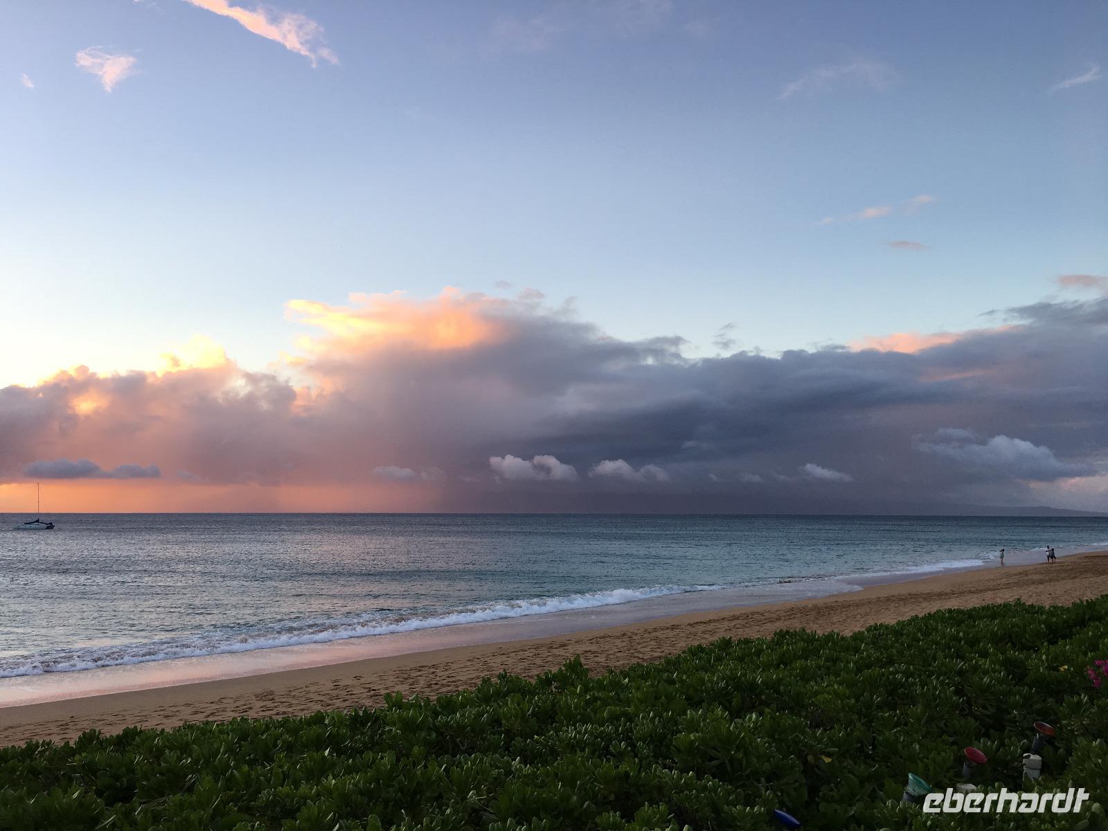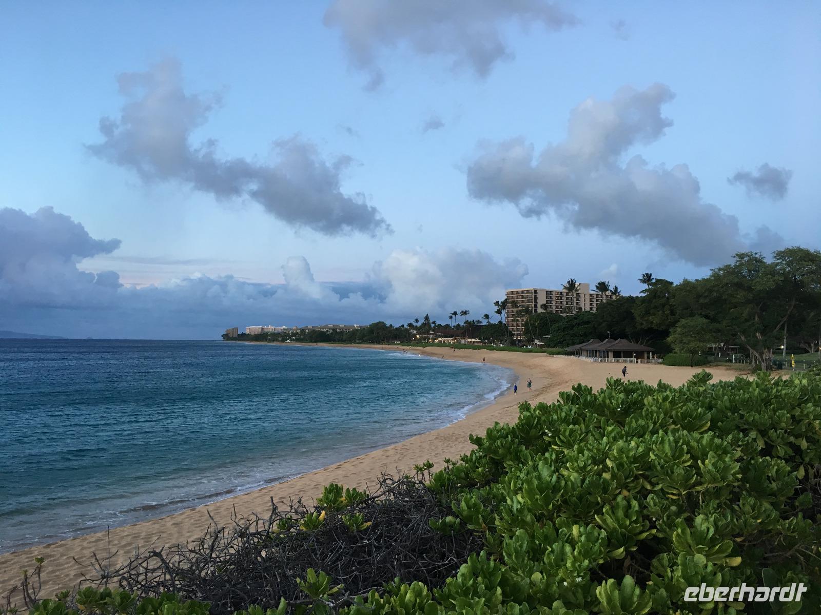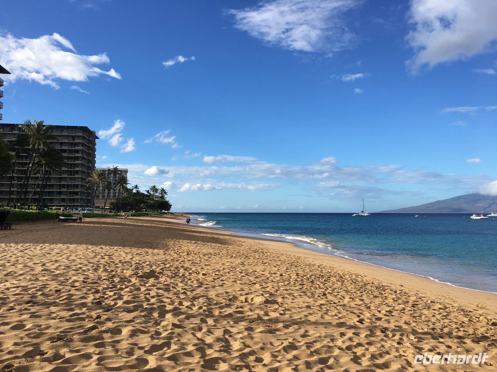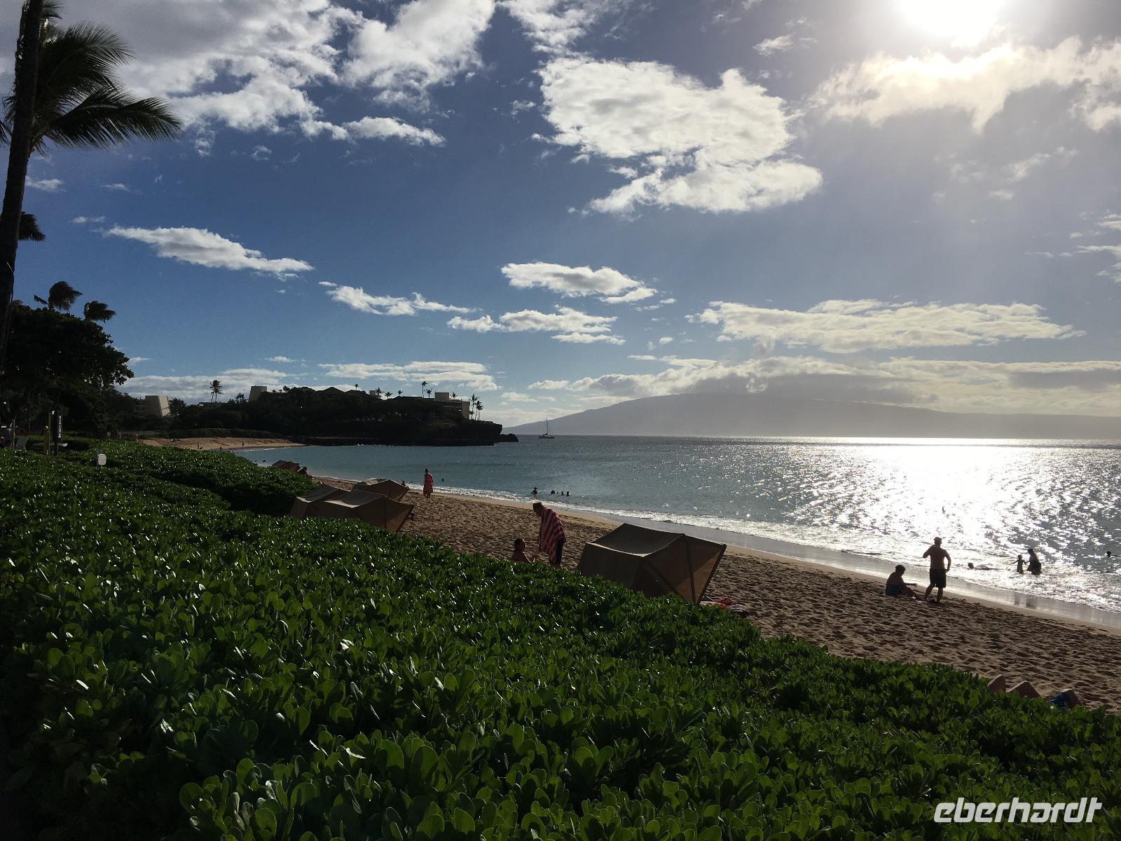 Wieder stand eine "kleine" Ortsveränderung an, wieder flogen wir mit Hawaiian Airlines von Insel zu Insel, wieder freuten wir uns auf neue Ansichten, Einsichten und Erlebnisse. Ziel unseres heutigen "Moves" war die liebliche Insel Maui, seit Jahren eine der besten und immer wieder in Top-Rankings zu findenden Urlaubsinseln weltweit. Die zweitgrößte Insel des Archipels ist zugleich ein Spiegelbild der gesamten Inselgruppe. Was man sonst jeweils als Besonderheit jeder einzelnen Insel ansieht, vereint Maui auf faszinierende Art und Weise. Hier findet man scheinbar unberührte, dschungelartige Landstriche wie auf Kauai, vulkanische Aktivitäten wie auf Big Island und die schönsten Strände, die nicht einmal Oahu toppen kann. Gepaart mit wunderbaren Resorts und schönen Hotelanlagen ergibt sich daraus die ultimative Kombination aus Natur, Entdeckungen und Erholung. Kein Wunder, des Maui für viele zu den Traumzielen auf Erden zählt. Nach unserer Landung auf dem Flughafen von Kahului bestiegen wir den Bus und fuhren südwärts über die Insel, die man auch "die Magische" oder die "Talinsel" nennt, in Richtung Lahaina und weiter zu den traumhaften Sandstränden von Ka'anapali, die mehrfach als die schönsten der USA gekürt wurden. Hier bezogen wir unser Hotel direkt am feinsandigen Strand und stürzten uns im Anschluss ins kristallklare Wasser, bevor wir in den umliegenden Restaurants von Ka'anapali zu Abend aßen. Das Ganze konnte man mit einem schönen Strandspaziergang verbinden oder den Ka'anapali Trolley nehmen, einem kostenfreien Shuttlebus, der etwa halbstündig zwischen den Hotels und Whalers Village pendelte.