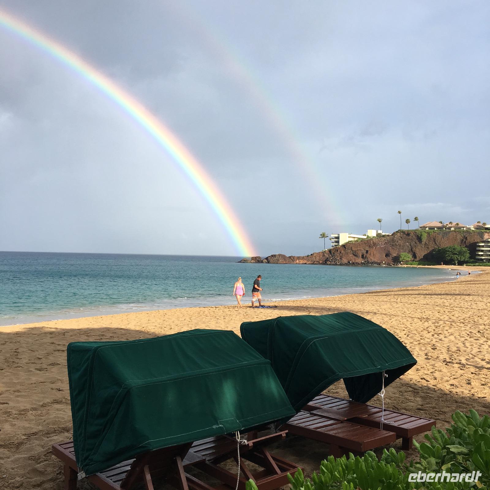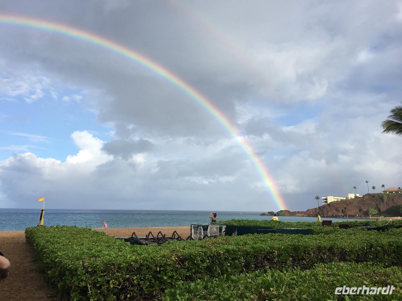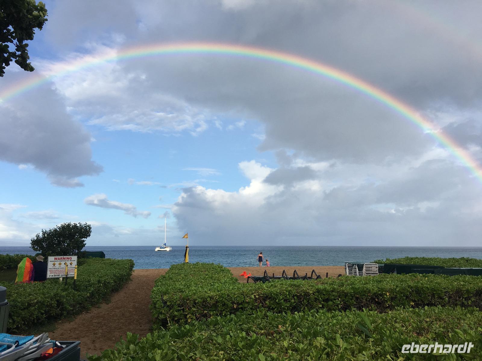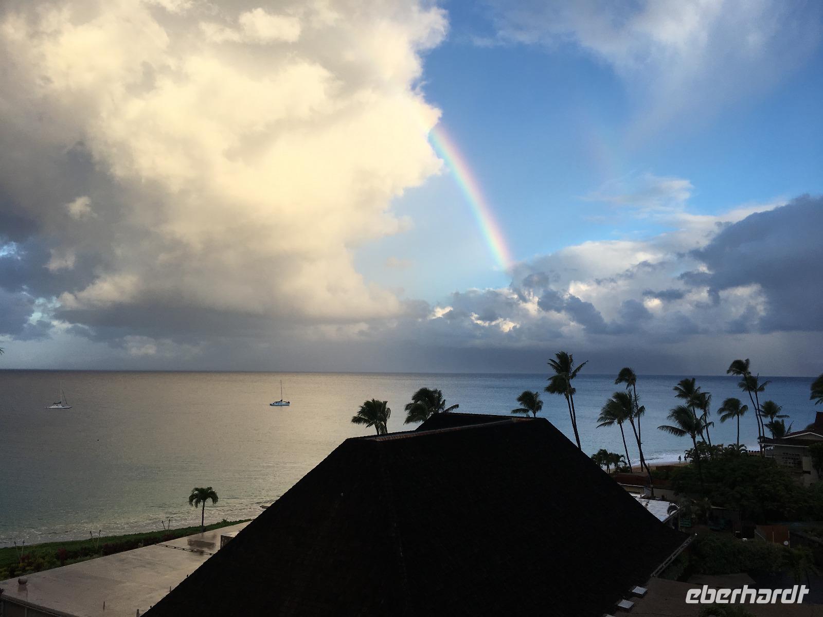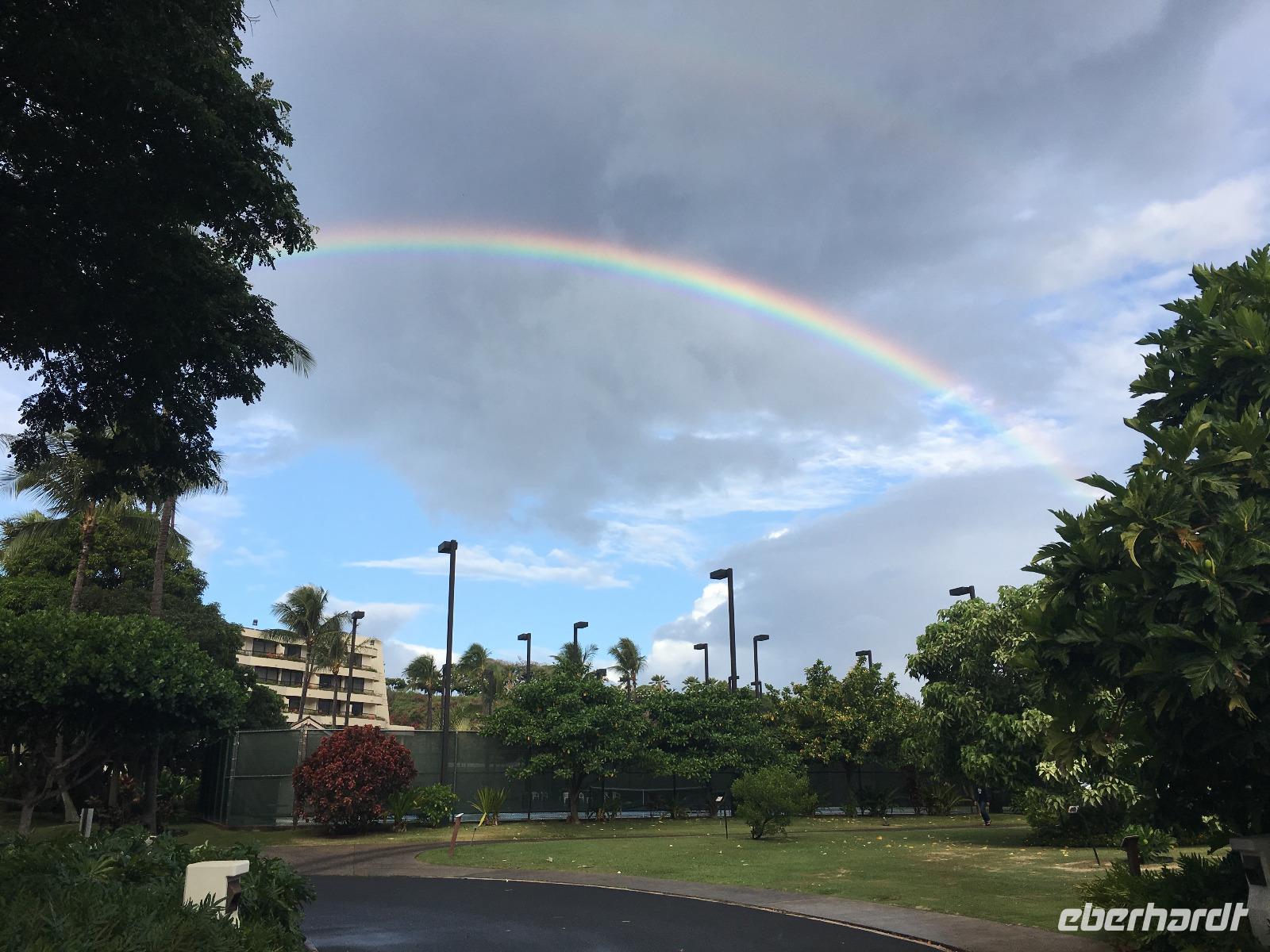 Wie gnadenlos schnell der Sand der Zeit verrinnt, erlebt man als Reisender immer an dem Tag, wo alle Planungen, Programmpunkte und die Entdecker-To-Do-Liste ihr Ende nehmen und man von den Konserven seiner mentalen und visuellen Erlebnisse zehren muss. Es gibt zwar keinen zwangsläufigen Zusammenhang zwischen der Entfernung eines Urlaubszieles und der Wahrscheinlichkeit eines dauerhaften Abschiedes, aber 15.729 Flugkilometer zwischen Deutschland und Hawaii legten den Verdacht nahe, dass die Wenigsten von uns so schnell wiederkommen würden. Was nicht an den liebenswerten Inselchen inmitten des Pazifiks liegt, denn die haben uns den Abschied sehr schwer gemacht, wenn auch Maui als Final Destination unsere Erwartungen nicht vollumfänglich erfüllen konnte. Die "Magische" benieselte uns zu großzügig, als Ergebnis dessen sahen wir allerdings auch einige der schönsten Regenbögen, die wir je zu Gesicht bekommen hatten, teilweise doppelt übereinander. Man kann halt nicht alles haben und eine Liebe muss sich auch entwickeln können. Insofern befinden wir uns mit Maui noch in der Flirtphase, was allemal besser ist als die Scheidung vor Augen zu haben.