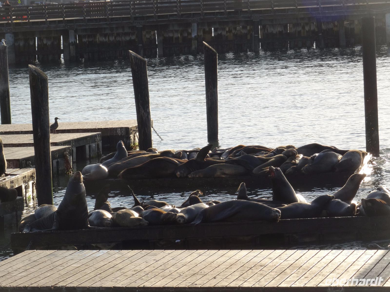 Am Pier 39 boten sich uns schöne Ausblicke sowohl auf Alcatraz als auch auf die seit 1981 sich hier befindliche Seelöwen-Kolonie.