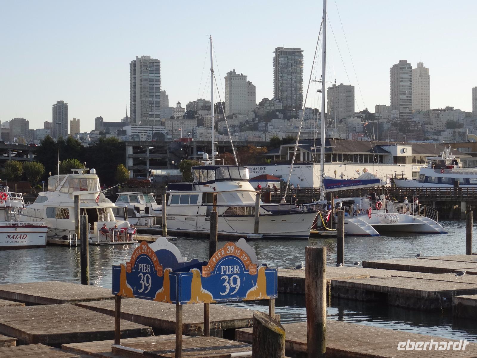 Nach dem Zimmerbezug trafen wir uns zur Erkundung der näheren Umgebung. Unbeeinflusst von der Zeitumstellung (- 9 Std.) bummelten wir an den Fischermann's Wharf entlang - früher die zentrale Drehscheibe für die Fischereiflotte, heute ikonische Touristenattraktion.
