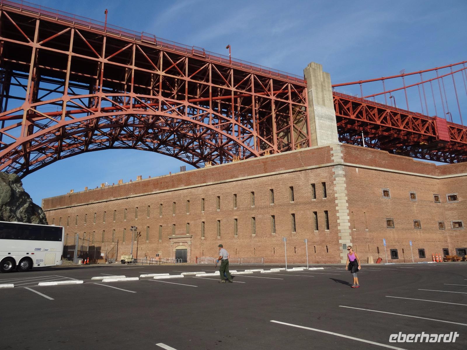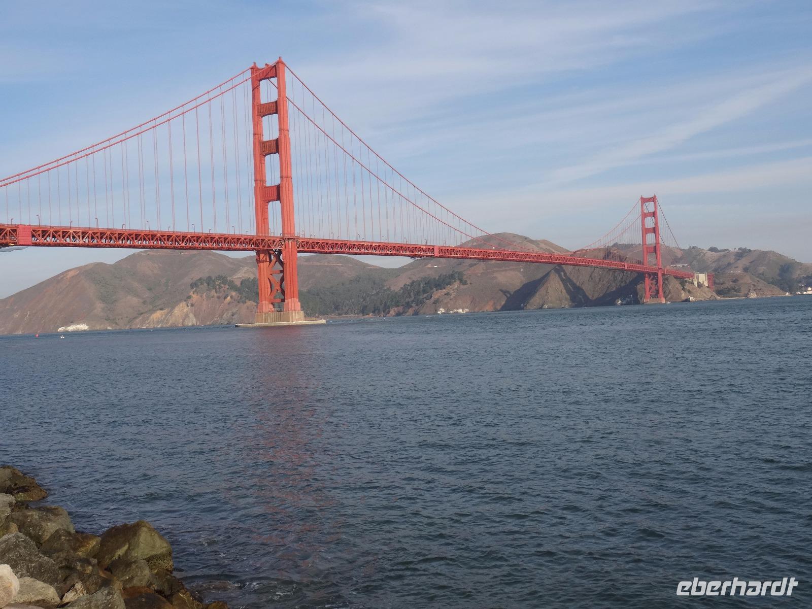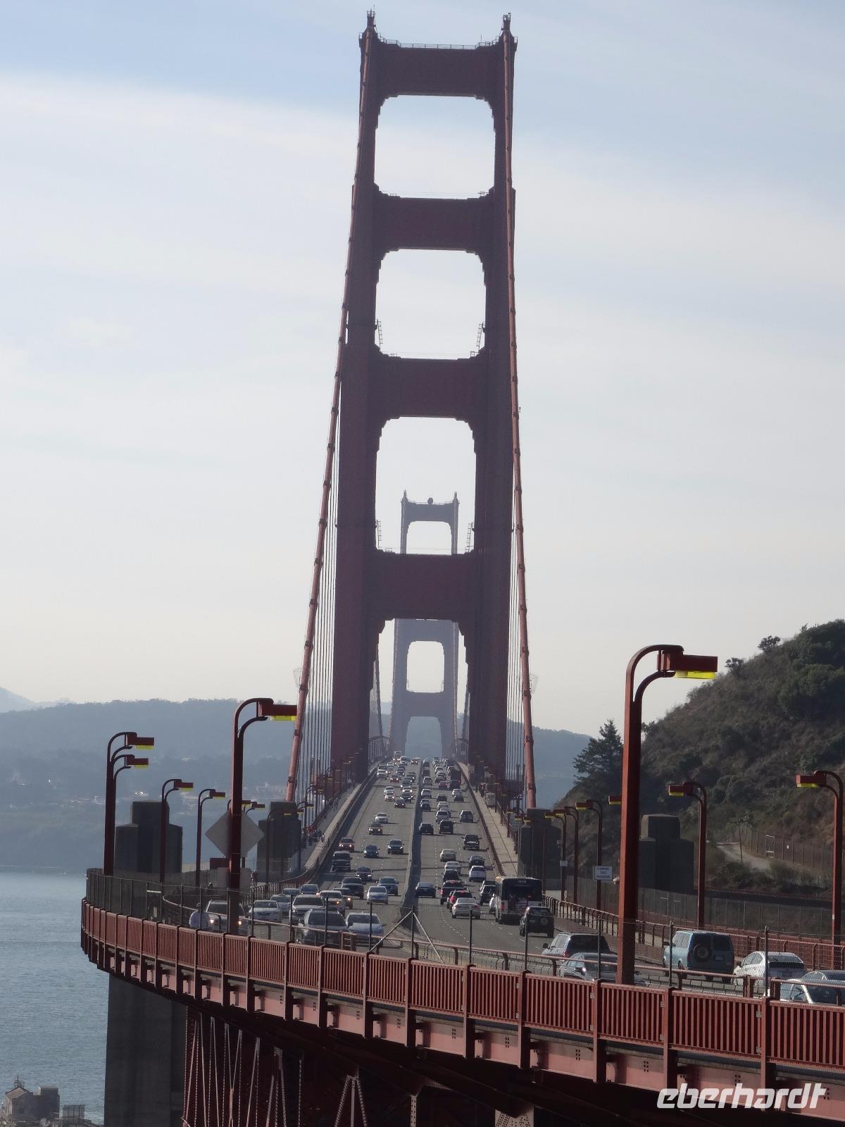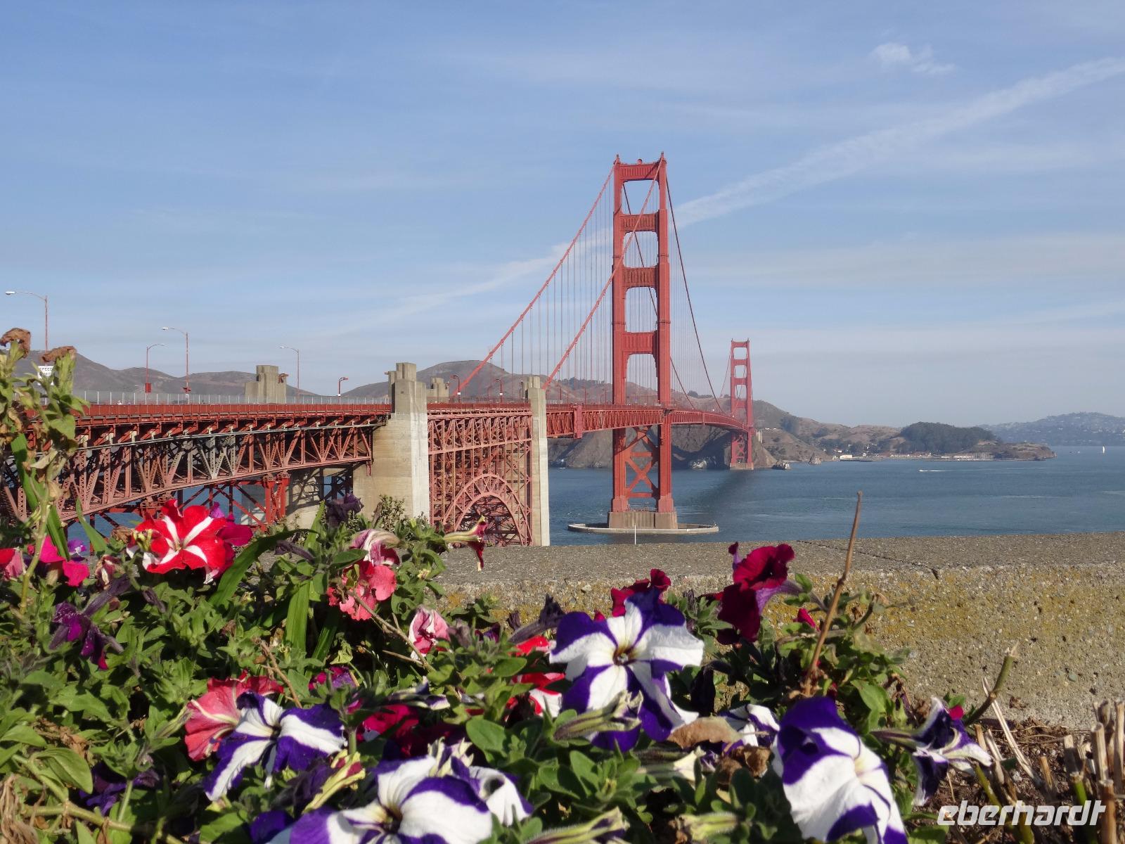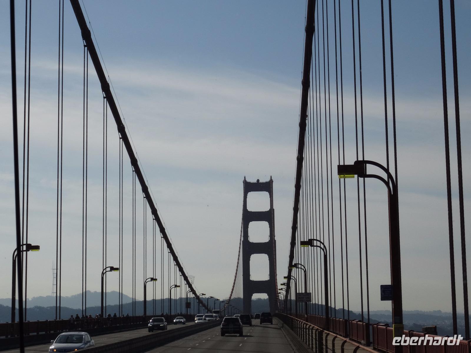 Alles begann gleich mit der sehnsüchtig erwarteten Golden Gate Bridge. Unser Busfahrer Dan brachte uns zunächst zum Fort Point Aussichtspunkt, welcher sonst Gäste in Bussen vorenthalten wird. Es folgten weitere Stopps mit immer wieder neuen Sichten und Fotomotiven auf das Wahrzeichen der Stadt. Natürlich war es ein Muss, einmal selbst die Füsse auf diese berühmte Brücke zu setzten und zu gehen. Einige Reisegäste taten dies sogar "in zerissenen Jeans" - der erste Traum wurde wahr...
