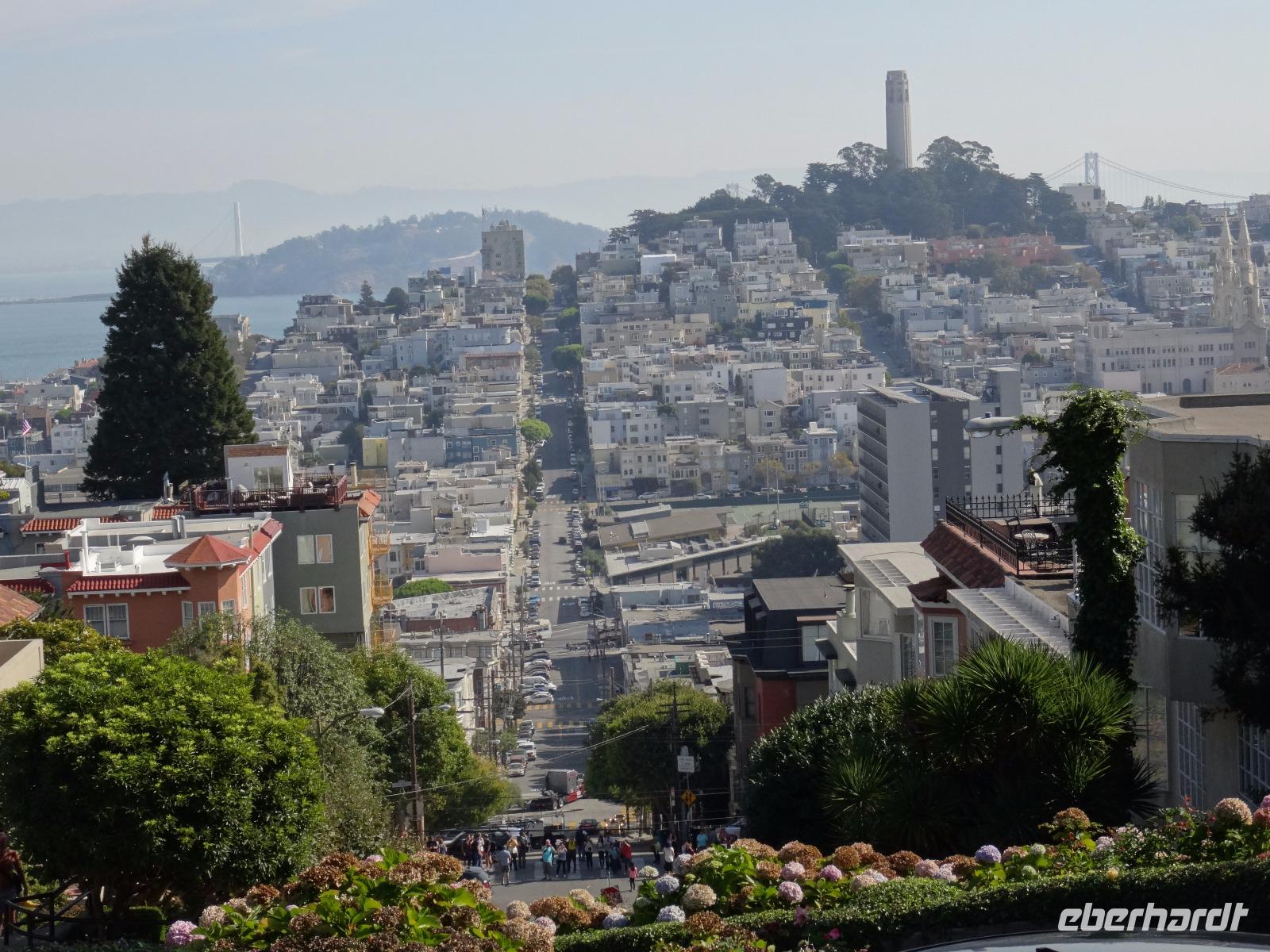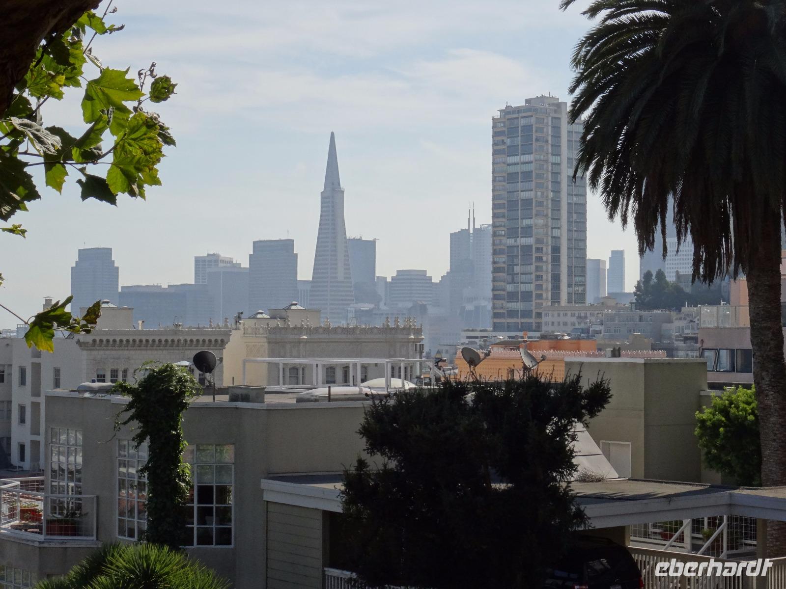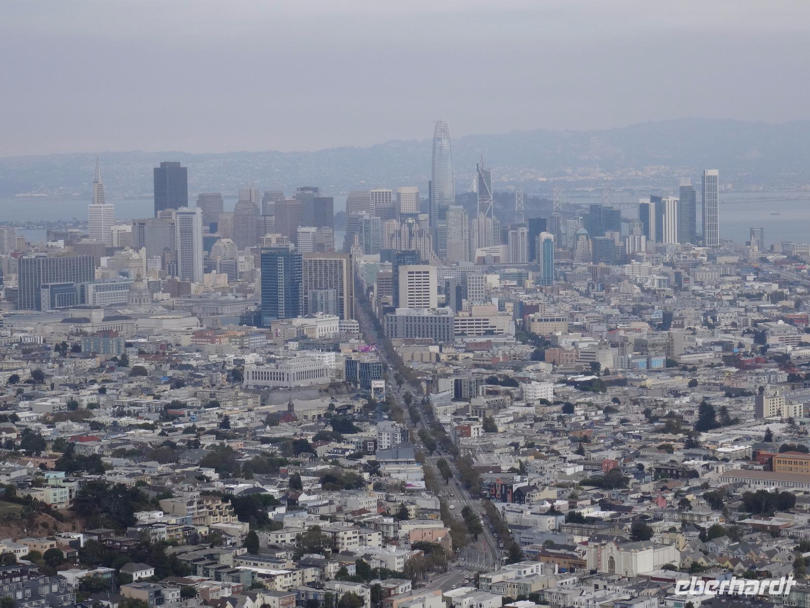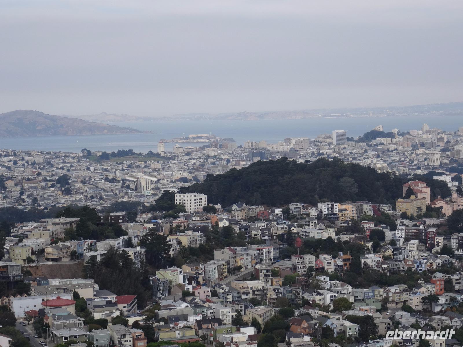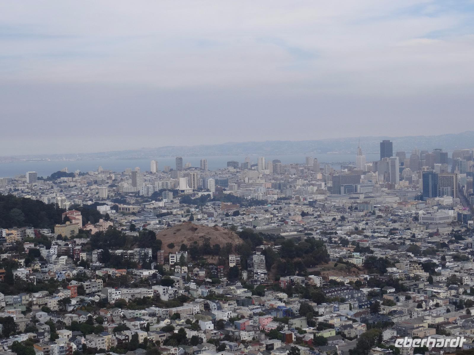 Von diesem Aussichtspunkt hatte man die traumhafteste Sicht auf die Skyline von San Francisco. Sogar die Golden Gate Bridge grüßte spektakulär.