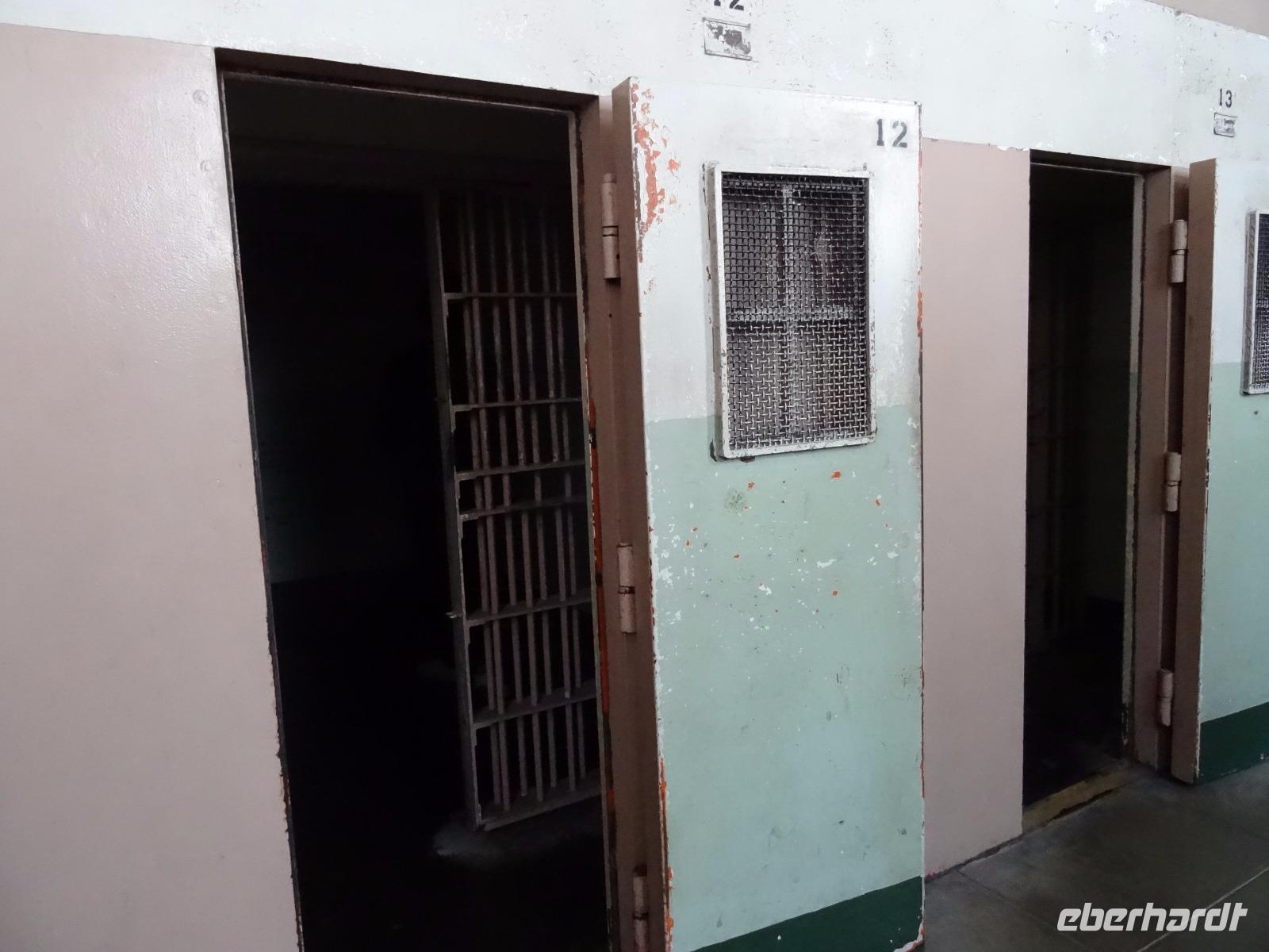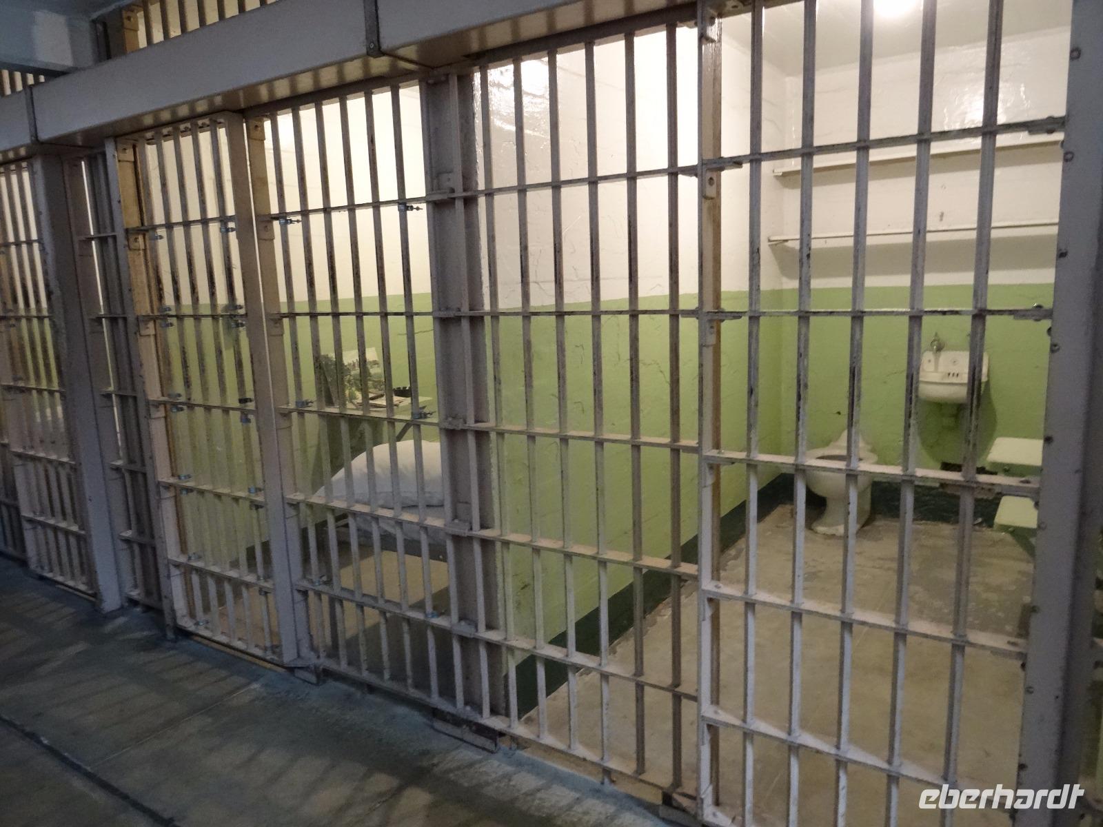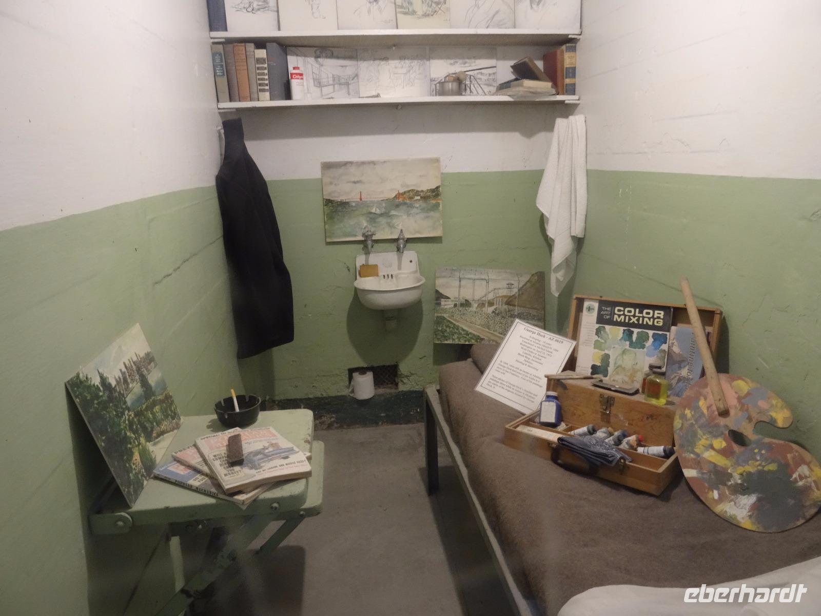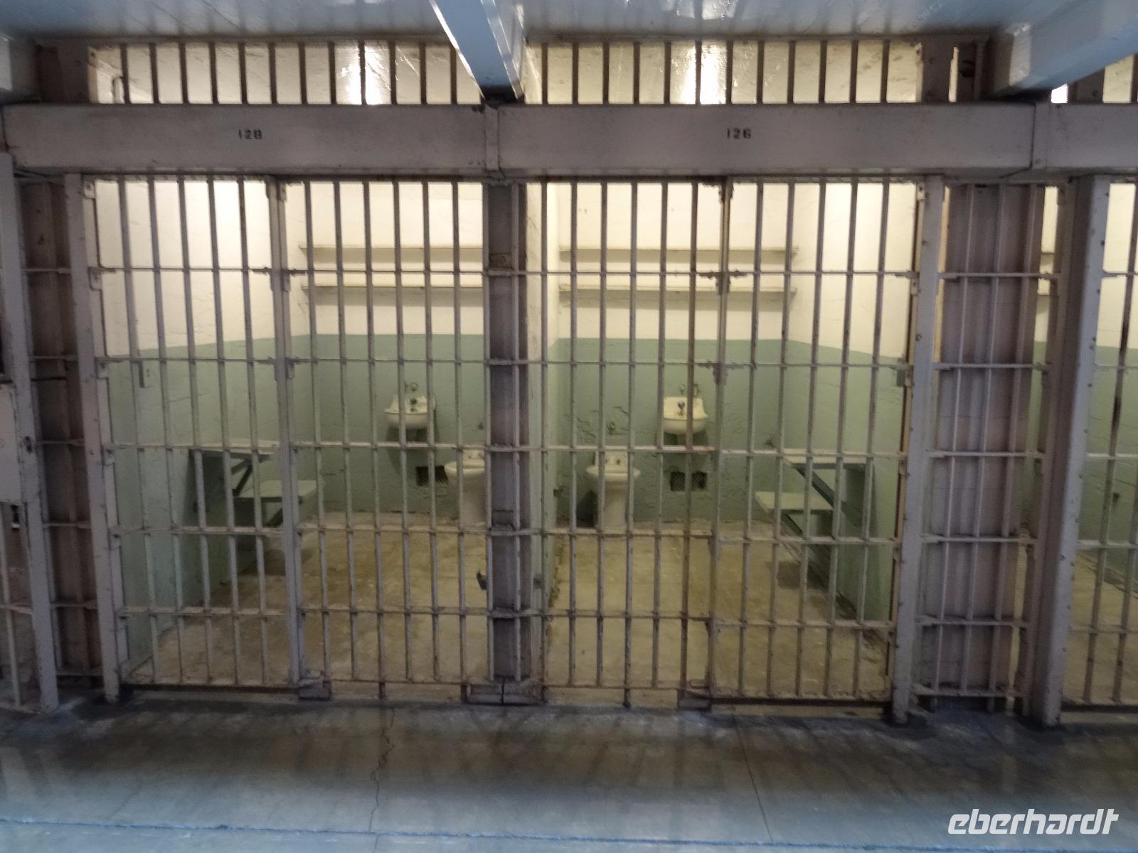 Innerhalb von 15 Minuten gelangten wir mit dem Schiff zur Gefängnisinsel und die Besichtigung konnte starten. Wir holten uns Audio Giudes in deutscher Sprache und erfuhren somit alles Wissenswertes über dieses bekannte Gefängnis. Alles war sehr interessant und gut dargestellt. Wir sahen die einzelnen Zellen-konnten diese auch betreten-, Gänge, den Speisesaal, den Hof für den Hofgang, die Räume der Wärter sowie den Platz, wo die Gefangenen ihre Besuche empfingen. Sehr autentisch waren die Fluchtversuche dargestellt, vor allem der, welcher geglückt war. Mit Stahllöffeln sollen die Häftlinge ein Jahr lang den Zement abgekratzt haben, um über den Lüftungsschacht das Dach zu erreichen. Der Ausbruch gelang und noch heute ranken sich verschiedene Legenden darüber, was aus den entflohenen Sträflingen gewurden sei.