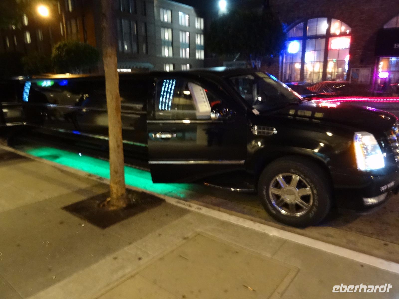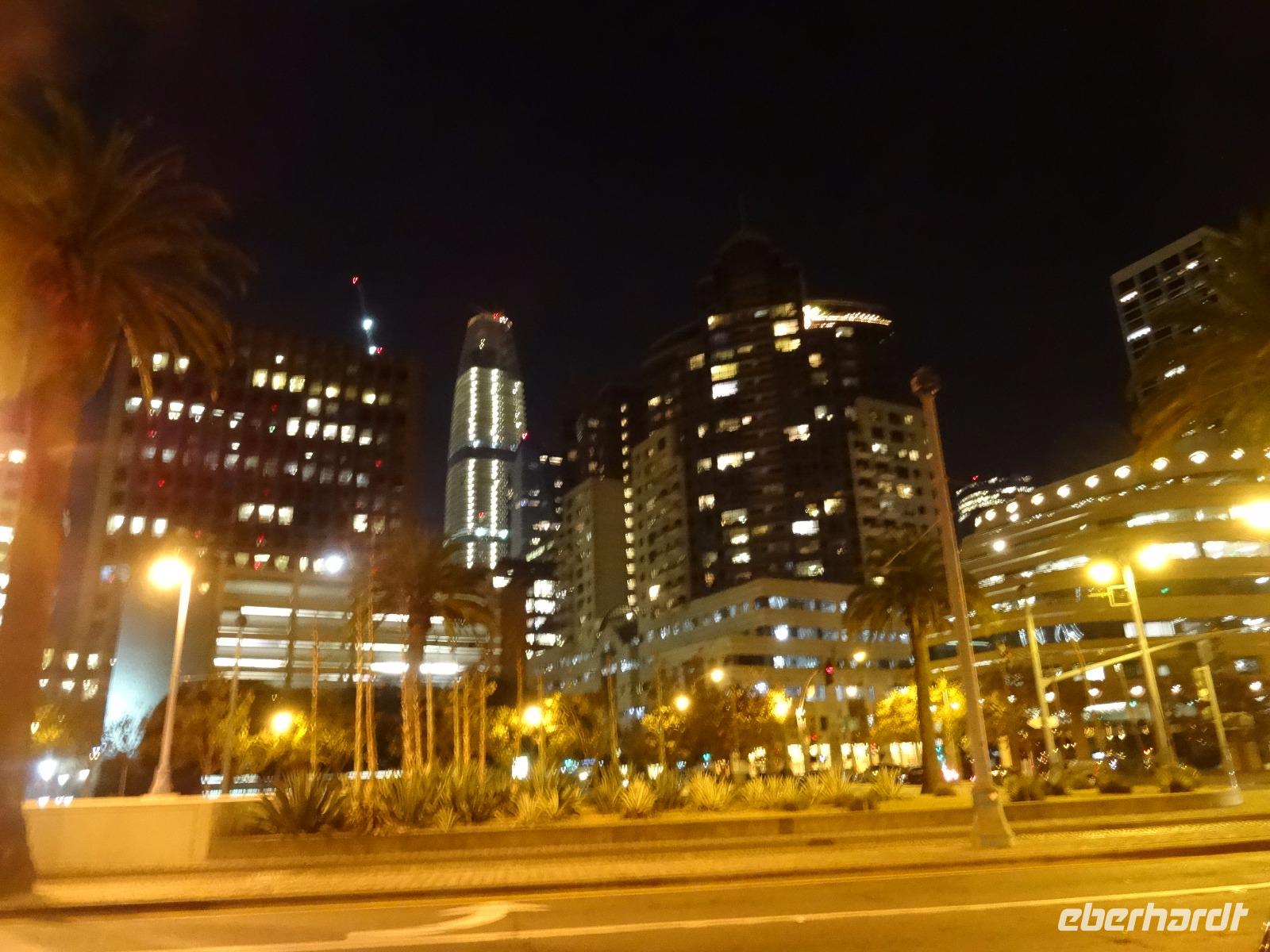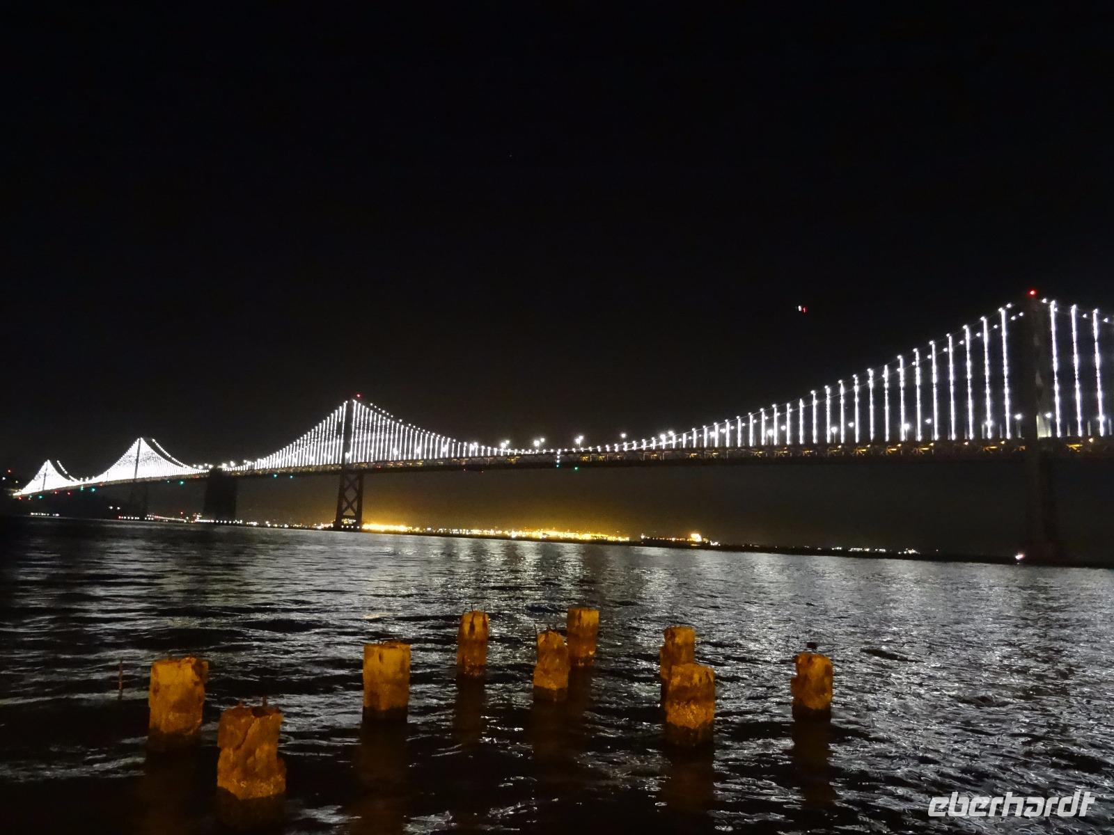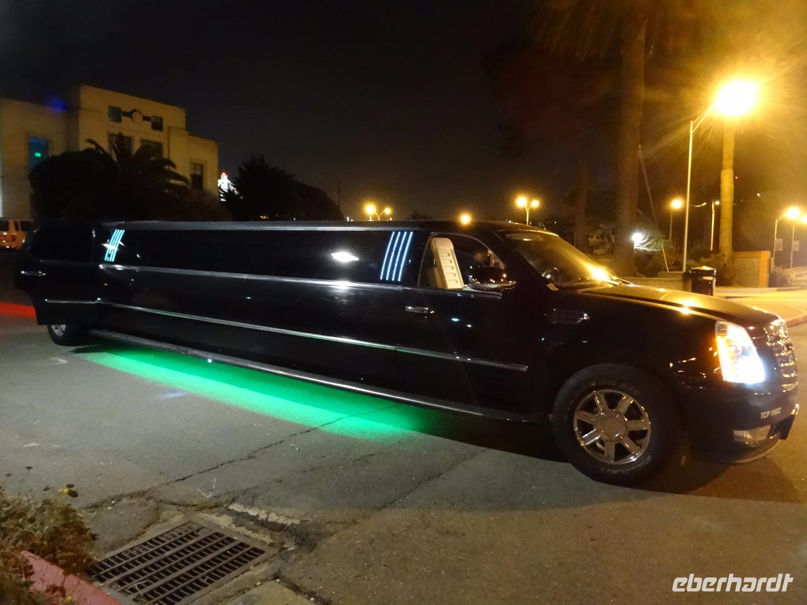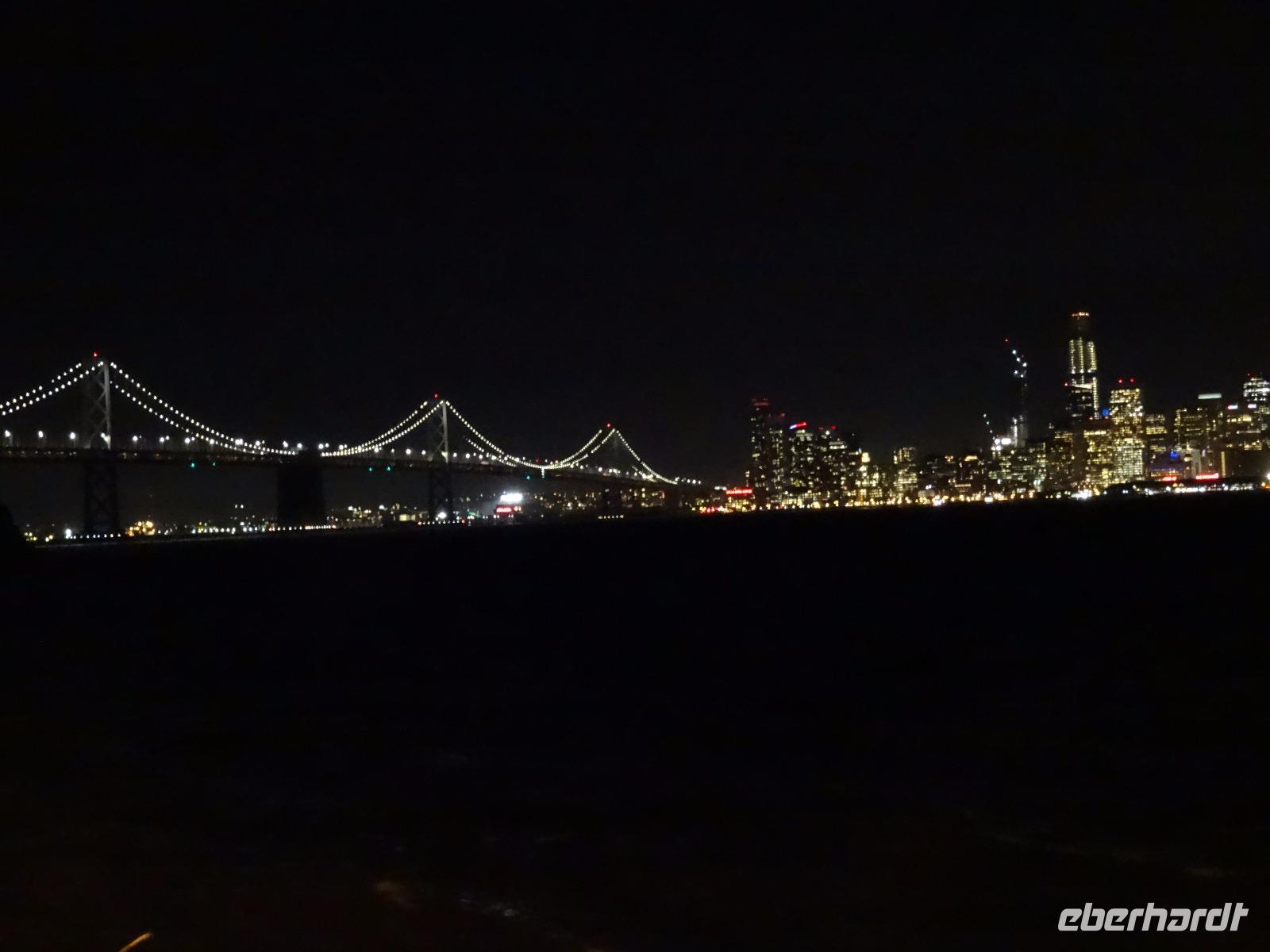 Deshalb trafen wir uns dann am Abend vor unserem Hotel und wurden von einer großen Stretchlimousine, wo wir alle "reinpassten", abgeholt. Mit toller Stimmung, Champagner und Musik fuhren durch die Stadt über die Bay Bridge nach Treasure Island. Hier genossen wir eine verzaubernde Aussicht auf das erleuchtete San Francisco - genau das Richtige für den Abschluss des ersten Teiles unserer Reise.