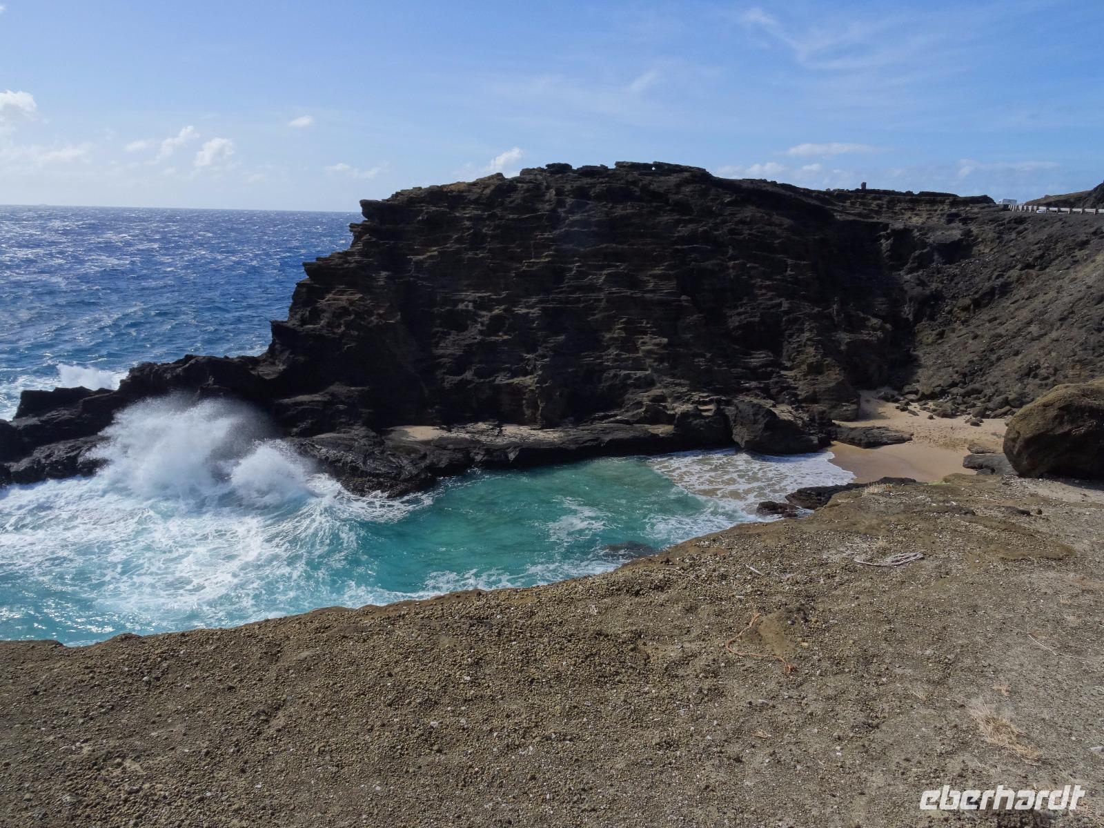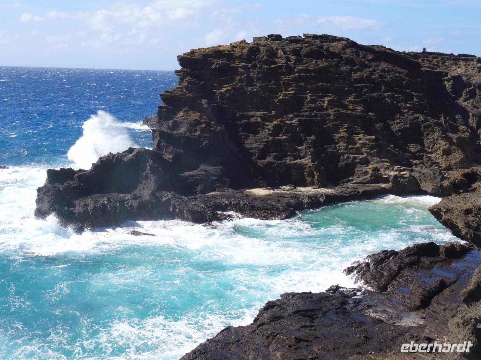Ersterer war am Halona Blowhole. Bei starker Brandung schießt das Wasser hier- analog einem Geysir- spektakulär aus den Felsenlöchern hervor.