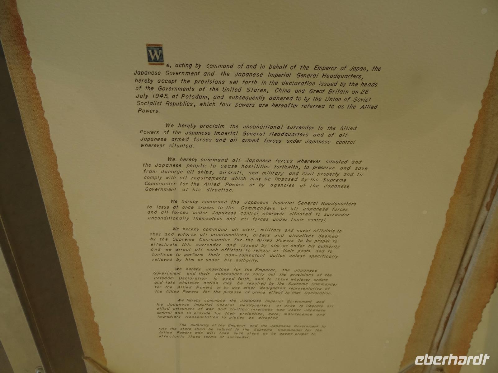 Zuerst fuhren wir mit dem Bus zur Besichtigung der USS Missouri, auf welcher 1945 der Friedensvertrag zwischen den USA und Japan geschlossen wurde. Bei einer Führung erfuhren und sahen wir alle wichtigen Fakten wie die Stelle der Unterzeichung des Friedensvertrages oder das Leben an Bord.